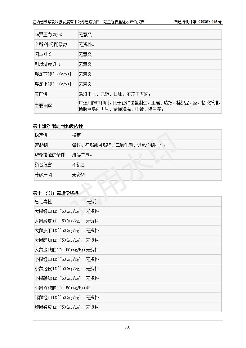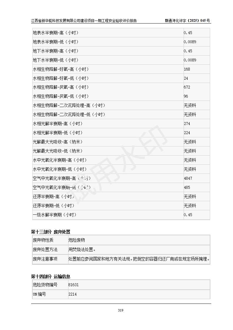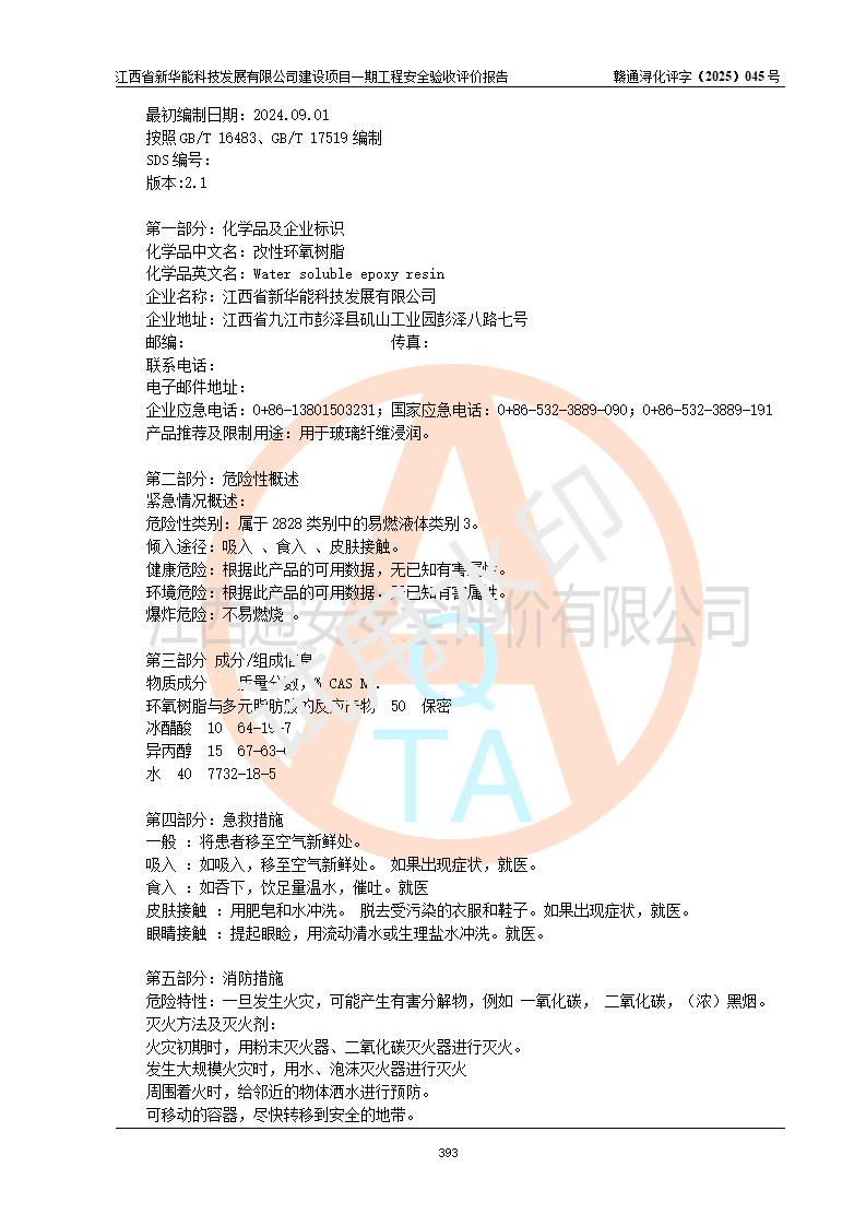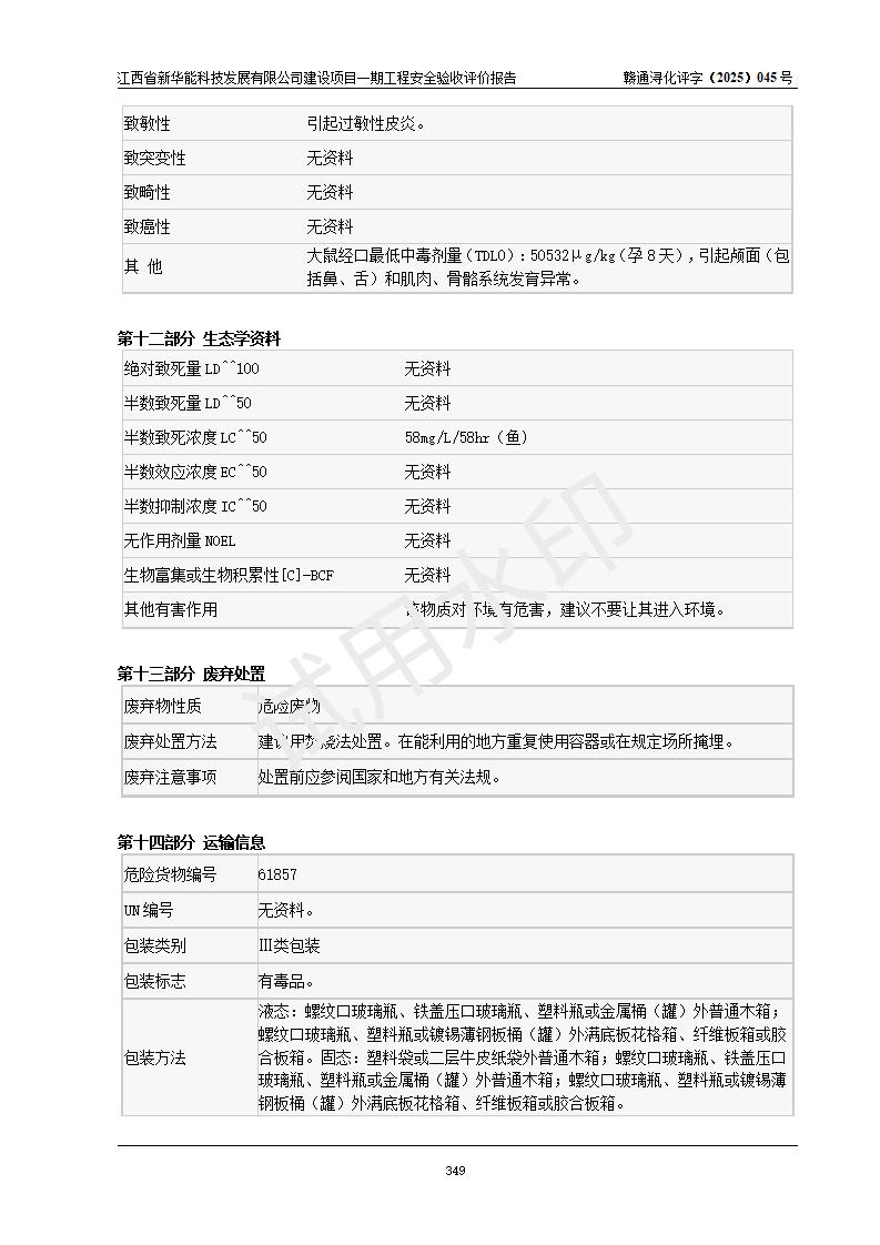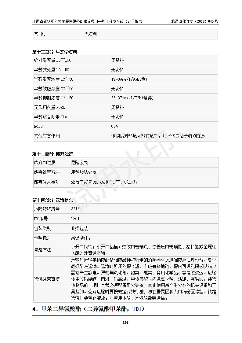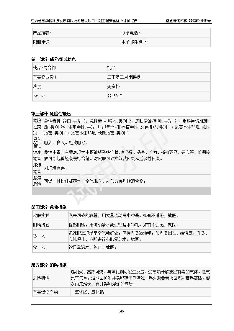評(píng)價(jià)結(jié)論 | 經(jīng)評(píng)價(jià)組評(píng)價(jià),江西省新華能科技發(fā)展有限公司年產(chǎn)20000噸化纖樹脂和1500噸光引發(fā)劑、阻燃劑建設(shè)項(xiàng)目一期工程(年產(chǎn)16000化纖樹脂項(xiàng)目)總體布局、現(xiàn)場設(shè)備布置情況與設(shè)計(jì)圖紙一致,本次項(xiàng)目涉及重點(diǎn)監(jiān)管的危險(xiǎn)化學(xué)品、危險(xiǎn)工藝,按設(shè)計(jì)要求,設(shè)置有DCS系統(tǒng)、SIS系統(tǒng)、GDS系統(tǒng),符合《江西省應(yīng)急管理廳關(guān)于印發(fā)(試行)的通知 》、關(guān)于印發(fā)《九江市化工企業(yè)自動(dòng)化提升實(shí)施方案》的安全要求,符合《危險(xiǎn)化學(xué)品生產(chǎn)建設(shè)項(xiàng)目安全風(fēng)險(xiǎn)防控指南(試行)》規(guī)定竣工驗(yàn)收的安全條件;企業(yè)主要負(fù)責(zé)人、安全管理部門負(fù)責(zé)人均為化學(xué)、化工相關(guān)專業(yè),且有3年以上化工行業(yè)從業(yè)經(jīng)歷,企業(yè)主要負(fù)責(zé)人及安全管理人員已取得危險(xiǎn)化學(xué)品企業(yè)主要負(fù)責(zé)人及安全管理人員考核合格證。項(xiàng)目選擇的工藝過程及設(shè)備設(shè)施的安全可靠性能 達(dá)到**法規(guī)、標(biāo)準(zhǔn)規(guī)定要求。 項(xiàng)目運(yùn)行后存在的主要危險(xiǎn)、有害因素有:火災(zāi)、其他爆炸、容器爆炸、中毒與窒息等;存在的主要有害因素有高溫、化學(xué)物質(zhì)危害等;針對(duì)存在的危險(xiǎn)、有害因素,企業(yè)采取了**的安全技術(shù)措施及安全管理措施,符合**有關(guān)法規(guī)、標(biāo)準(zhǔn)、規(guī)范要求;項(xiàng)目風(fēng)險(xiǎn)可控,其安全生產(chǎn)條件和安全管理 方面具備竣工安全驗(yàn)收的條件。 | |||||
