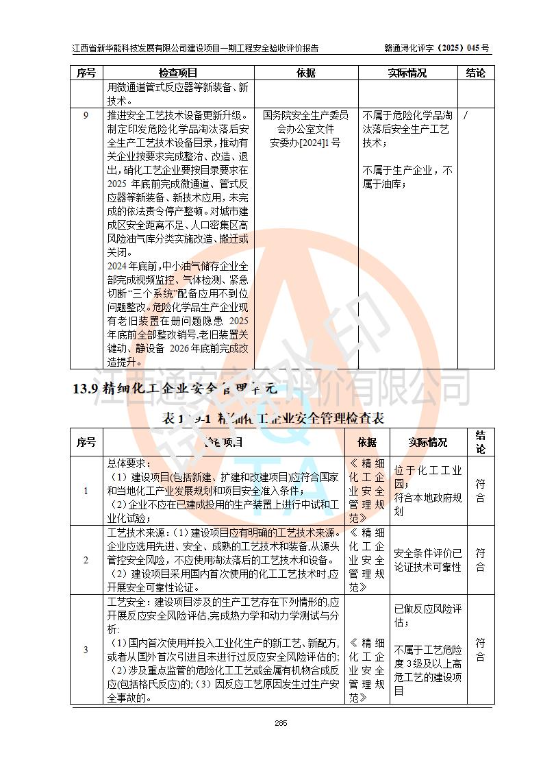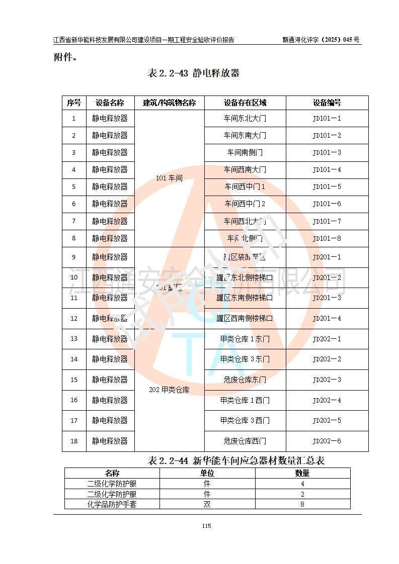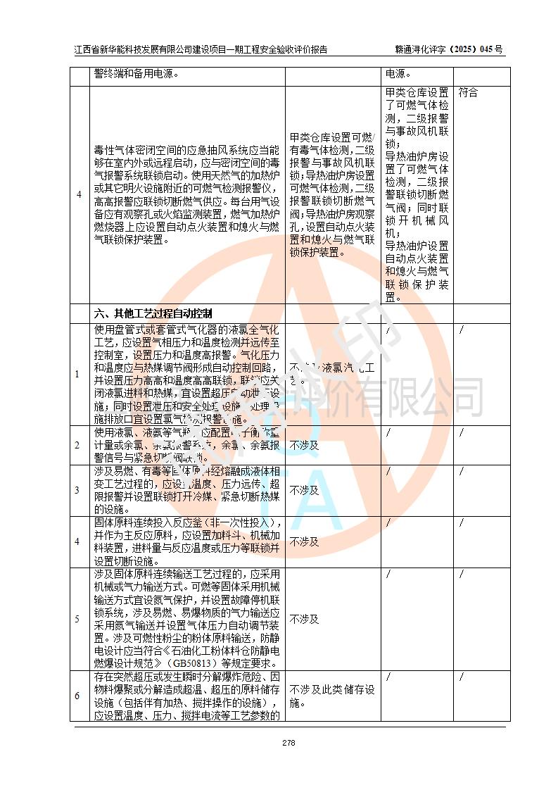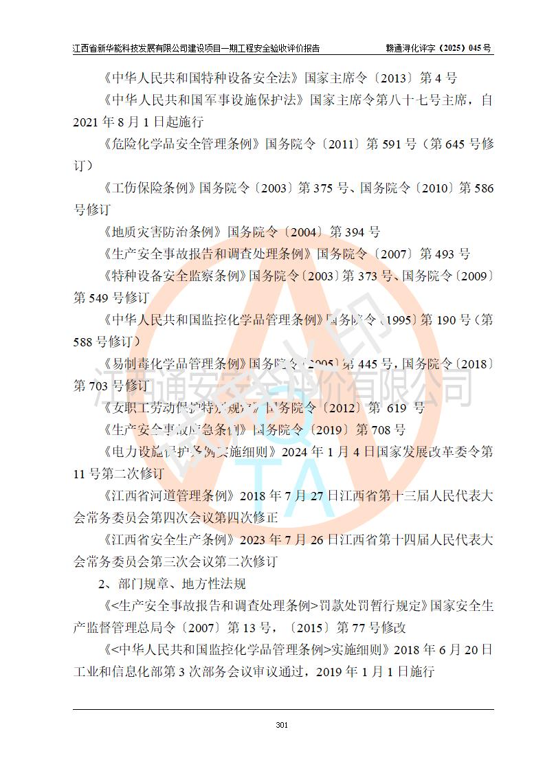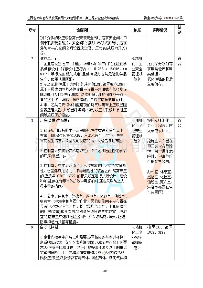 評(píng)價(jià)報(bào)告名稱 | 江西省新華能科技發(fā)展有限公司建設(shè)項(xiàng)目一期工程安全驗(yàn)收評(píng)價(jià)報(bào)告 | |||||