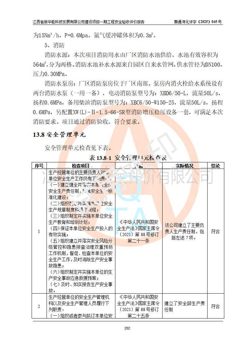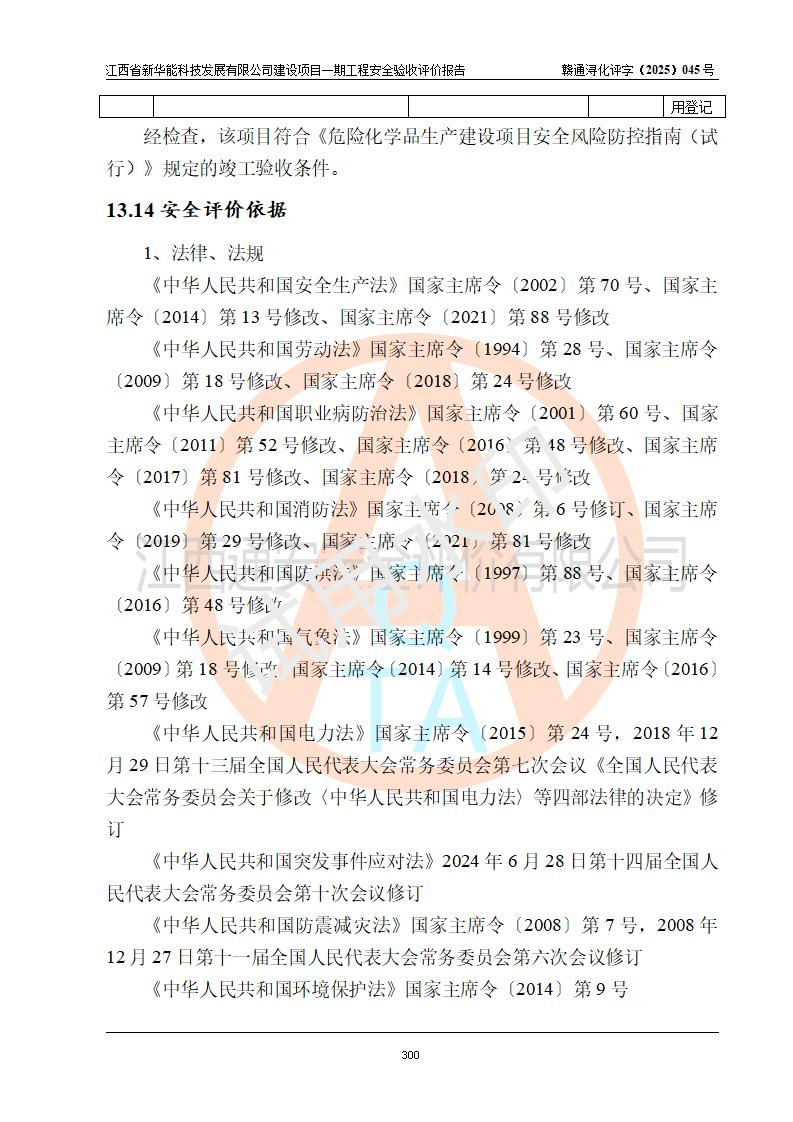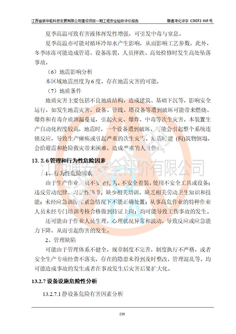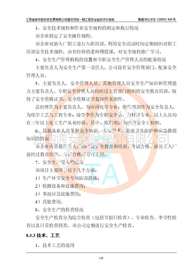 評(píng)價(jià)報(bào)告名稱 | 江西省新華能科技發(fā)展有限公司建設(shè)項(xiàng)目一期工程安全驗(yàn)收評(píng)價(jià)報(bào)告 | |||||