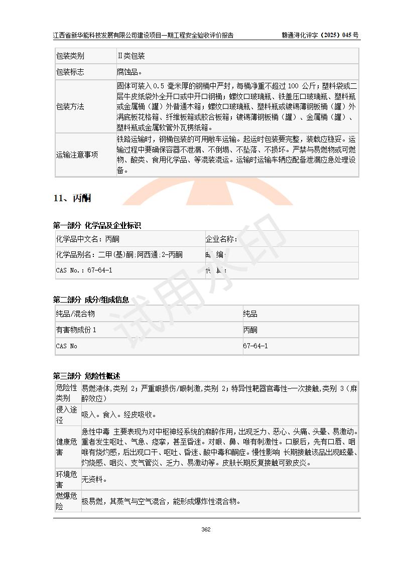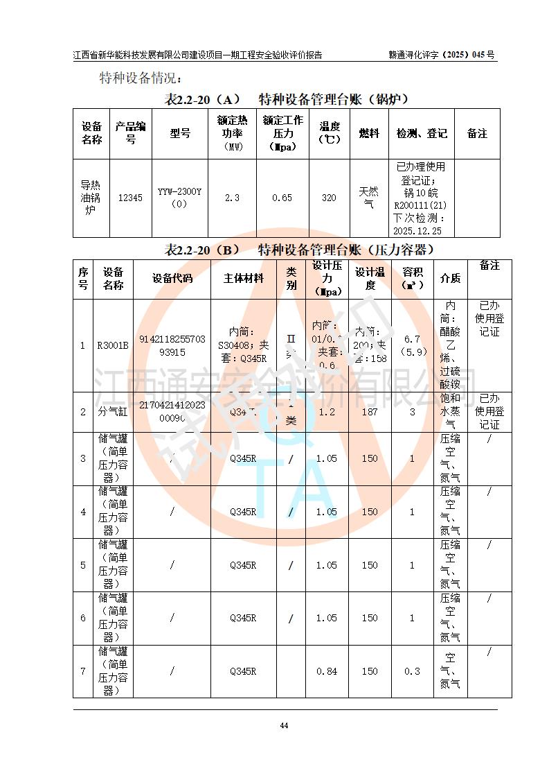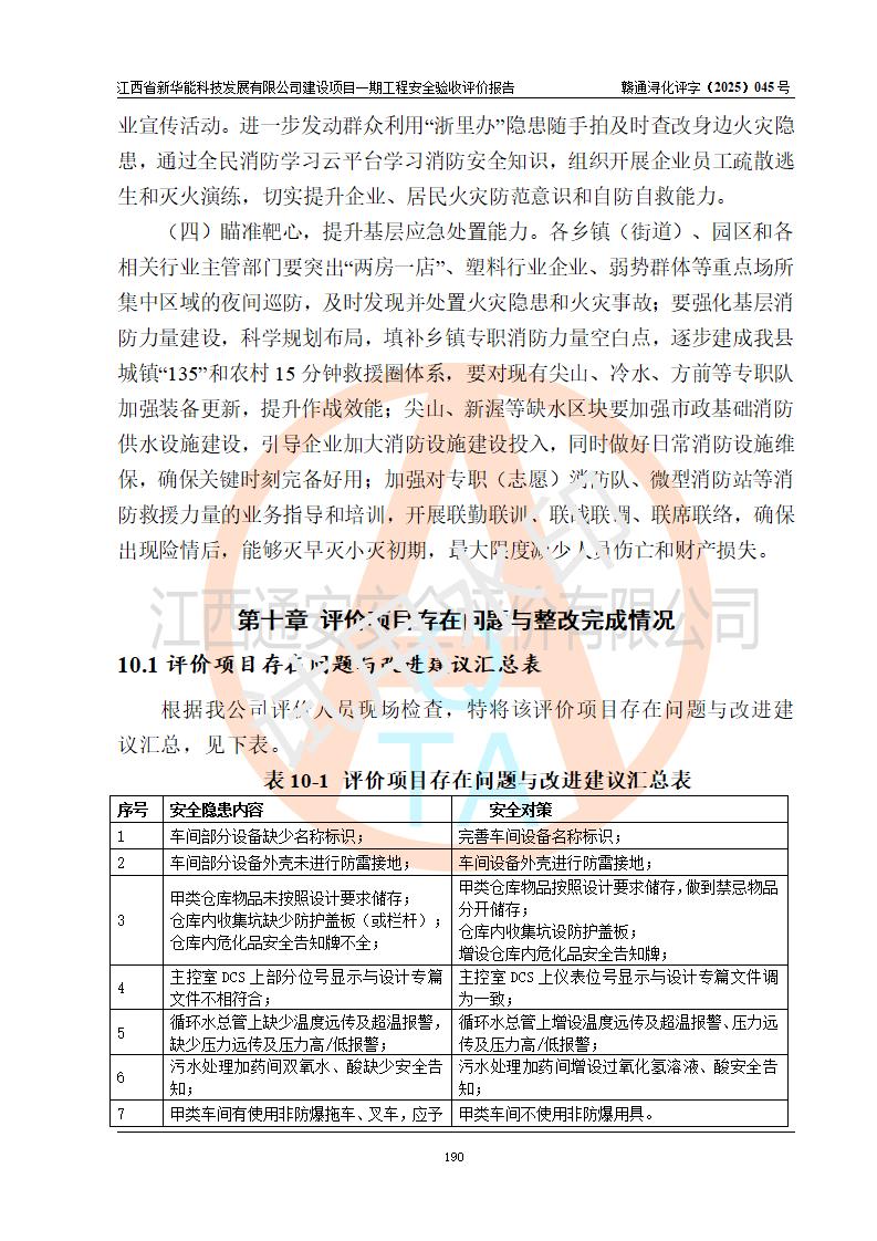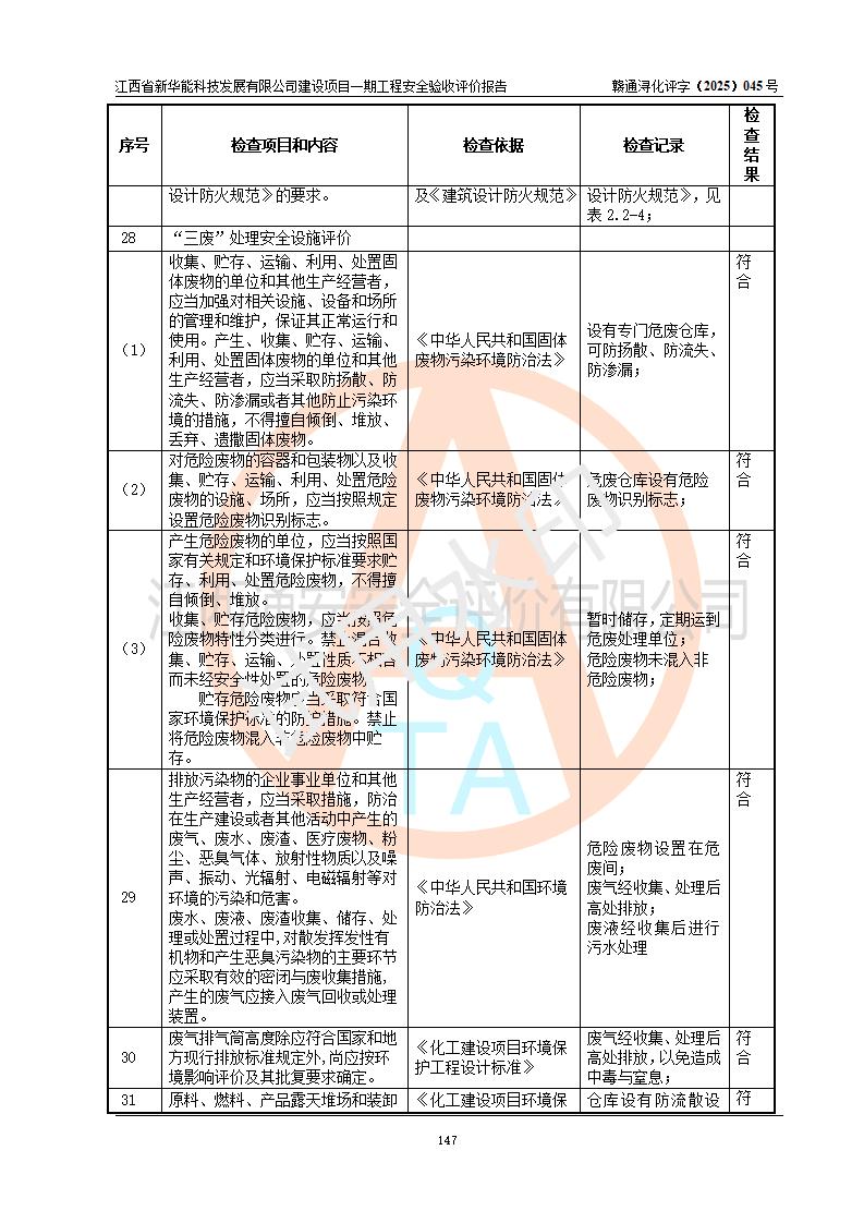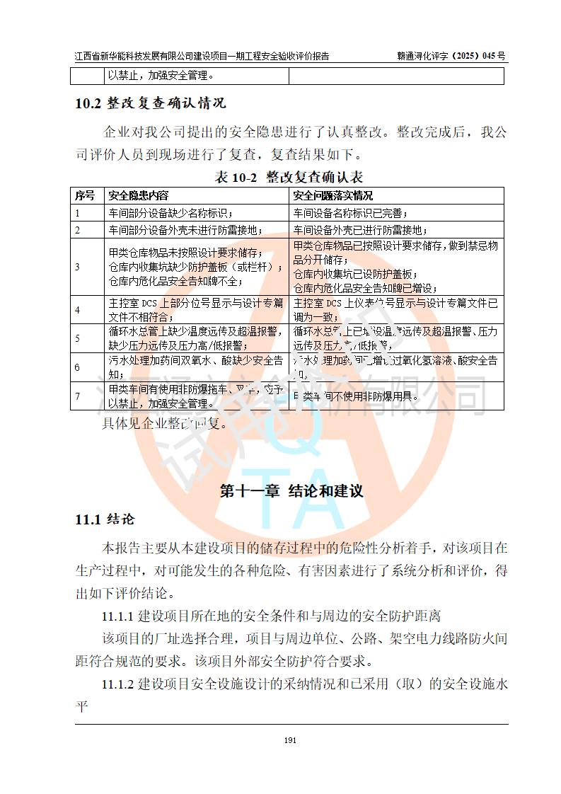 評(píng)價(jià)報(bào)告名稱 | 江西省新華能科技發(fā)展有限公司建設(shè)項(xiàng)目一期工程安全驗(yàn)收評(píng)價(jià)報(bào)告 | |||||