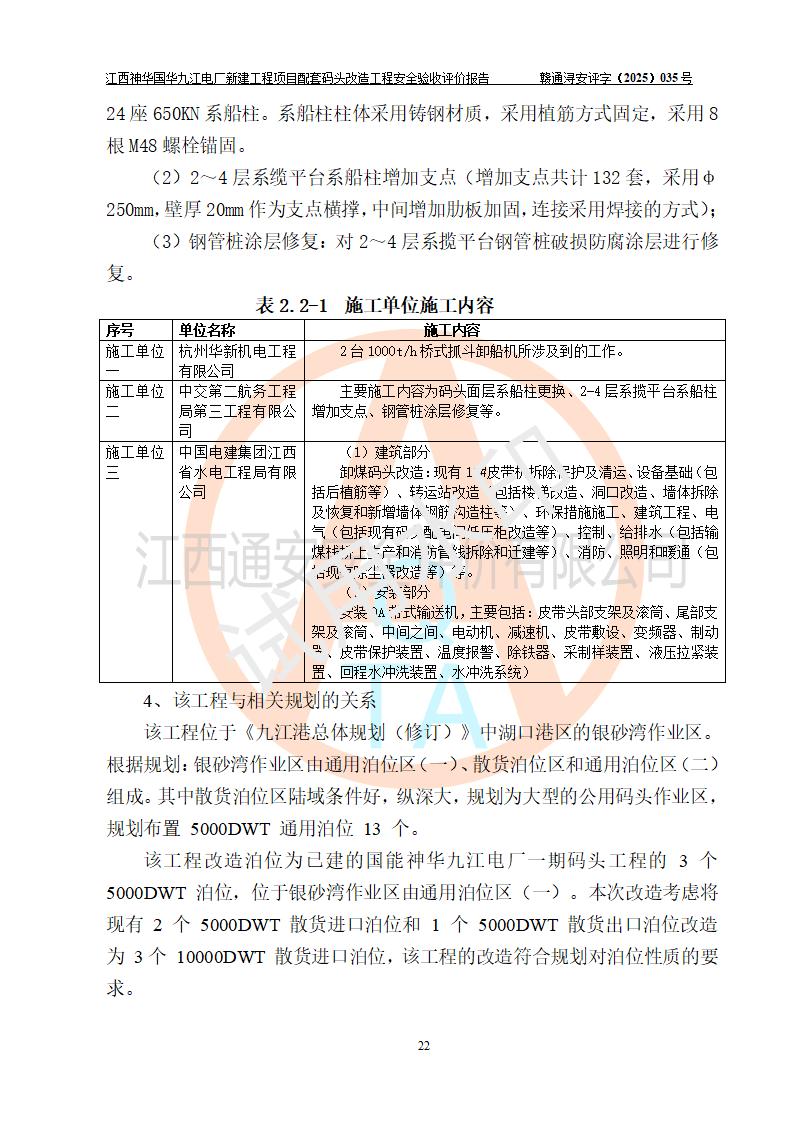 項(xiàng)目名稱:江西神華國(guó)華九江電廠新建工程項(xiàng)目配套碼頭改造工程 項(xiàng)目地點(diǎn):位于長(zhǎng)江下游東北水道右岸,九江長(zhǎng)江大橋下游約37**,岸線批復(fù)總長(zhǎng)度為409米 建設(shè)單位:國(guó)能神華九江發(fā)電有限責(zé)任公司 勘察設(shè)計(jì)單位:中交第二航務(wù)工程勘察設(shè)計(jì)院有限公司 設(shè)計(jì)單位一:中交第二航務(wù)工程勘察設(shè)計(jì)院有限公司(水工建筑物設(shè)計(jì)分界以大堤為界,大堤以外由二航院設(shè)計(jì)) ;工藝專業(yè)設(shè)計(jì)分界點(diǎn)以碼頭平臺(tái)上的 0#轉(zhuǎn)運(yùn)站為分界點(diǎn),0#轉(zhuǎn)運(yùn)站內(nèi)部工藝設(shè)備由二航院設(shè)計(jì) 設(shè)計(jì)單位二:引橋上部管帶機(jī)(引橋上管帶機(jī)300m后)由中南電力設(shè)計(jì)院設(shè)計(jì) 施工單位一:杭州華新機(jī)電工程有限公司 施工單位二:中交二航局第三工程有限公司 施工單位三:中國(guó)電建集團(tuán)江西省水電工程局有限公司 監(jiān)理單位:中交希迪工程咨詢管理(武漢)有限公司 項(xiàng)目性質(zhì):改擴(kuò)建 投資規(guī)模:8320.51萬(wàn)元 建設(shè)規(guī)模:江西神華國(guó)華九江電廠新建工程項(xiàng)目配套碼頭原有 2 個(gè)5000DWT 散貨**泊位、1 個(gè) 5000DWT 散貨出口泊位及相應(yīng)的配套設(shè)施。本次改造將原有碼頭改造為 3 個(gè) 10000DWT 散貨**泊位。改造后的3個(gè)泊位煤炭總通過(guò)能力為1051萬(wàn)噸/年。 |