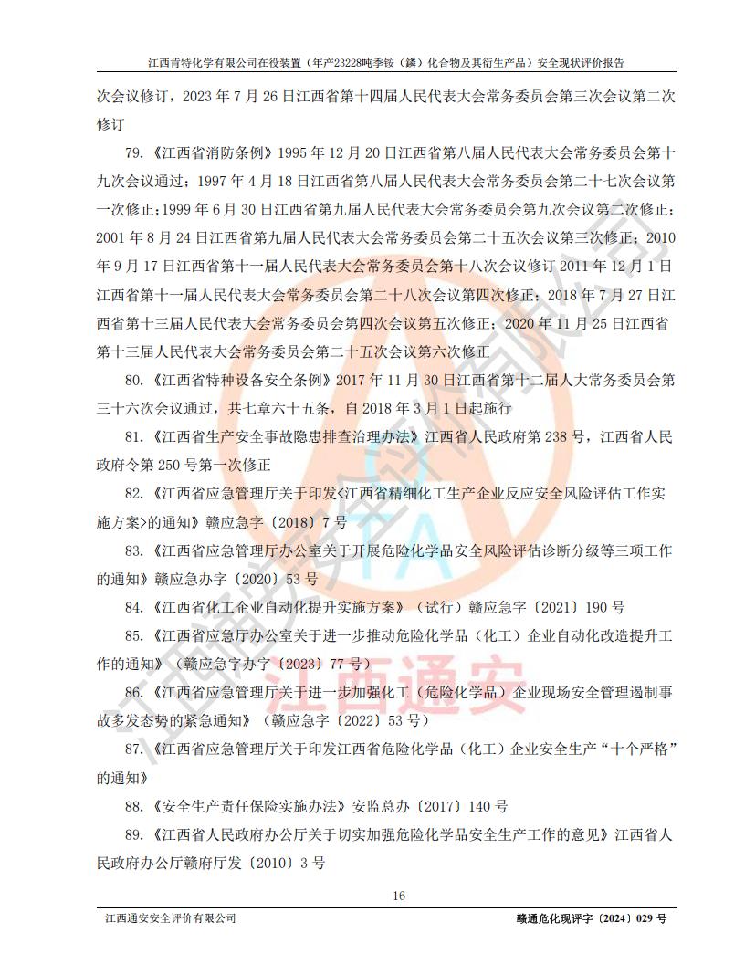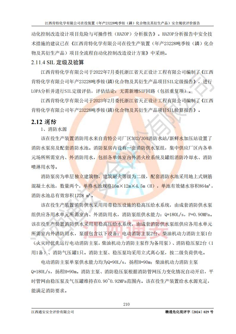 評(píng)價(jià)報(bào)告名稱 | 江西肯特化學(xué)有限公司在役裝置(年產(chǎn)23228噸季銨(鏻)化合物及其衍生產(chǎn)品)安全現(xiàn)狀評(píng)價(jià)報(bào)告 | |||