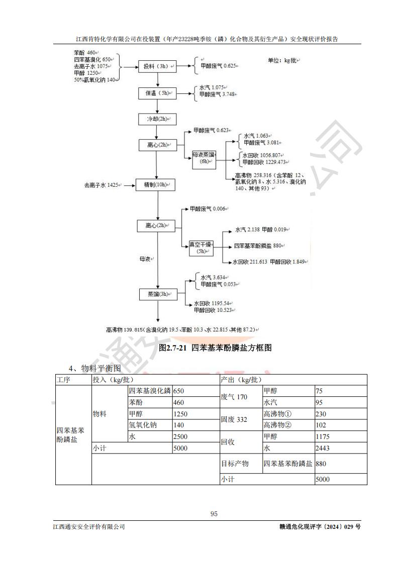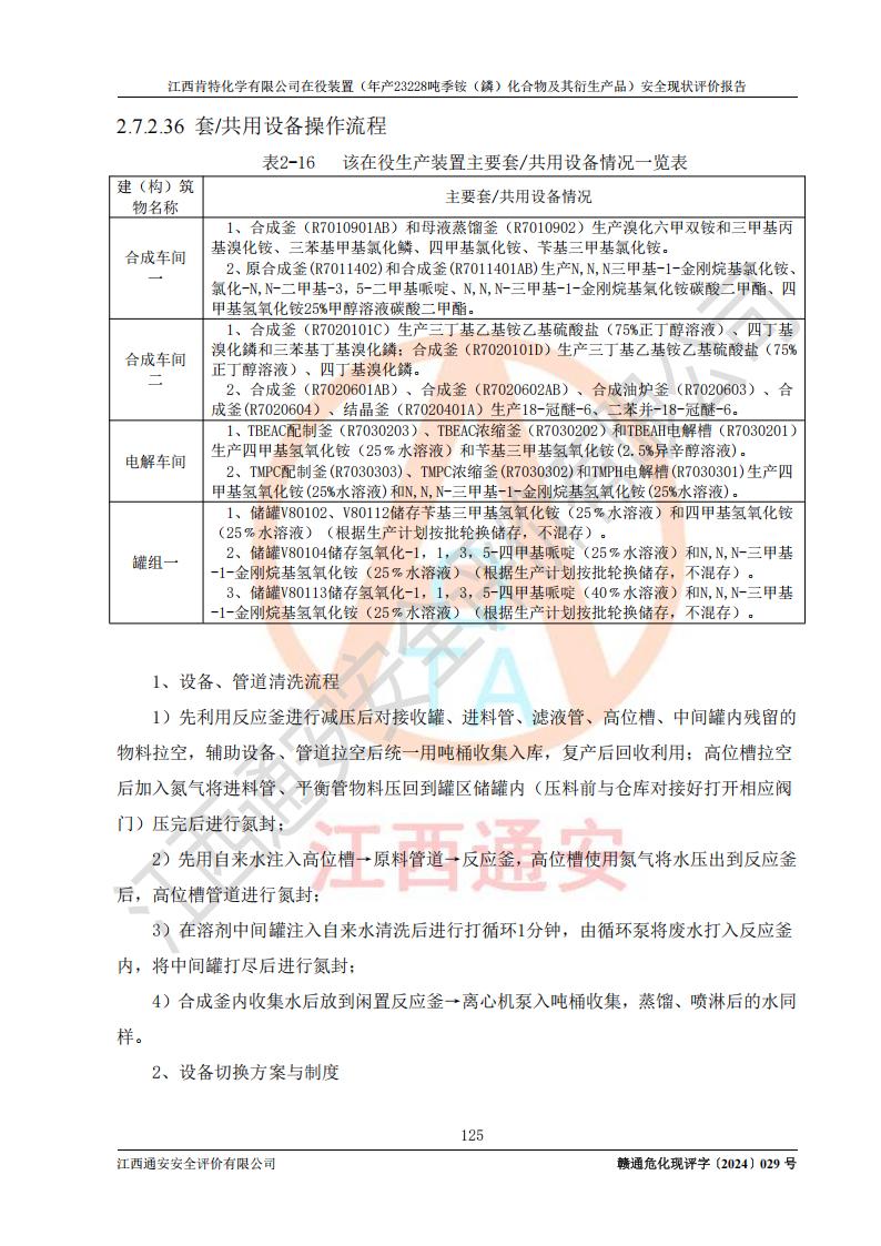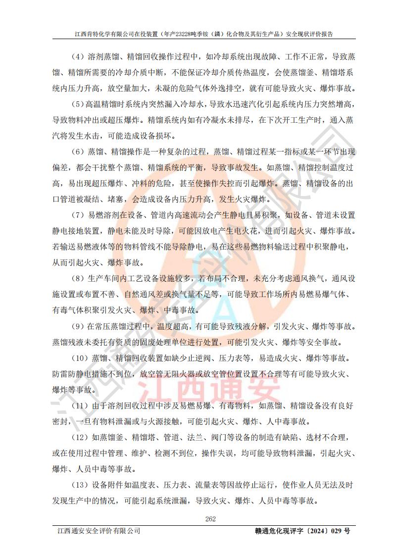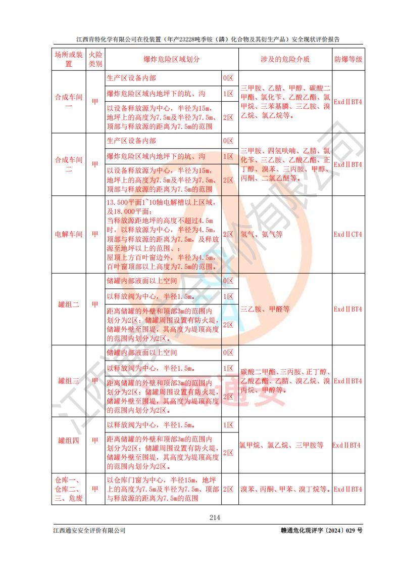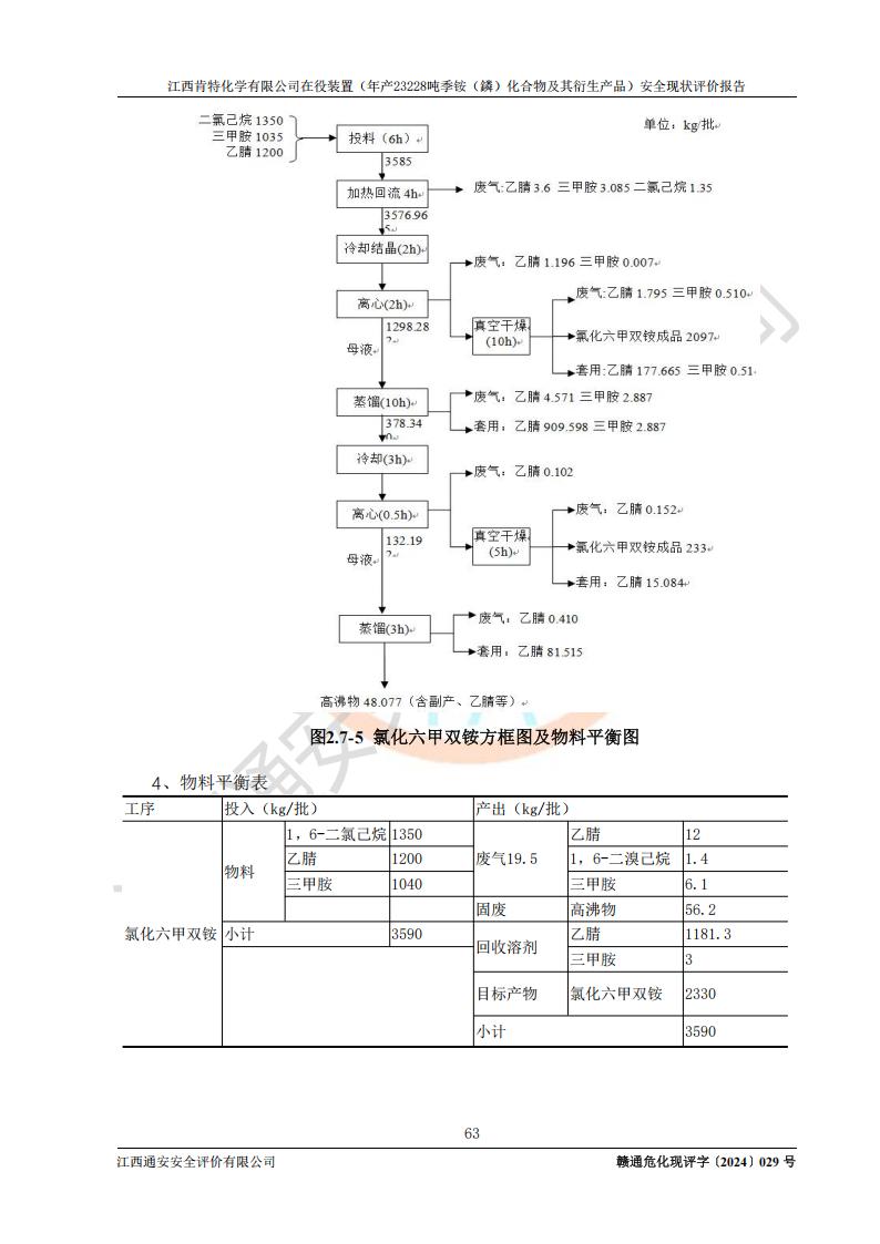項(xiàng)目簡(jiǎn)介 | 江西肯特化學(xué)有限公司(以下簡(jiǎn)稱“公司”)成立于2009年5月31日,位于江西永新工業(yè)園區(qū)化工集中區(qū)(為《關(guān)于江西省化工園區(qū)認(rèn)定合格名單(**批)公示》中認(rèn)定合格的化工園區(qū)),屬有限責(zé)任公司(非自然人投資或控股的法人獨(dú)資),法定**人:項(xiàng)飛勇,注冊(cè)資金:伍仟貳佰萬(wàn)元整。經(jīng)營(yíng)范圍:許可項(xiàng)目:危險(xiǎn)化學(xué)品生產(chǎn)(**期至2024年9月22日止)第二、三類監(jiān)控化學(xué)品和第四類監(jiān)控化學(xué)品中含磷、硫、氟的特定有機(jī)化學(xué)品生產(chǎn),**類非藥品類易制毒化學(xué)品經(jīng)營(yíng)(依法須經(jīng)批準(zhǔn)的項(xiàng)目,經(jīng)相關(guān)部門批準(zhǔn)后方可開展經(jīng)營(yíng)活動(dòng),具體經(jīng)營(yíng)項(xiàng)目以相關(guān)部門批準(zhǔn)文件或許可證件為準(zhǔn))一般項(xiàng)目:基礎(chǔ)化學(xué)原料制造(不含危險(xiǎn)化學(xué)品等許可類化學(xué)品的制造),合成材料制造(不含危險(xiǎn)化學(xué)品),化工產(chǎn)品生產(chǎn)(不含許可類化工產(chǎn)品)石油制品制造(不含危險(xiǎn)化學(xué)品),化工產(chǎn)品銷售(不含許可類化工產(chǎn)品),新材料技術(shù)研發(fā),新型催化材料及助劑銷售(除依法須經(jīng)批準(zhǔn)的項(xiàng)目外,憑營(yíng)業(yè)執(zhí)照依法自主開展經(jīng)營(yíng)活動(dòng))。 該公司于2019年8月9日取得了永新縣工業(yè)和信息化局出具的《江西省工業(yè)企業(yè)技術(shù)改造項(xiàng)目備案通知書》,項(xiàng)目名稱:江西肯特化學(xué)有限公司異地技改擴(kuò)建(年產(chǎn)20830噸季銨(鏻)化合物及其衍生產(chǎn)品),項(xiàng)目統(tǒng)一代碼:2019-360830-26-03-016943。 2020年2月江西贛昌安全生產(chǎn)科技服務(wù)有限公司出具了《江西肯特化學(xué)有限公司異地技改擴(kuò)建(年產(chǎn)20830噸季銨(鏻)化合物及其衍生產(chǎn)品)項(xiàng)目安全條件評(píng)價(jià)報(bào)告》,并于2020年3月3日取得了建設(shè)應(yīng)急管理局下發(fā)的《危險(xiǎn)化學(xué)品建設(shè)項(xiàng)目安全條件審查意見書》(吉市?;?xiàng)目安條審字〔2020〕1號(hào))。 2020年8月浙江工程設(shè)計(jì)有限公司出具了《江西肯特化學(xué)有限公司異地技改擴(kuò)建(年產(chǎn)20830噸季銨(鏻)化合物及其衍生產(chǎn)品)項(xiàng)目安全設(shè)施設(shè)計(jì)》,并于2020年9月15日取得吉安市應(yīng)急管理局下發(fā)的《危險(xiǎn)化學(xué)品建設(shè)項(xiàng)目安全設(shè)施設(shè)計(jì)審查意見書》(吉市危化項(xiàng)目安設(shè)審字〔2020〕51號(hào))。 2021年9月由江西省贛華安全科技有限公司出具了《江西肯特化學(xué)有限公司異地技改擴(kuò)建(年產(chǎn)20830噸季銨(鏻)化合物及其衍生產(chǎn)品)項(xiàng)目安全驗(yàn)收評(píng)價(jià)報(bào)告》,并組織了專家進(jìn)行現(xiàn)場(chǎng)評(píng)審,于2021年9月5日通過(guò)驗(yàn)收評(píng)審。 2021年取得了安全生產(chǎn)許可證,許可證編號(hào):(贛)WH安許證字〔2011〕0660號(hào),(**期:2021年9月23日至2024年9月22日)。 2022年該公司對(duì)上述原有項(xiàng)目進(jìn)行新改擴(kuò),并于2022年3月25日取得永新縣工業(yè)和信息化局出具的《江西省工業(yè)企業(yè)技術(shù)改造項(xiàng)目備案通知書》,項(xiàng)目名稱:年產(chǎn)23228噸季銨(鏻)化合物及其衍生產(chǎn)品新改擴(kuò)項(xiàng)目,項(xiàng)目統(tǒng)一代碼:2201-360830-07-02-811847。 公司于2022年5月由江西贛華安全科技有限公司編制了《江西肯特化學(xué)有限公司年產(chǎn)23228噸季銨(鏻)化合物及其衍生產(chǎn)品新改擴(kuò)項(xiàng)目安全條件評(píng)價(jià)報(bào)告》,于2022年6月7日取得吉安市應(yīng)急管理局下發(fā)的《危險(xiǎn)化學(xué)品建設(shè)項(xiàng)目安全條件審查意見書》(吉市?;?xiàng)目安條審字〔2022〕8號(hào))。 2022年6月委托浙江省天正設(shè)計(jì)工程有限公司編制了《江西肯特化學(xué)有限公司年產(chǎn)23228噸季銨(鏻)化合物及其衍生產(chǎn)品新改擴(kuò)項(xiàng)目安全設(shè)施設(shè)計(jì)》,于2022年8月25日取得吉安市應(yīng)急管理局下發(fā)的《危險(xiǎn)化學(xué)品建設(shè)項(xiàng)目安全設(shè)施設(shè)計(jì)審查意見書》(吉市?;?xiàng)目安設(shè)審字〔2022〕15號(hào))。 2022年11月委托中檢集團(tuán)康泰安全科技有限公司編制了《江西肯特化學(xué)有限公司年產(chǎn)23228噸季銨(鏻)化合物及其衍生產(chǎn)品新改擴(kuò)項(xiàng)目安全驗(yàn)收評(píng)價(jià)報(bào)告》,于2022年12月31日組織專家進(jìn)行了竣工驗(yàn)收并出具驗(yàn)收意見。驗(yàn)收完成后經(jīng)江西省應(yīng)急管理廳審批,換取了《安全生產(chǎn)許可證》,許可證編號(hào):(贛)WH安許證字〔2011〕0660號(hào),**期:2021年9月23日至2024年9月22日。 經(jīng)辨識(shí),項(xiàng)目生產(chǎn)過(guò)程中涉及的三乙胺、三丙胺、氯乙烷、氯化芐、三氯甲烷、二氧六環(huán)、溴乙烷、溴丁烷、乙酸乙酯、**、甲基酮(甲基異丁基酮)、正丁醇、甲酸、甲醛、甲苯、雙氧水、苯酚、鄰苯二酚、N,N-二甲基甲酰胺、氫氧化鉀、氫氧化鈉、三苯基膦、二氯甲烷、溴苯、鹽酸、硫酸、三丁胺、溴丙烷、甲醇、乙腈、氨水、**胺、氯甲烷、二氯乙