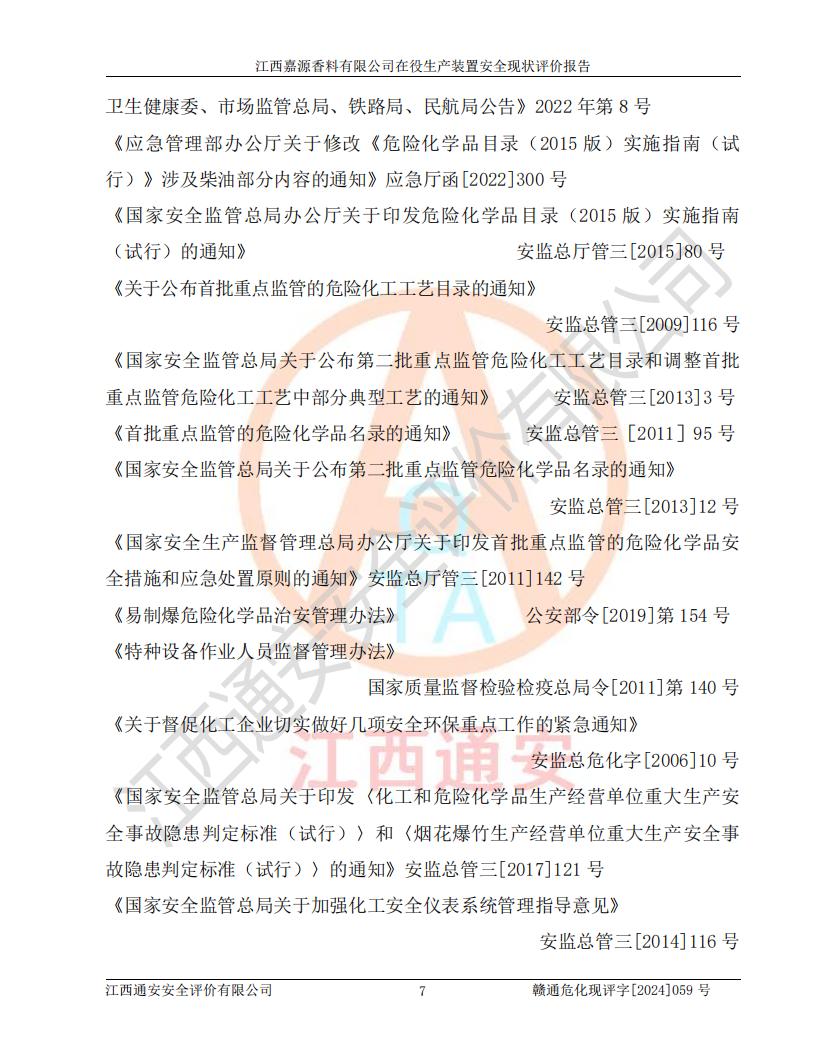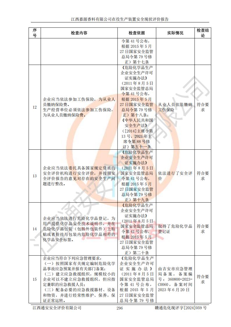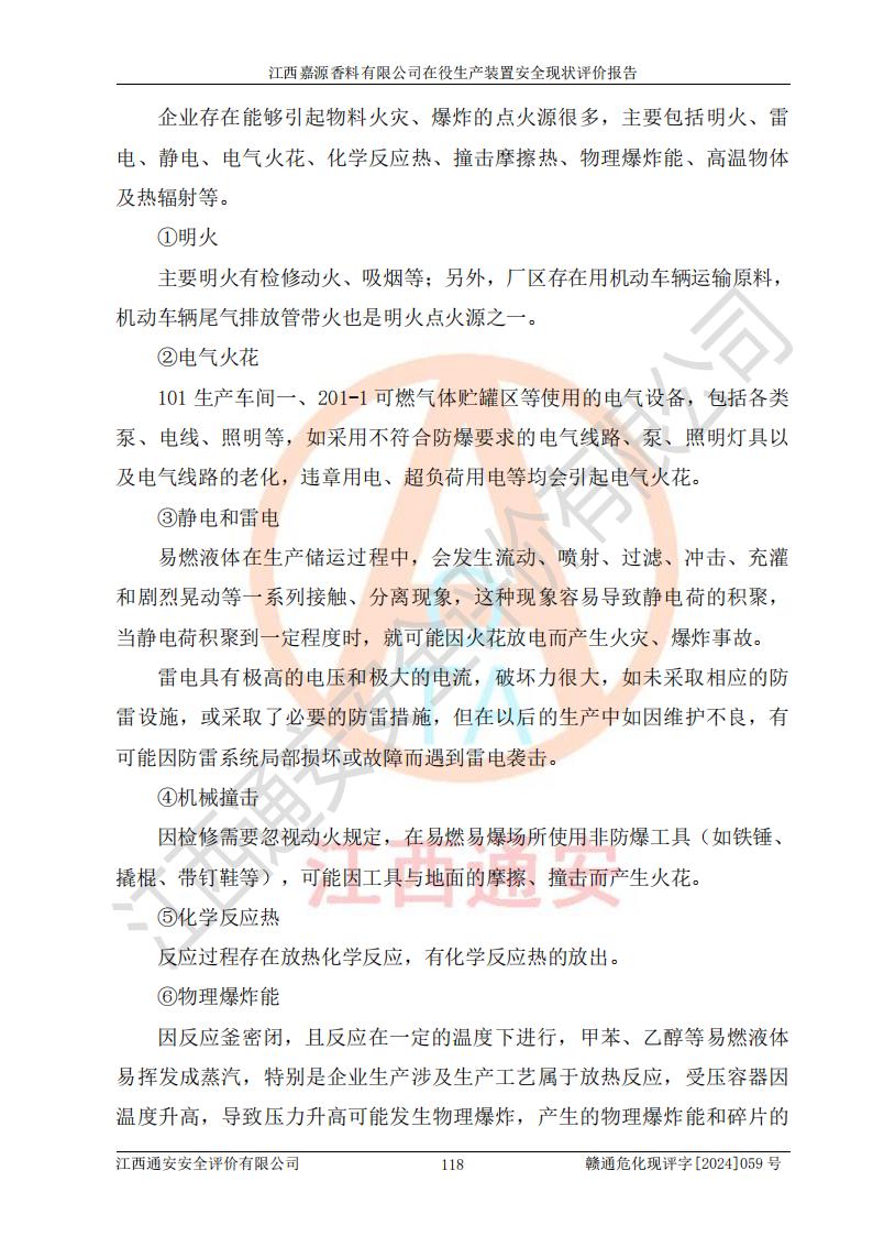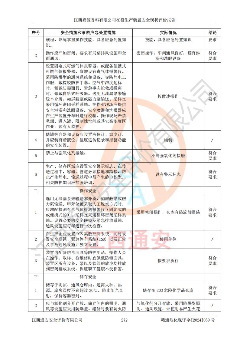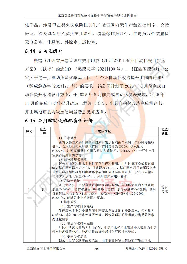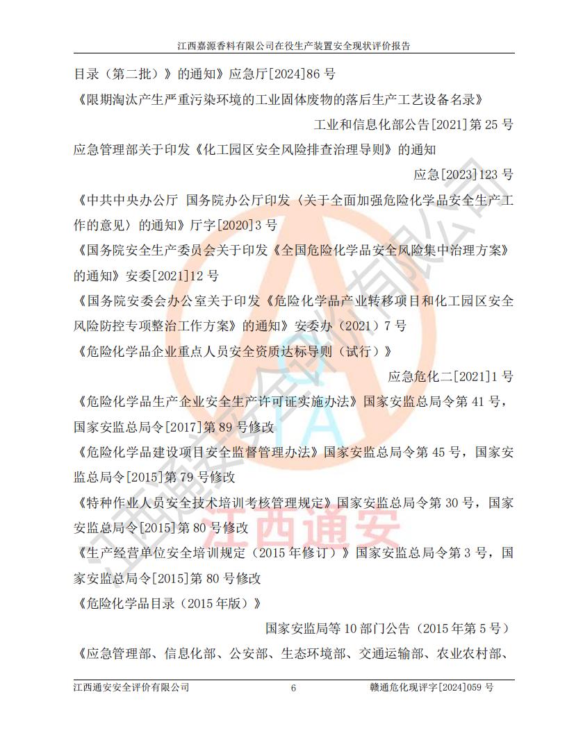 項目名稱 | 江西嘉源香料有限公司在役生產(chǎn)裝置安全現(xiàn)狀評價報告 | ||||