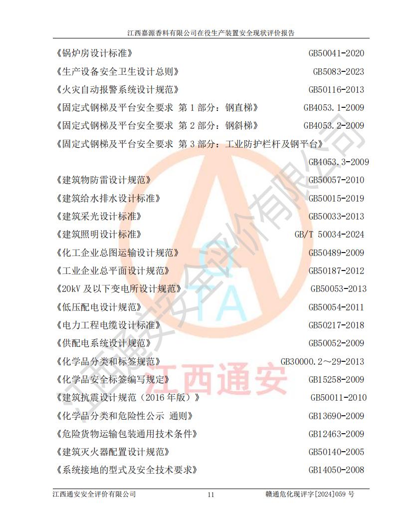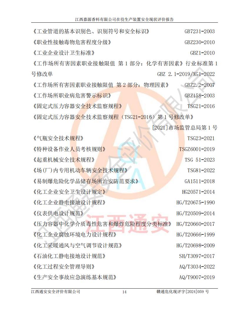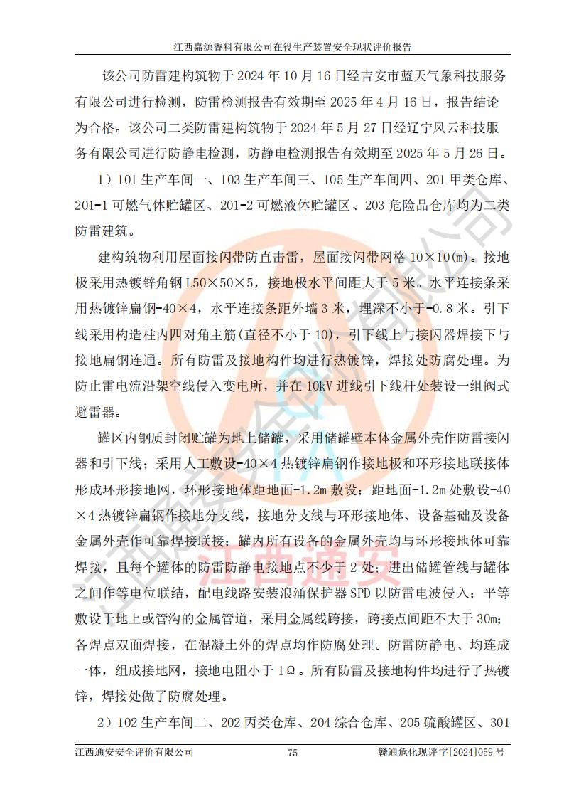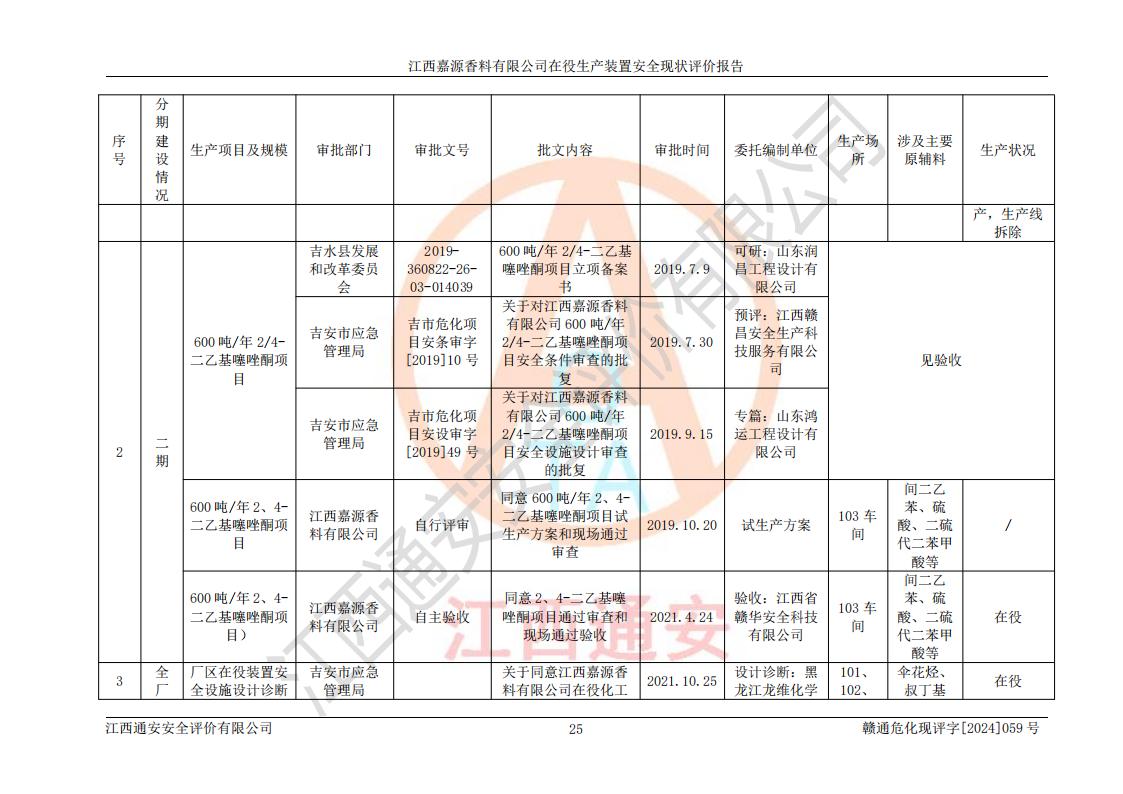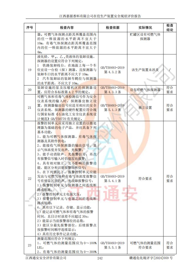 項目名稱 | 江西嘉源香料有限公司在役生產(chǎn)裝置安全現(xiàn)狀評價報告 | ||||