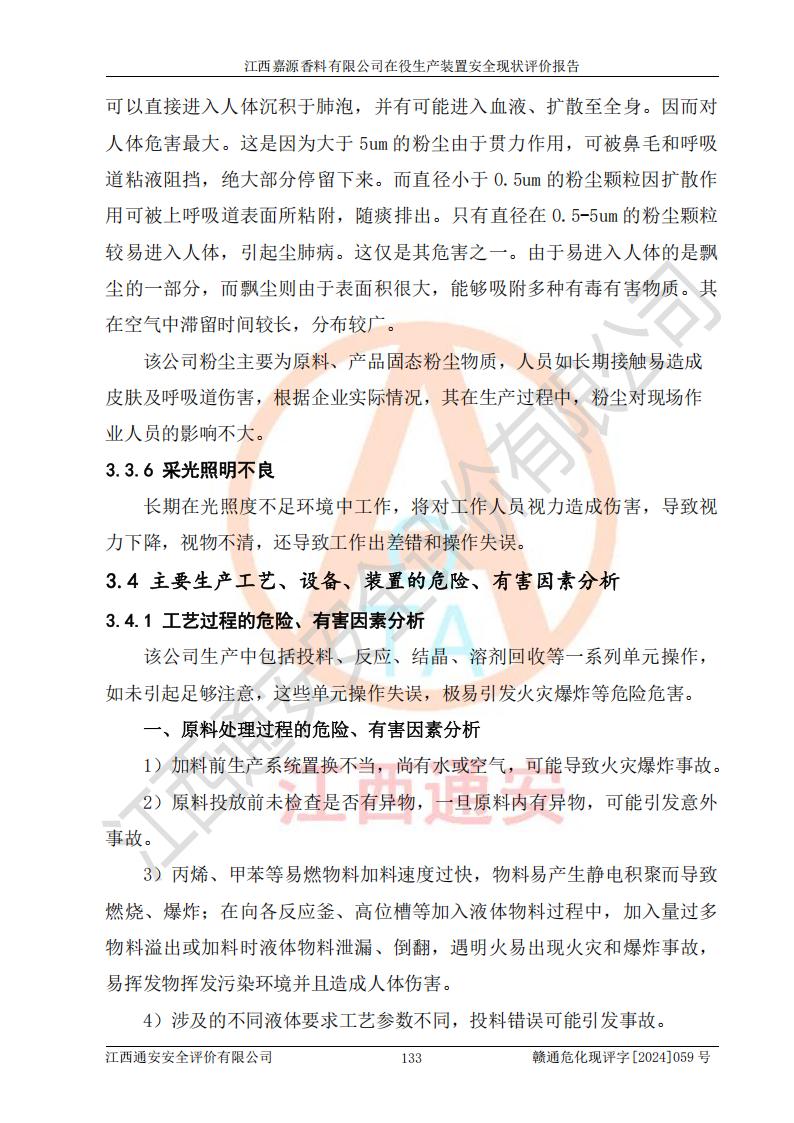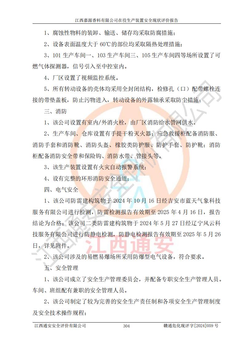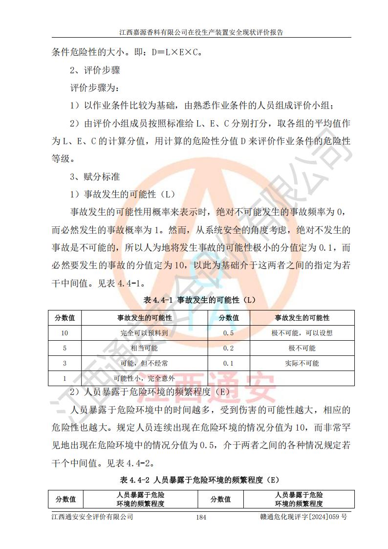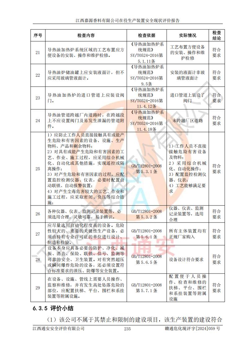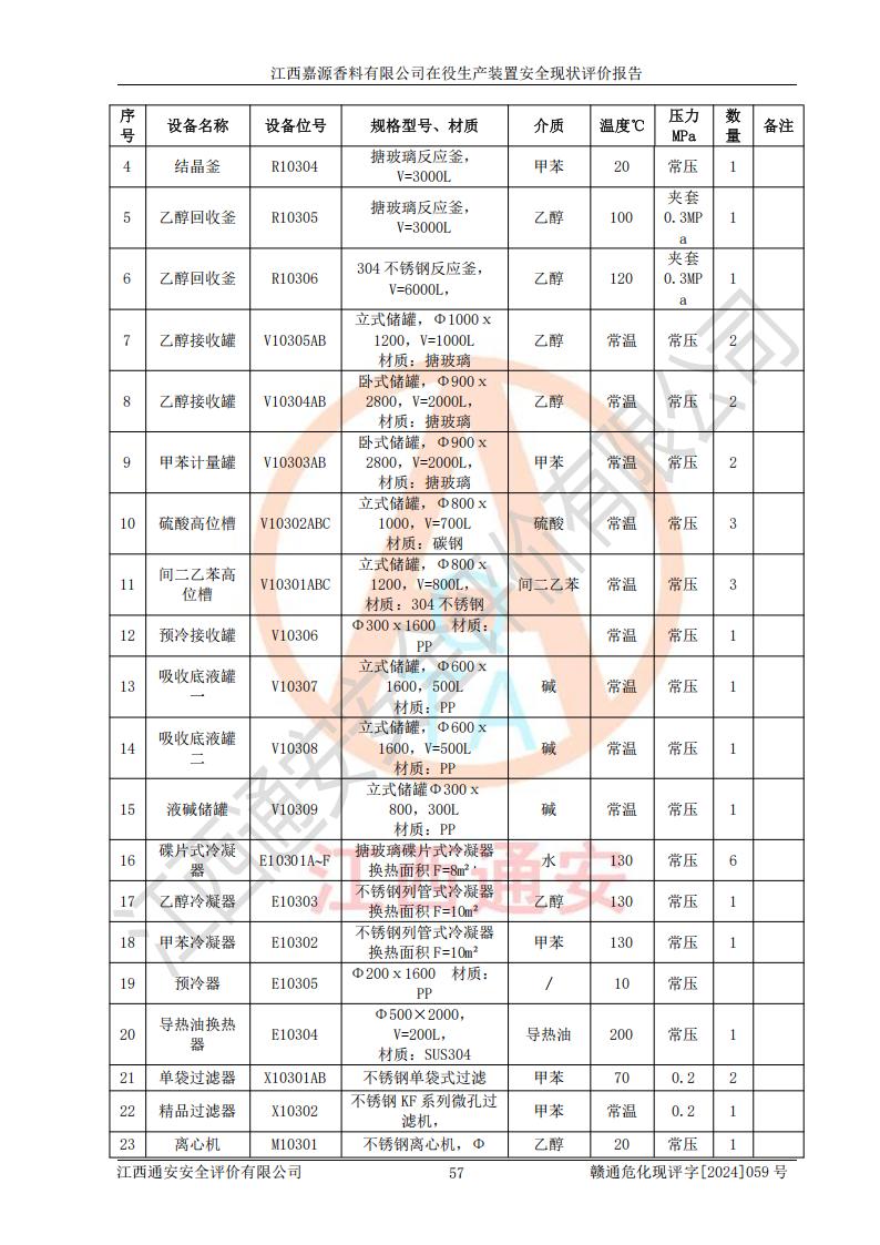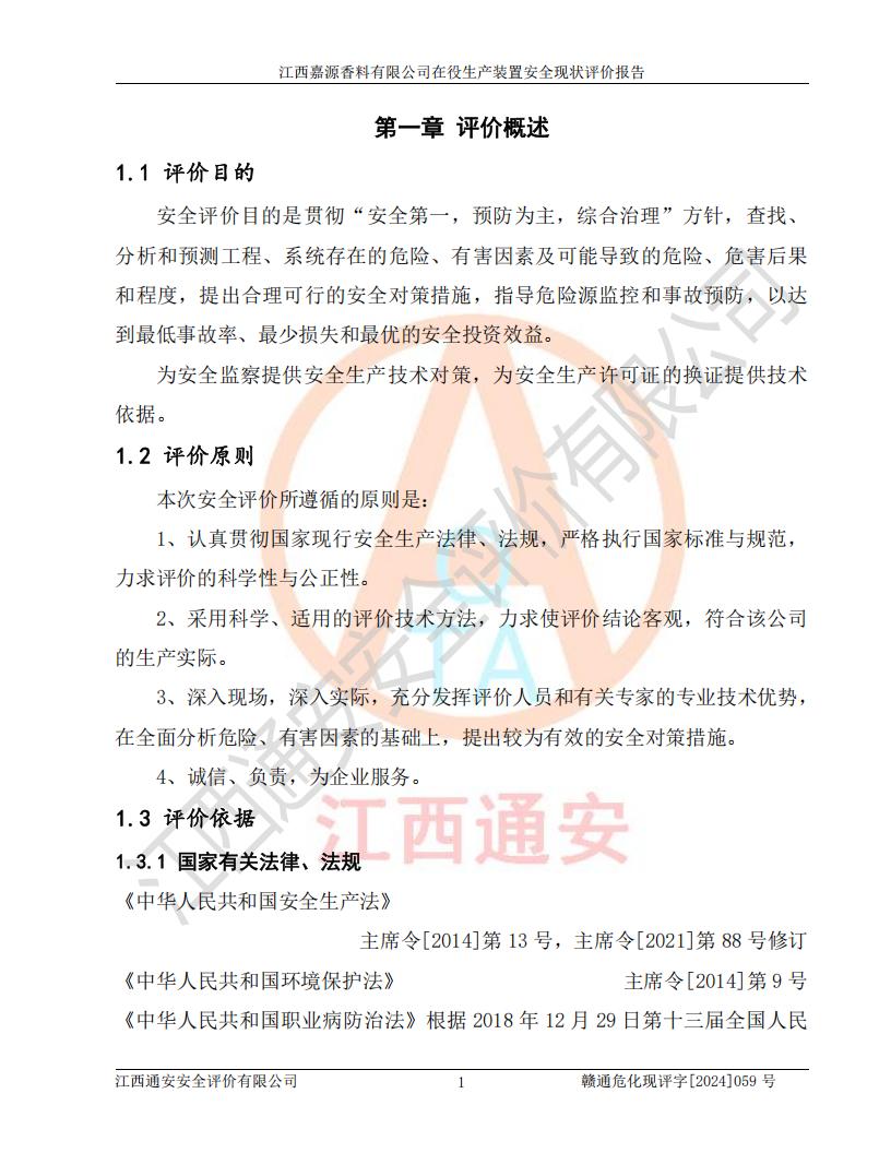 項目名稱 | 江西嘉源香料有限公司在役生產(chǎn)裝置安全現(xiàn)狀評價報告 | ||||