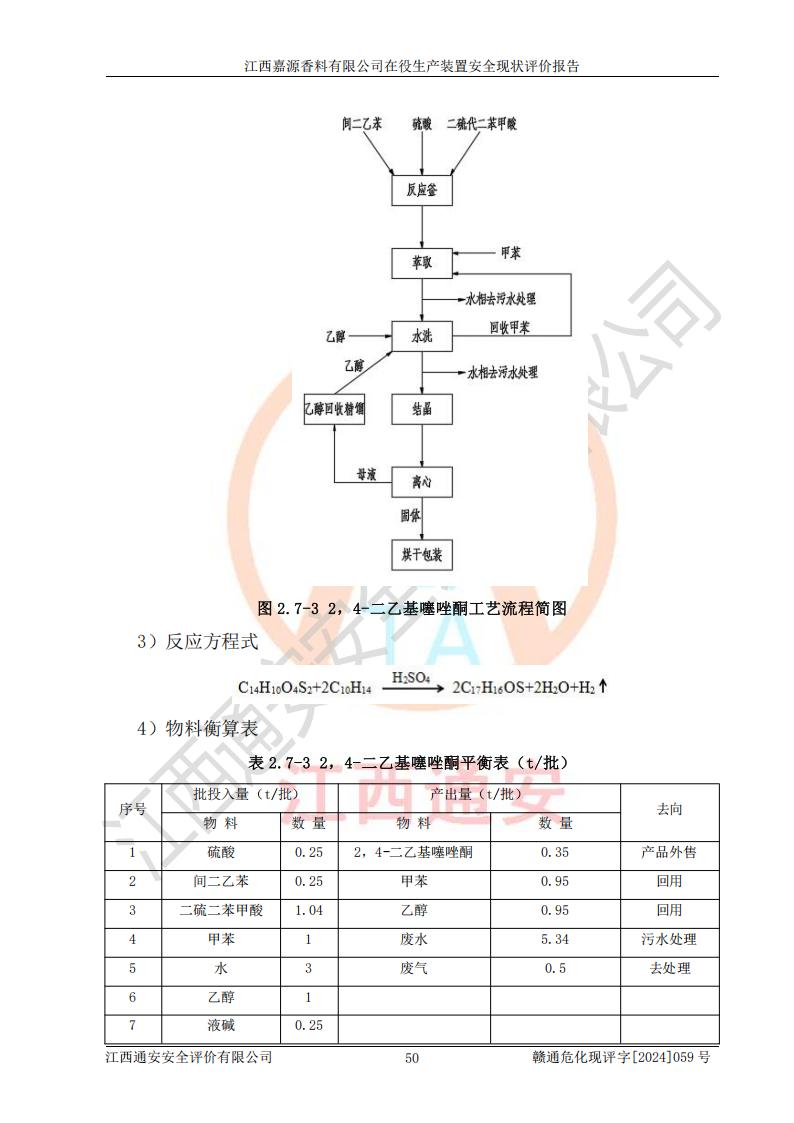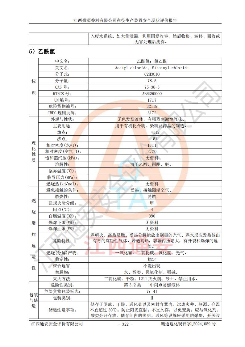 項目簡介 | 江西嘉源香料有限公司(以下簡稱“該公司”)于2011年5月11日注冊成立,注冊資本1000萬元整,屬于有限責(zé)任公司(自然人投資或控股),法定**人為胡明華,公司占地面積29214m2(43.8畝),住所位于江西省吉安市吉水縣城西工業(yè)園區(qū),2023年6月13日取得重點監(jiān)測點企業(yè)公示。該公司主要從事芳香化學(xué)品和天然香料生產(chǎn)經(jīng)營,現(xiàn)有員工72人,其中技術(shù)管理人員18人,均具有多年的化工生產(chǎn)技術(shù)和管理經(jīng)驗。 根據(jù)《危險化學(xué)品目錄》及《應(yīng)急管理部、信息化部、公安部、生態(tài)環(huán)境部、交通運輸部、農(nóng)業(yè)農(nóng)村部、衛(wèi)生健康委、市場監(jiān)管總局、鐵路局、民航局公告》(2022年第8號)的規(guī)定,該公司涉及的化學(xué)原輔料中α-蒎烯、異丙基氯、丙烯、叔丁基氯、乙酰氯、乙醇、二氯甲烷、二氯乙烷、傘花烴、鹽酸、三氯化鋁、氫氧化鈉、硫酸、間二乙苯、甲苯、氮氣(壓縮的)、天然氣(燃料)、柴油(燃料)、氫氣(尾氣)、氯化氫(尾氣)、產(chǎn)品羅勒烯、副產(chǎn)品雙戊烯、別羅勒烯、中間產(chǎn)物2,3-二甲基-1-丁烯、2,3-二甲基-1-氯丁烷屬于危險化學(xué)品。 該公司涉及的丙烯、甲苯、氫氣(尾氣)、天然氣(燃料)屬于重點監(jiān)管的危險化學(xué)品;生產(chǎn)過程未涉及重點監(jiān)管的危險化工工藝;涉及的生產(chǎn)單元和儲存單元均未構(gòu)成危險化學(xué)品重大危險源。 | ||||