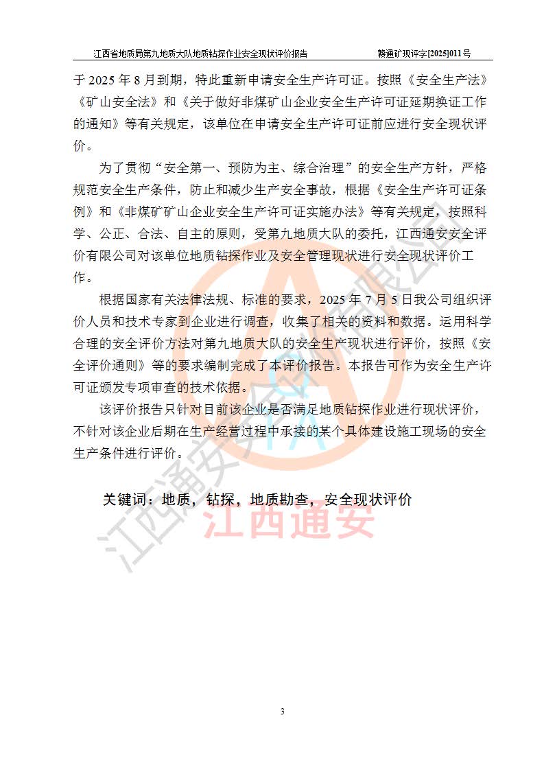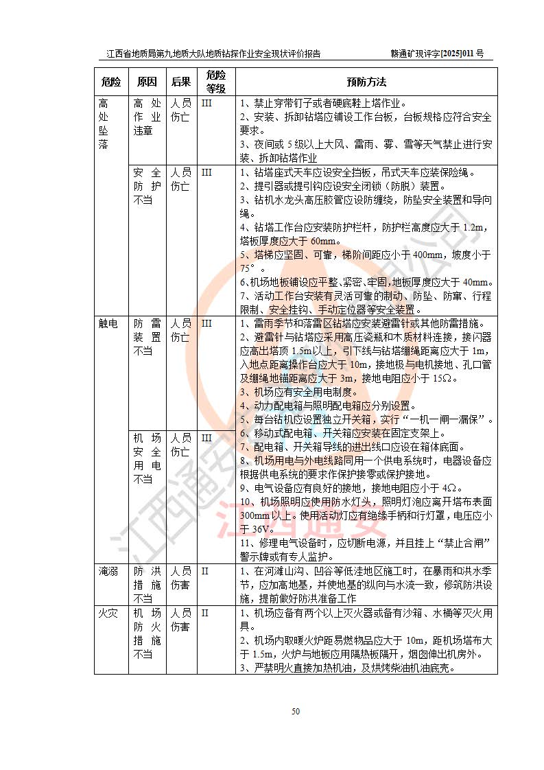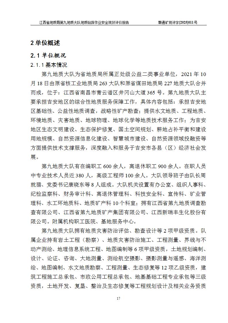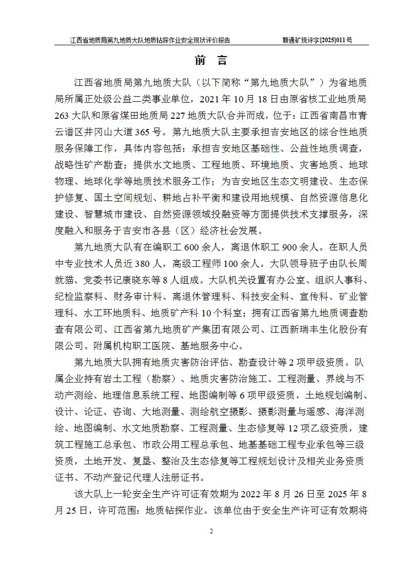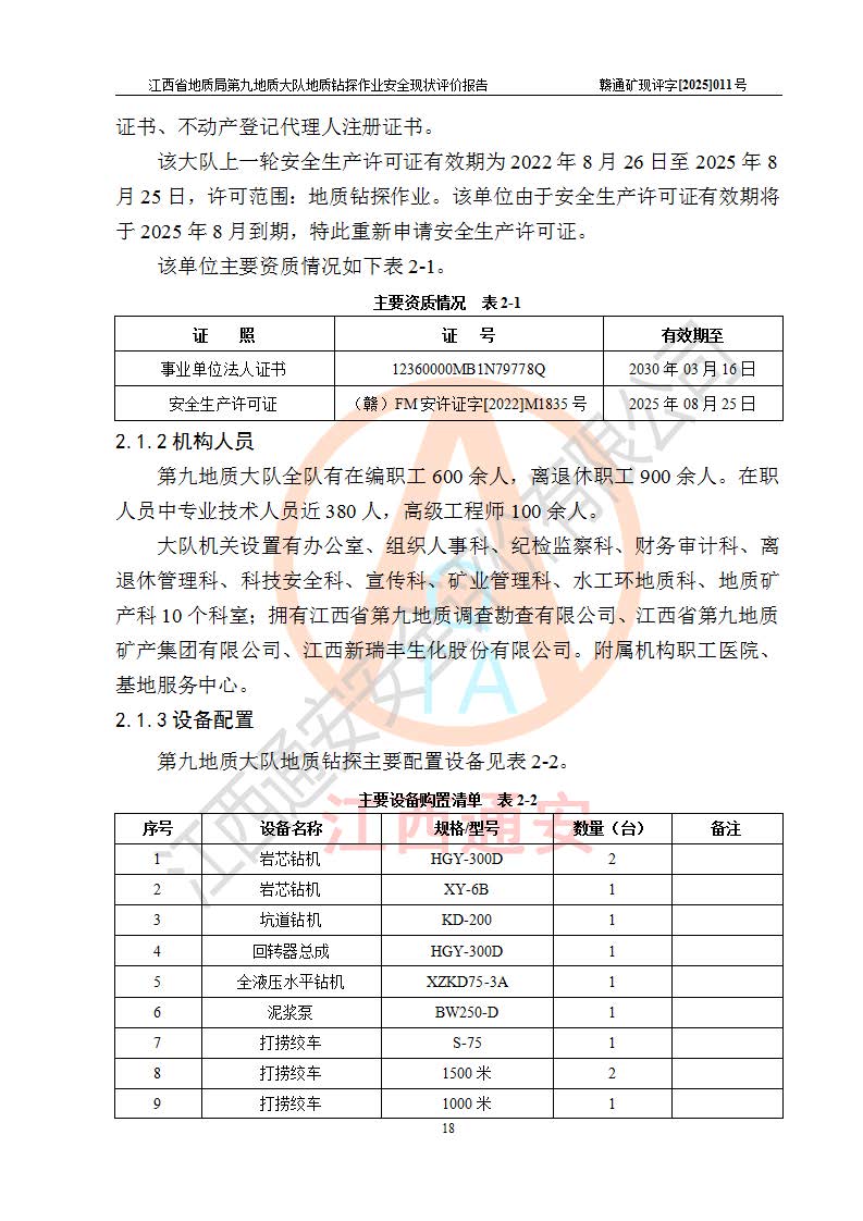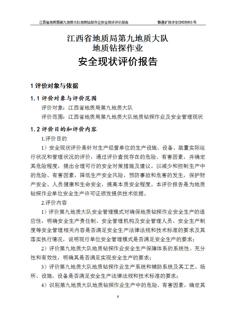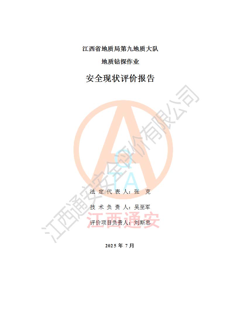 報告名稱 | 江西省地質(zhì)局第九地質(zhì)大隊地質(zhì)鉆探作業(yè)安全現(xiàn)狀評價報告 | |||||