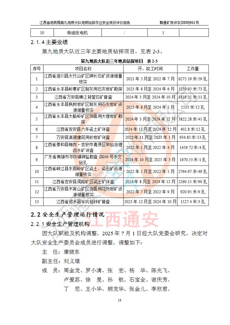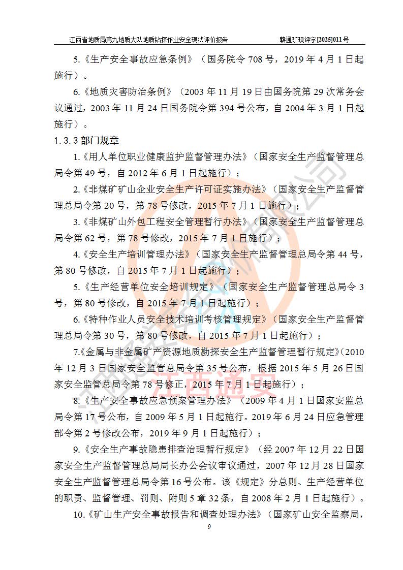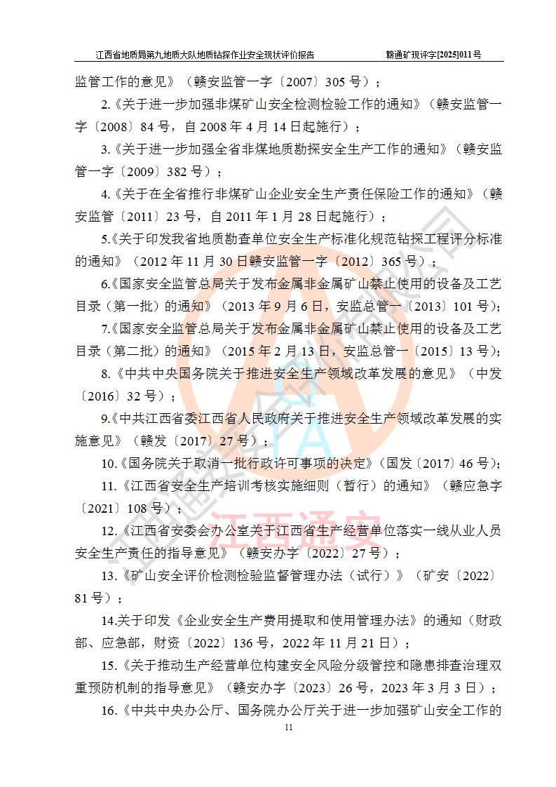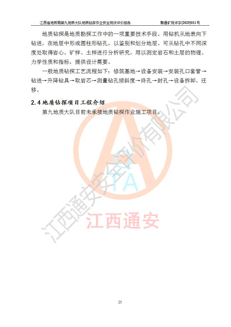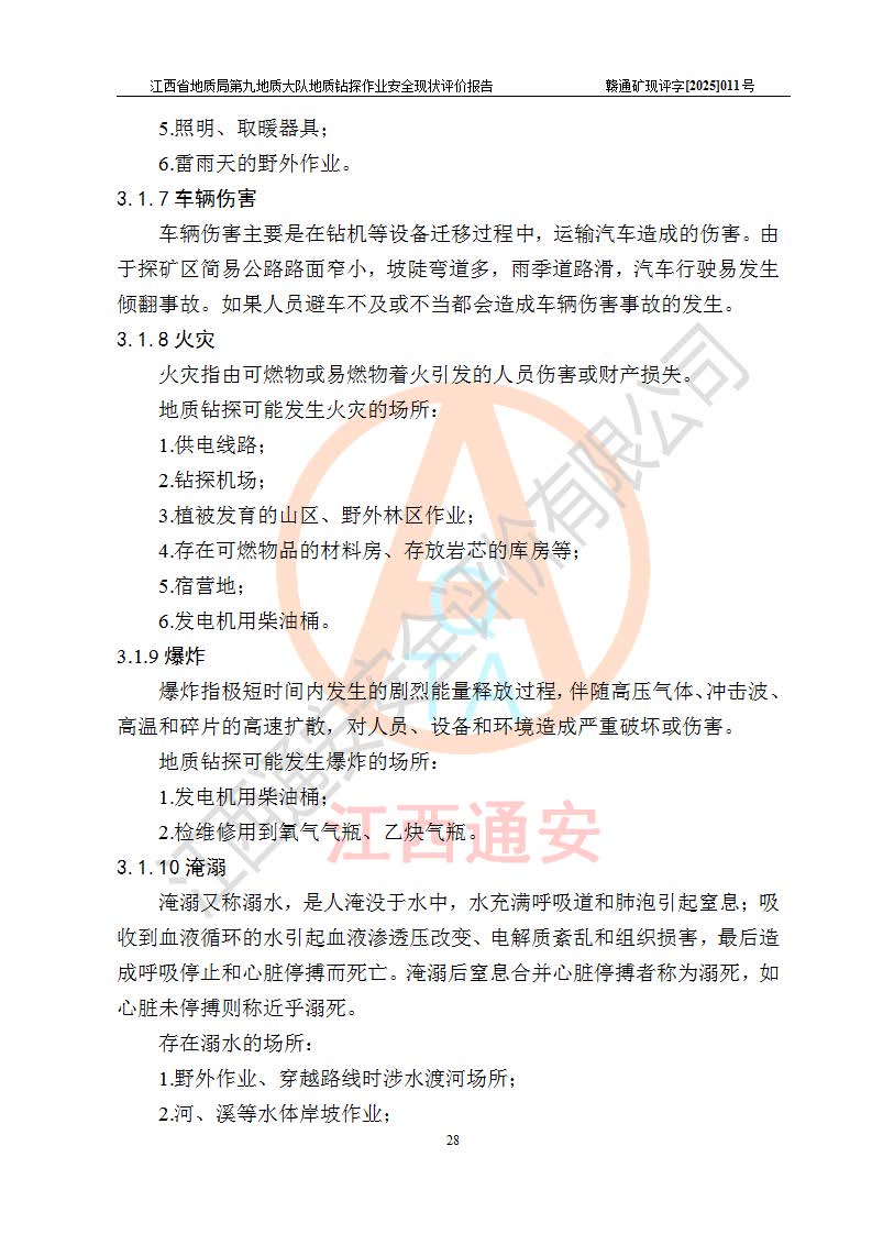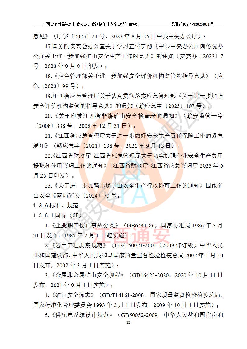 報告名稱 | 江西省地質(zhì)局第九地質(zhì)大隊地質(zhì)鉆探作業(yè)安全現(xiàn)狀評價報告 | |||||
