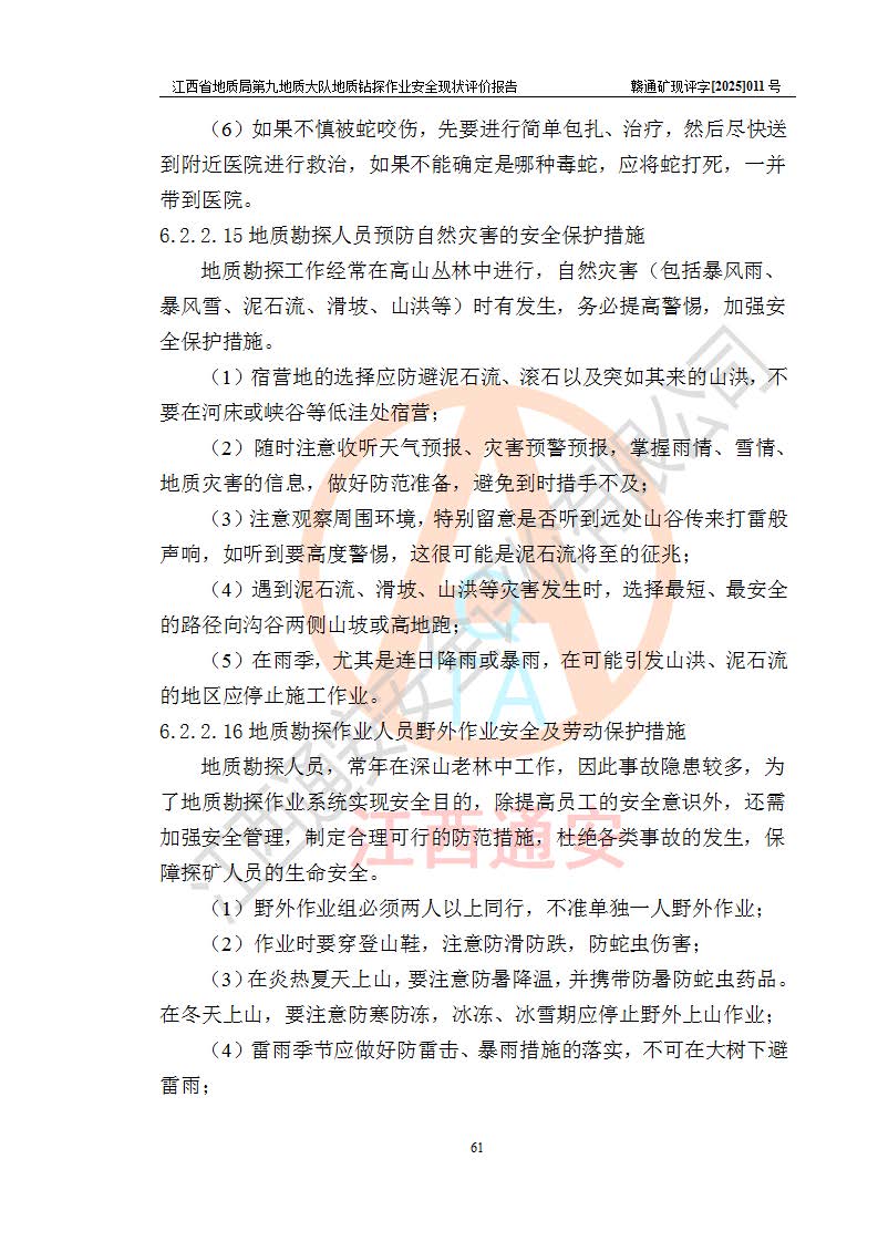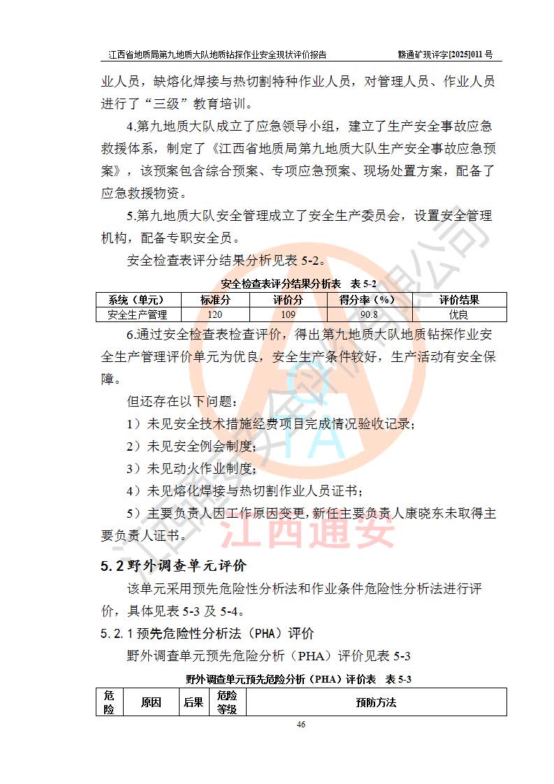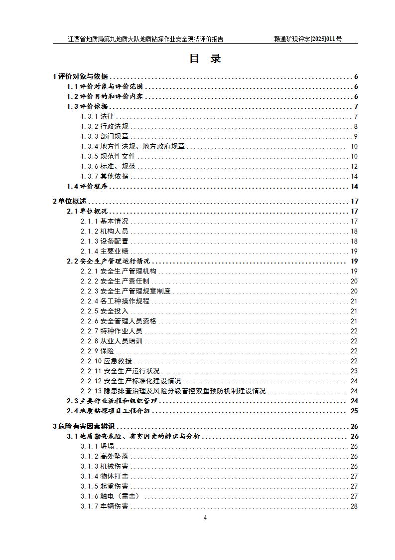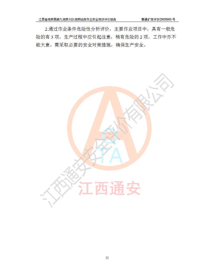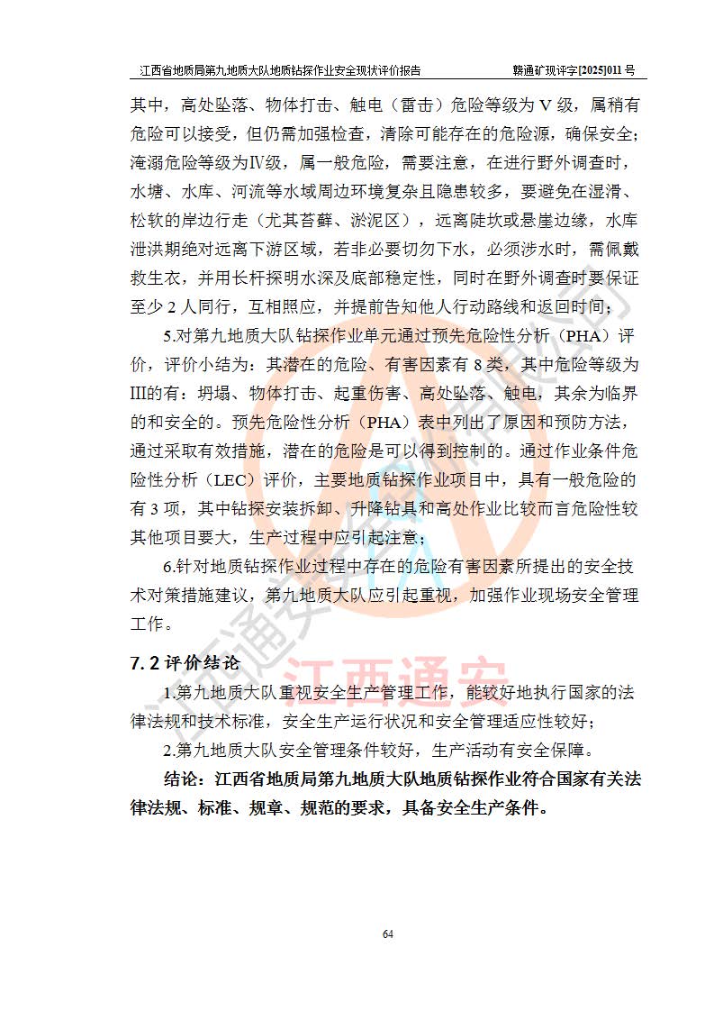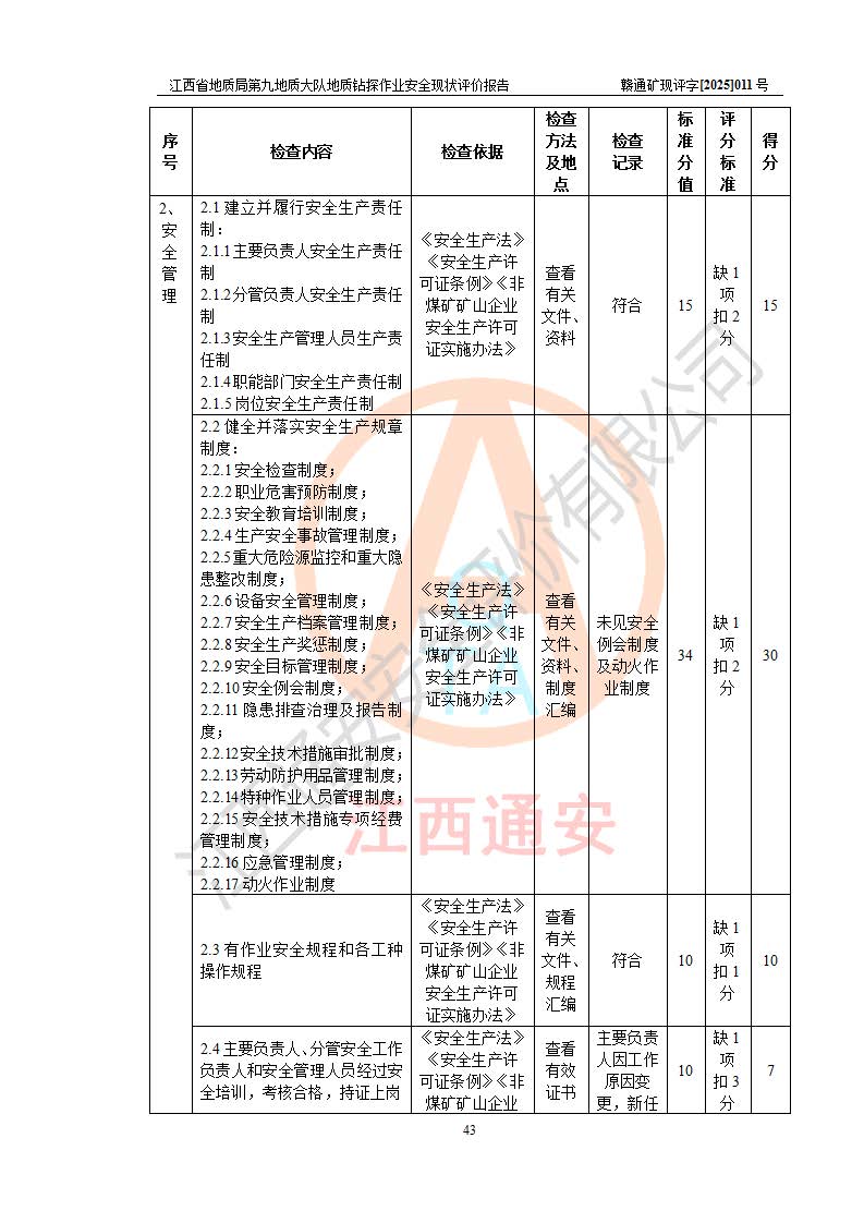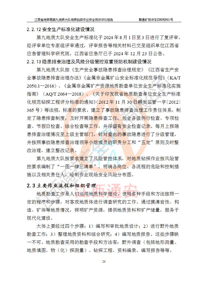 報告名稱 | 江西省地質(zhì)局第九地質(zhì)大隊地質(zhì)鉆探作業(yè)安全現(xiàn)狀評價報告 | |||||