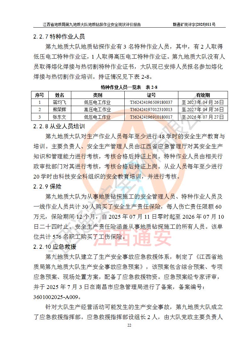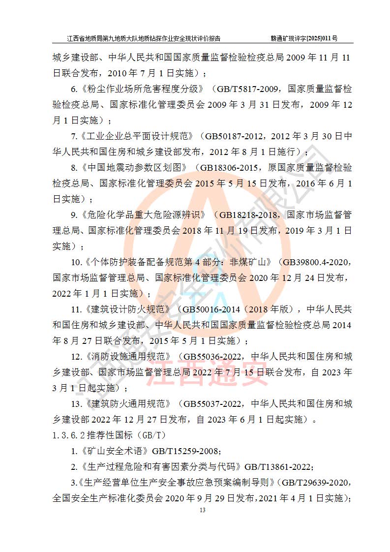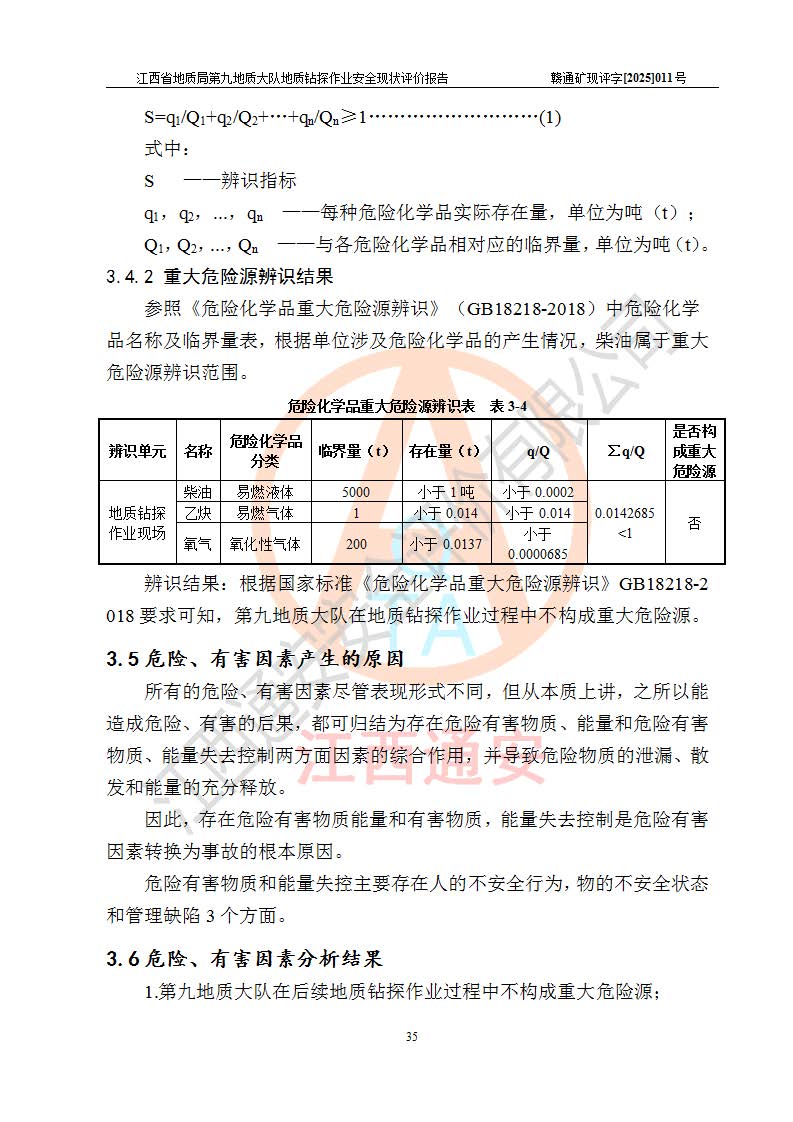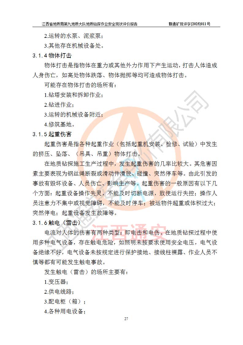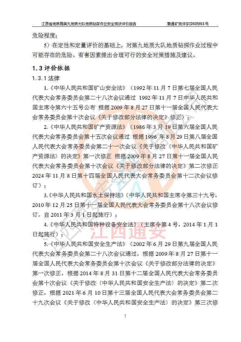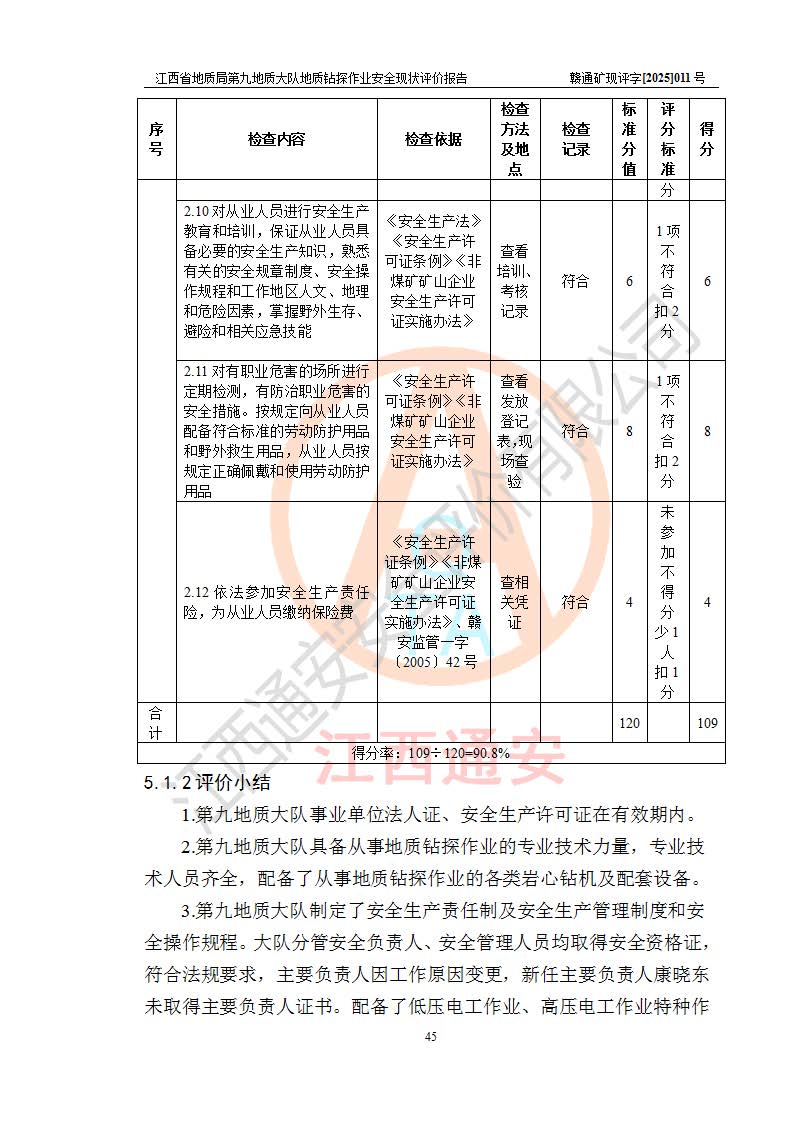 報告名稱 | 江西省地質(zhì)局第九地質(zhì)大隊地質(zhì)鉆探作業(yè)安全現(xiàn)狀評價報告 | |||||