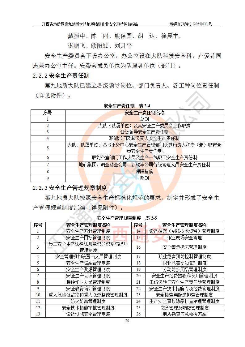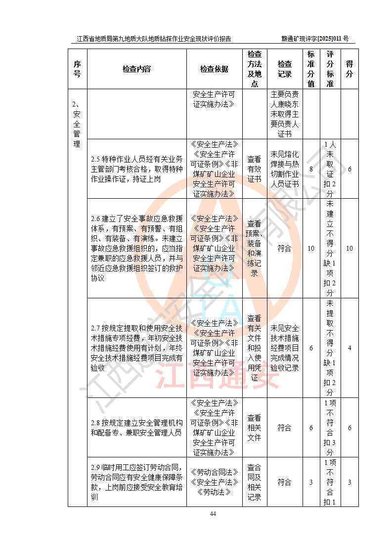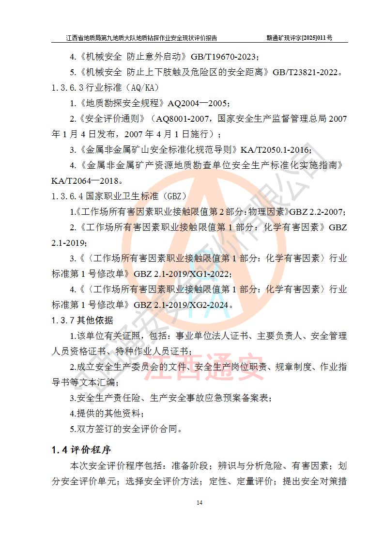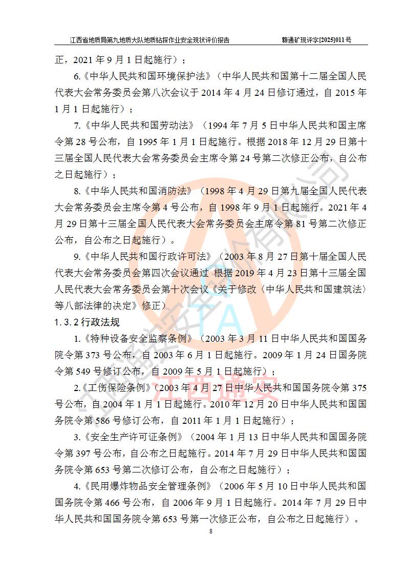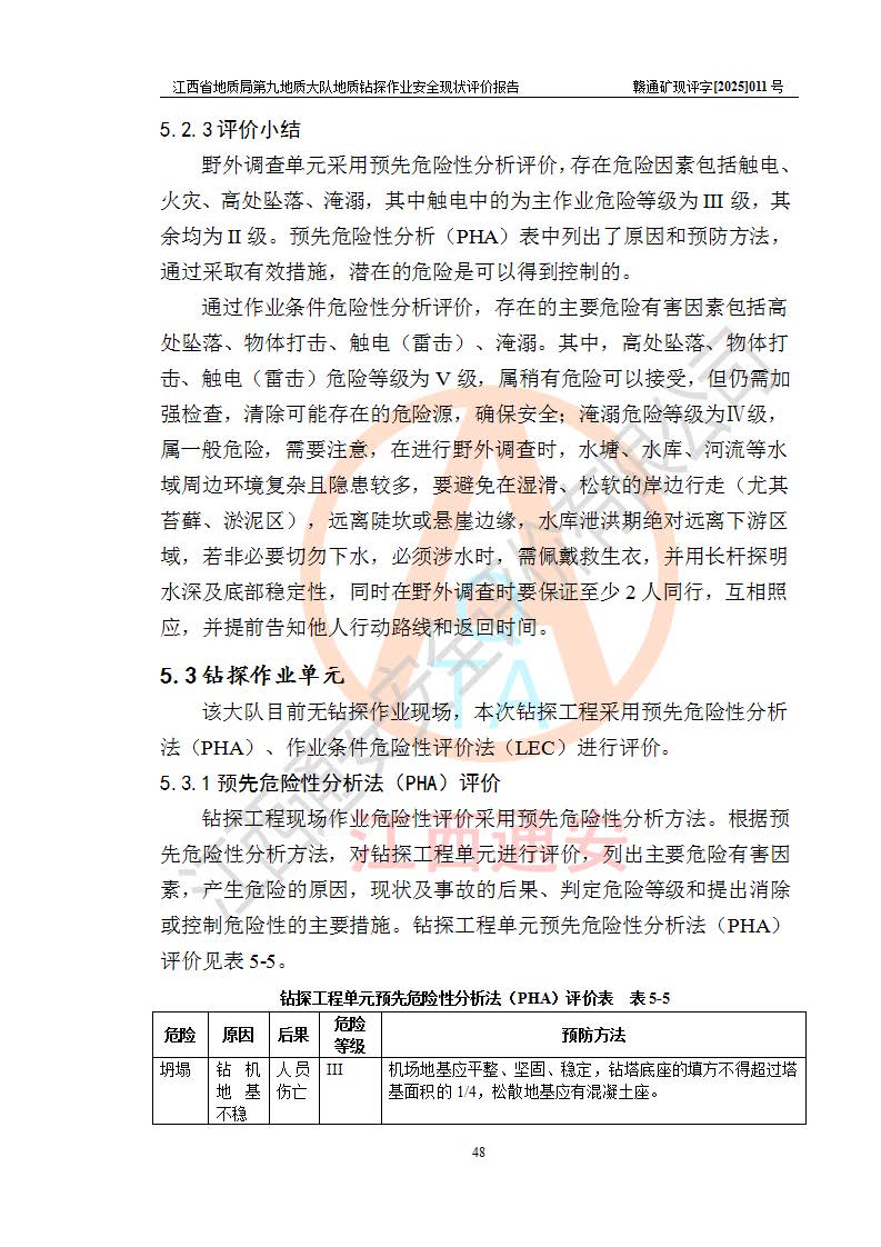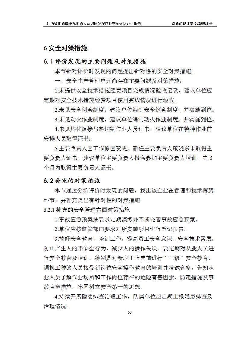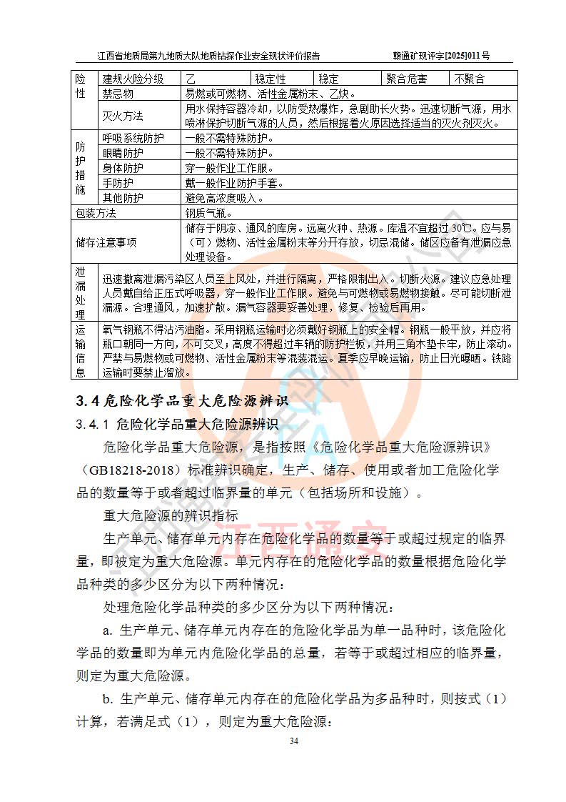 報告名稱 | 江西省地質(zhì)局第九地質(zhì)大隊地質(zhì)鉆探作業(yè)安全現(xiàn)狀評價報告 | |||||