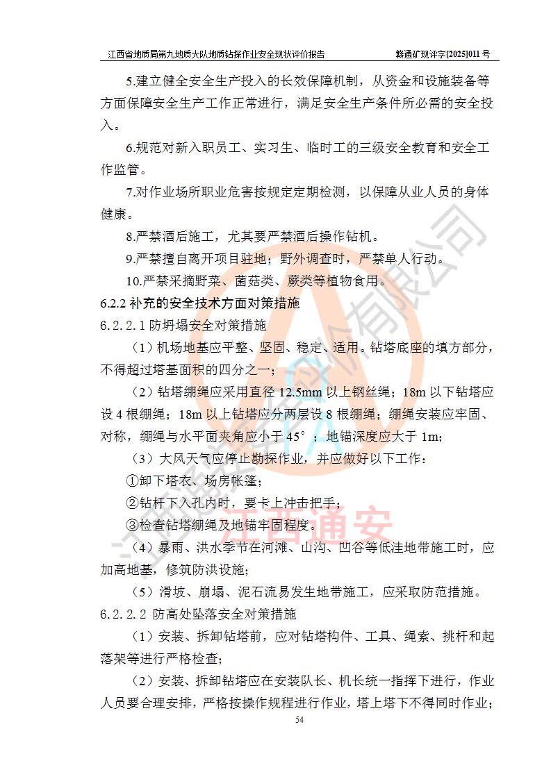 勘察現(xiàn)場發(fā)現(xiàn)的問題及安全對策措施 | 江西省地質(zhì)局第九地質(zhì)大隊目前未承接地質(zhì)鉆探作業(yè)施工項目。 | |||||