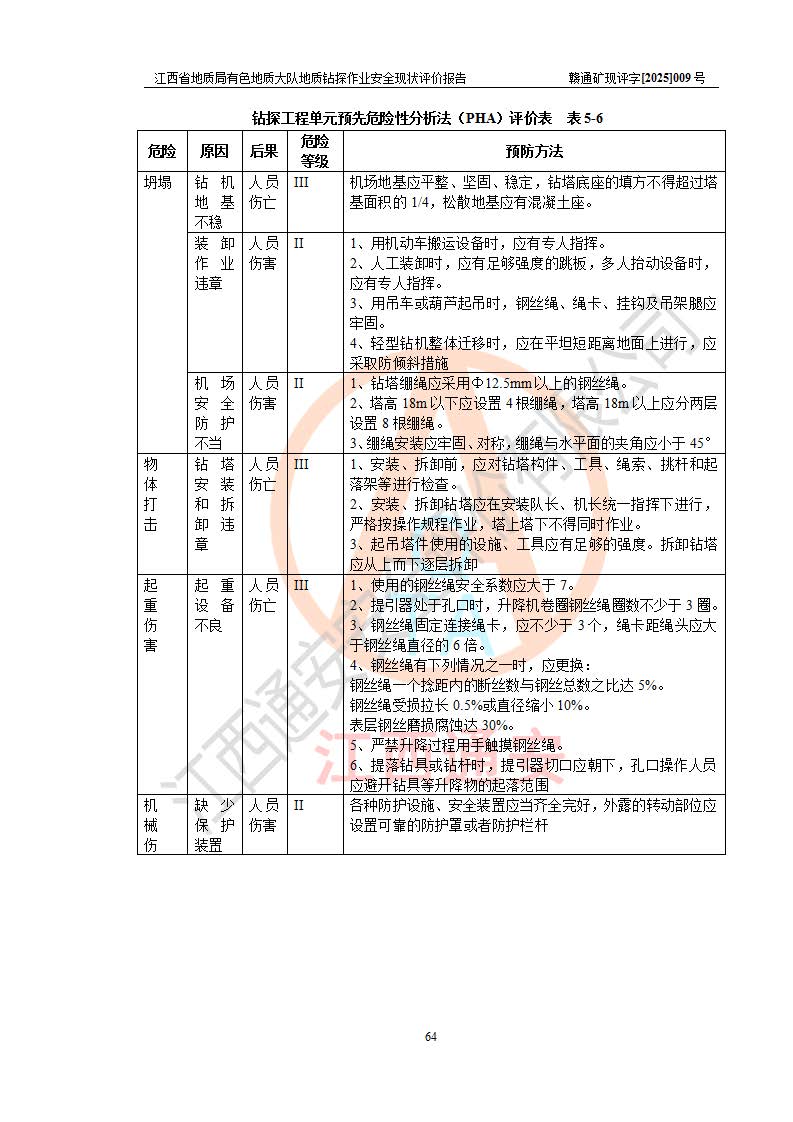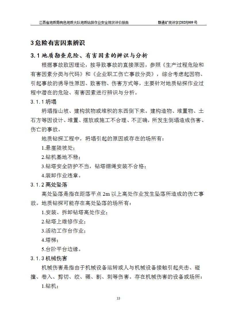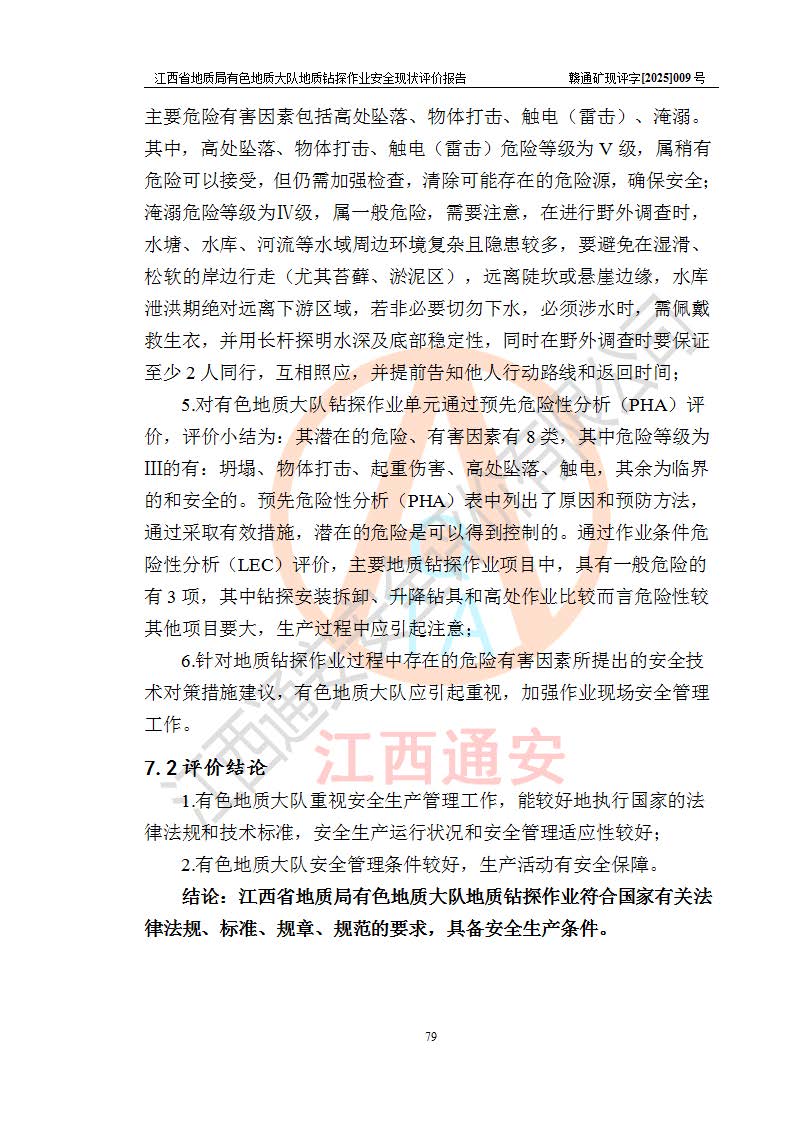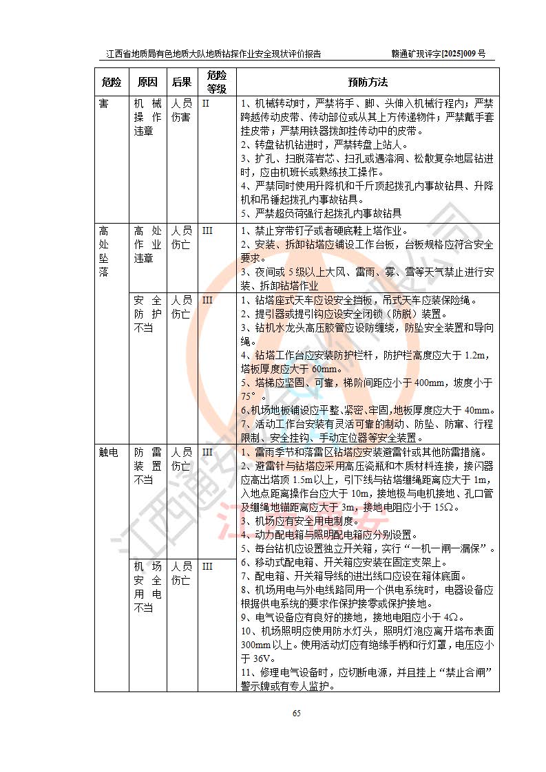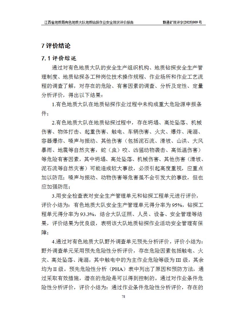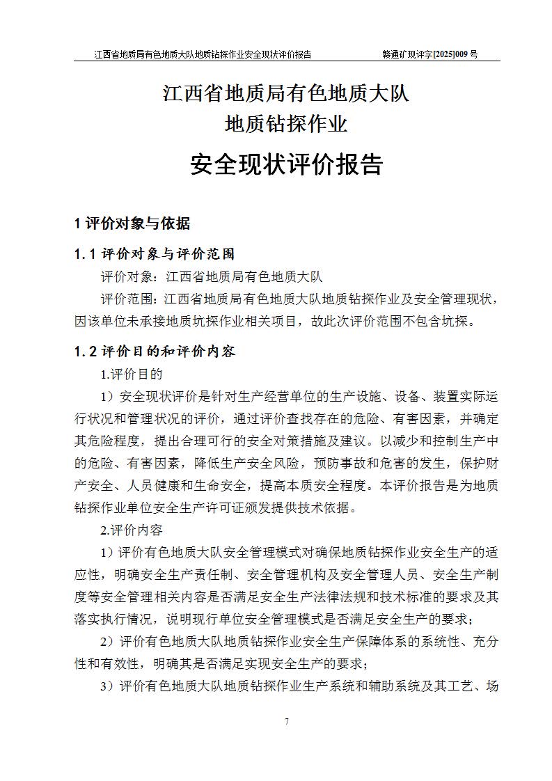 報(bào)告名稱 | 江西省地質(zhì)局有色地質(zhì)大隊(duì)地質(zhì)鉆探作業(yè)安全現(xiàn)狀評(píng)價(jià)報(bào)告 | |||||