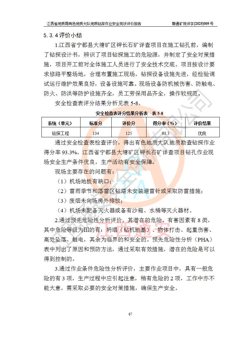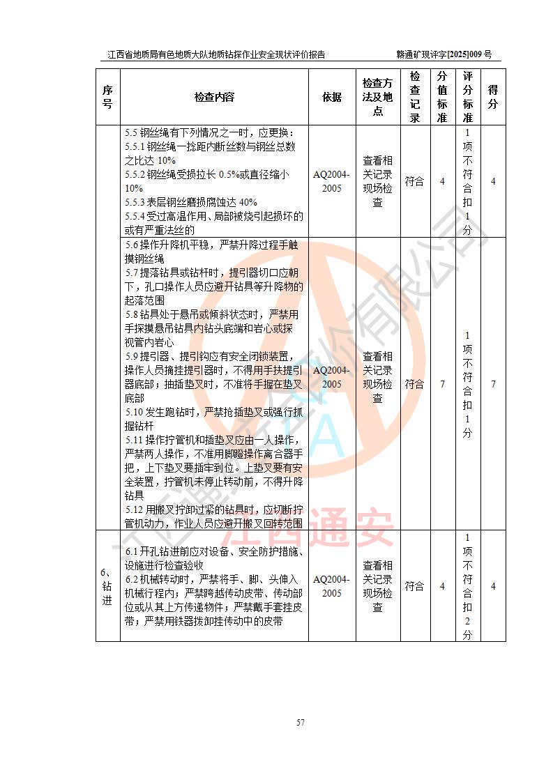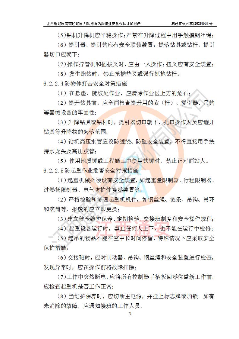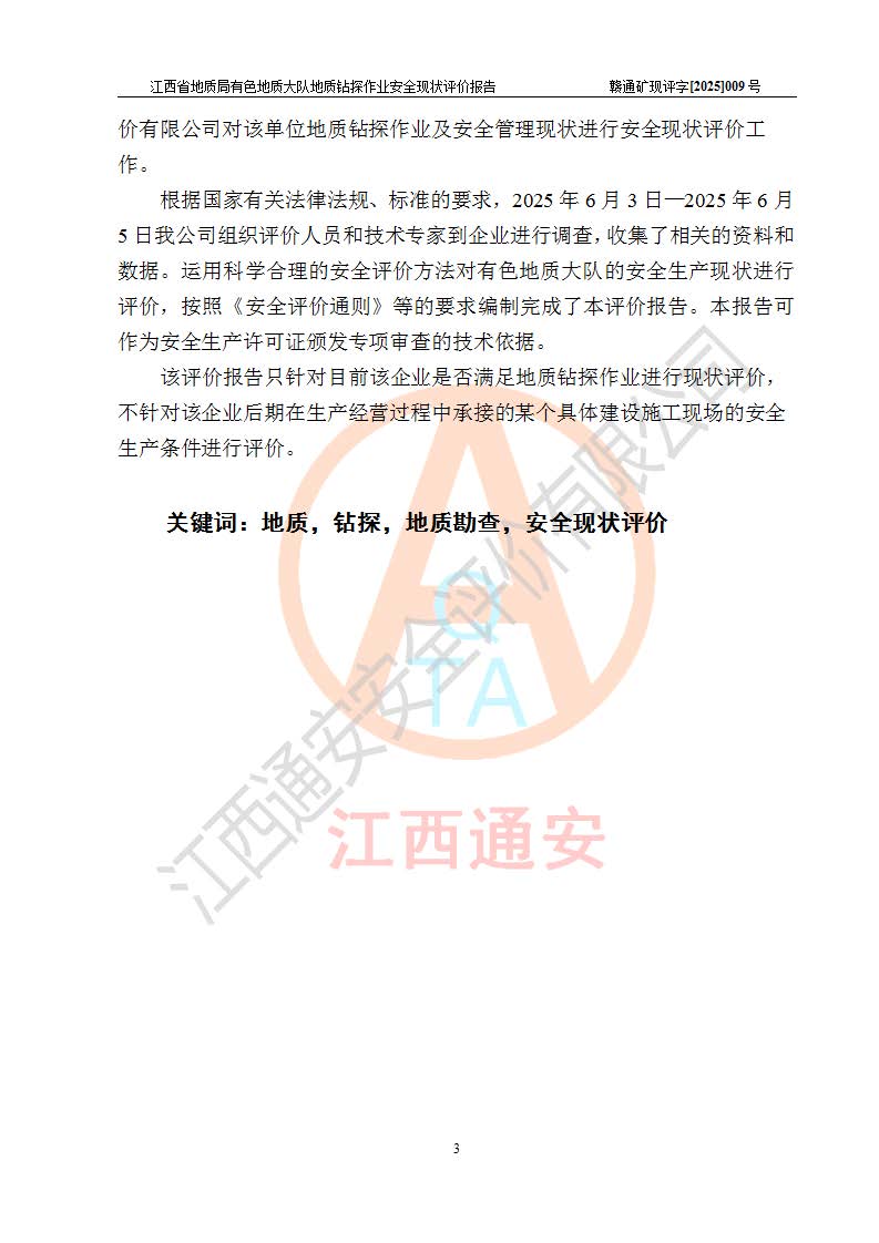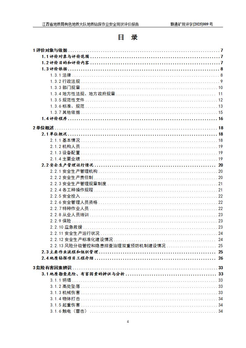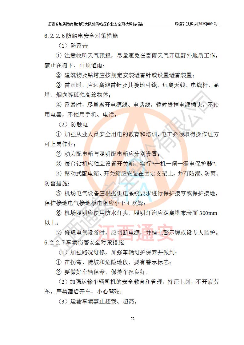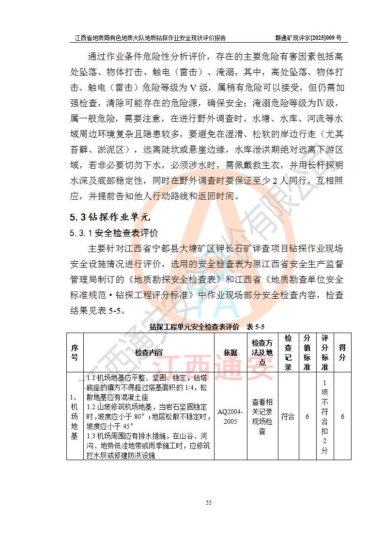 報(bào)告名稱 | 江西省地質(zhì)局有色地質(zhì)大隊(duì)地質(zhì)鉆探作業(yè)安全現(xiàn)狀評(píng)價(jià)報(bào)告 | |||||