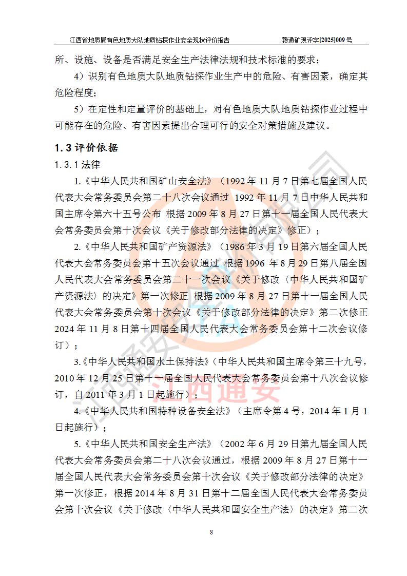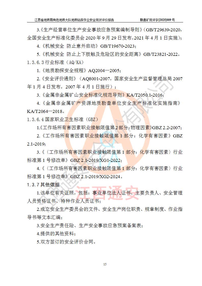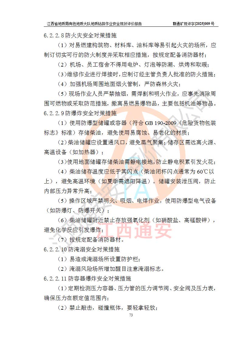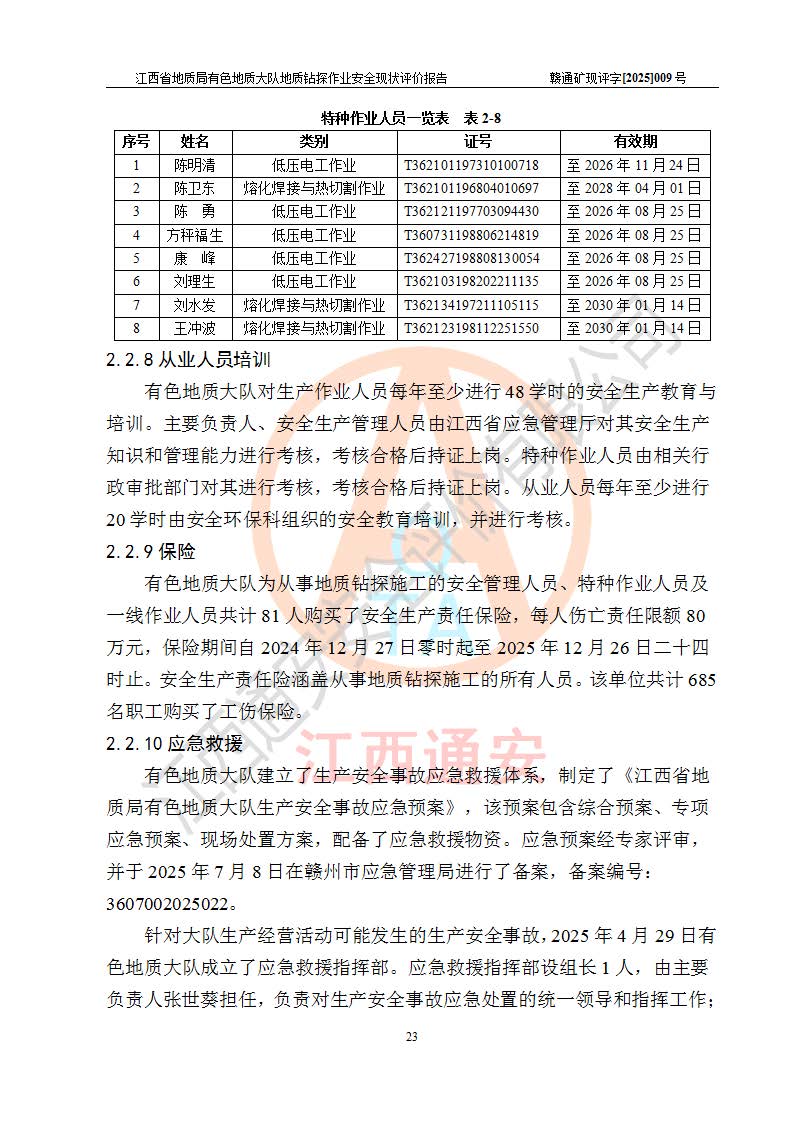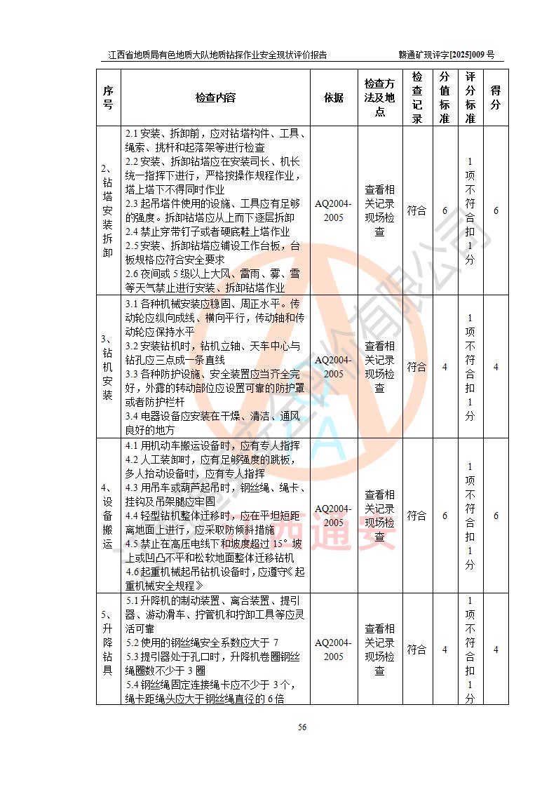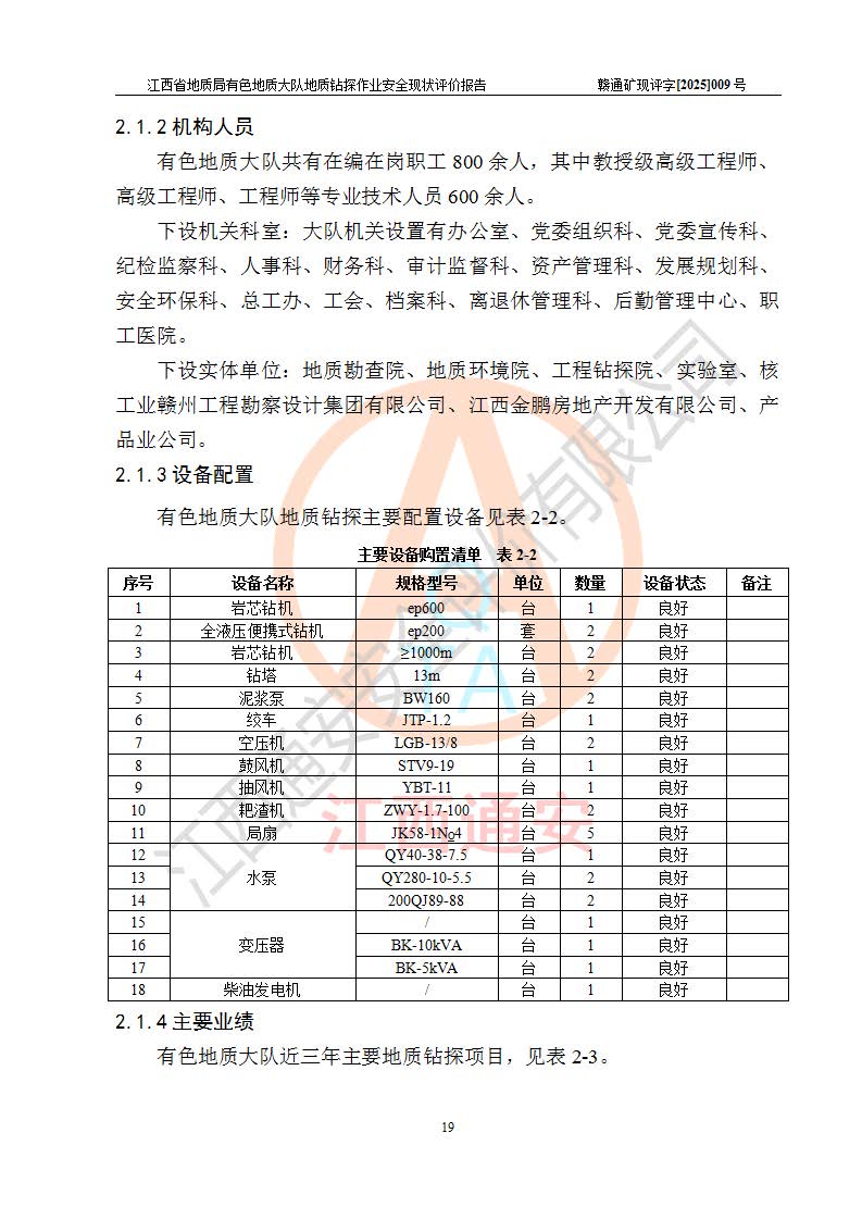 報(bào)告名稱 | 江西省地質(zhì)局有色地質(zhì)大隊(duì)地質(zhì)鉆探作業(yè)安全現(xiàn)狀評(píng)價(jià)報(bào)告 | |||||