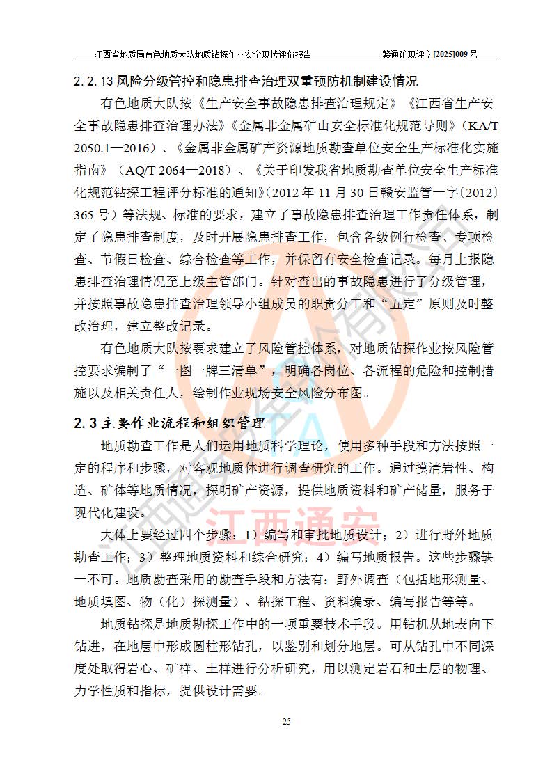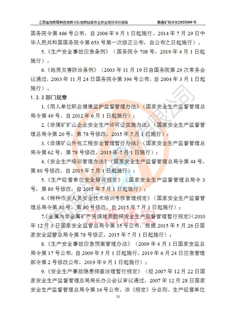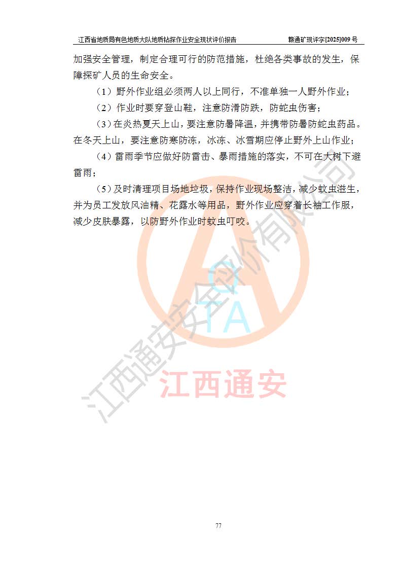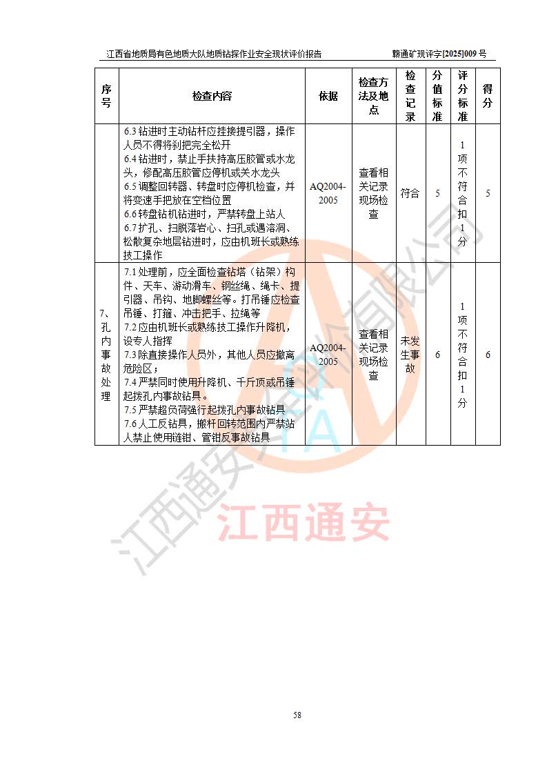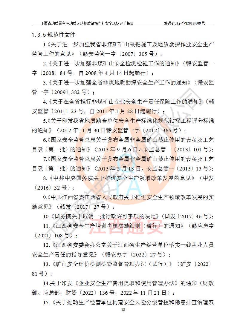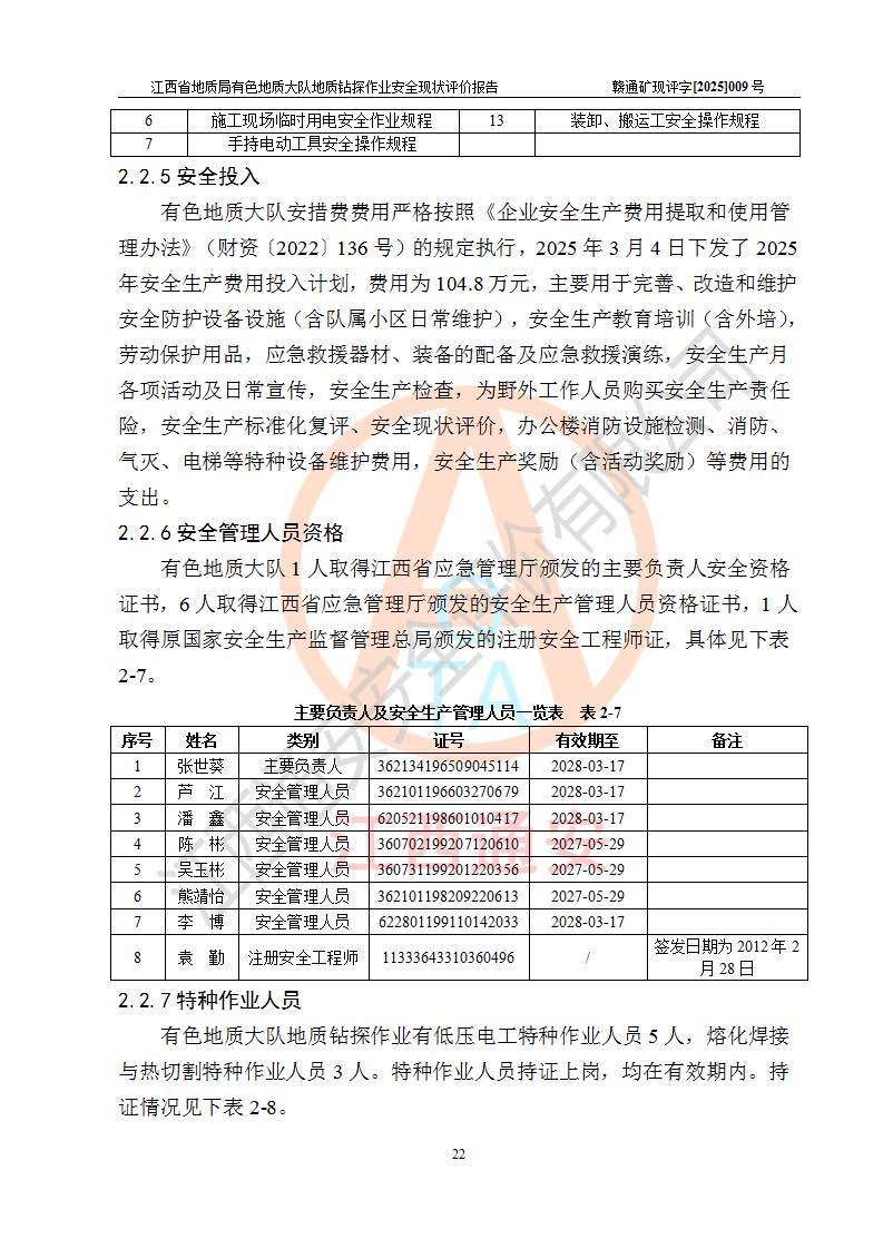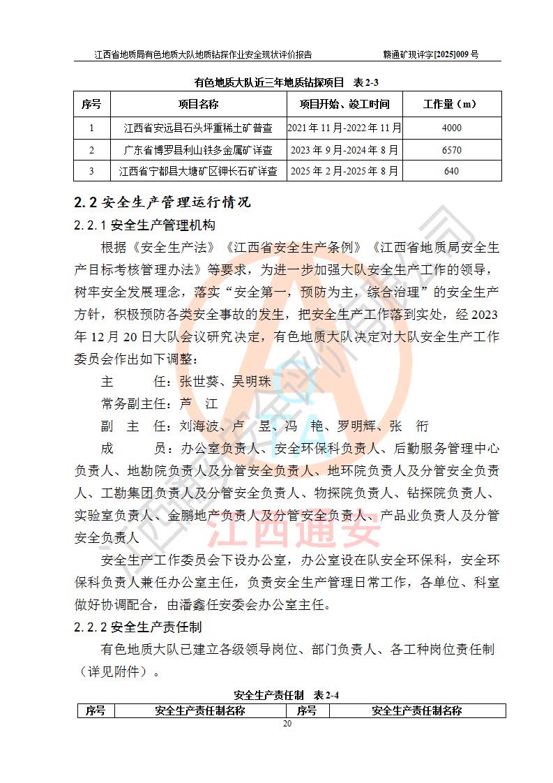 報(bào)告名稱 | 江西省地質(zhì)局有色地質(zhì)大隊(duì)地質(zhì)鉆探作業(yè)安全現(xiàn)狀評(píng)價(jià)報(bào)告 | |||||