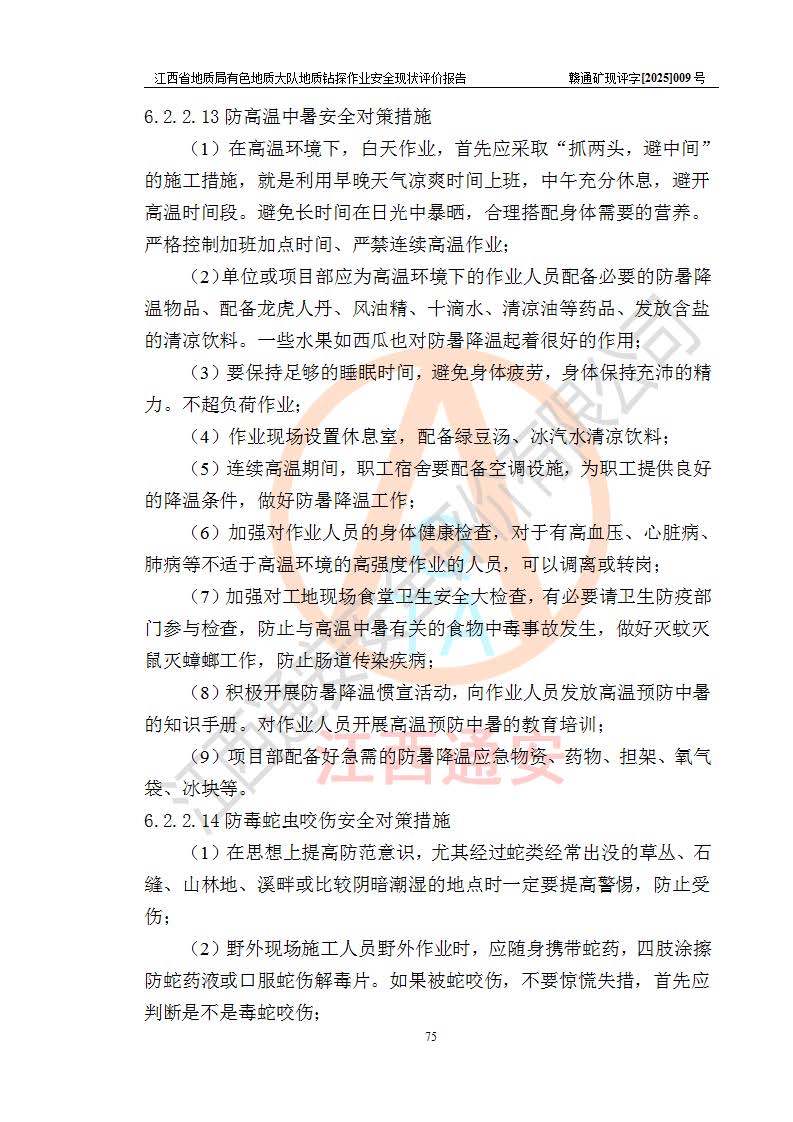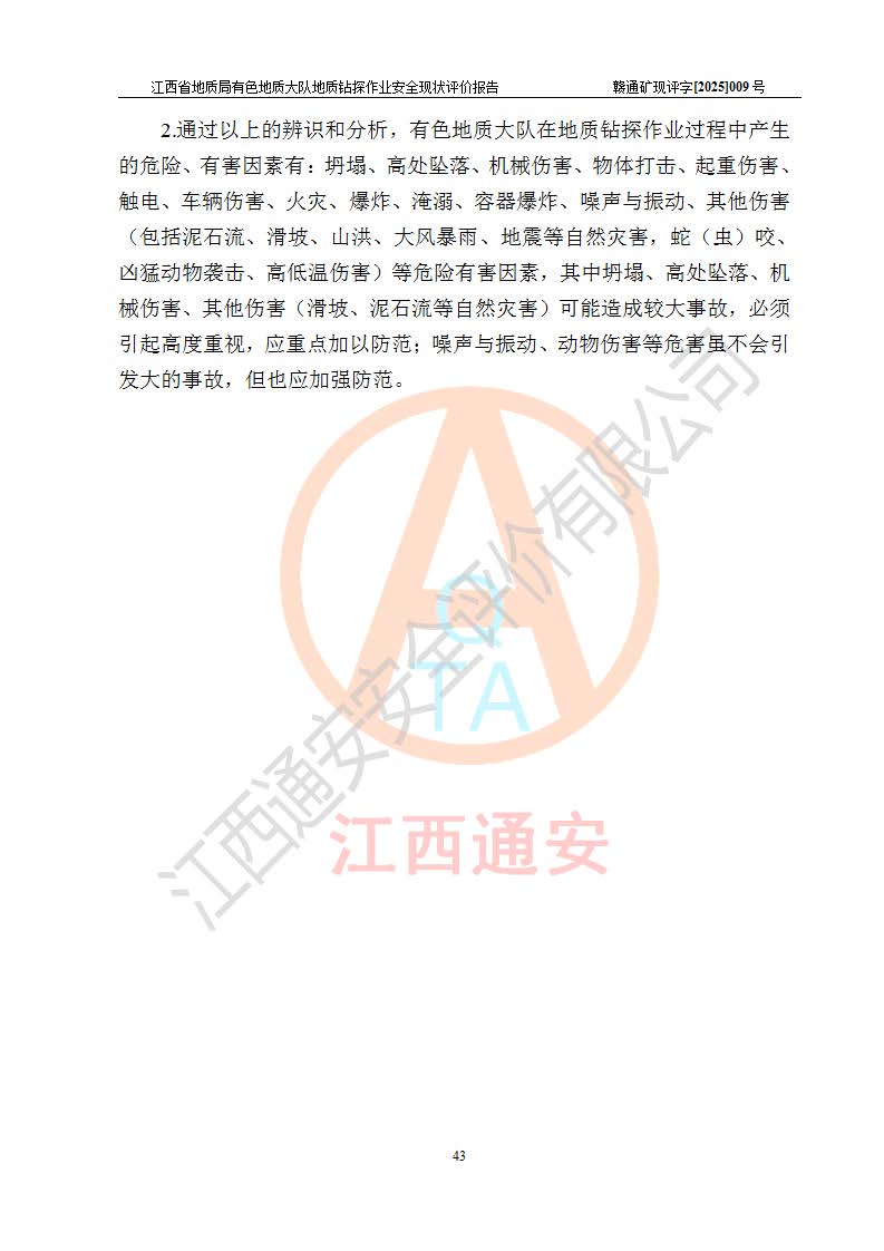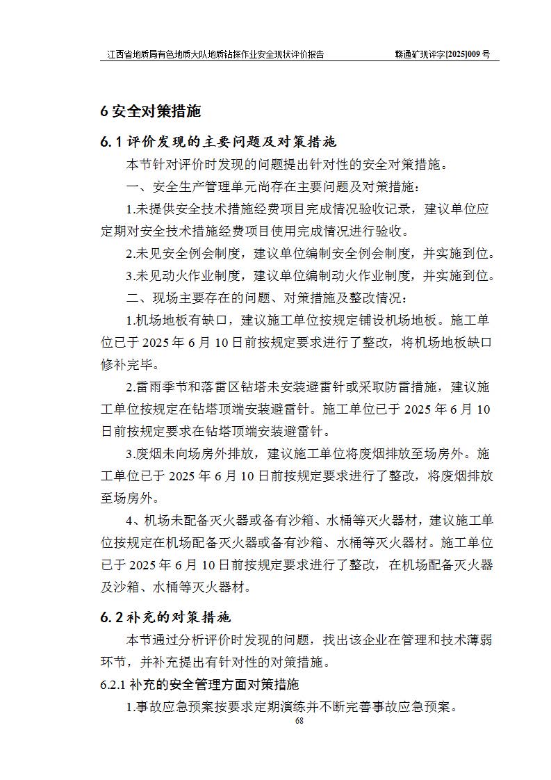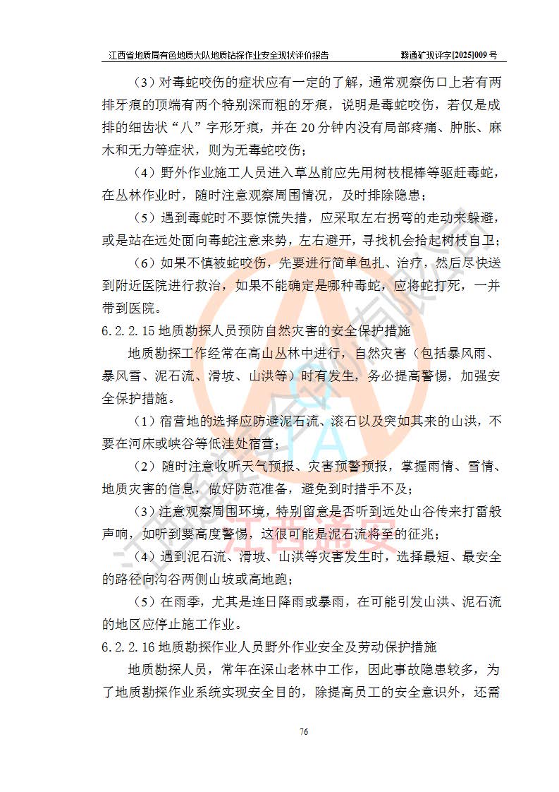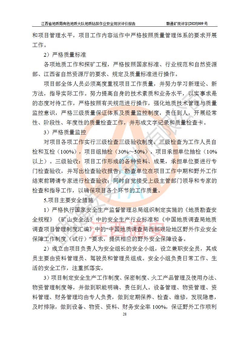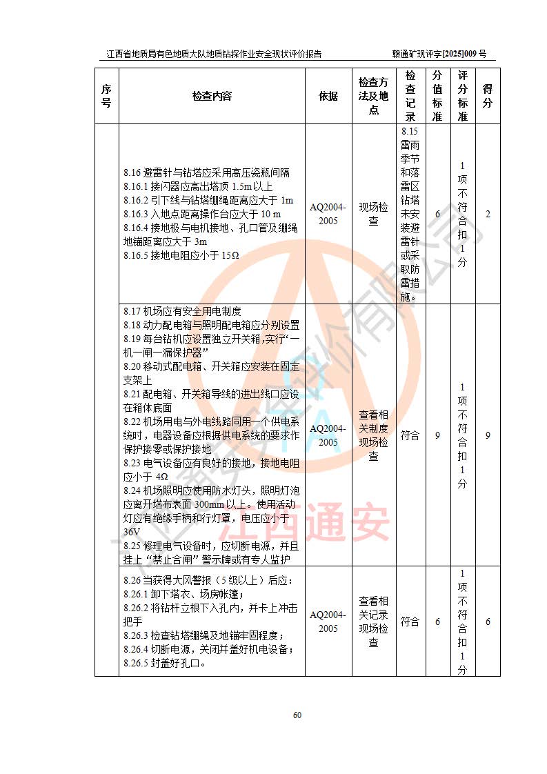 報(bào)告名稱 | 江西省地質(zhì)局有色地質(zhì)大隊(duì)地質(zhì)鉆探作業(yè)安全現(xiàn)狀評(píng)價(jià)報(bào)告 | |||||