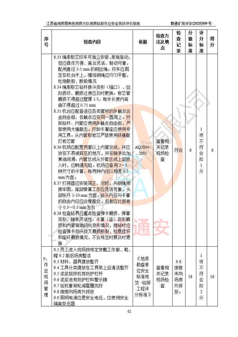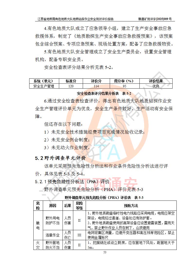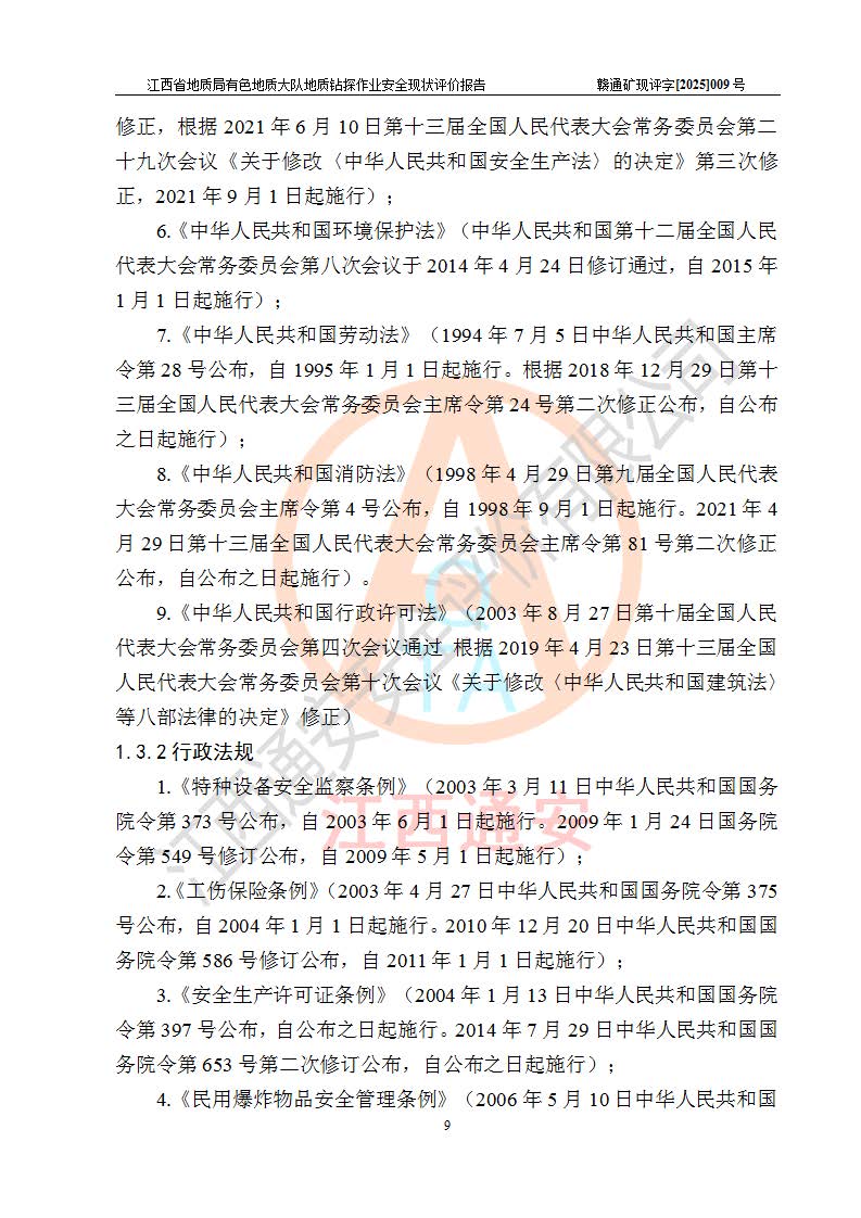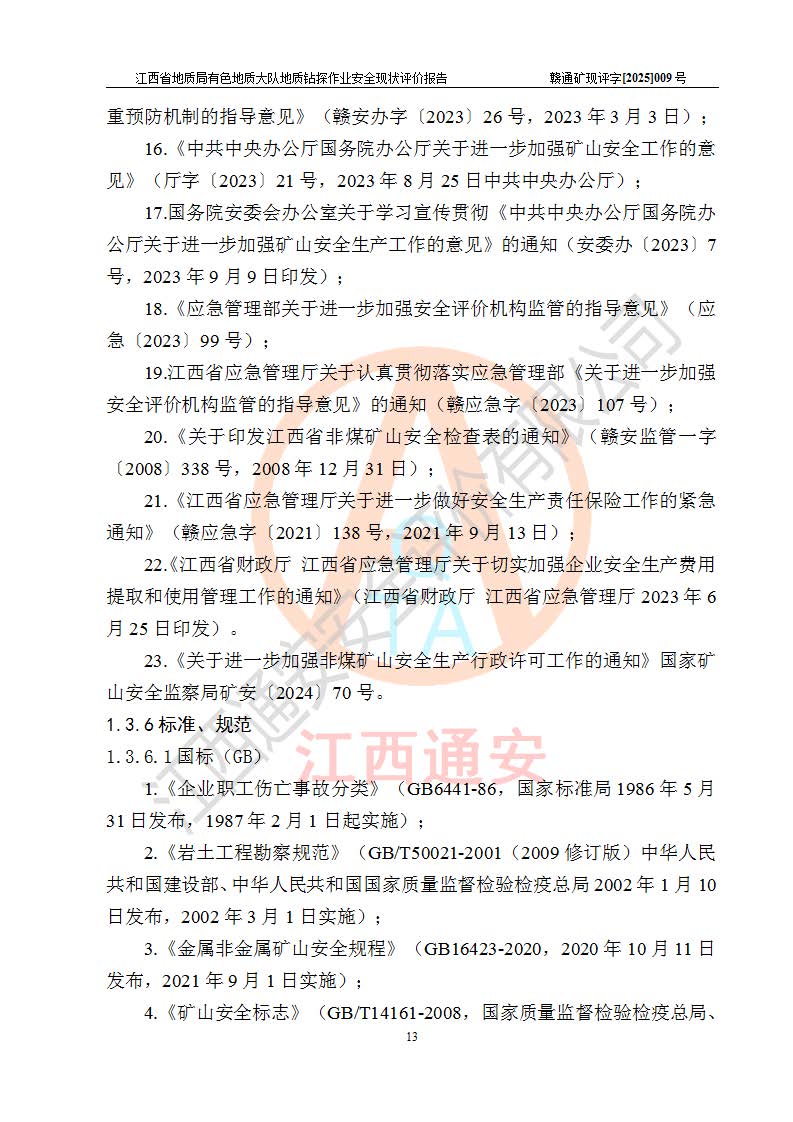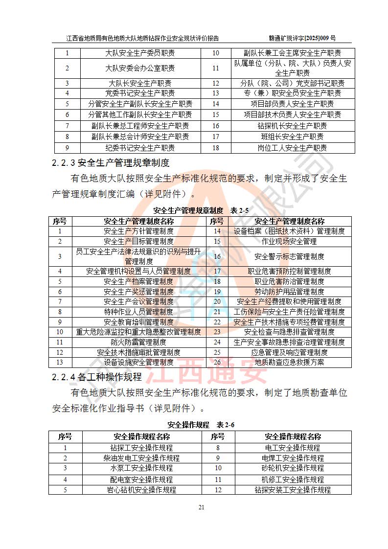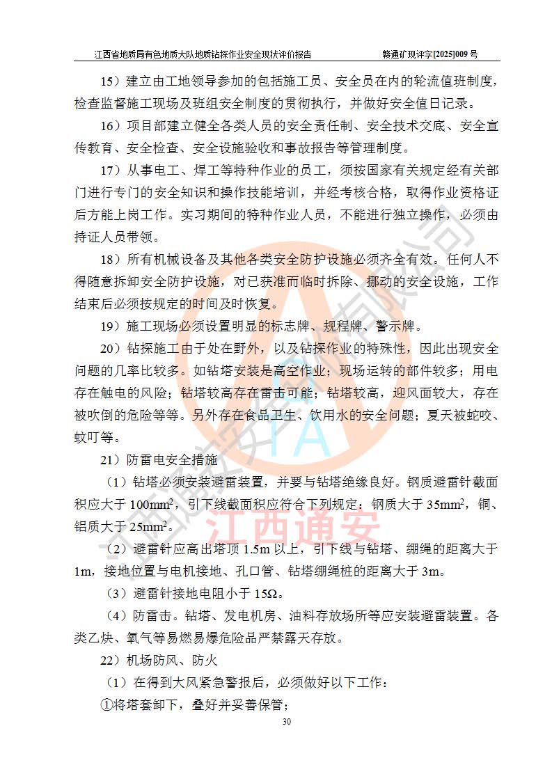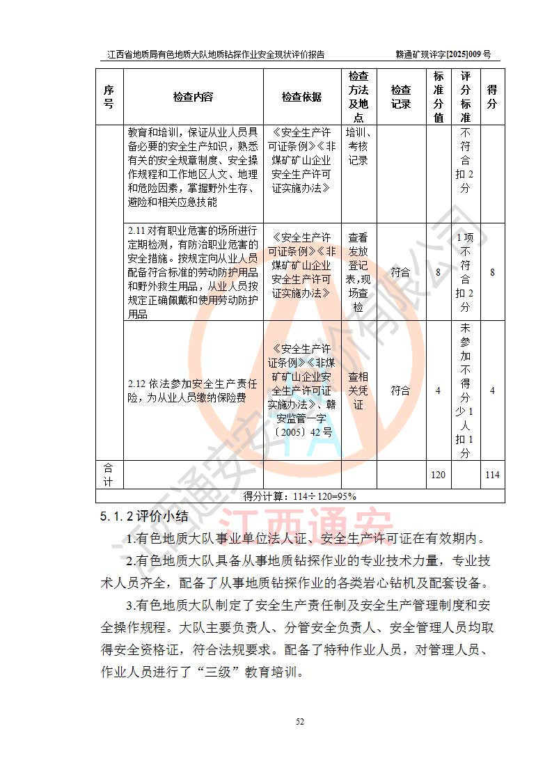 報(bào)告名稱 | 江西省地質(zhì)局有色地質(zhì)大隊(duì)地質(zhì)鉆探作業(yè)安全現(xiàn)狀評(píng)價(jià)報(bào)告 | |||||