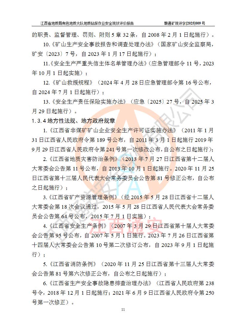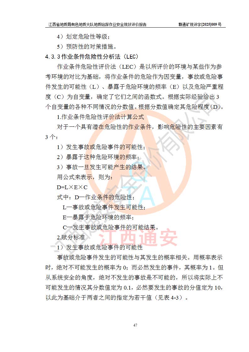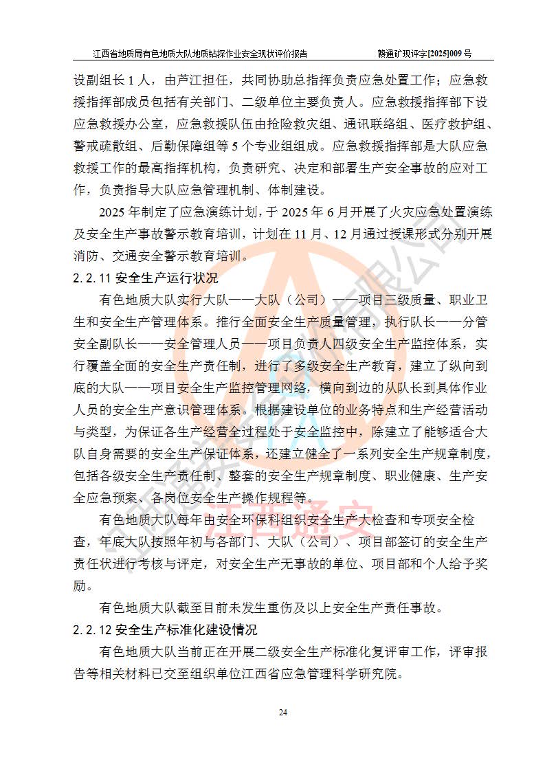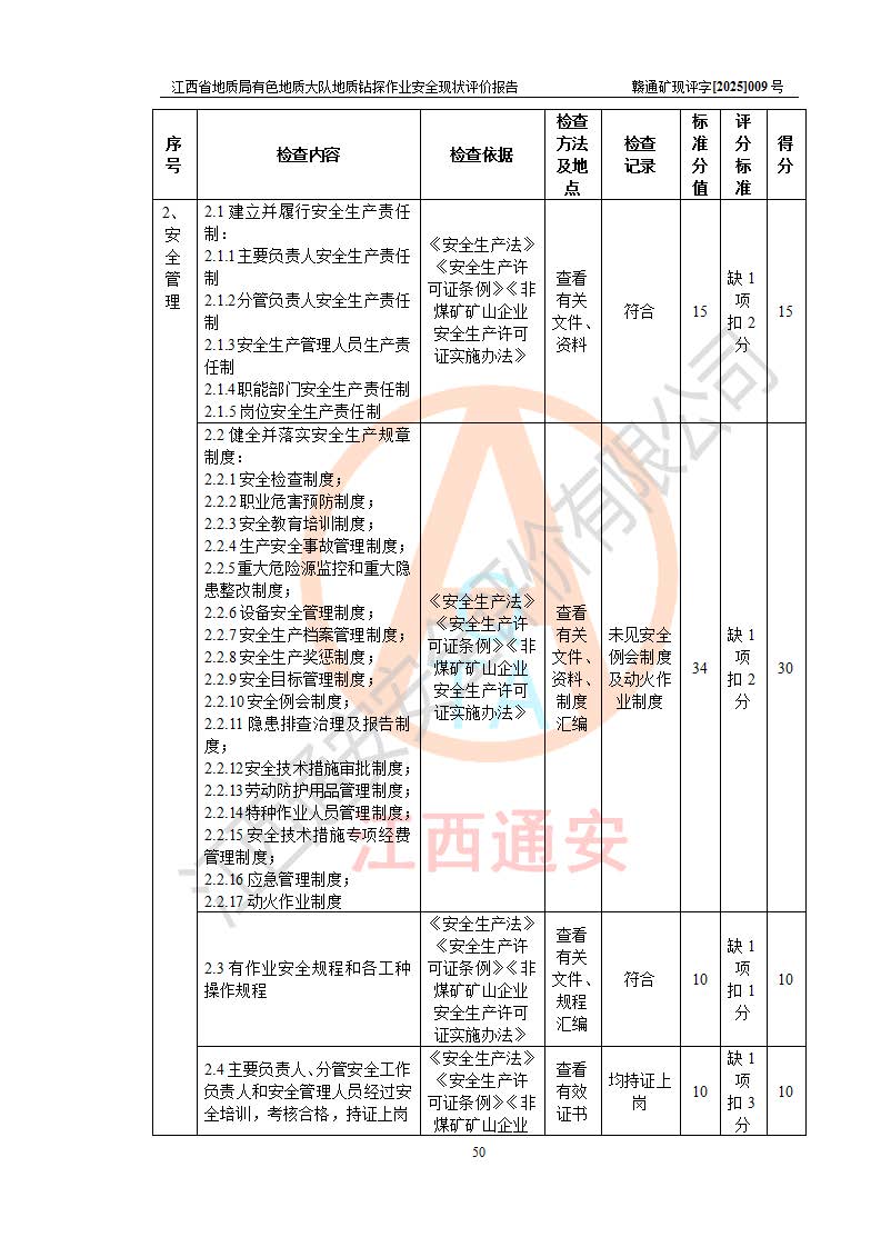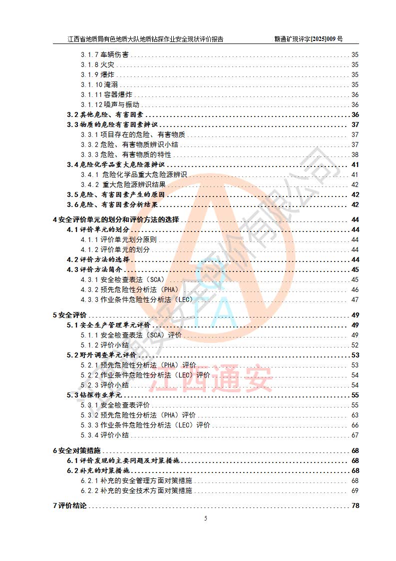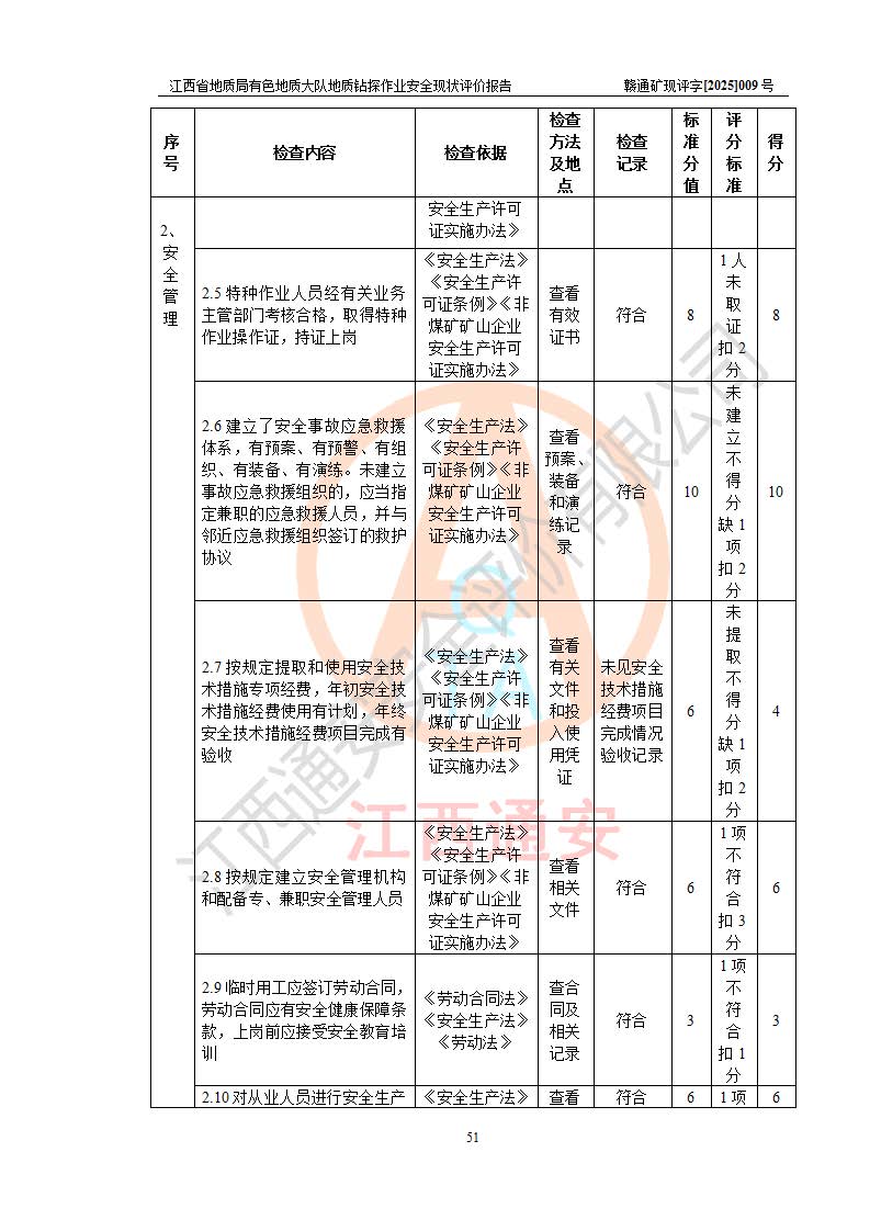 報(bào)告名稱 | 江西省地質(zhì)局有色地質(zhì)大隊(duì)地質(zhì)鉆探作業(yè)安全現(xiàn)狀評(píng)價(jià)報(bào)告 | |||||
