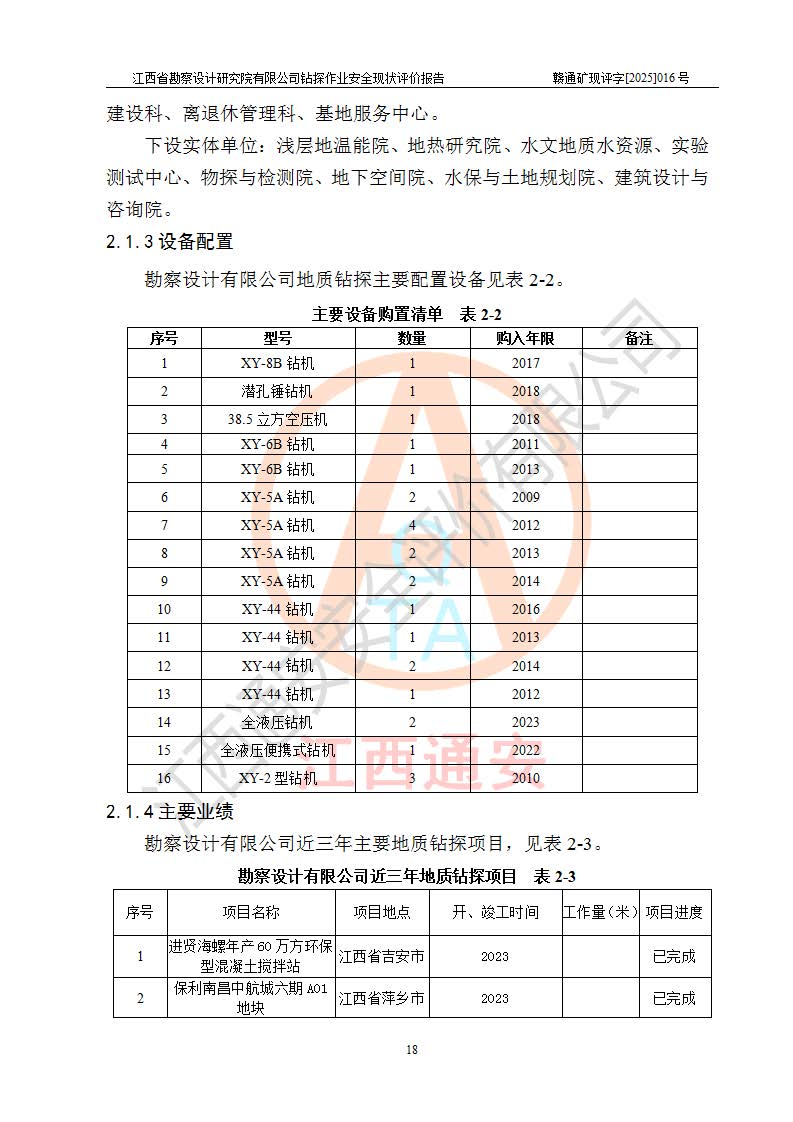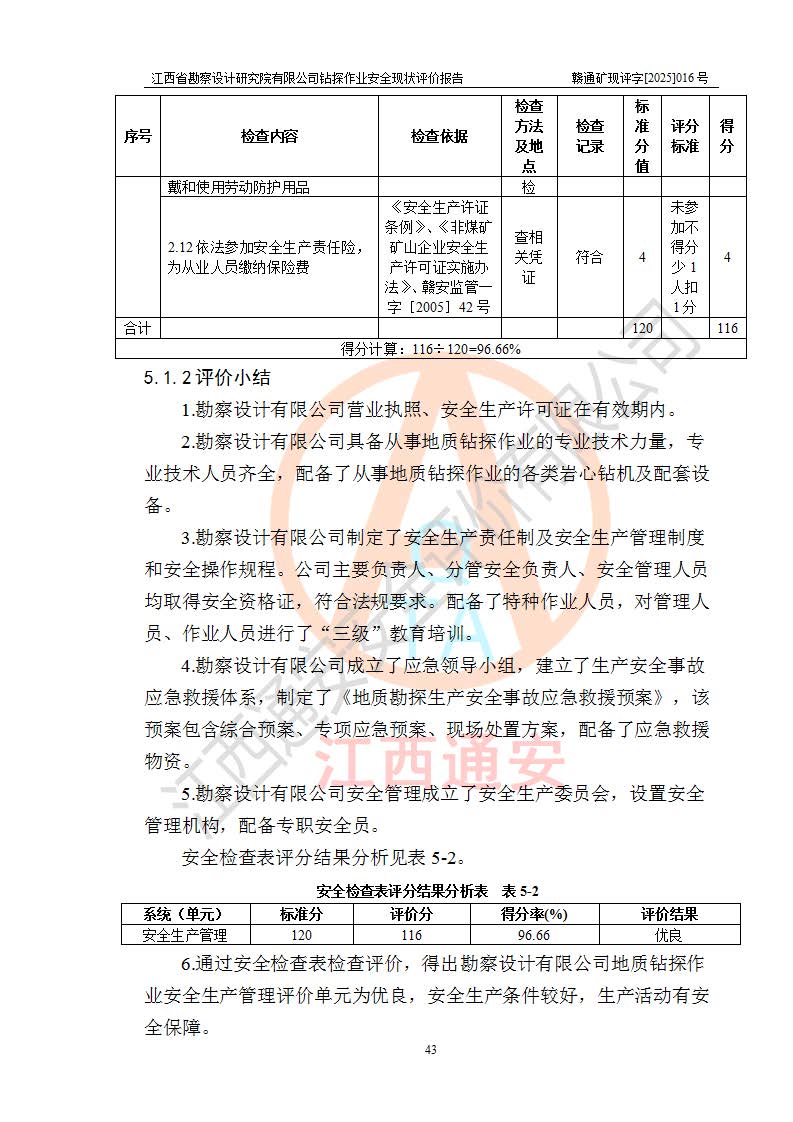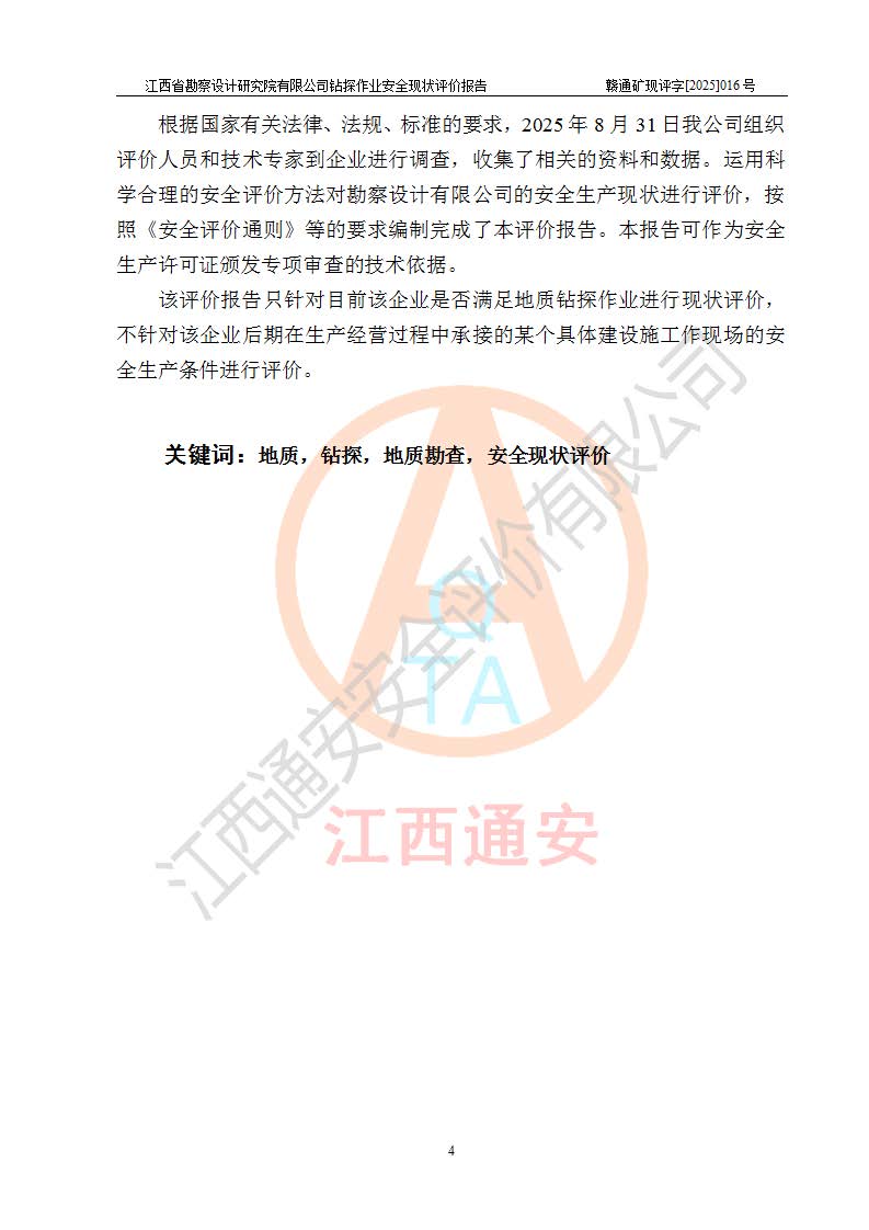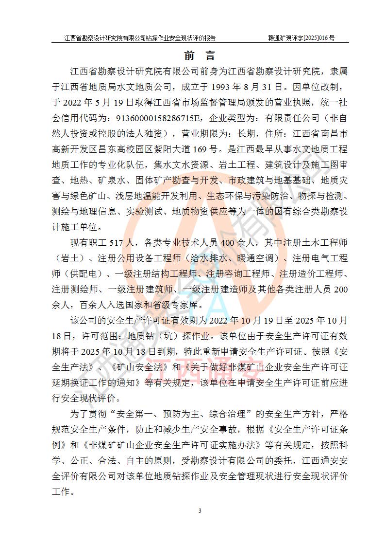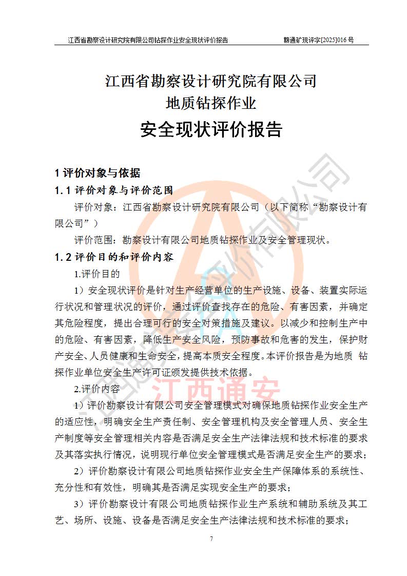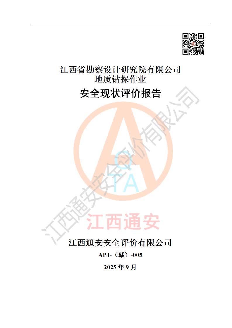 報(bào)告名稱(chēng) | 江西省勘察設(shè)計(jì)研究院有限公司地質(zhì)鉆探作業(yè)安全現(xiàn)狀評(píng)價(jià)報(bào)告 | |||||