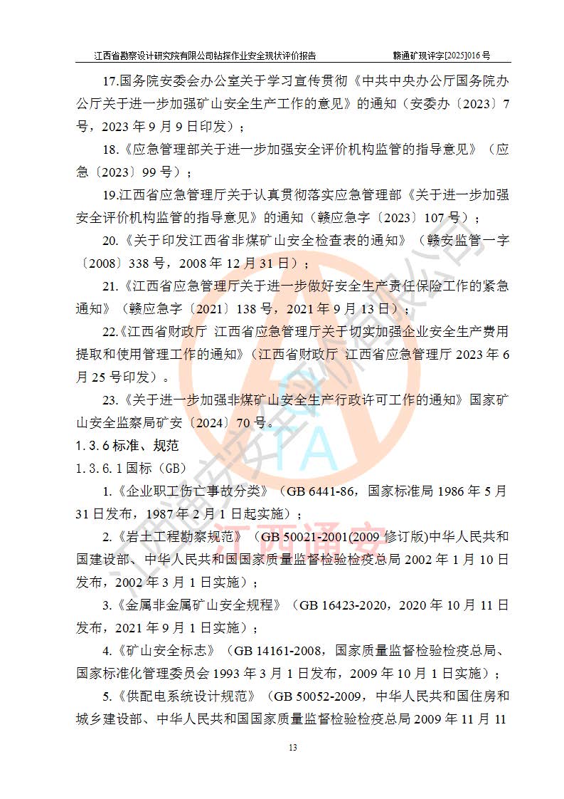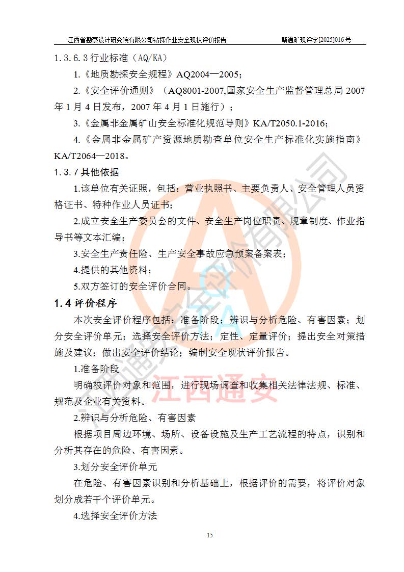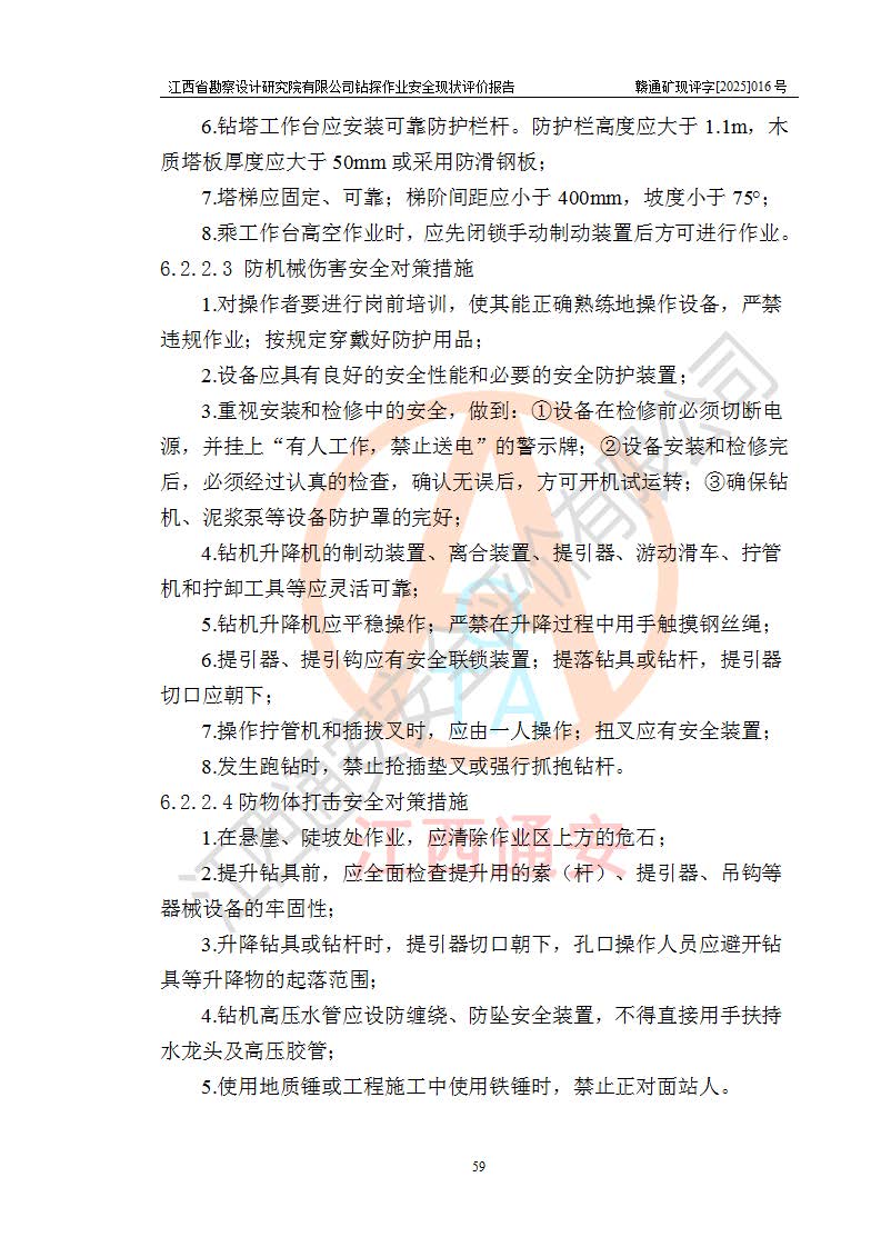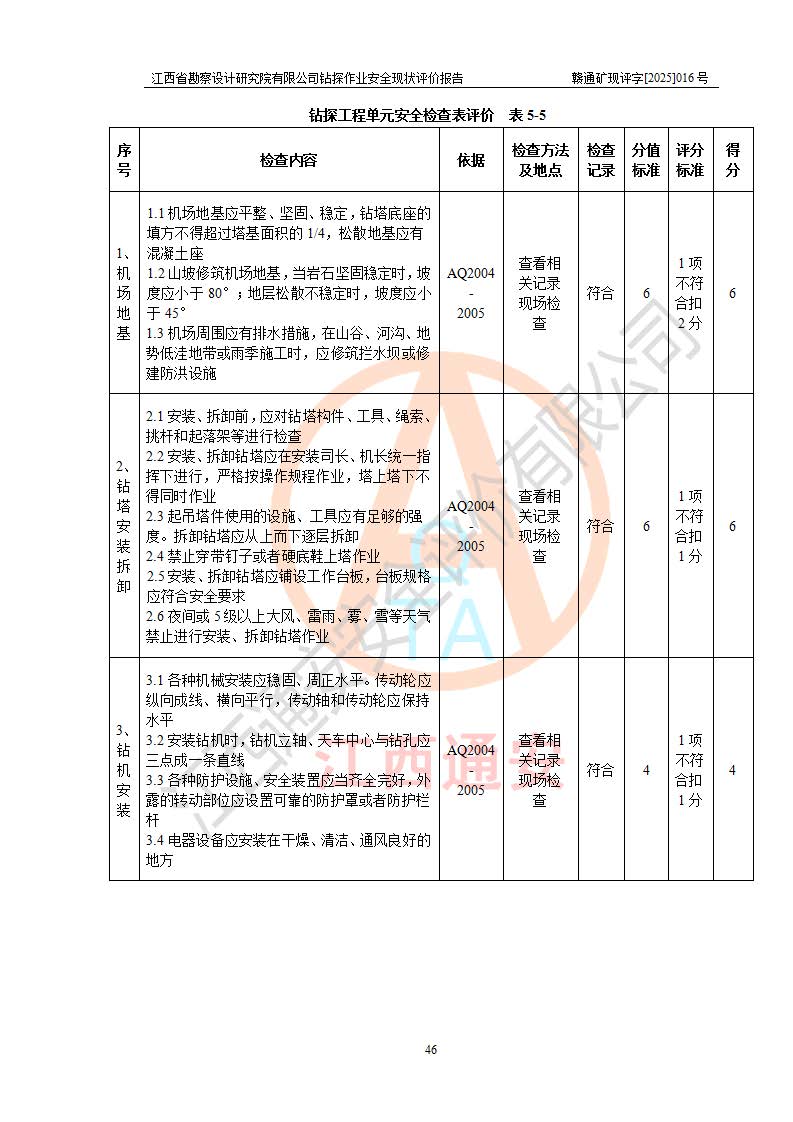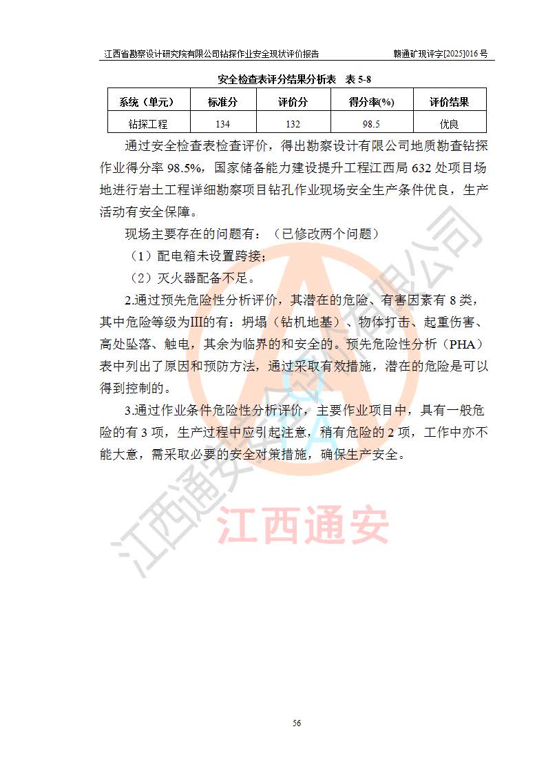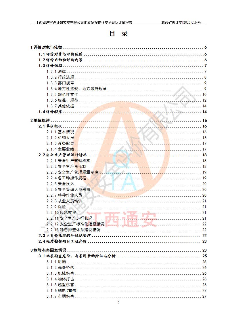 報(bào)告名稱(chēng) | 江西省勘察設(shè)計(jì)研究院有限公司地質(zhì)鉆探作業(yè)安全現(xiàn)狀評(píng)價(jià)報(bào)告 | |||||