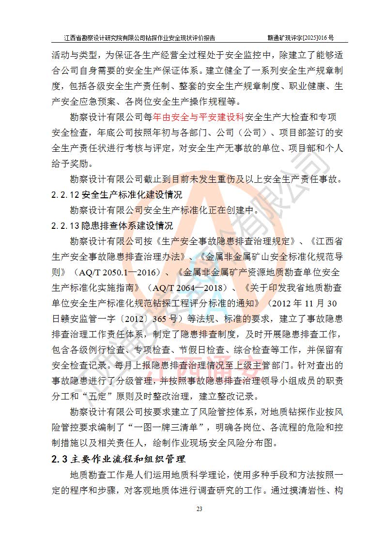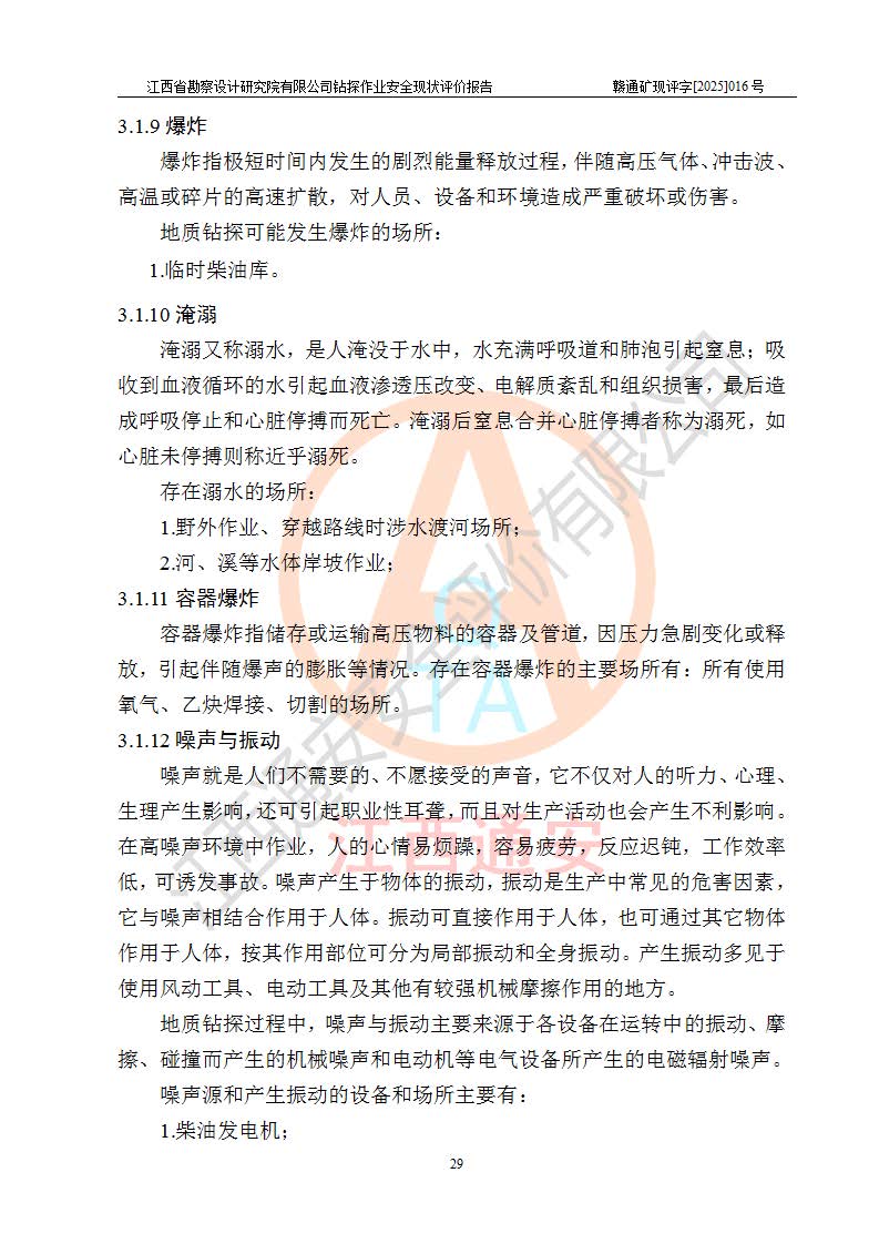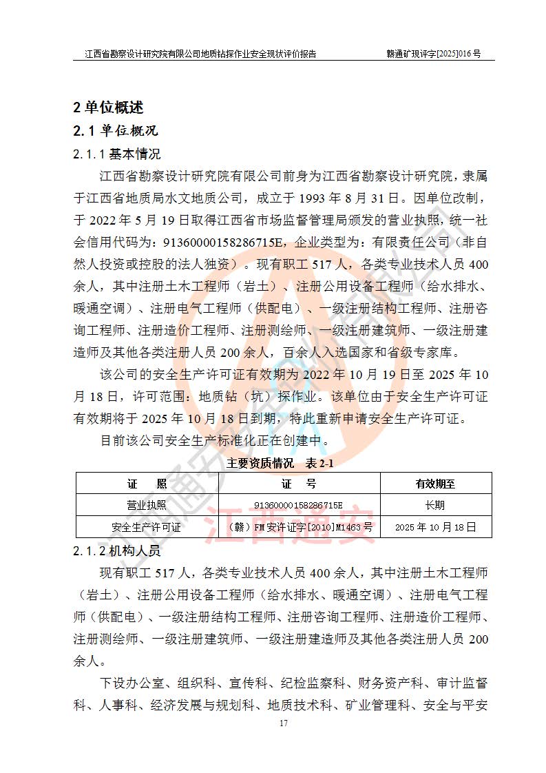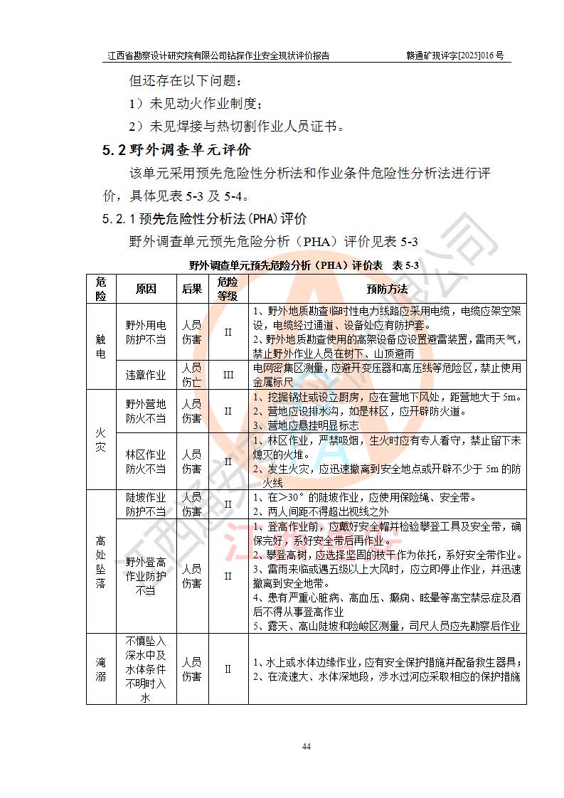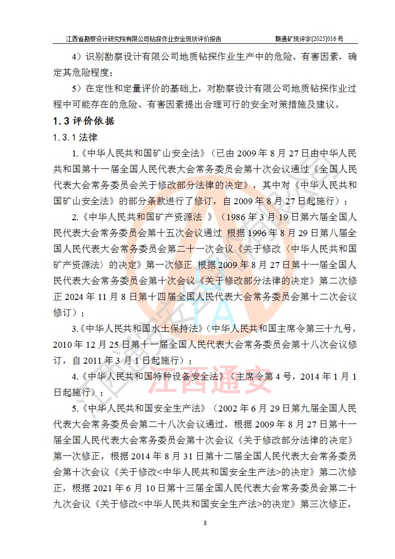 報(bào)告名稱(chēng) | 江西省勘察設(shè)計(jì)研究院有限公司地質(zhì)鉆探作業(yè)安全現(xiàn)狀評(píng)價(jià)報(bào)告 | |||||