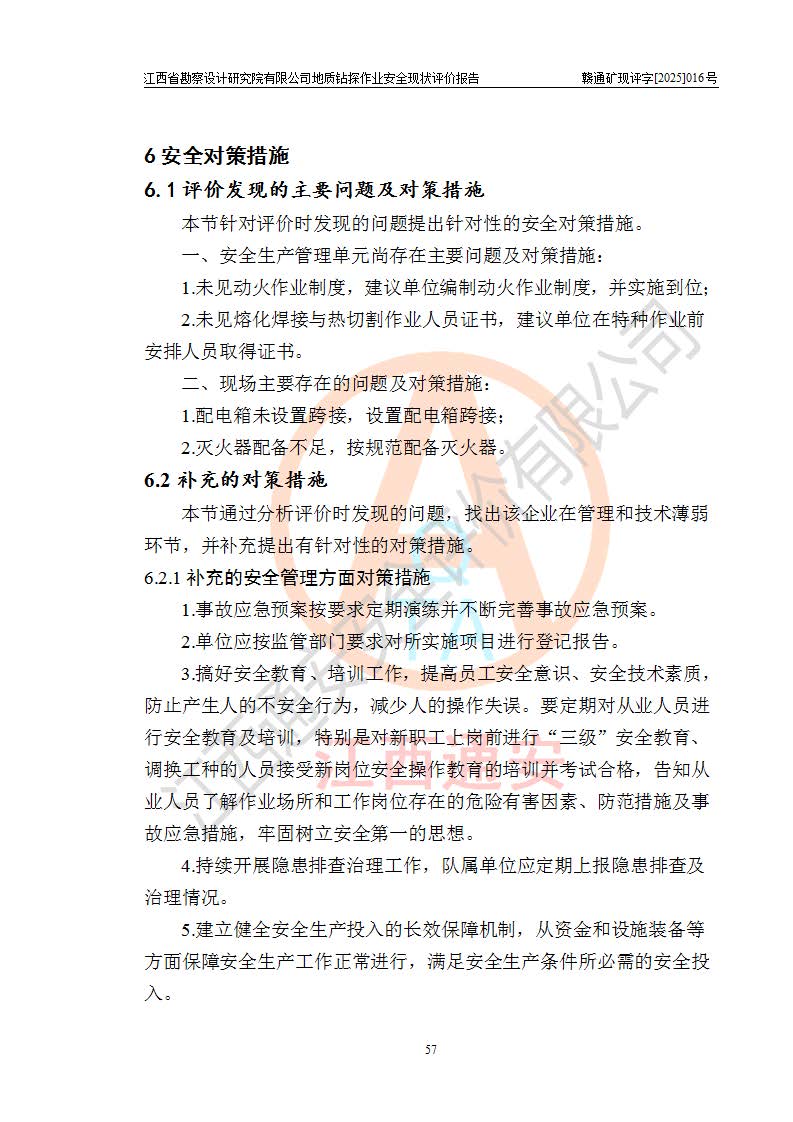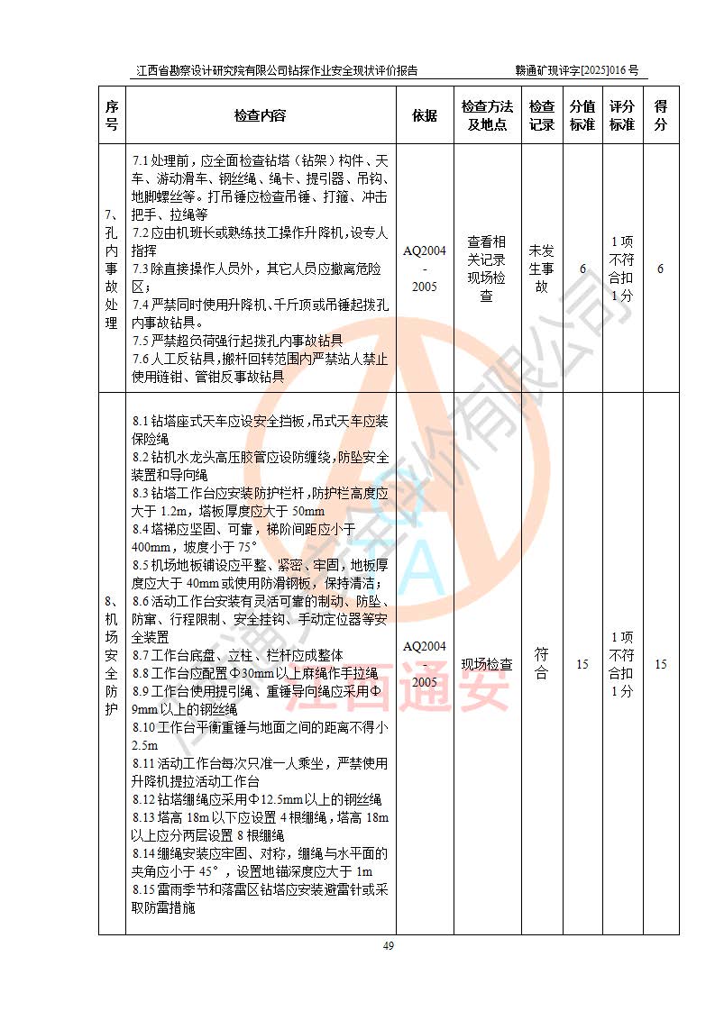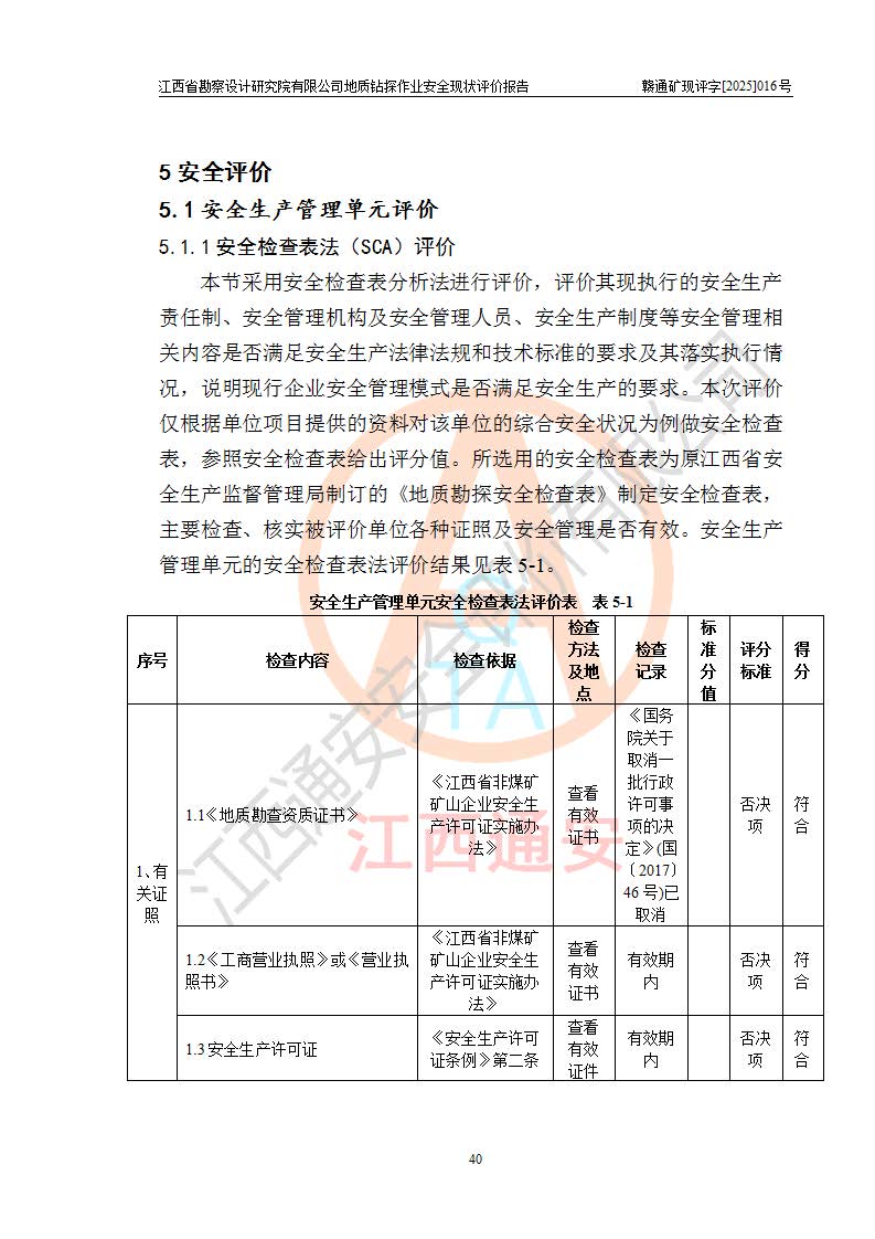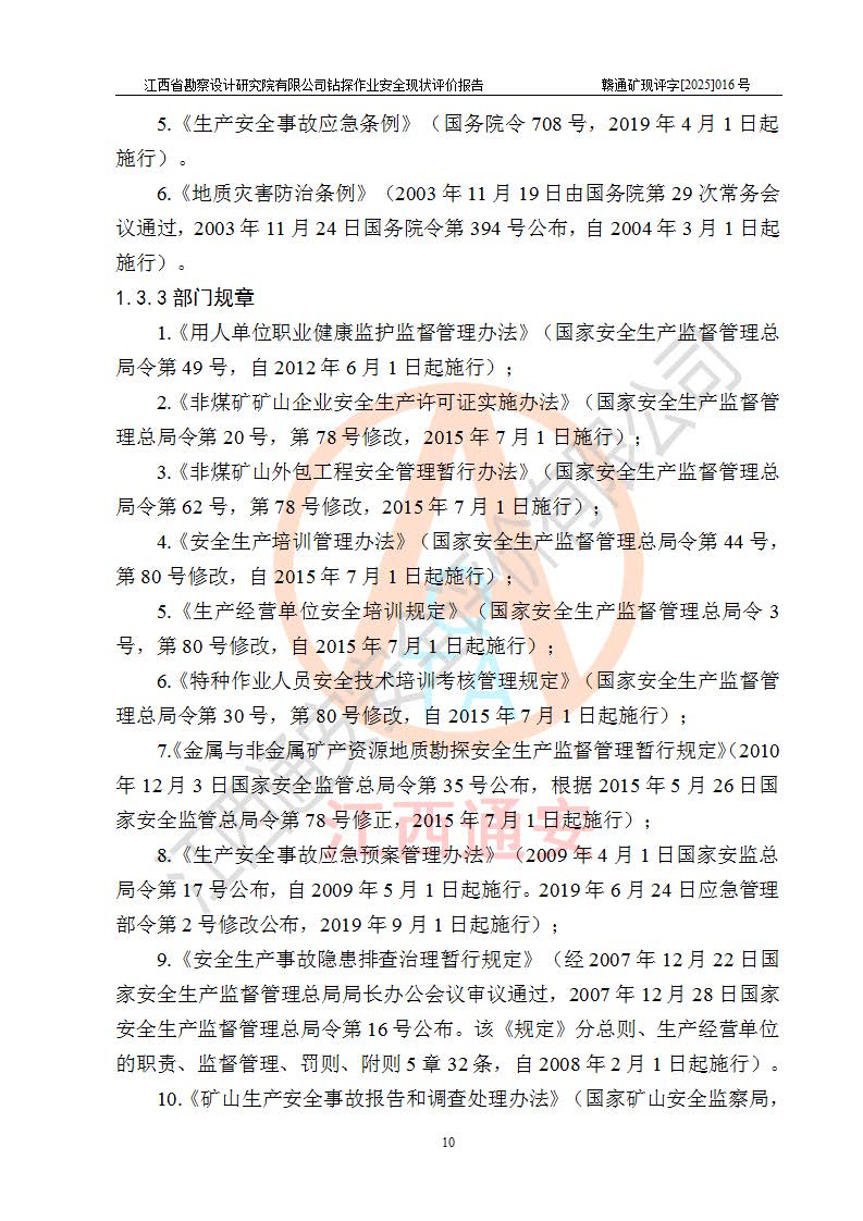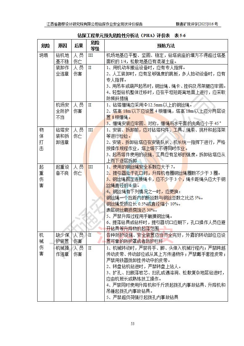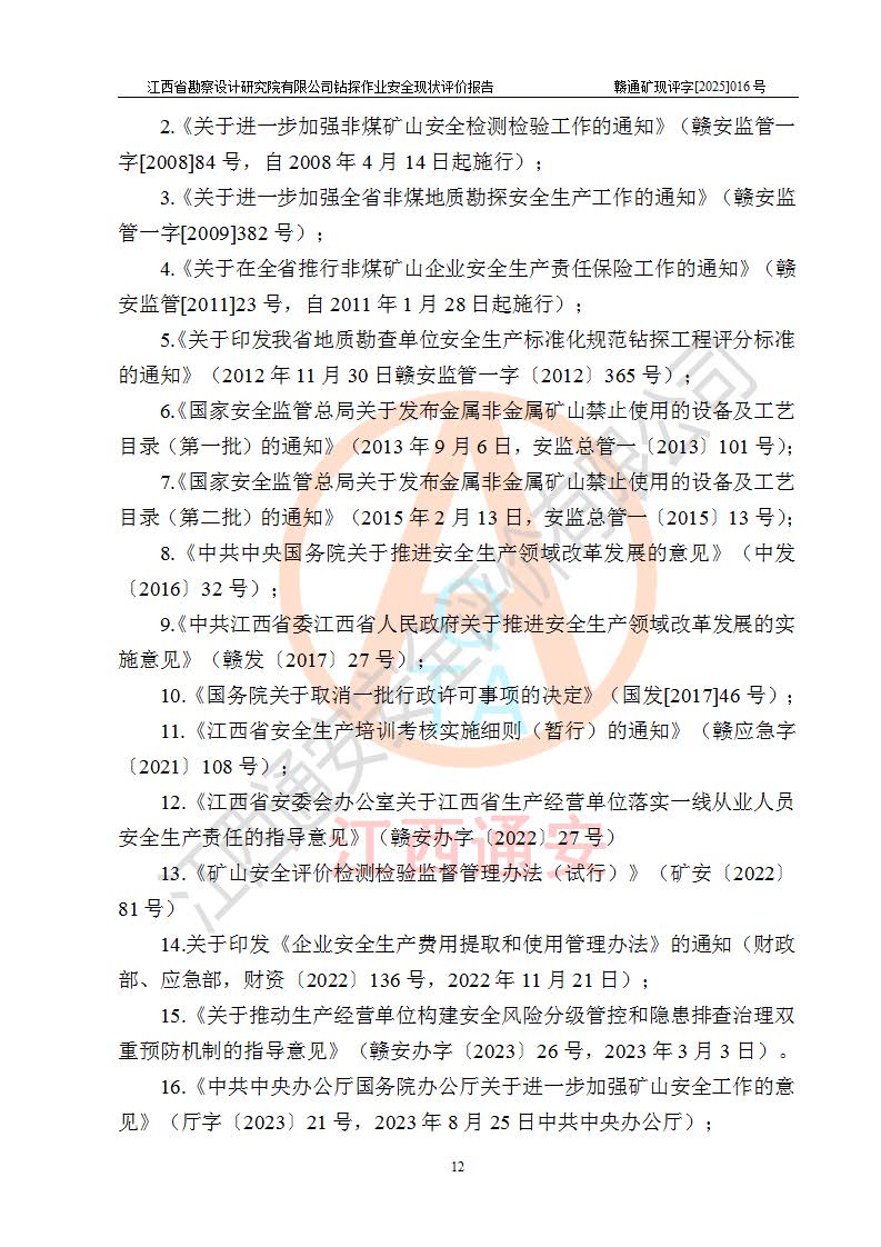 報(bào)告名稱(chēng) | 江西省勘察設(shè)計(jì)研究院有限公司地質(zhì)鉆探作業(yè)安全現(xiàn)狀評(píng)價(jià)報(bào)告 | |||||