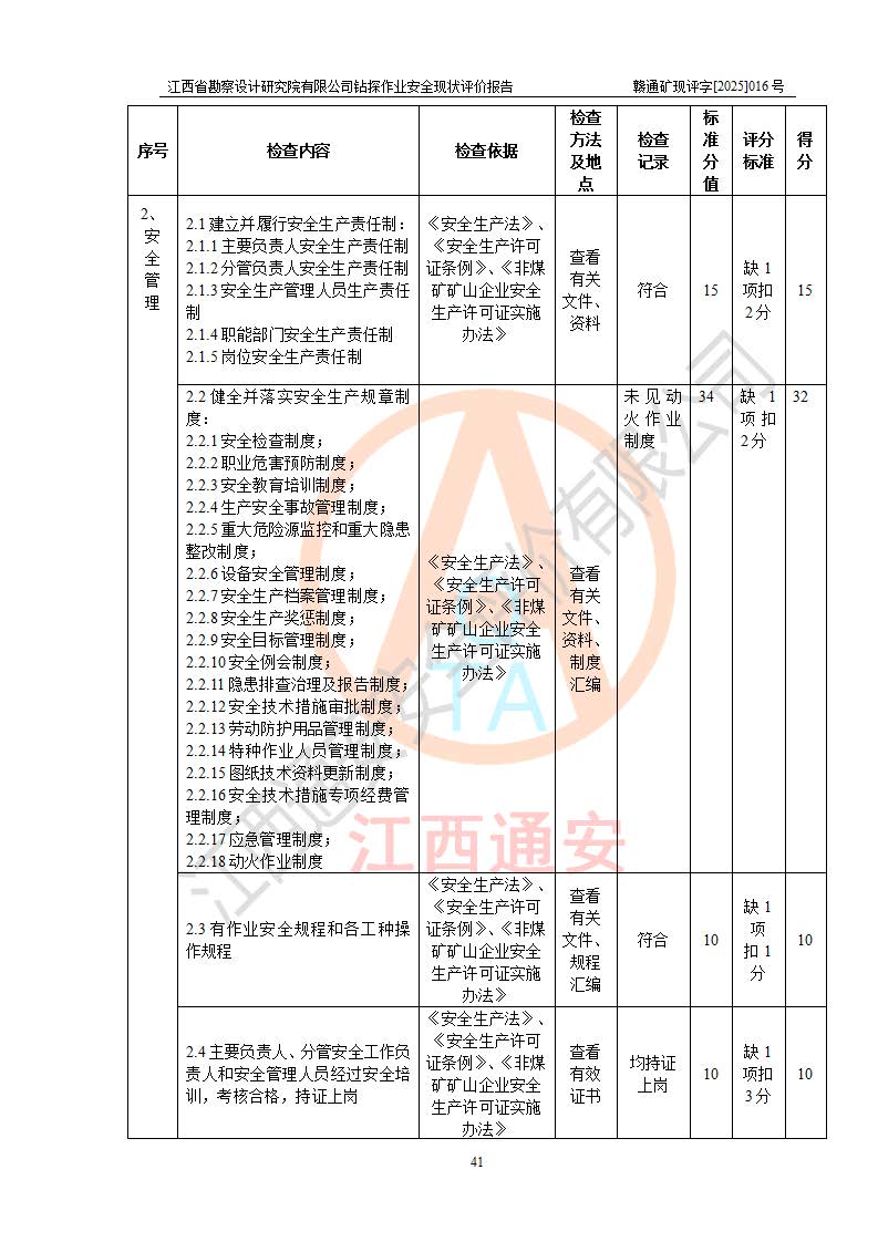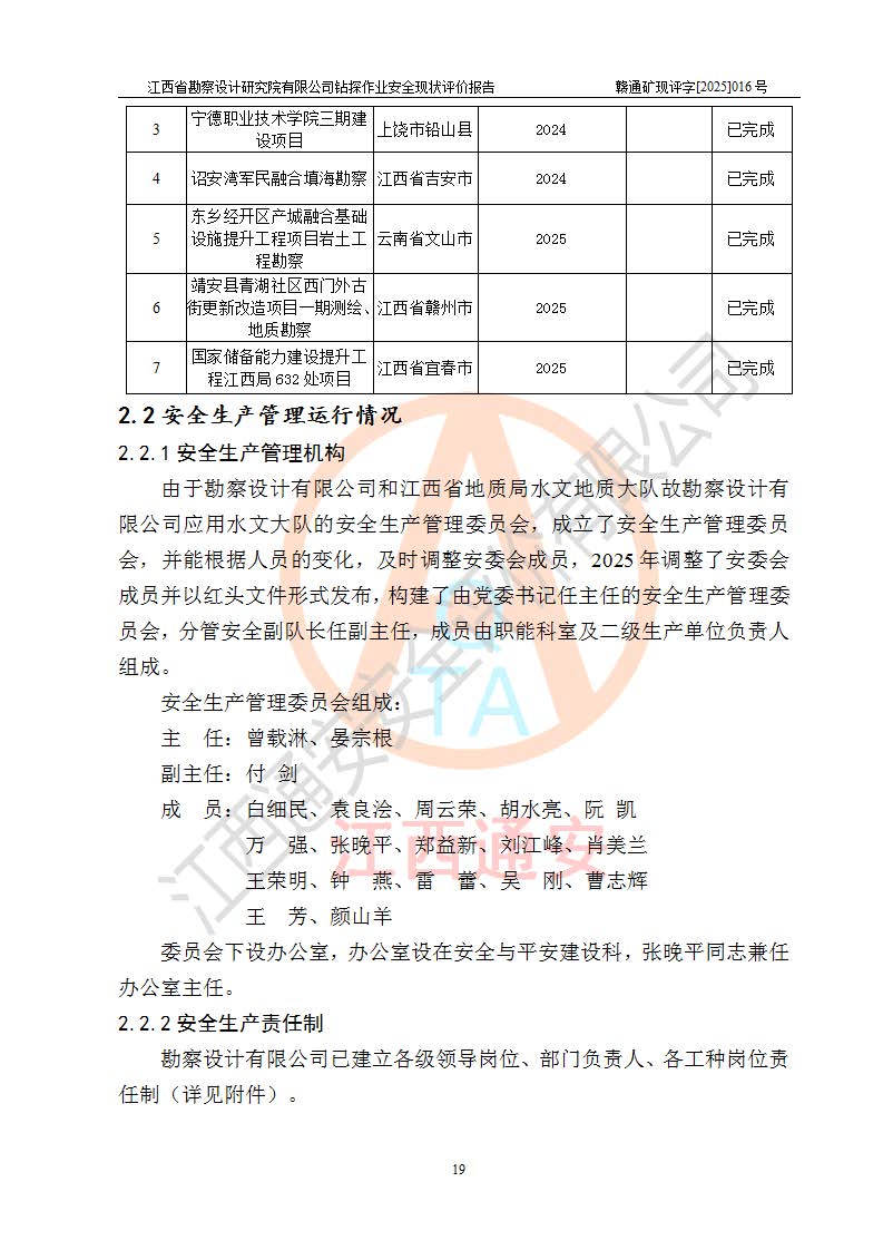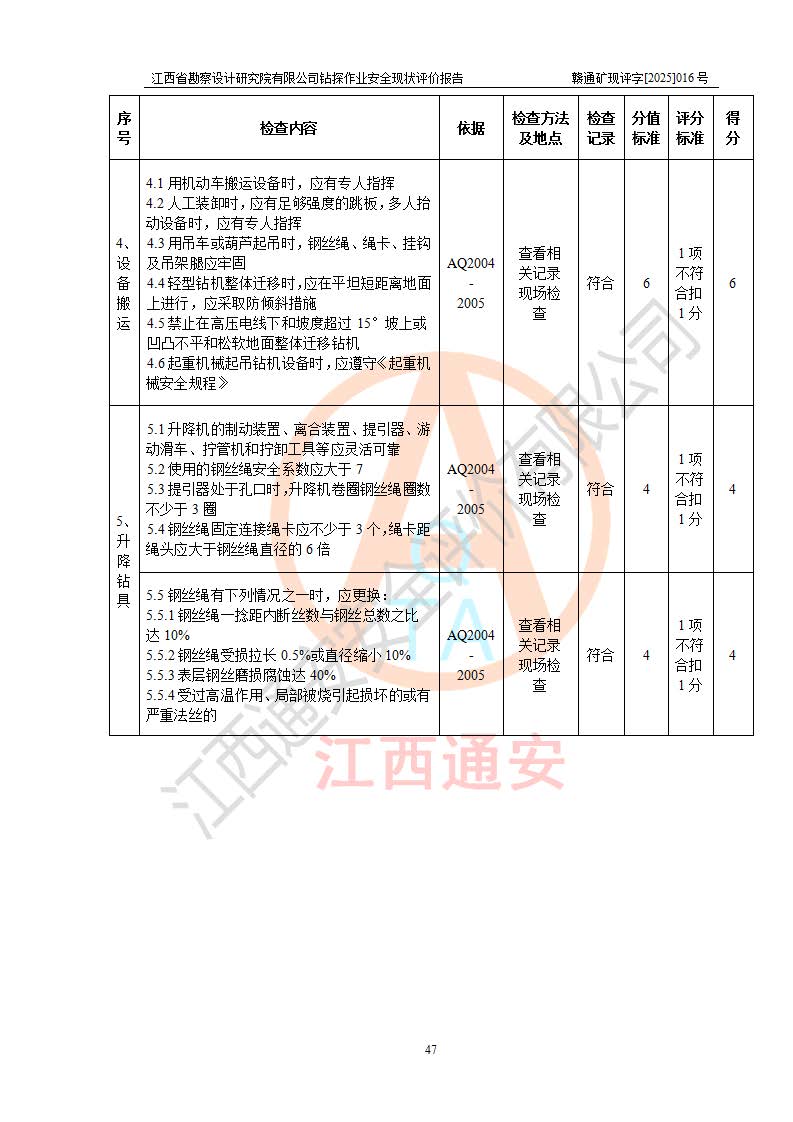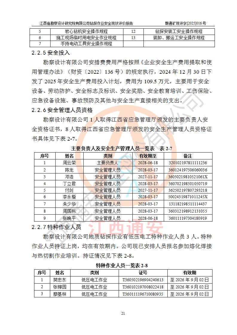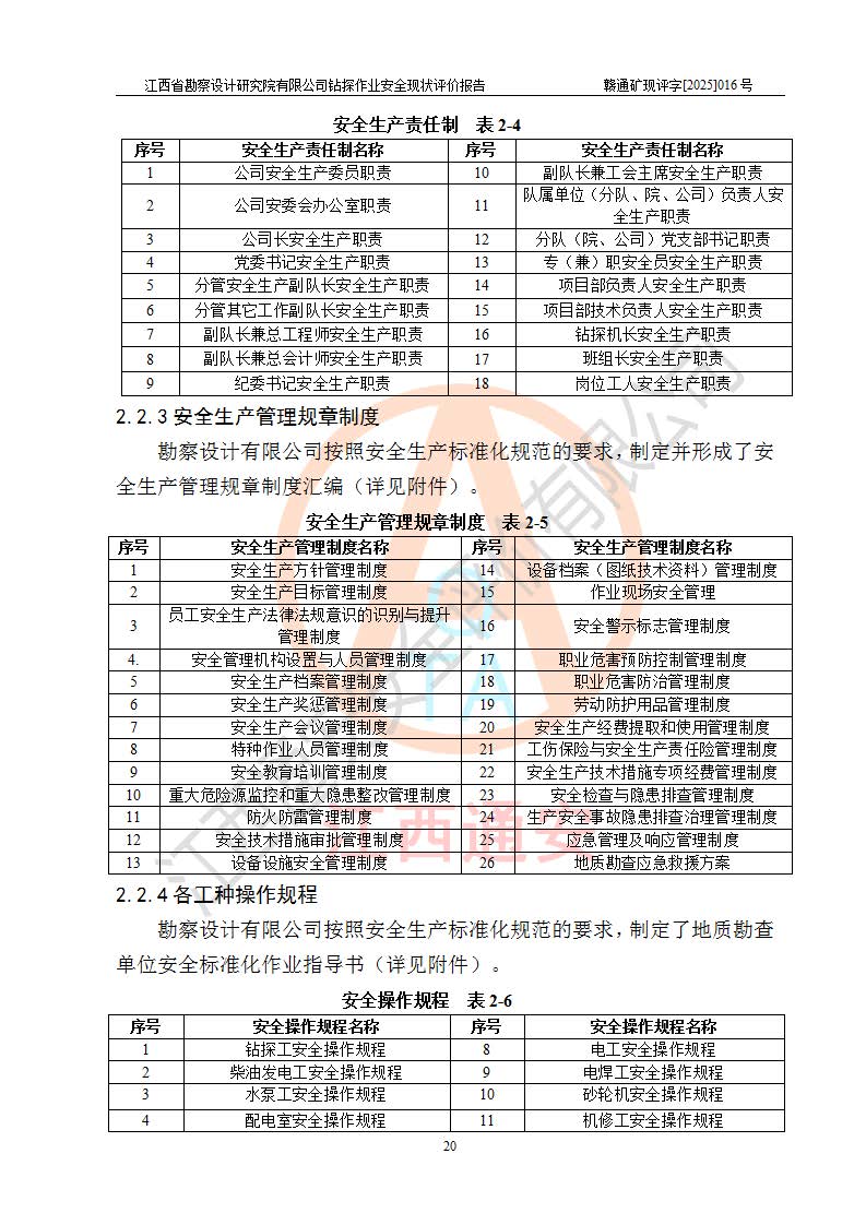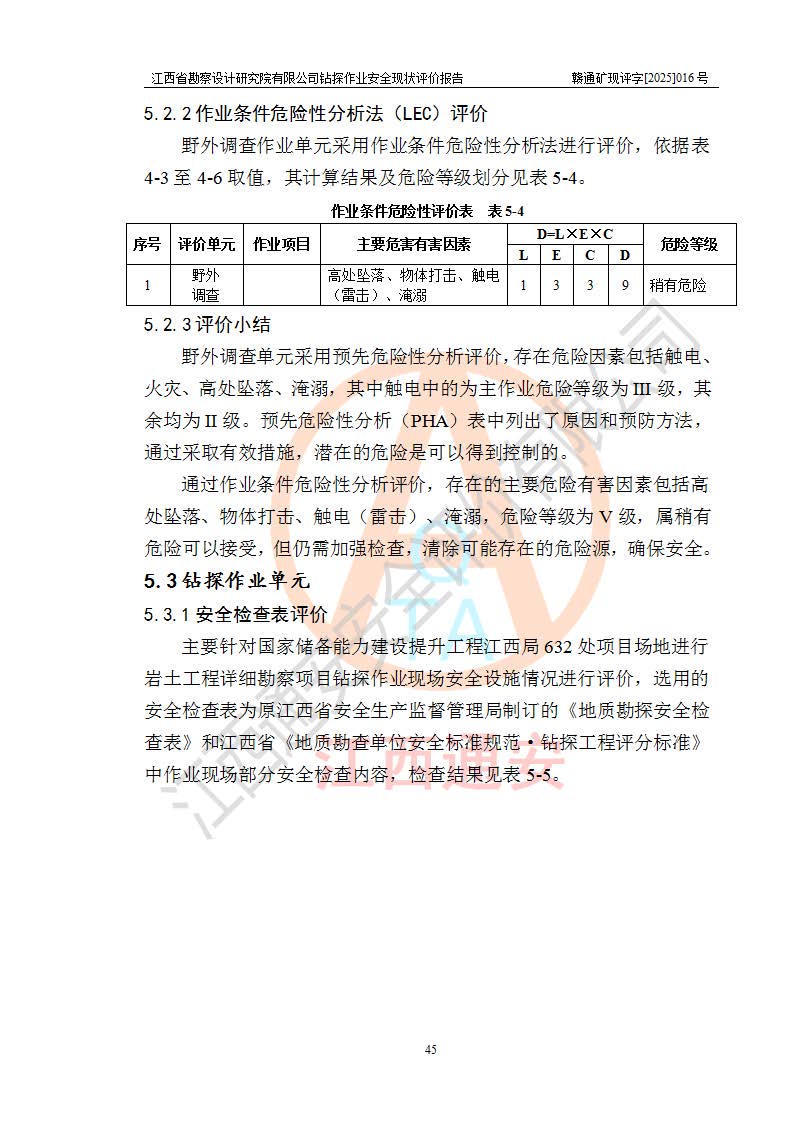 報(bào)告名稱(chēng) | 江西省勘察設(shè)計(jì)研究院有限公司地質(zhì)鉆探作業(yè)安全現(xiàn)狀評(píng)價(jià)報(bào)告 | |||||
