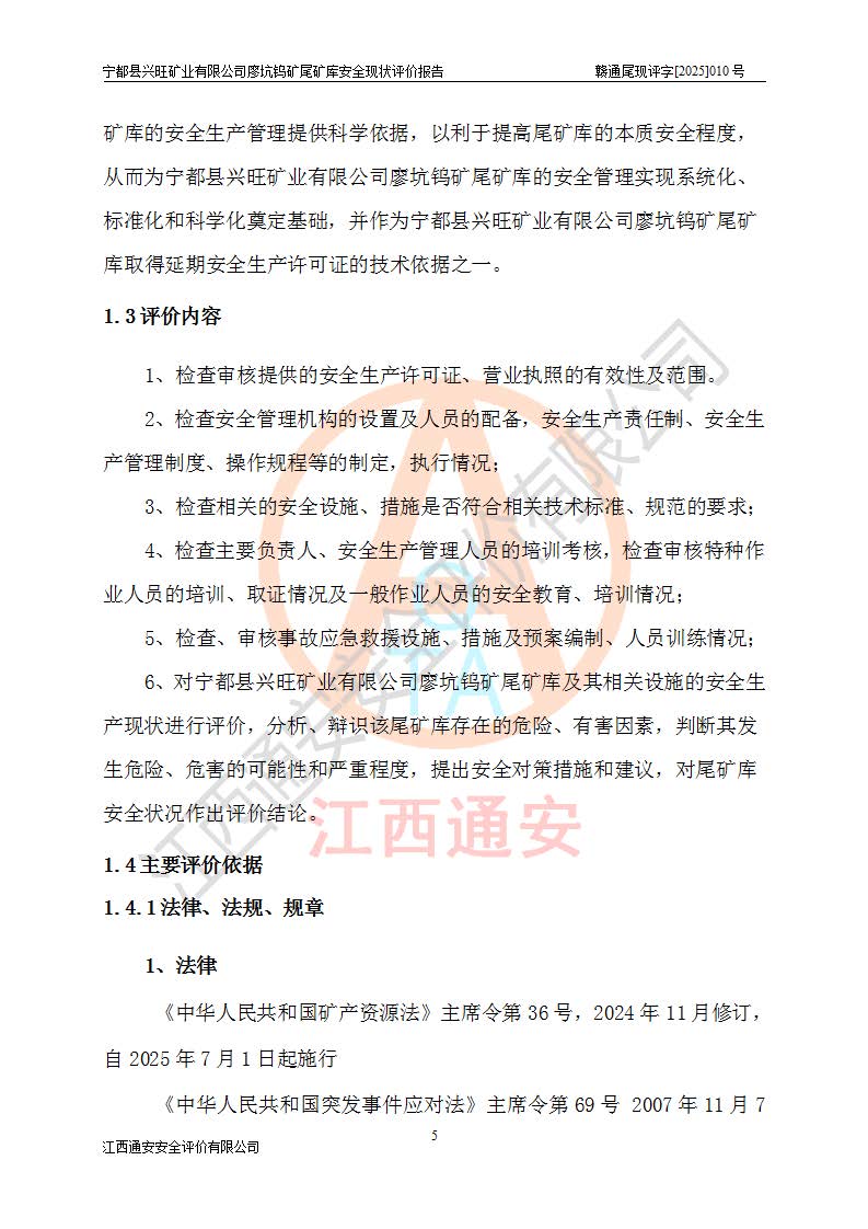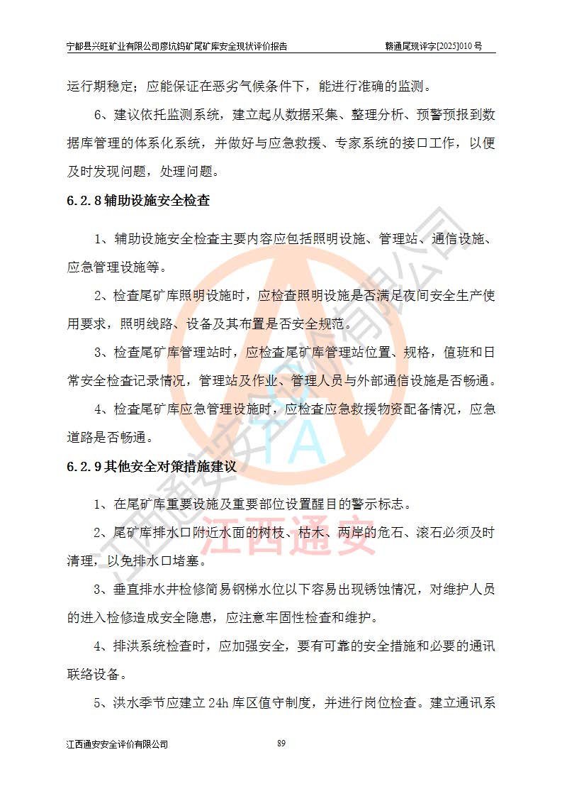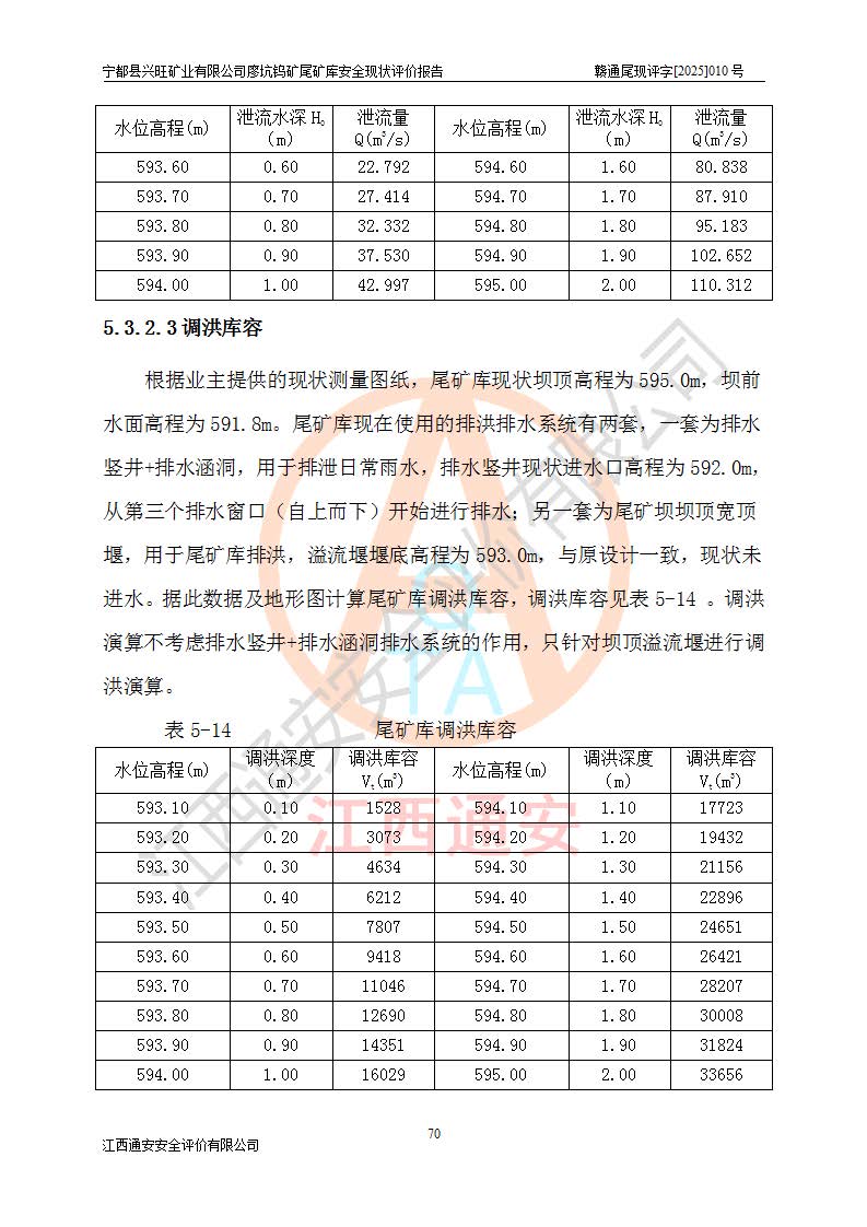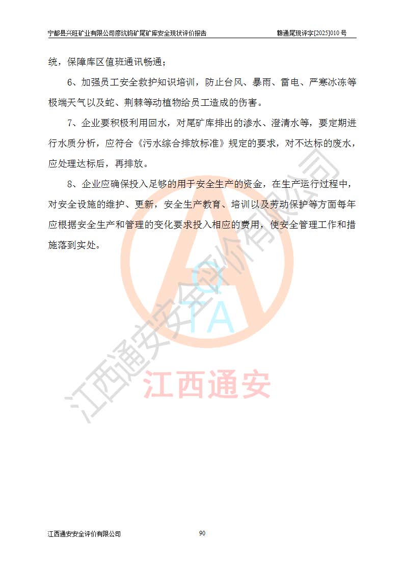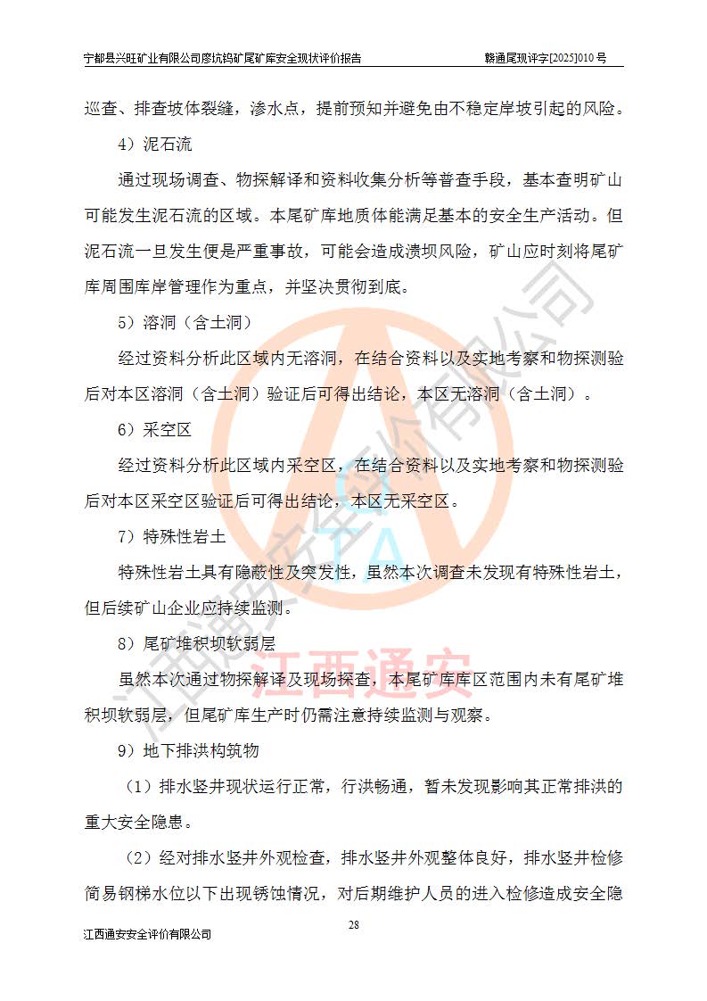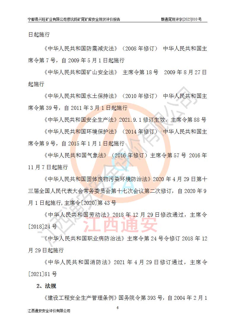 寧都縣興旺礦業(yè)有限公司廖坑鎢礦位于寧都縣縣城北西直距約15km處的安福鄉(xiāng)西甲村,地理坐標:東經(jīng)115°50′48″;北緯26°32′1″。寧都縣興旺礦業(yè)有限公司成立于2006年03月29日,統(tǒng)一社會信用代碼為91360730787253633E,企業(yè)類型為有限責任公司(自然人投資或控股),企業(yè)注冊地位于江西省贛州市寧都縣安福鄉(xiāng)西甲村,法定**人為曾德強,注冊資本為1915萬元人民幣,所屬行業(yè)為有色金屬礦采選業(yè),經(jīng)營范圍包括鎢砂開采及廢砂石加工、銷售。 廖坑鎢礦尾礦庫位于寧都縣安福鄉(xiāng)西甲村、選礦廠東面約1.17Km的下游溝谷中,選礦廠年生產(chǎn)工作日300d,尾礦堆積干容重1.60 t/m3。尾礦庫匯水面積1.927km2,尾礦壩為漿砌塊石重力壩,壩頂高程595.0m,清基后壩底高程為571.0m,壩高24.0m,壩頂寬度2.7m,壩頂軸線長75.0m;上游壩坡1:0,下游壩坡1:1.0。尾礦從庫尾進行排放,設(shè)計總庫容8.5×104m3,服務年限10.9年。尾礦庫總占地面積約21.0畝。為山谷型五等庫。 該尾礦庫于1982年11月由寧都縣水電施工隊建設(shè)施工,1983年11月投產(chǎn),2007年1月由江西省冶金設(shè)計院編制了《寧都縣興旺礦業(yè)有限公司廖坑鎢礦尾礦庫整改方案設(shè)計》,2008年4月2日取得江西省安全生產(chǎn)監(jiān)督管理局頒發(fā)的安全生產(chǎn)許可證,證書編號(贛)FM安許證字[2008]M1268號。2022年江西通安安全評價有限公司編制了安全現(xiàn)狀評價報告,2022年7月15日由贛州市行政審批局下發(fā)了安全生產(chǎn)許可證,證號(贛)FM安許證字[2022]B0081號,(贛市行審證(3)字[2022]第274號),**期至2025年7月14日。 依照《非煤礦礦山企業(yè)安全生產(chǎn)許可證延期換證工作》的通知,根據(jù)***《安全生產(chǎn)許可證條例》、《江西省安全生產(chǎn)條例》、《非煤礦山安全生產(chǎn)許可證實施辦法》、《江西省非煤礦礦山企業(yè)安全生產(chǎn)許可證辦法》規(guī)定及非煤礦山安全評價導則的要求,受寧都縣興旺礦業(yè)有限公司的委托,我公司承擔廖坑鎢礦尾礦庫延期換證的安全現(xiàn)狀評價工作。 |