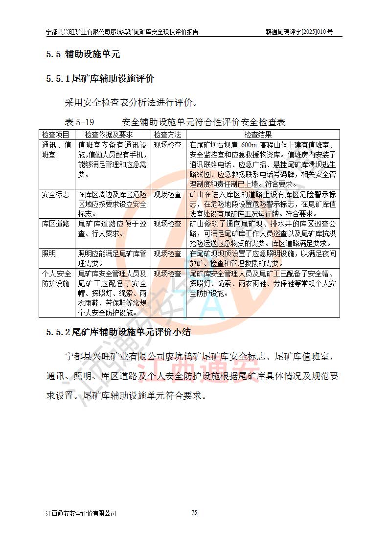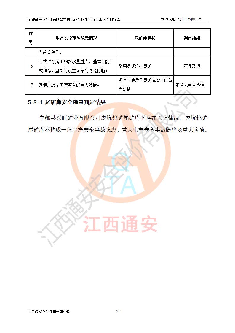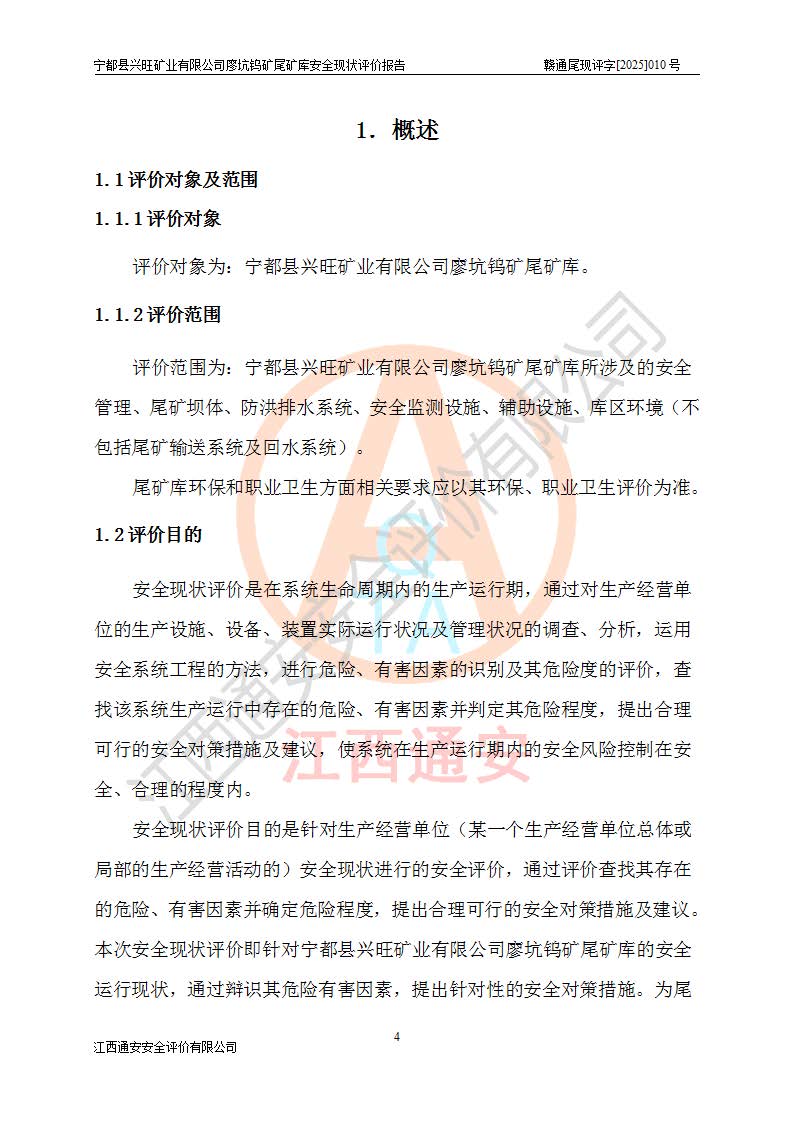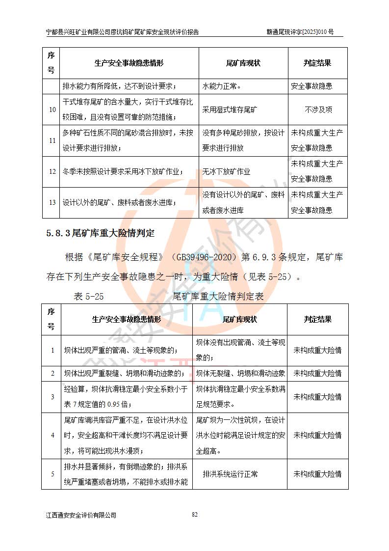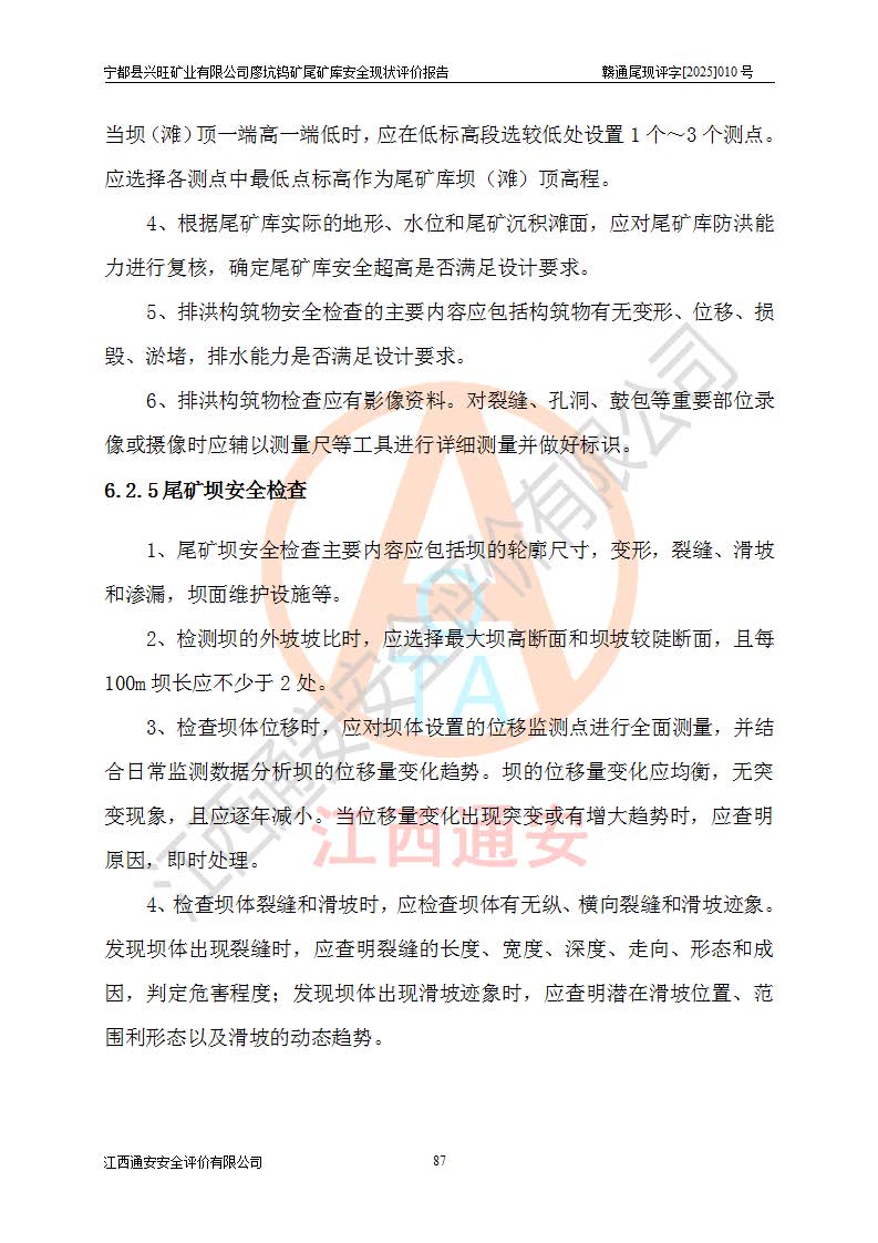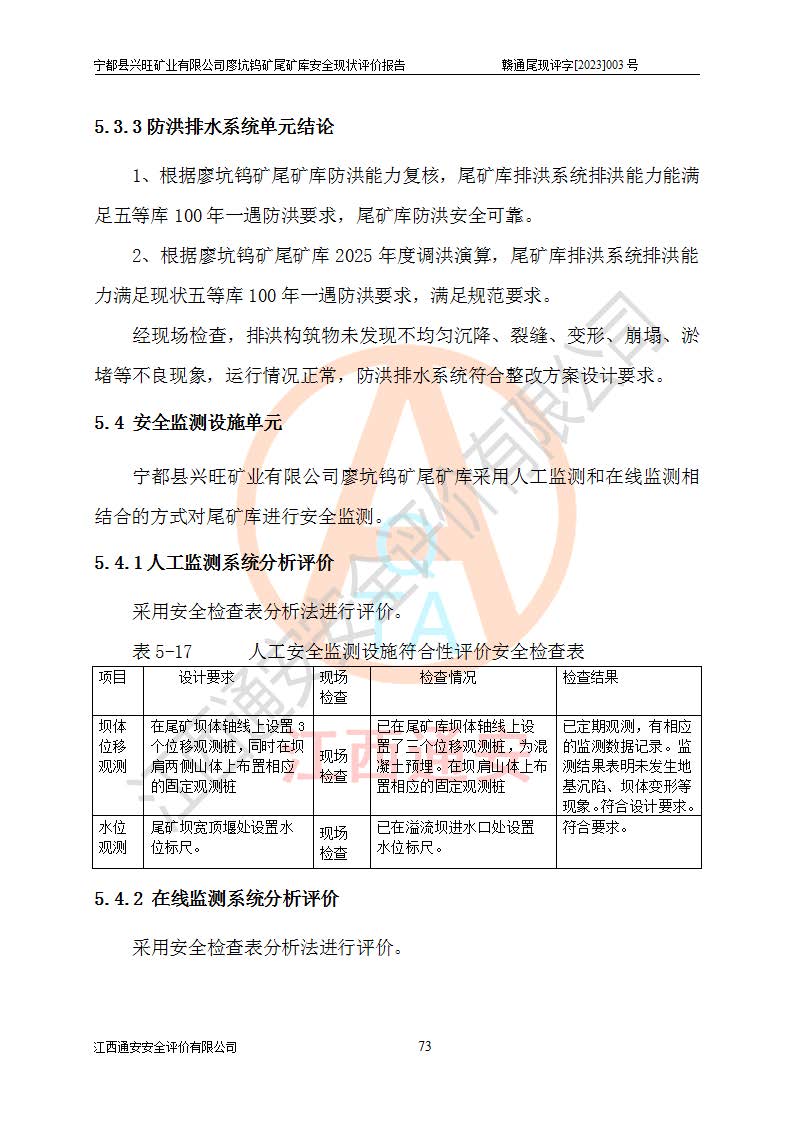 寧都縣興旺礦業(yè)有限公司廖坑鎢礦位于寧都縣縣城北西直距約15km處的安福鄉(xiāng)西甲村,地理坐標:東經(jīng)115°50′48″;北緯26°32′1″。寧都縣興旺礦業(yè)有限公司成立于2006年03月29日,統(tǒng)一社會信用代碼為91360730787253633E,企業(yè)類型為有限責任公司(自然人投資或控股),企業(yè)注冊地位于江西省贛州市寧都縣安福鄉(xiāng)西甲村,法定**人為曾德強,注冊資本為1915萬元人民幣,所屬行業(yè)為有色金屬礦采選業(yè),經(jīng)營范圍包括鎢砂開采及廢砂石加工、銷售。 廖坑鎢礦尾礦庫位于寧都縣安福鄉(xiāng)西甲村、選礦廠東面約1.17Km的下游溝谷中,選礦廠年生產(chǎn)工作日300d,尾礦堆積干容重1.60 t/m3。尾礦庫匯水面積1.927km2,尾礦壩為漿砌塊石重力壩,壩頂高程595.0m,清基后壩底高程為571.0m,壩高24.0m,壩頂寬度2.7m,壩頂軸線長75.0m;上游壩坡1:0,下游壩坡1:1.0。尾礦從庫尾進行排放,設(shè)計總庫容8.5×104m3,服務年限10.9年。尾礦庫總占地面積約21.0畝。為山谷型五等庫。 該尾礦庫于1982年11月由寧都縣水電施工隊建設(shè)施工,1983年11月投產(chǎn),2007年1月由江西省冶金設(shè)計院編制了《寧都縣興旺礦業(yè)有限公司廖坑鎢礦尾礦庫整改方案設(shè)計》,2008年4月2日取得江西省安全生產(chǎn)監(jiān)督管理局頒發(fā)的安全生產(chǎn)許可證,證書編號(贛)FM安許證字[2008]M1268號。2022年江西通安安全評價有限公司編制了安全現(xiàn)狀評價報告,2022年7月15日由贛州市行政審批局下發(fā)了安全生產(chǎn)許可證,證號(贛)FM安許證字[2022]B0081號,(贛市行審證(3)字[2022]第274號),**期至2025年7月14日。 依照《非煤礦礦山企業(yè)安全生產(chǎn)許可證延期換證工作》的通知,根據(jù)***《安全生產(chǎn)許可證條例》、《江西省安全生產(chǎn)條例》、《非煤礦山安全生產(chǎn)許可證實施辦法》、《江西省非煤礦礦山企業(yè)安全生產(chǎn)許可證辦法》規(guī)定及非煤礦山安全評價導則的要求,受寧都縣興旺礦業(yè)有限公司的委托,我公司承擔廖坑鎢礦尾礦庫延期換證的安全現(xiàn)狀評價工作。 |