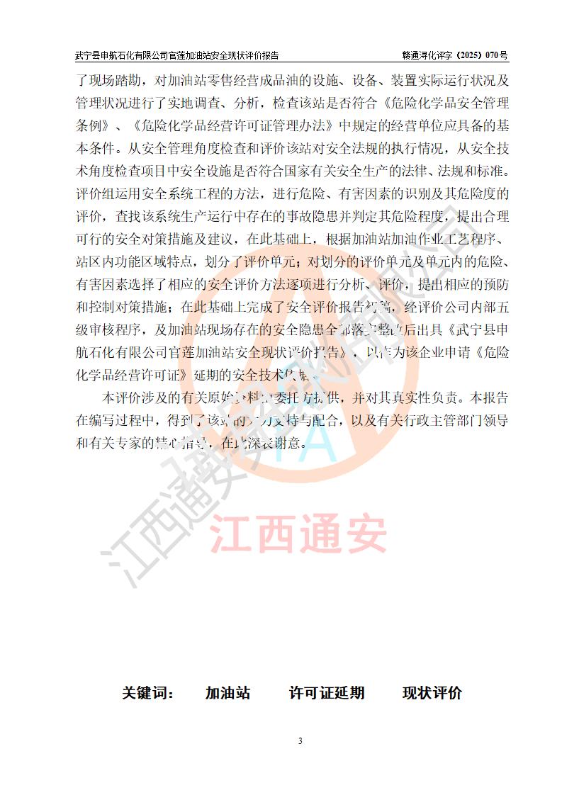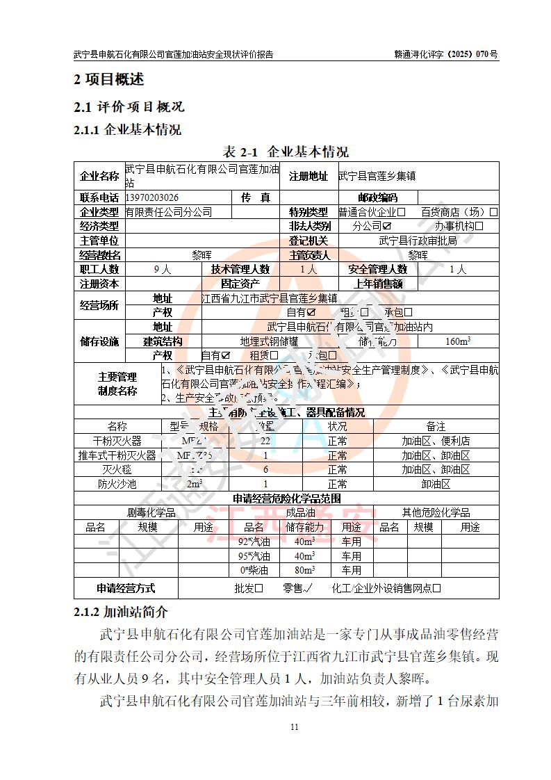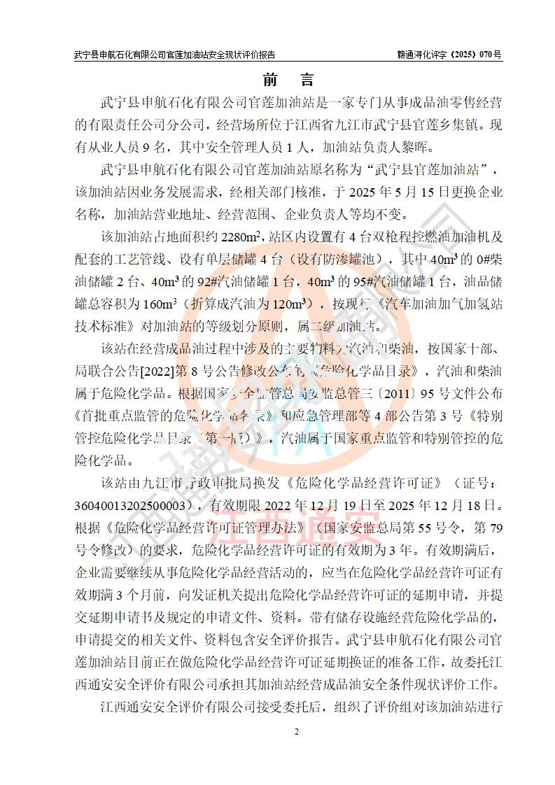 評價(jià)報(bào)告名稱 | 武寧縣申航石化有限公司官蓮加油站安全現(xiàn)狀評價(jià)報(bào)告 | |||