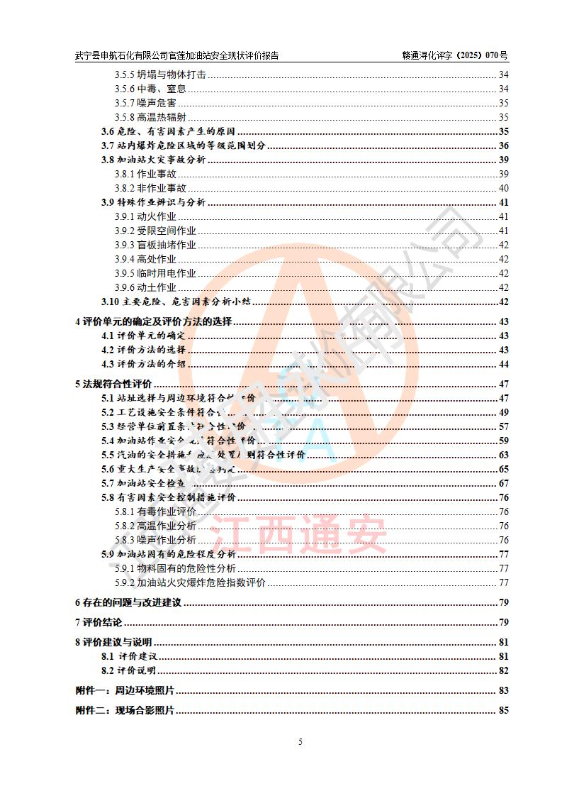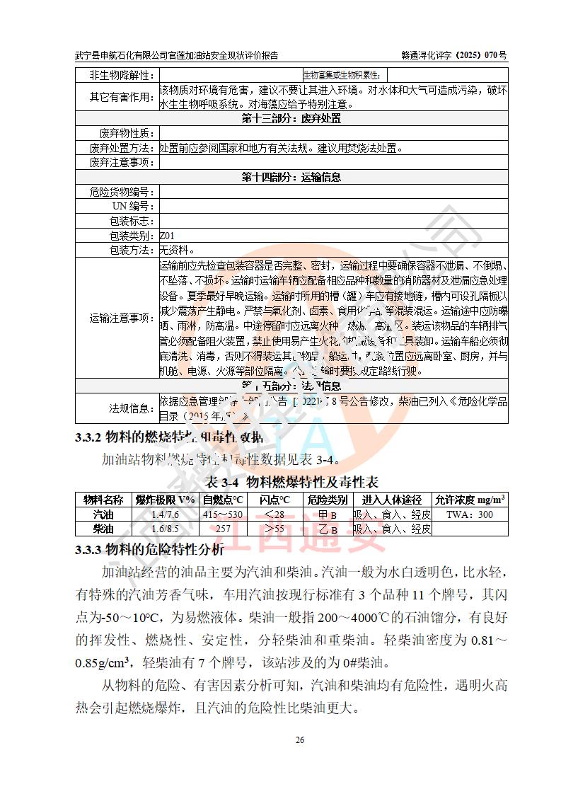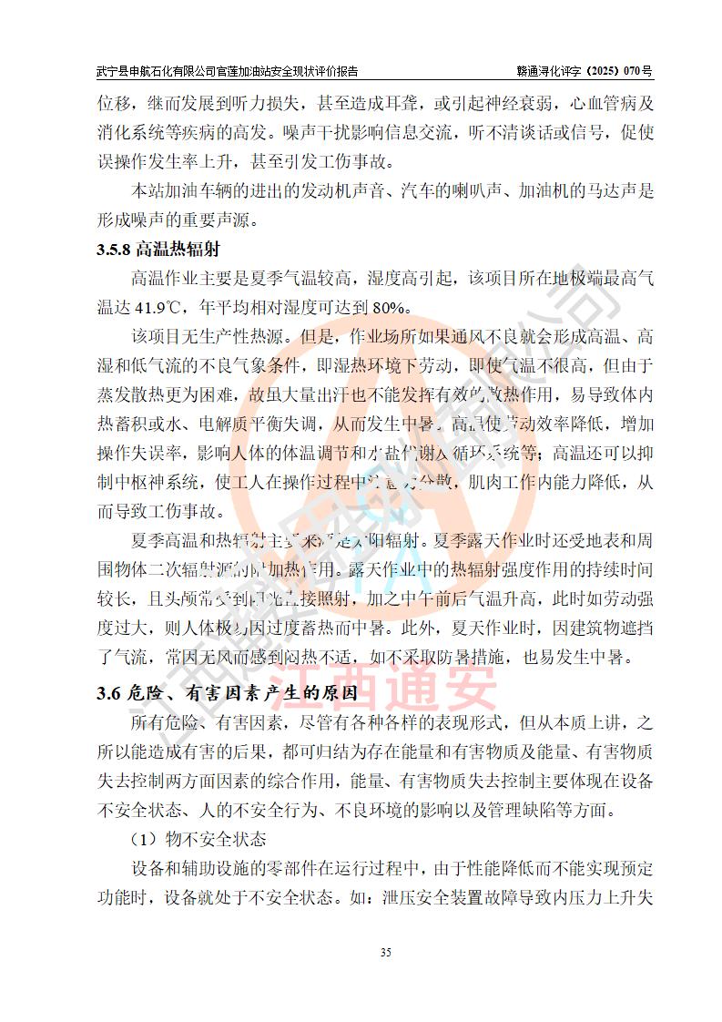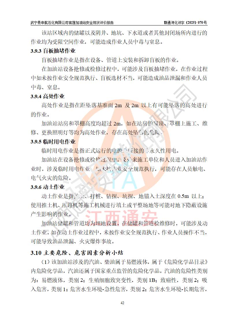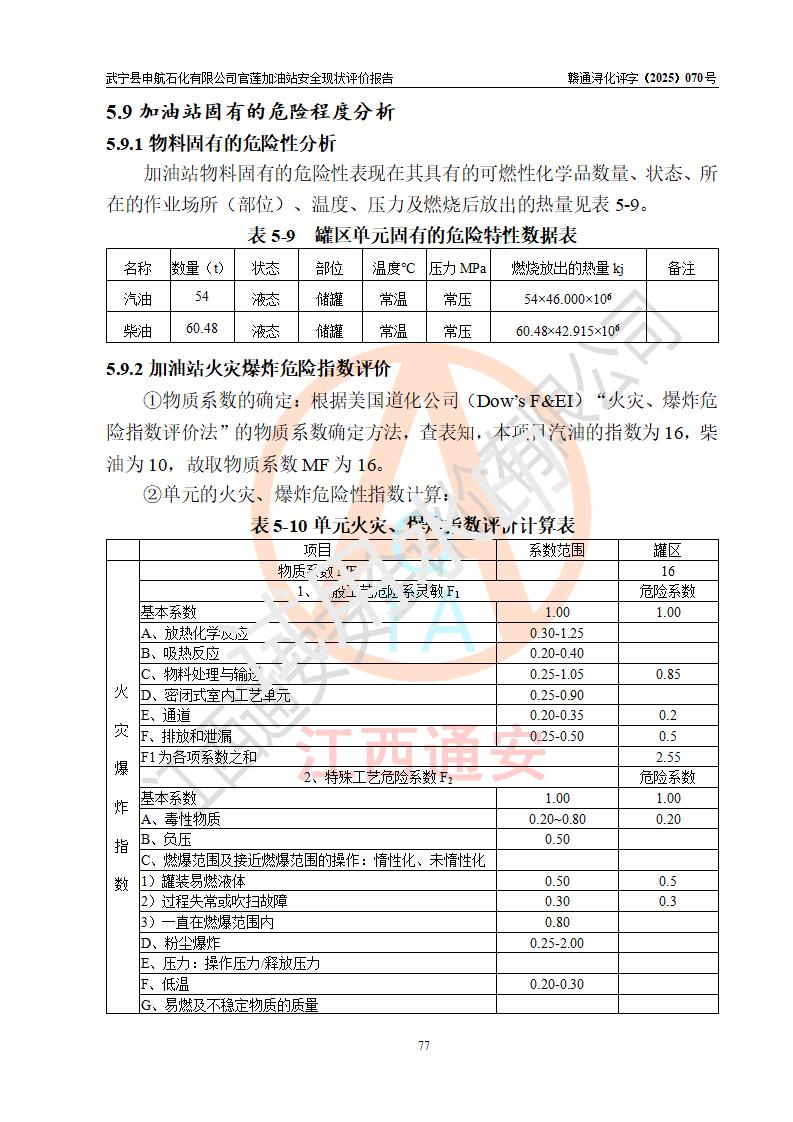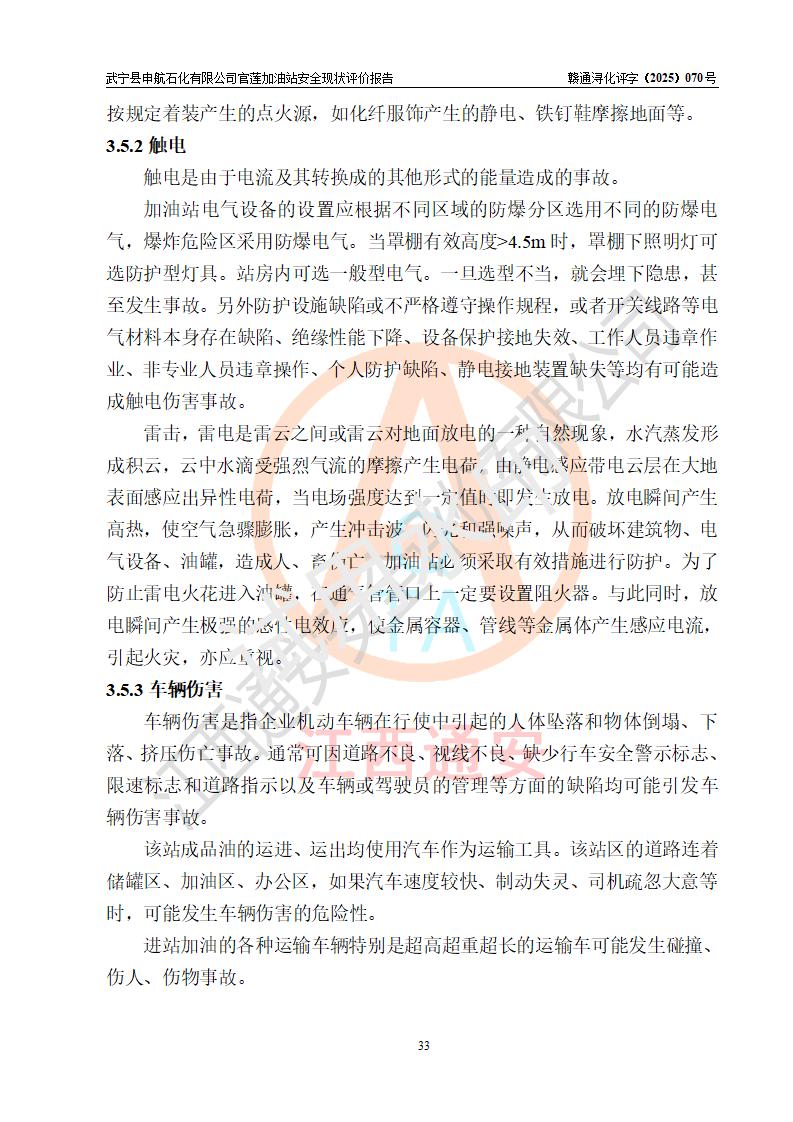 評價(jià)結(jié)論 | 武寧縣申航石化有限公司官蓮加油站涉及的安全條件、安全經(jīng)營條件、安全生產(chǎn)管理符合《危險(xiǎn)化學(xué)品經(jīng)營許可證管理辦法》、《汽車加油加氣加氫站技術(shù)標(biāo)準(zhǔn)》等**有關(guān)法規(guī)、標(biāo)準(zhǔn)、規(guī)范要求,能滿足危險(xiǎn)化學(xué)品經(jīng)營安全條件。 | |||
