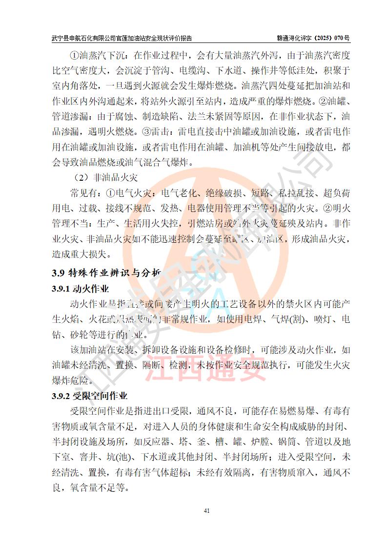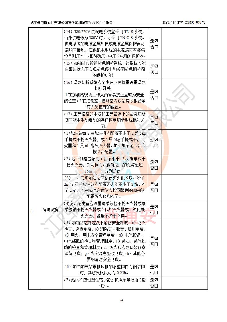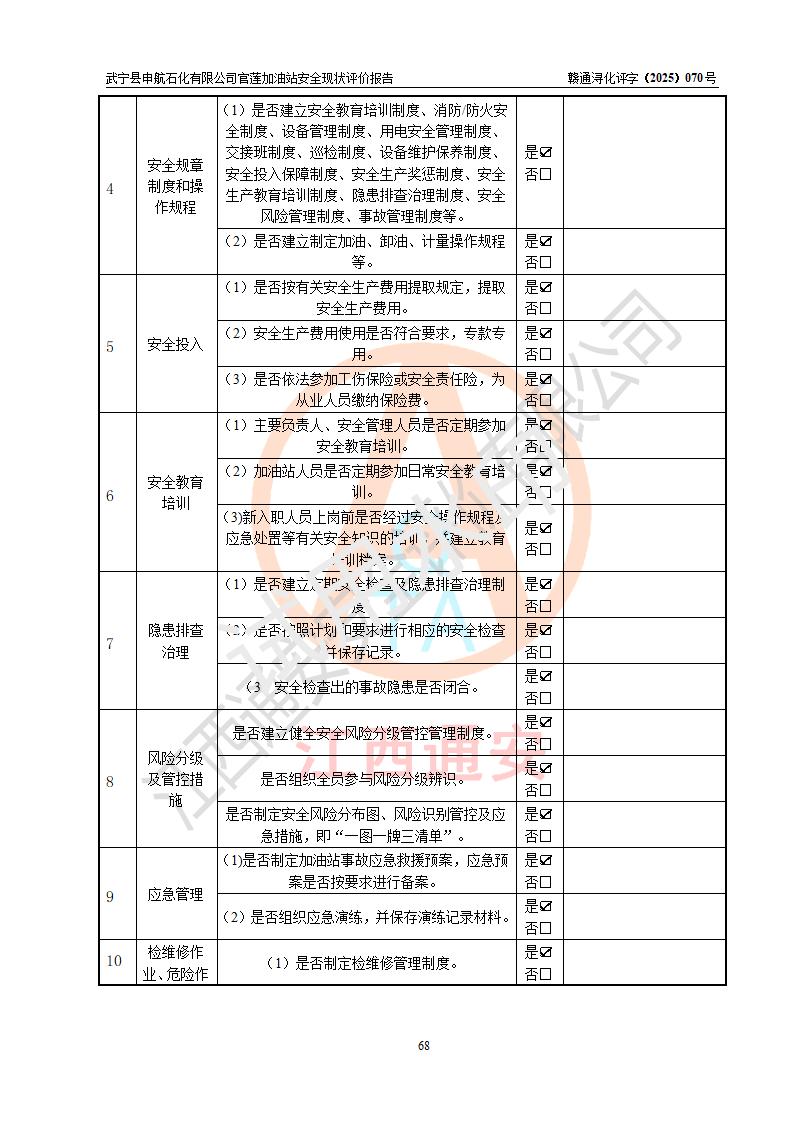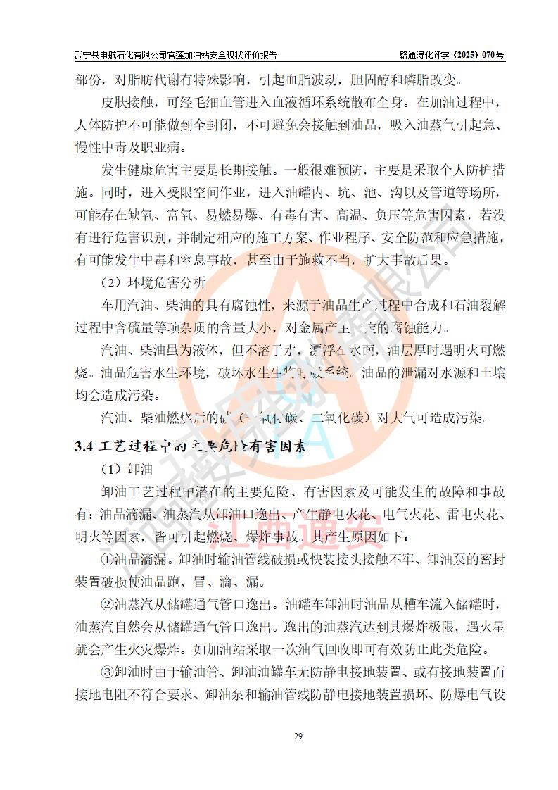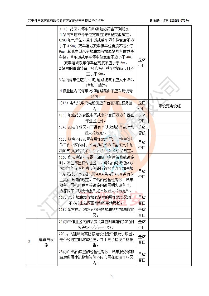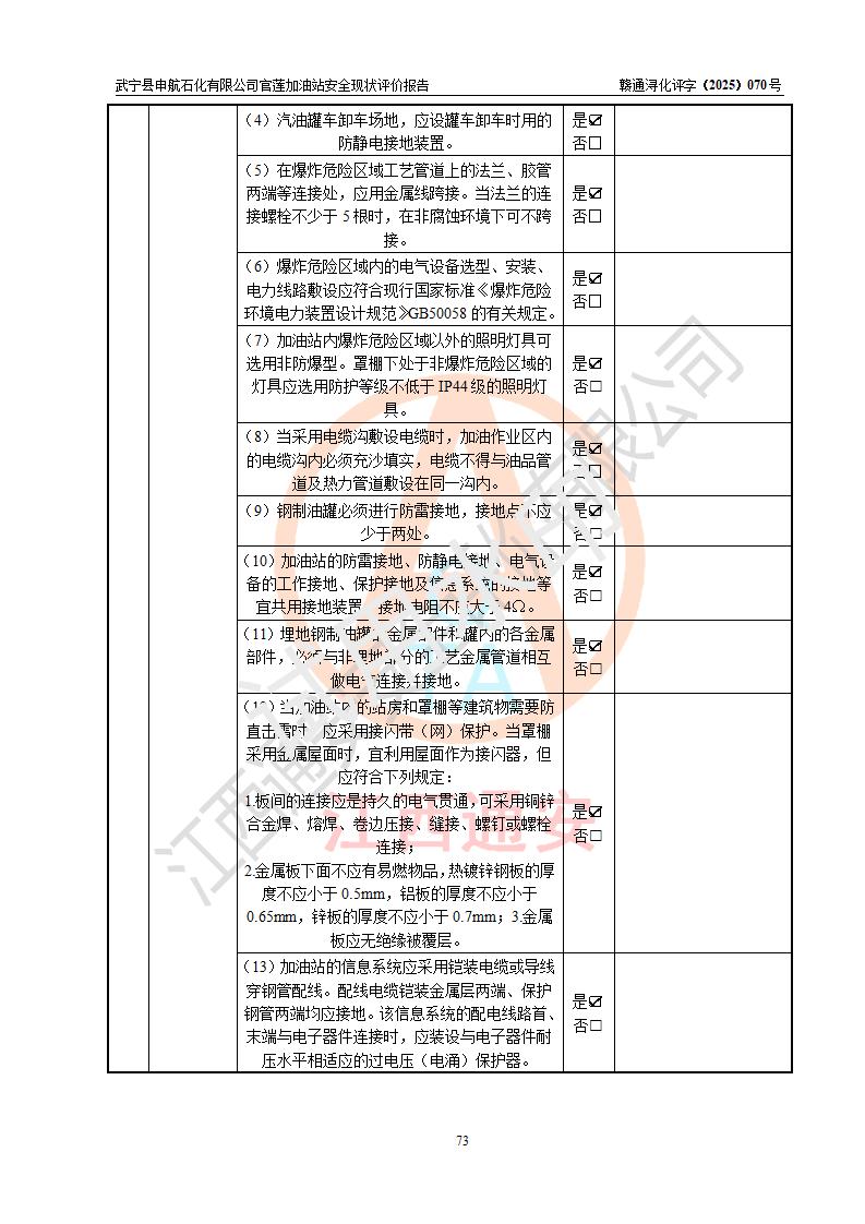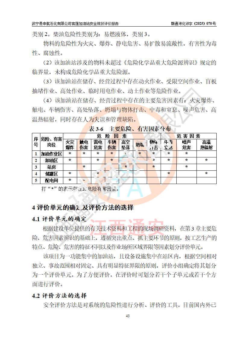 評價(jià)結(jié)論 | 武寧縣申航石化有限公司官蓮加油站涉及的安全條件、安全經(jīng)營條件、安全生產(chǎn)管理符合《危險(xiǎn)化學(xué)品經(jīng)營許可證管理辦法》、《汽車加油加氣加氫站技術(shù)標(biāo)準(zhǔn)》等**有關(guān)法規(guī)、標(biāo)準(zhǔn)、規(guī)范要求,能滿足危險(xiǎn)化學(xué)品經(jīng)營安全條件。 | |||