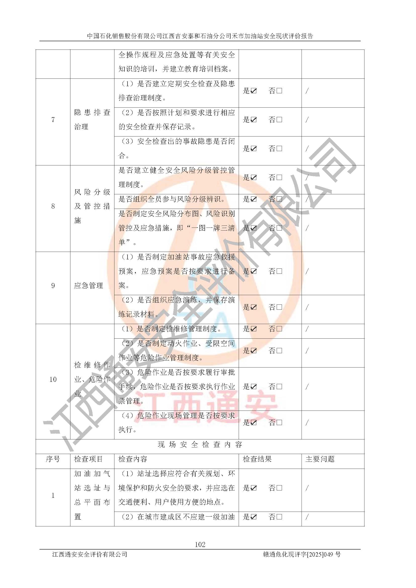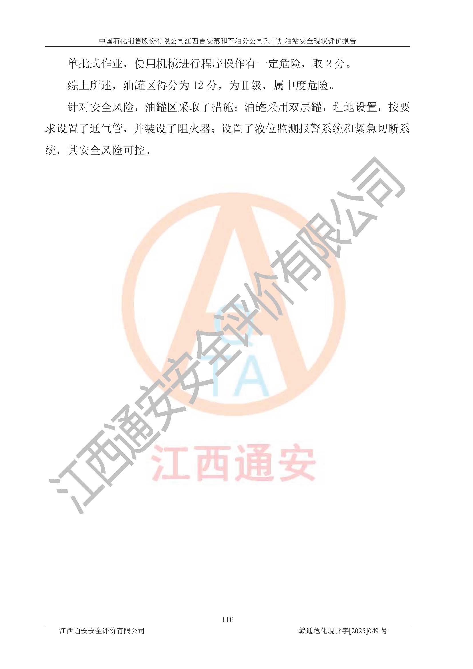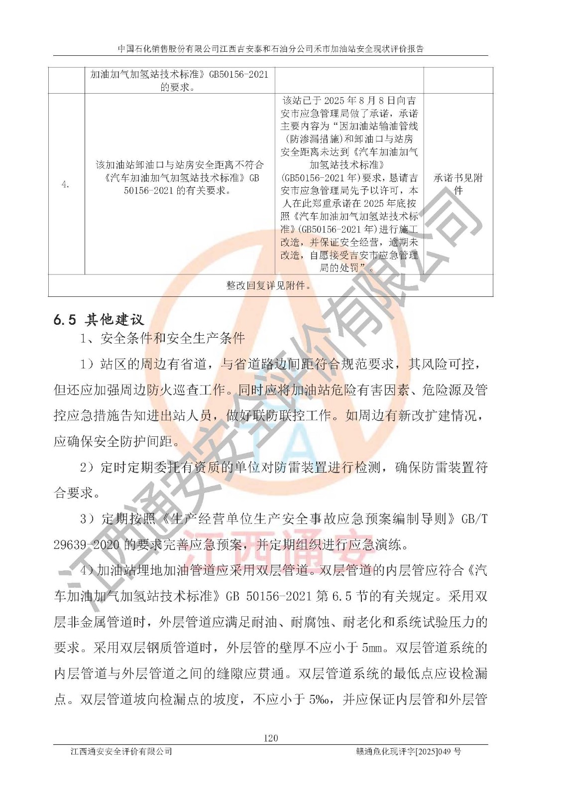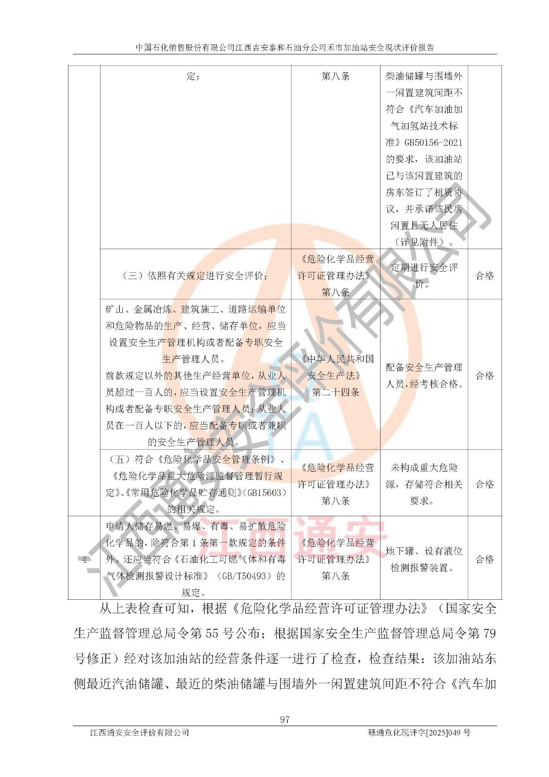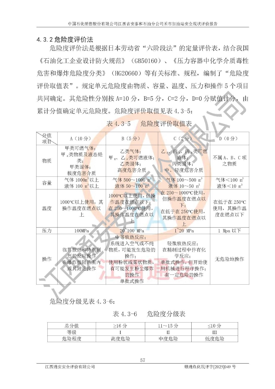 評(píng)價(jià)結(jié)論 | 評(píng)價(jià)結(jié)論:本報(bào)告認(rèn)為,江西宇能制藥股份有限公司年產(chǎn)10噸甲基潑尼松龍等生物制藥產(chǎn)品及中間體的產(chǎn)業(yè)化項(xiàng)目(年產(chǎn)60噸甲基潑尼松龍格氏物)的生產(chǎn)裝置現(xiàn)場(chǎng)情況與設(shè)計(jì)圖紙一致,SIS系統(tǒng)、DCS系統(tǒng)設(shè)計(jì)符合要求且運(yùn)行正常,有關(guān)從業(yè)人員資質(zhì)符合《江西省危險(xiǎn)化學(xué)品安全專(zhuān)項(xiàng)整治三年行動(dòng)實(shí)施方案》要求,安全設(shè)施及安全管理符合**及有關(guān)部門(mén)關(guān)于安全生產(chǎn)法律、法規(guī)、標(biāo)準(zhǔn)的要求,安全風(fēng)險(xiǎn)是受控制的,其風(fēng)險(xiǎn)程度是可以接受的,符合安全生產(chǎn)條件,能夠滿(mǎn)足安全生產(chǎn)的要求,具備安全設(shè)施“三同時(shí)”驗(yàn)收條件。 | |||