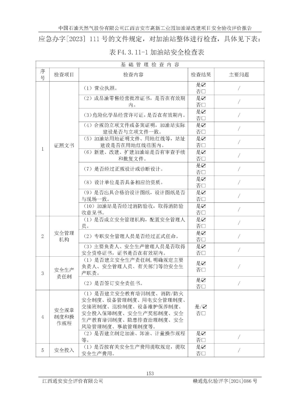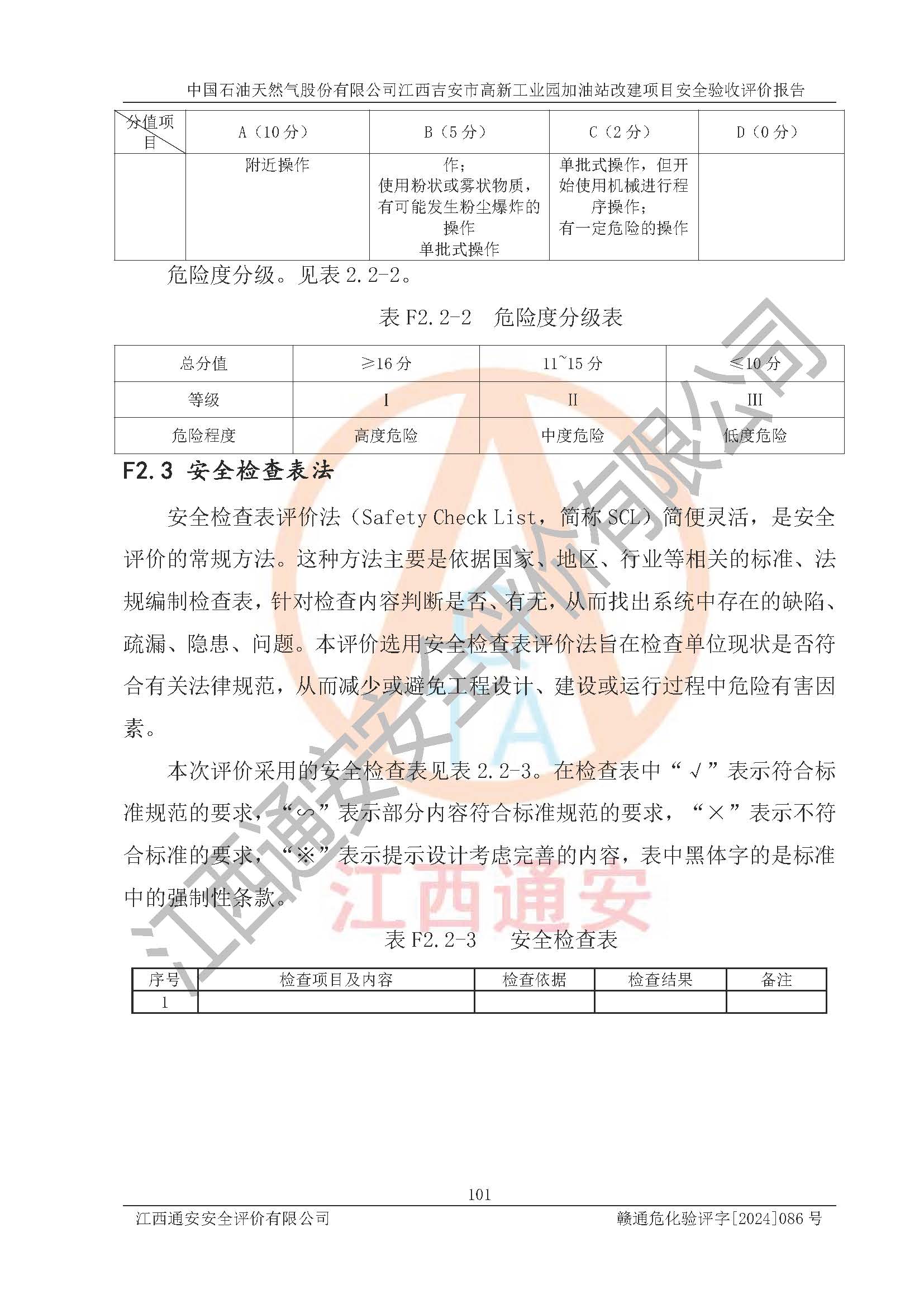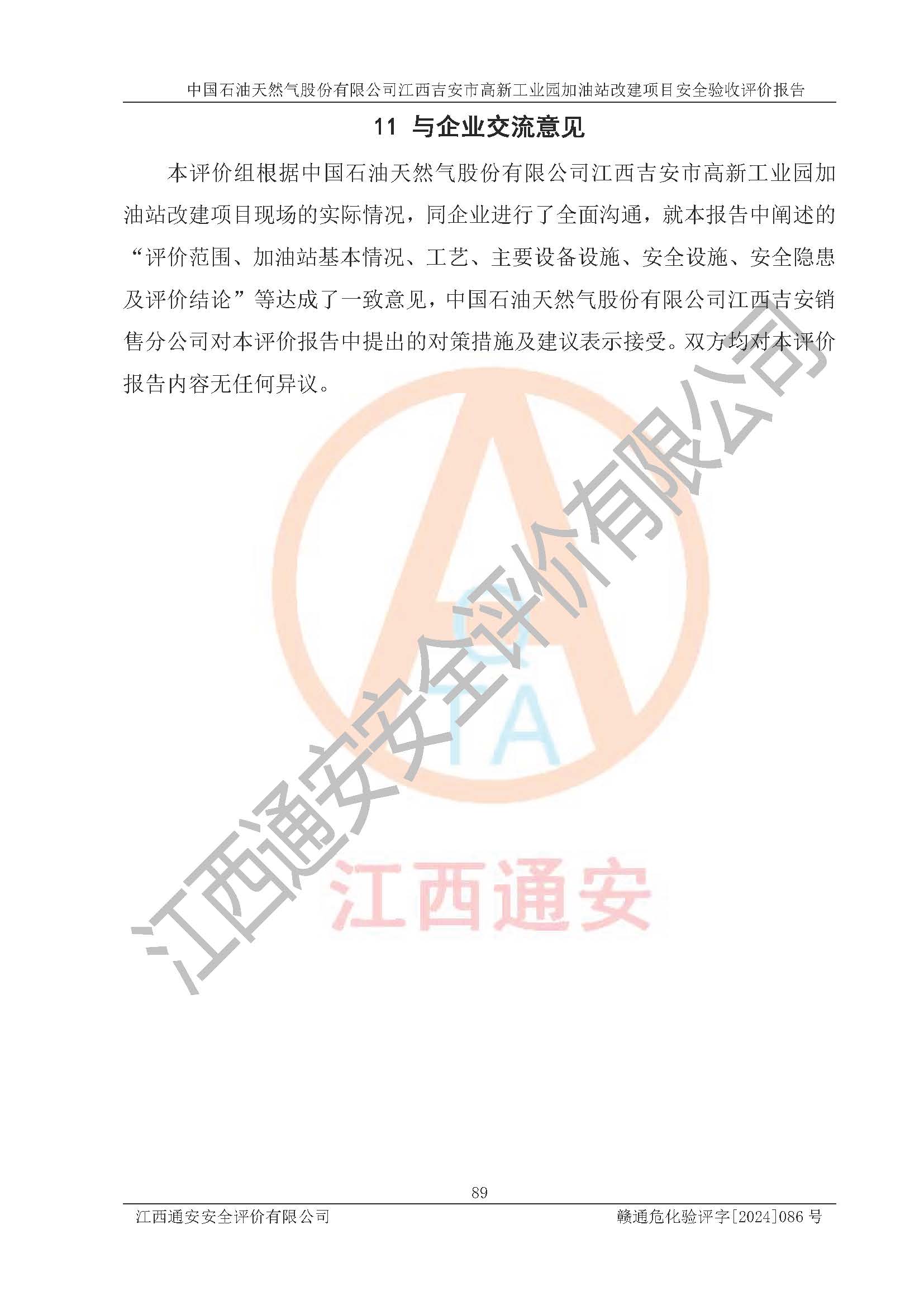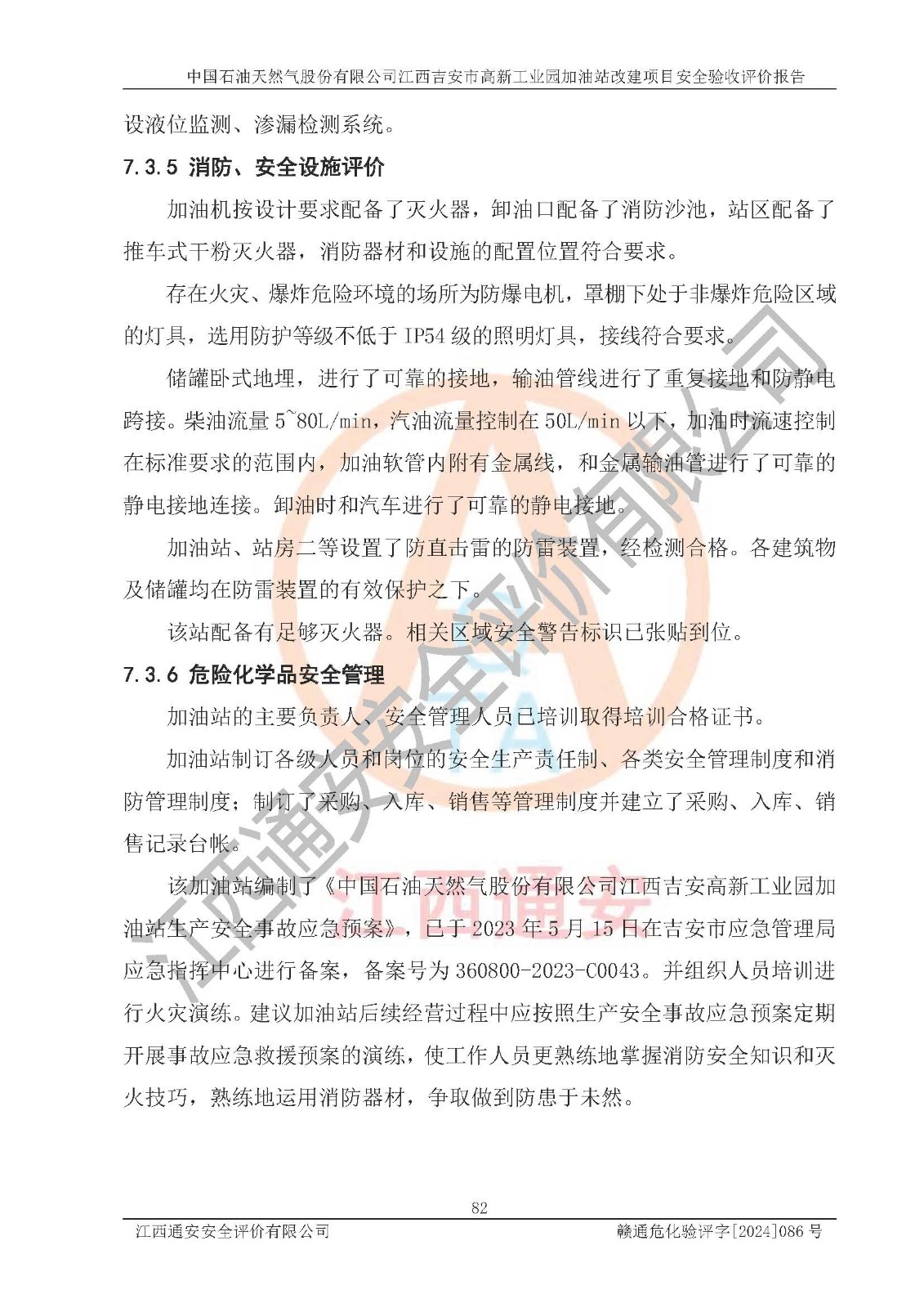 項目名稱 | 中國石油天然氣股份有限公司江西吉安市高新工業(yè)園加油站改建項目 安全驗收評價報告 | ||||