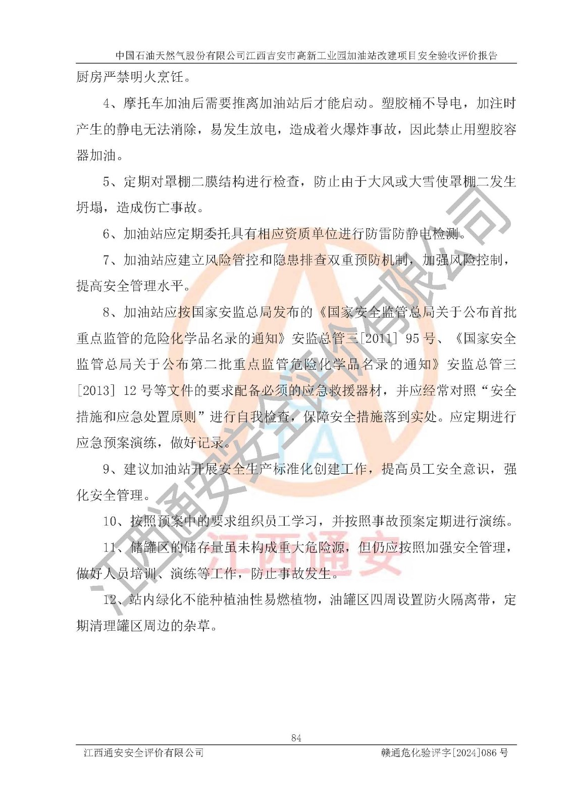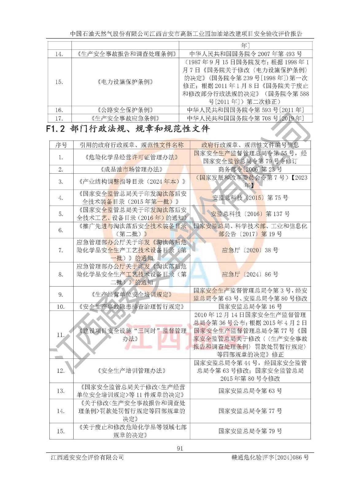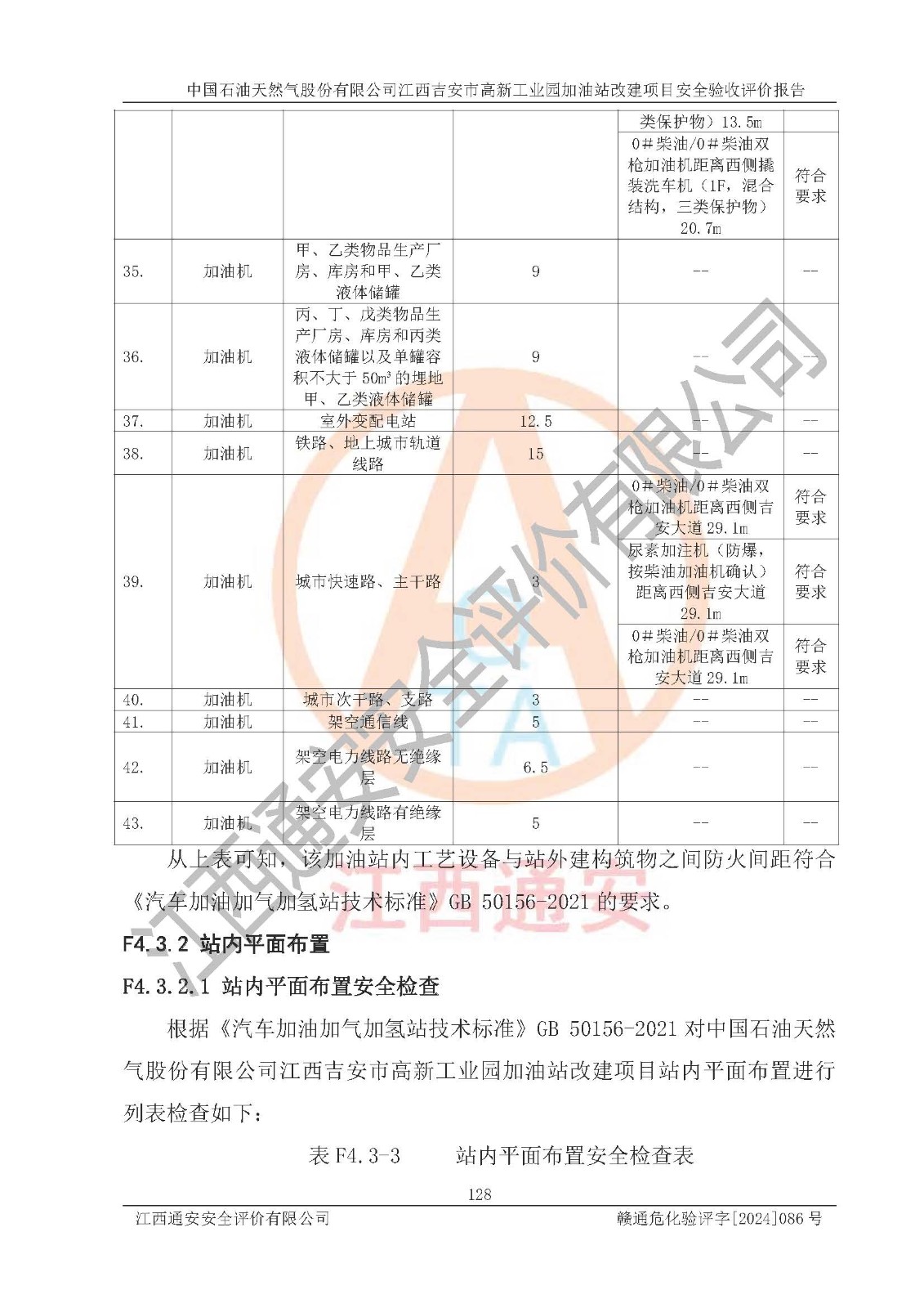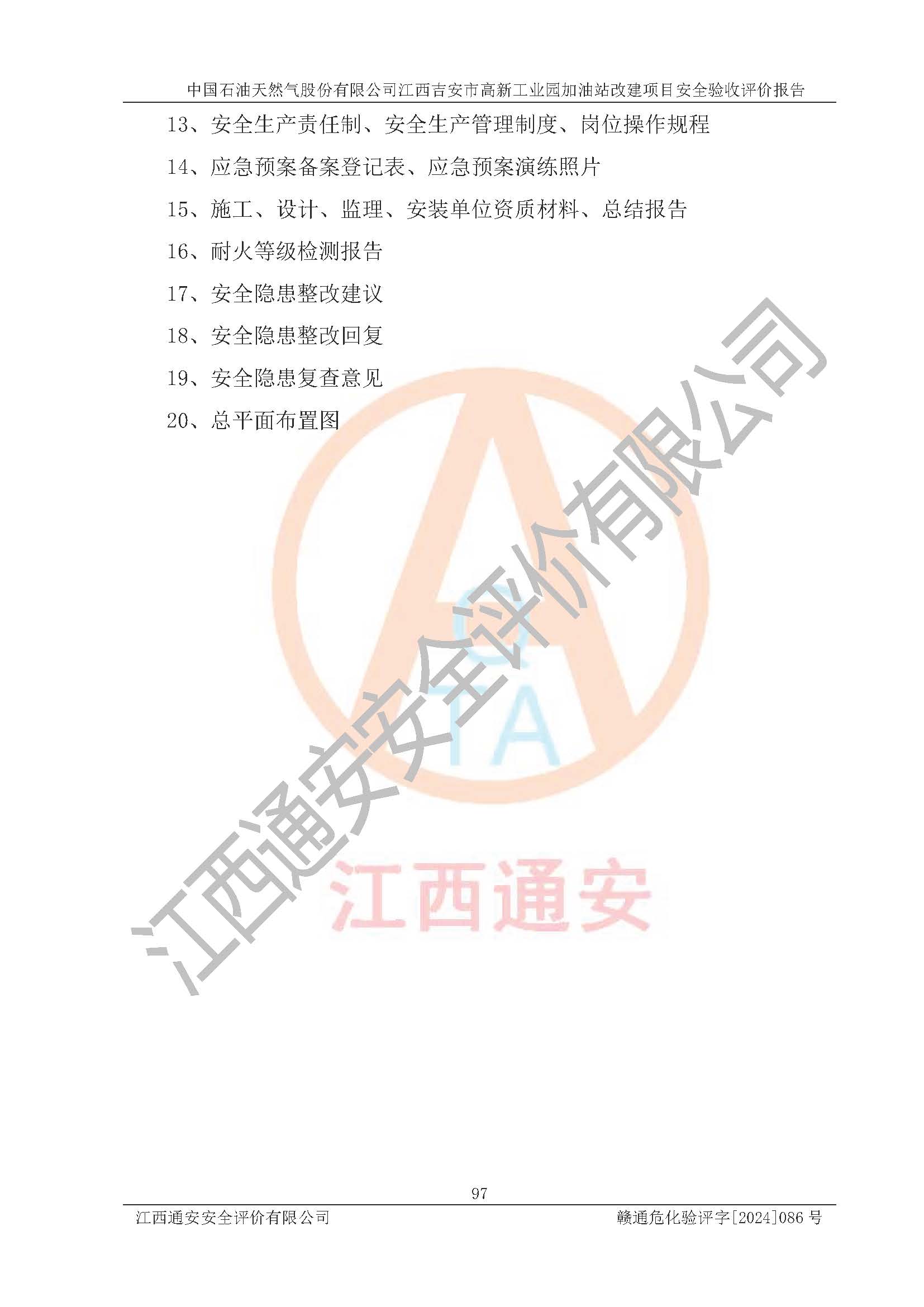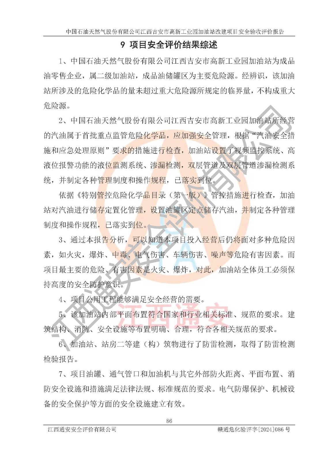 項目名稱 | 中國石油天然氣股份有限公司江西吉安市高新工業(yè)園加油站改建項目 安全驗收評價報告 | ||||