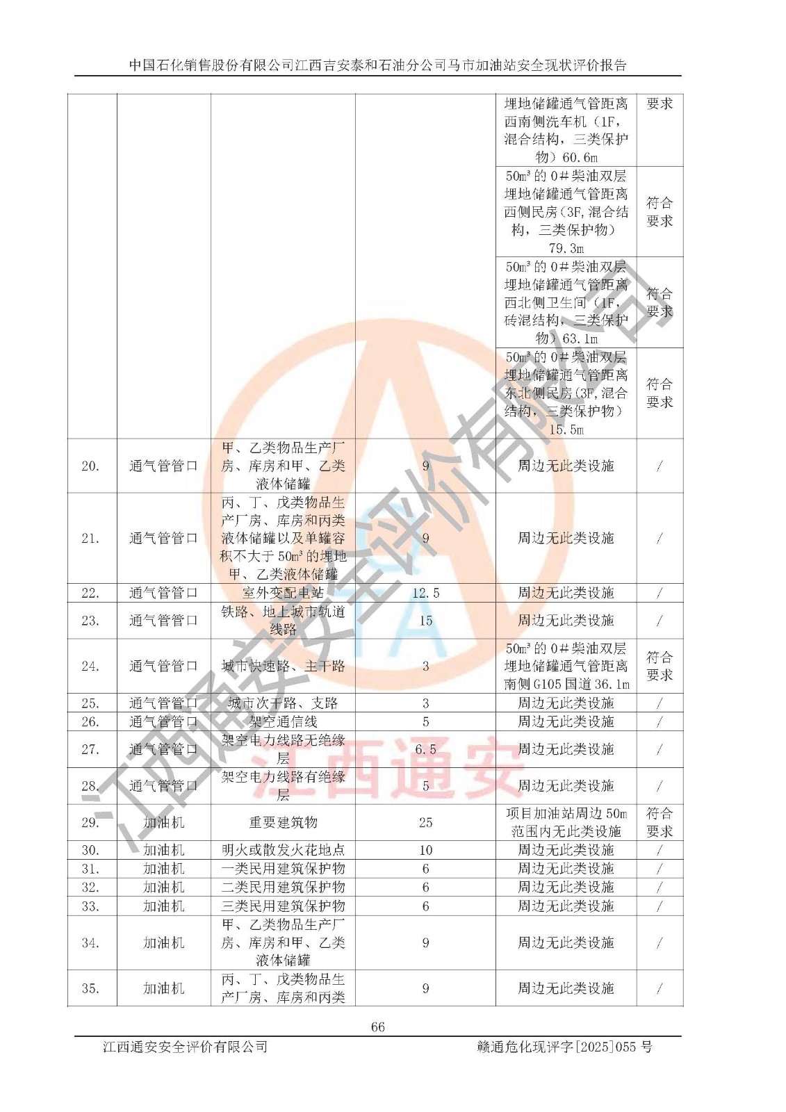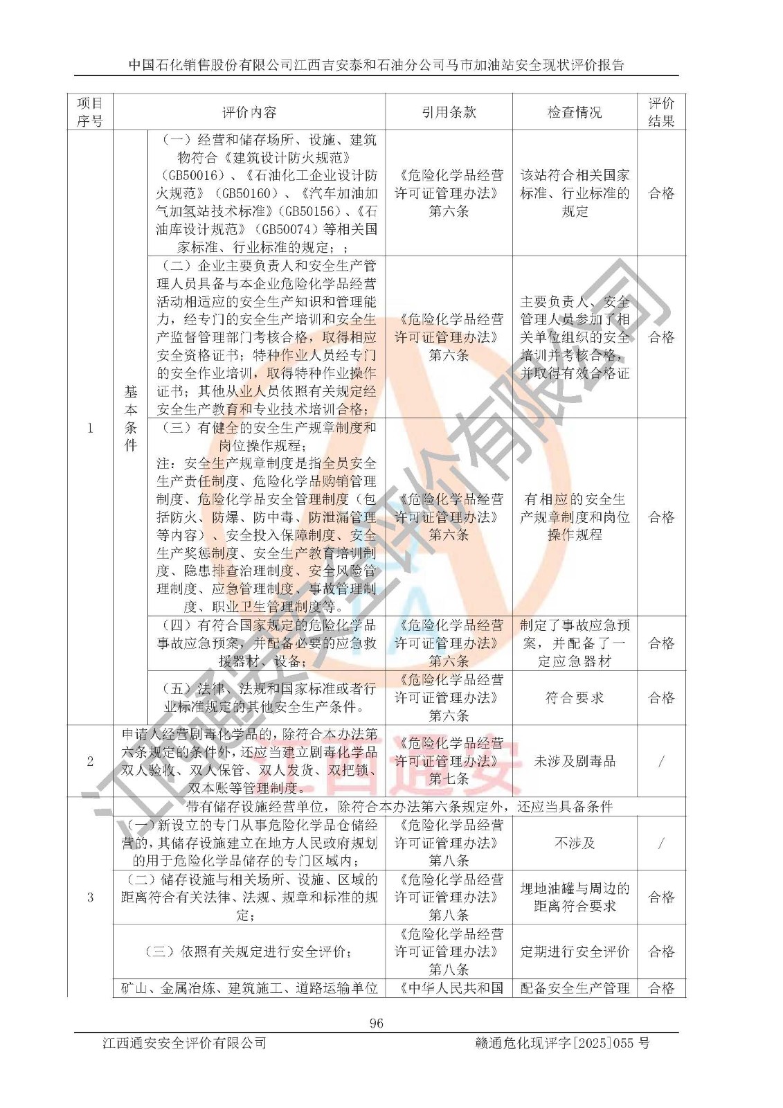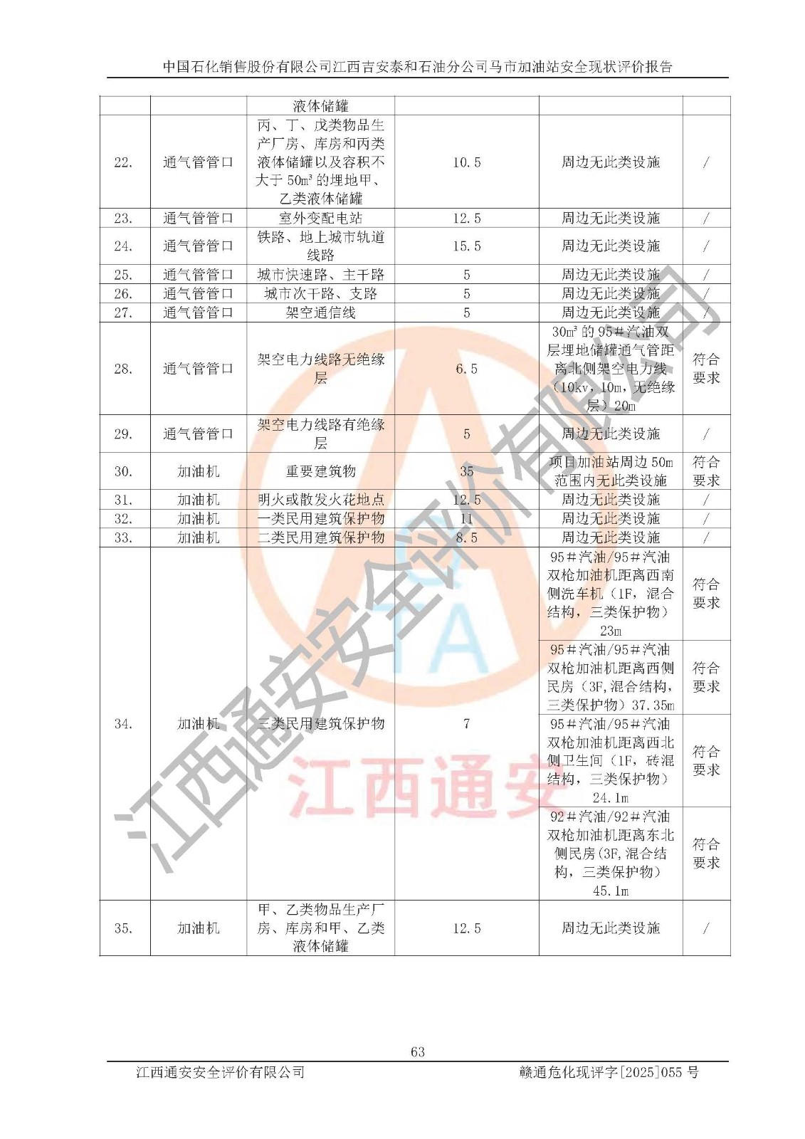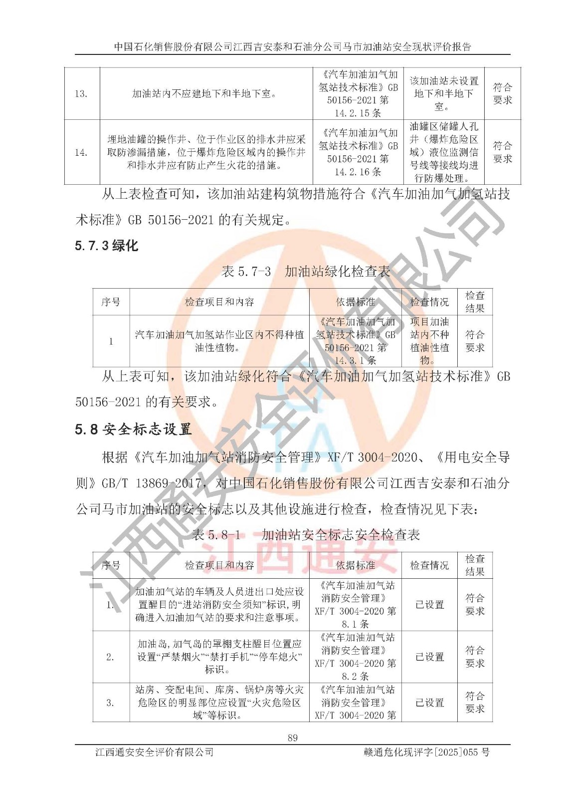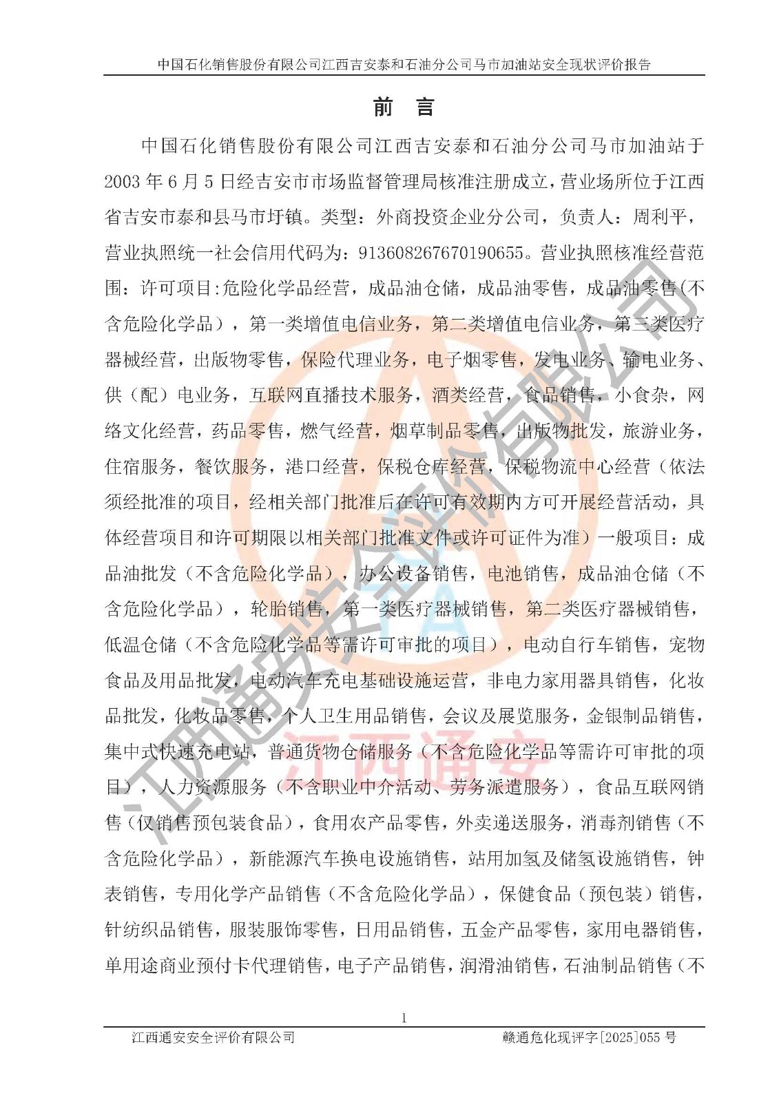 項目名稱 | 中國石化銷售股份有限公司江西吉安泰和石油分公司馬市加油站 安全現(xiàn)狀評價報告 | ||||