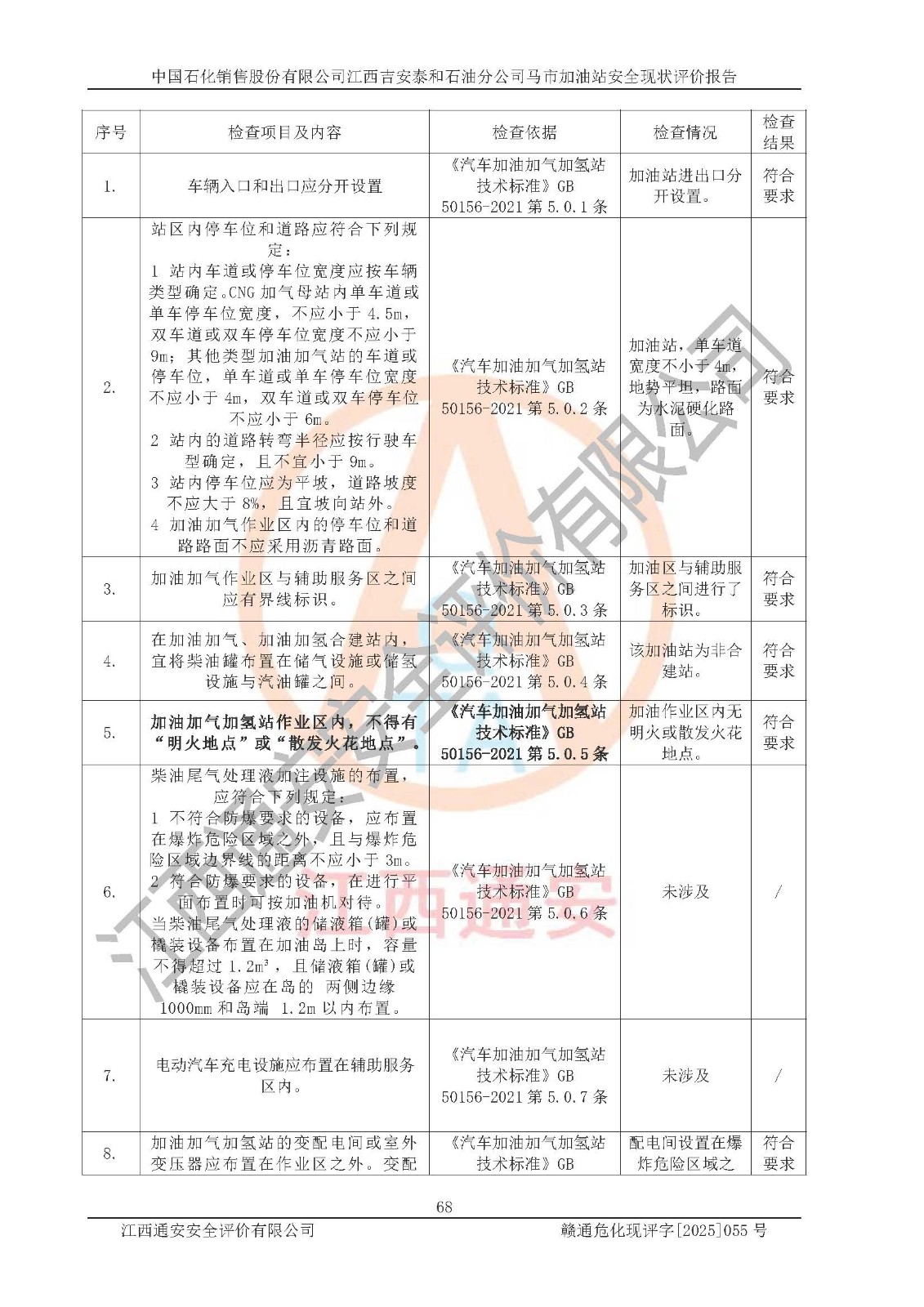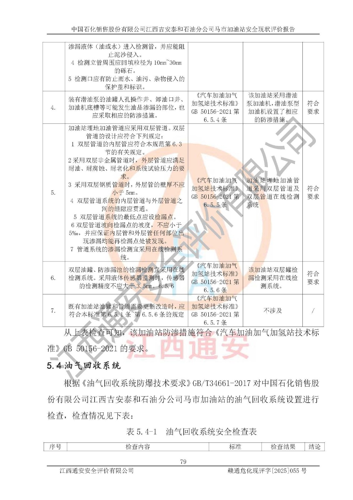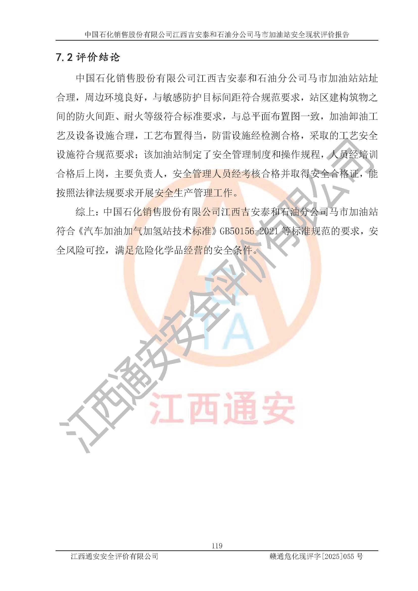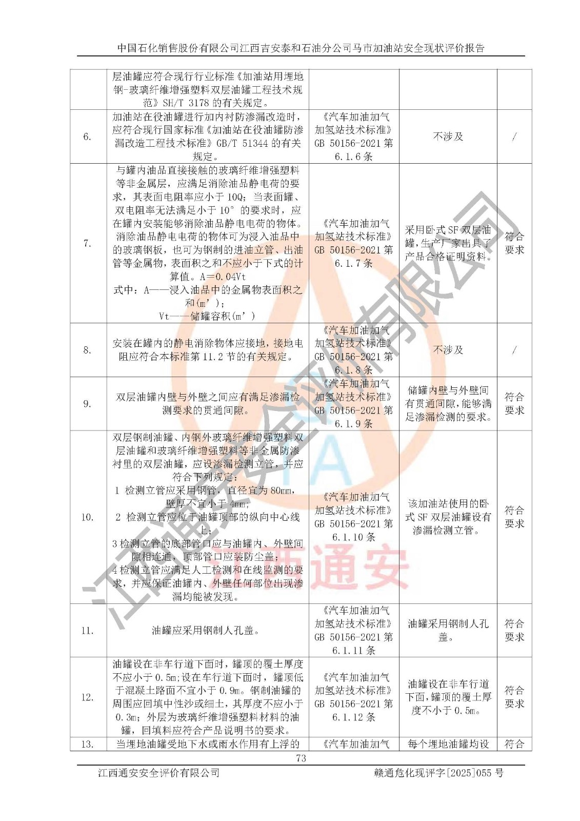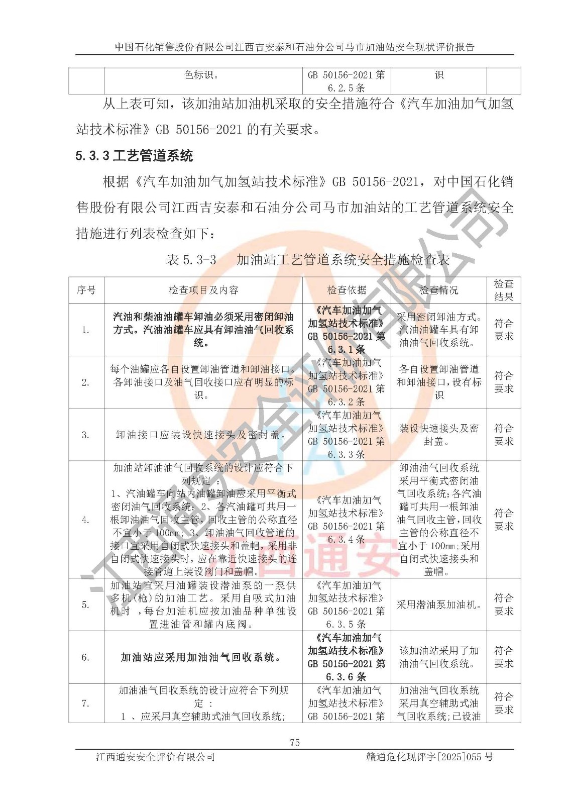 項目名稱 | 中國石化銷售股份有限公司江西吉安泰和石油分公司馬市加油站 安全現(xiàn)狀評價報告 | ||||