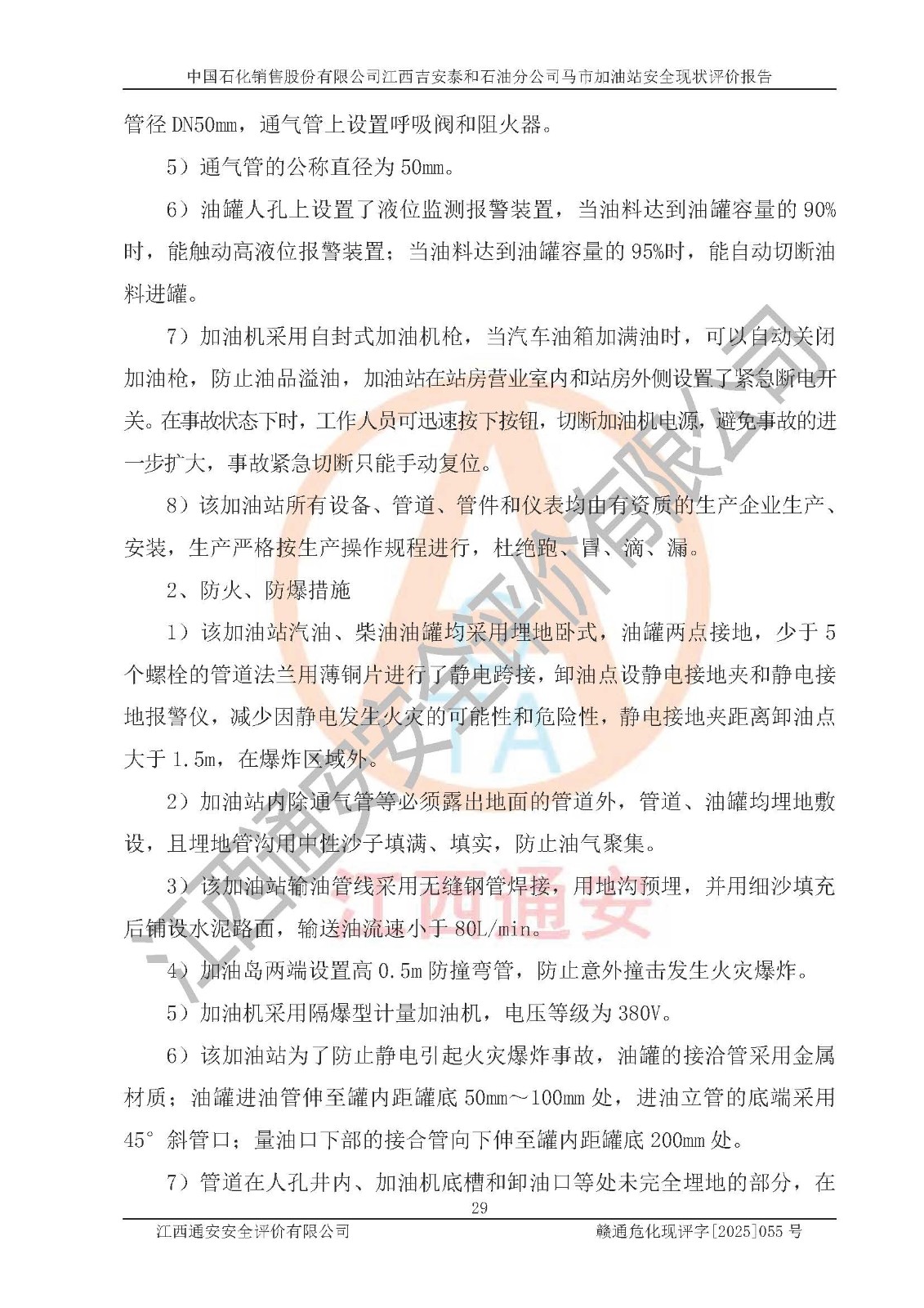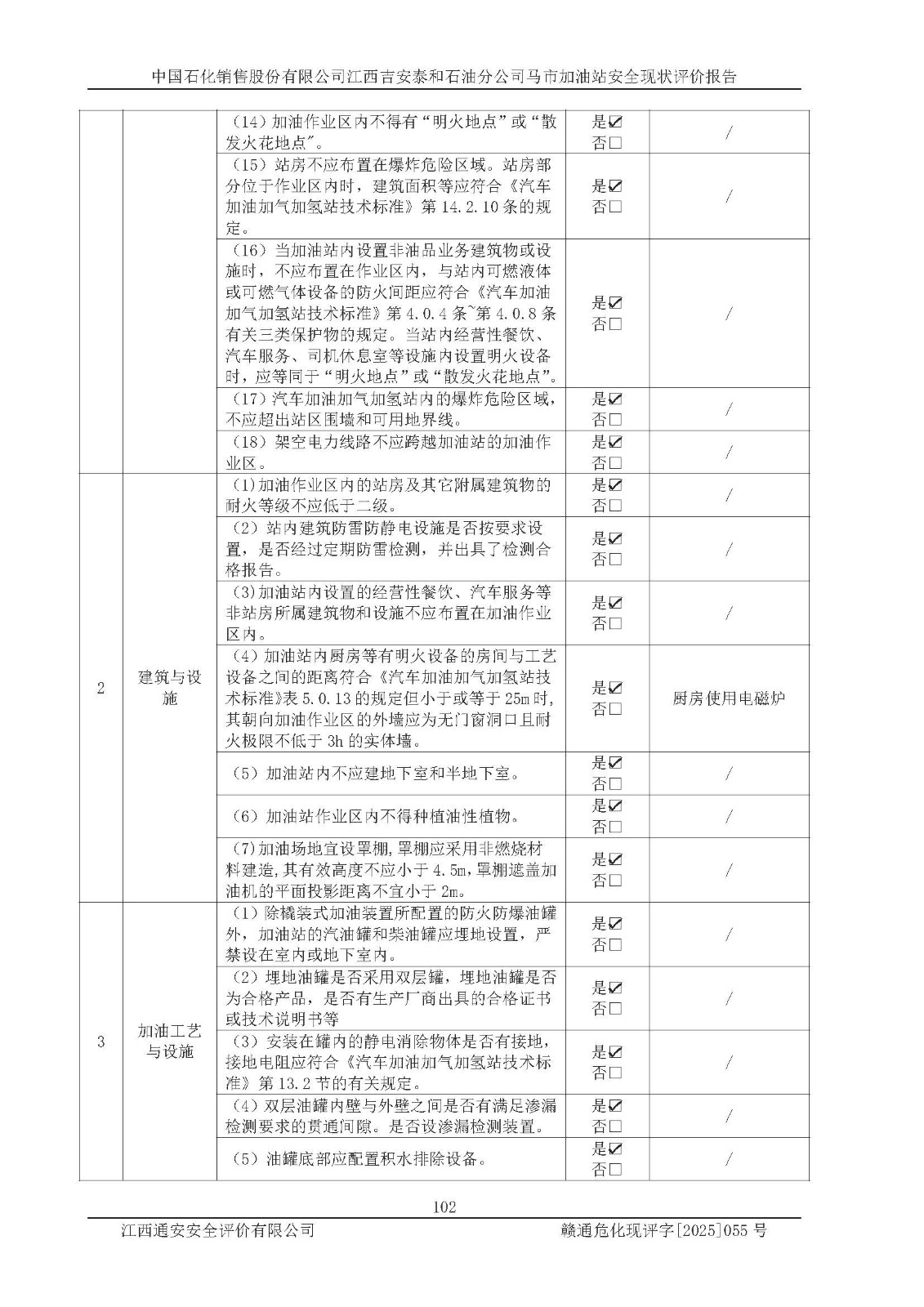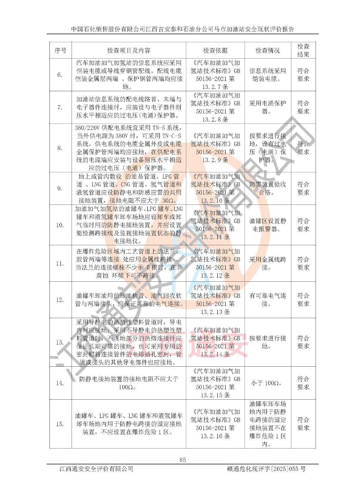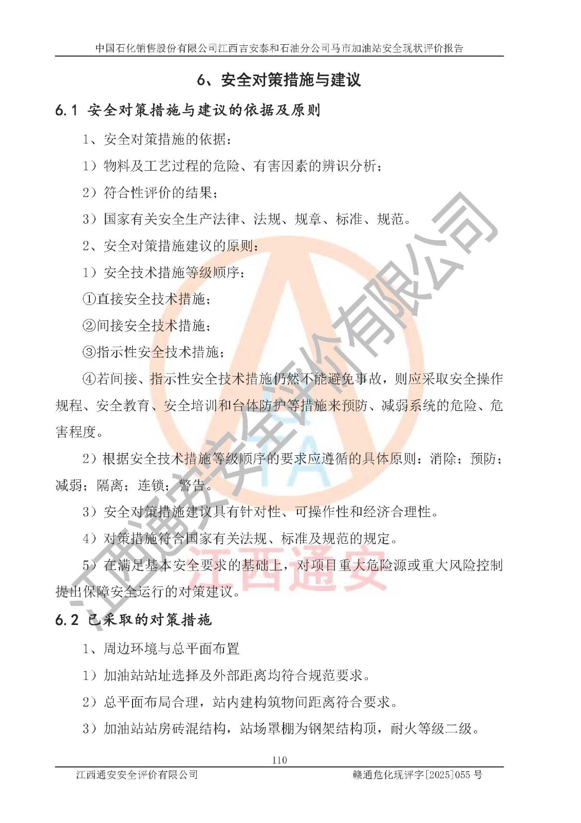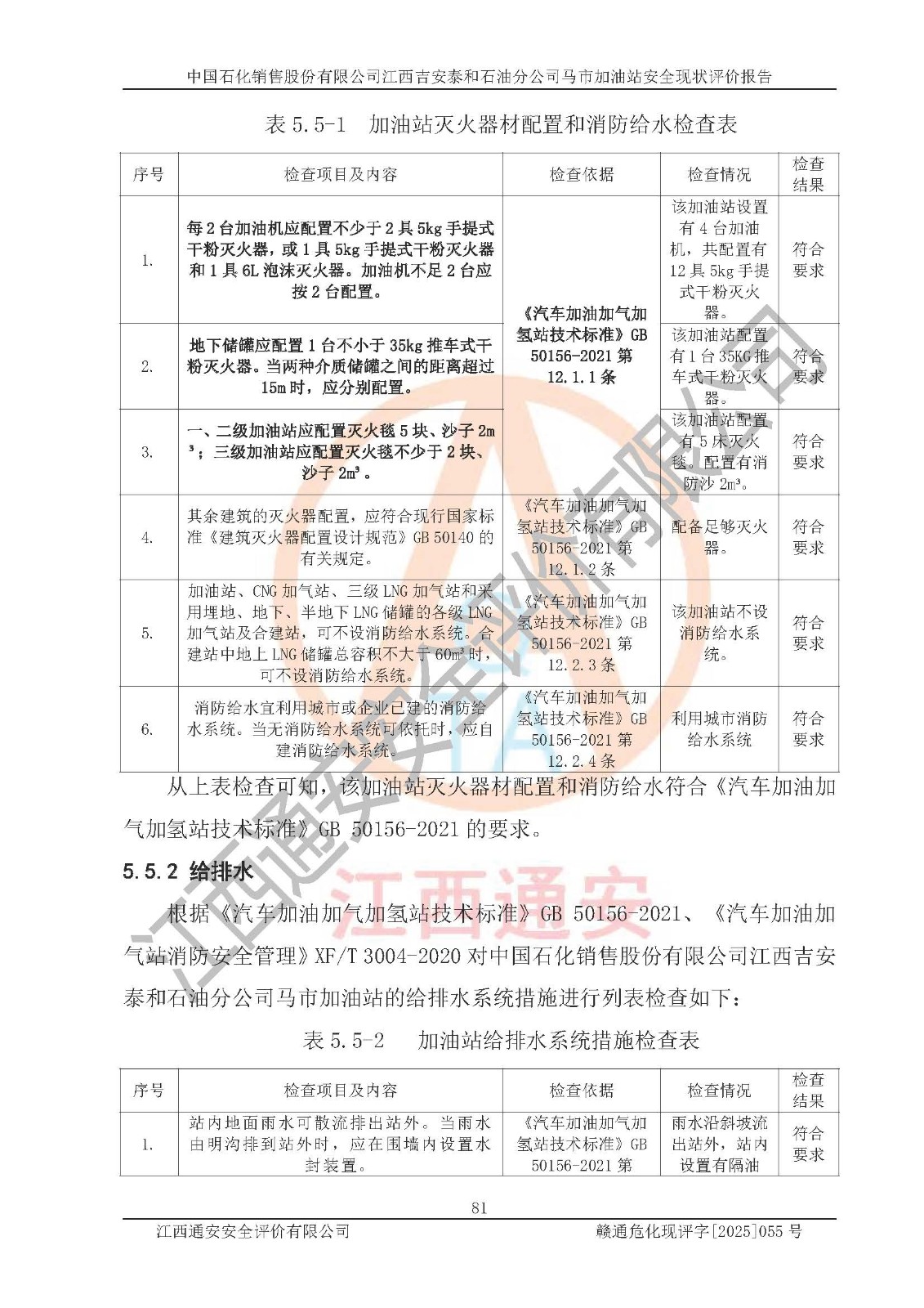 項目名稱 | 中國石化銷售股份有限公司江西吉安泰和石油分公司馬市加油站 安全現(xiàn)狀評價報告 | ||||
