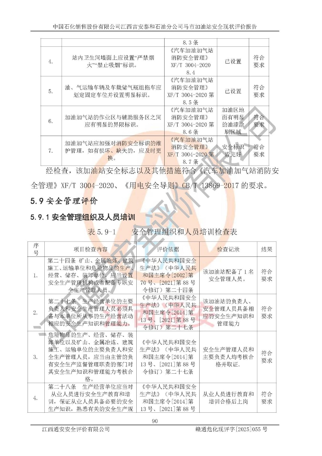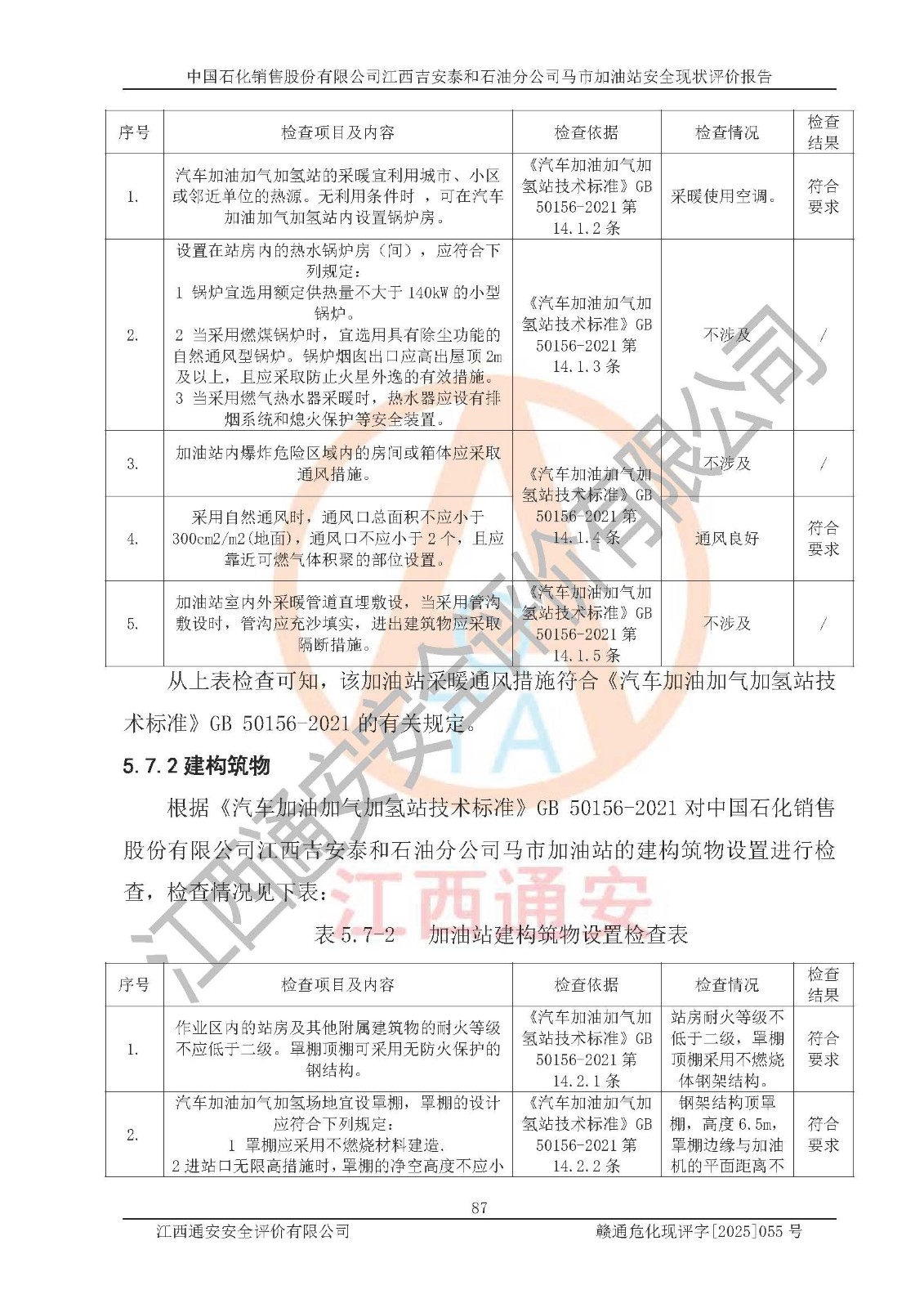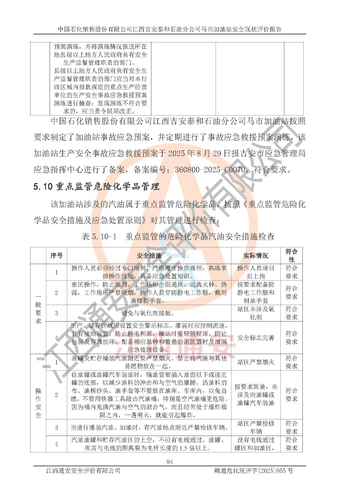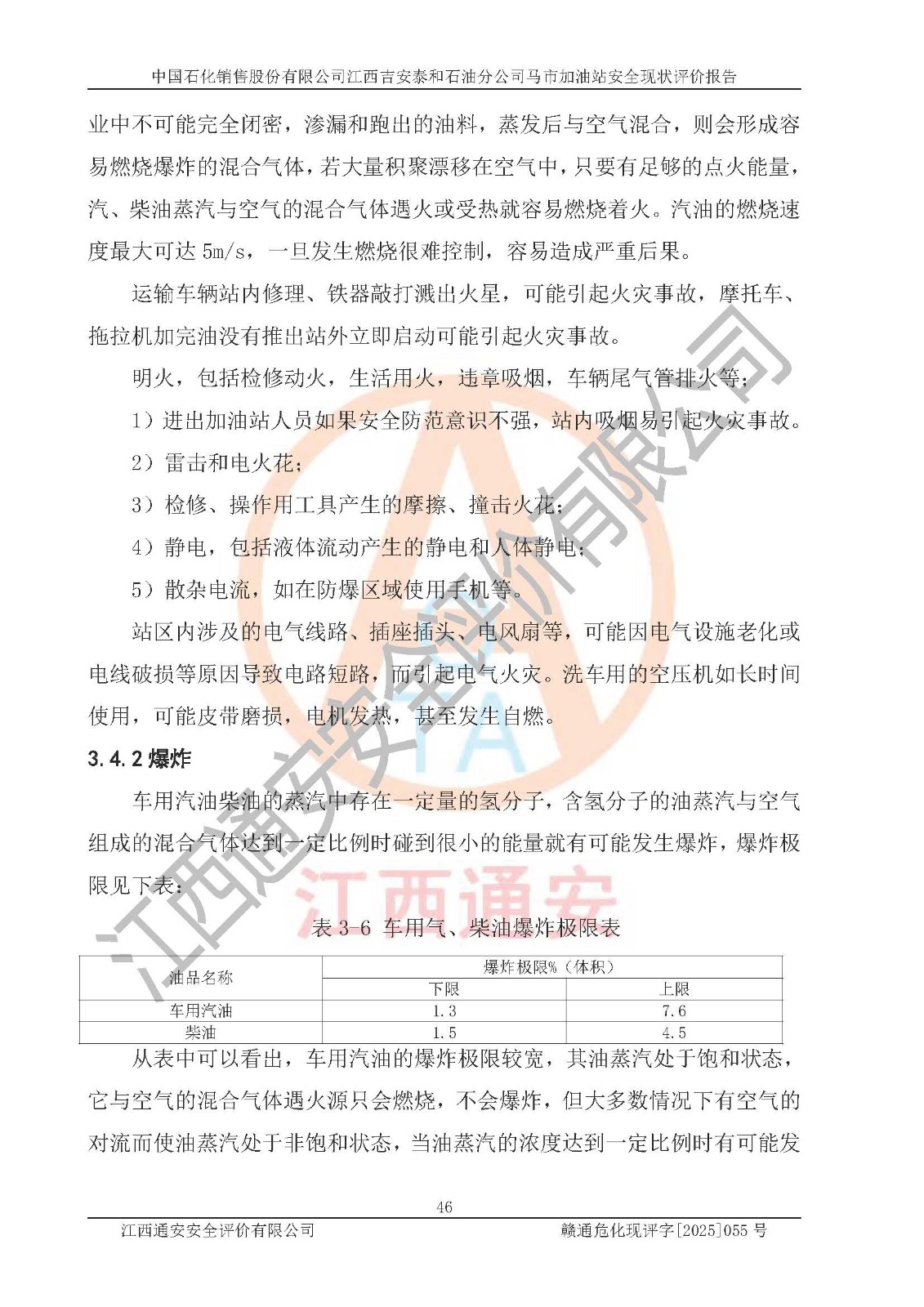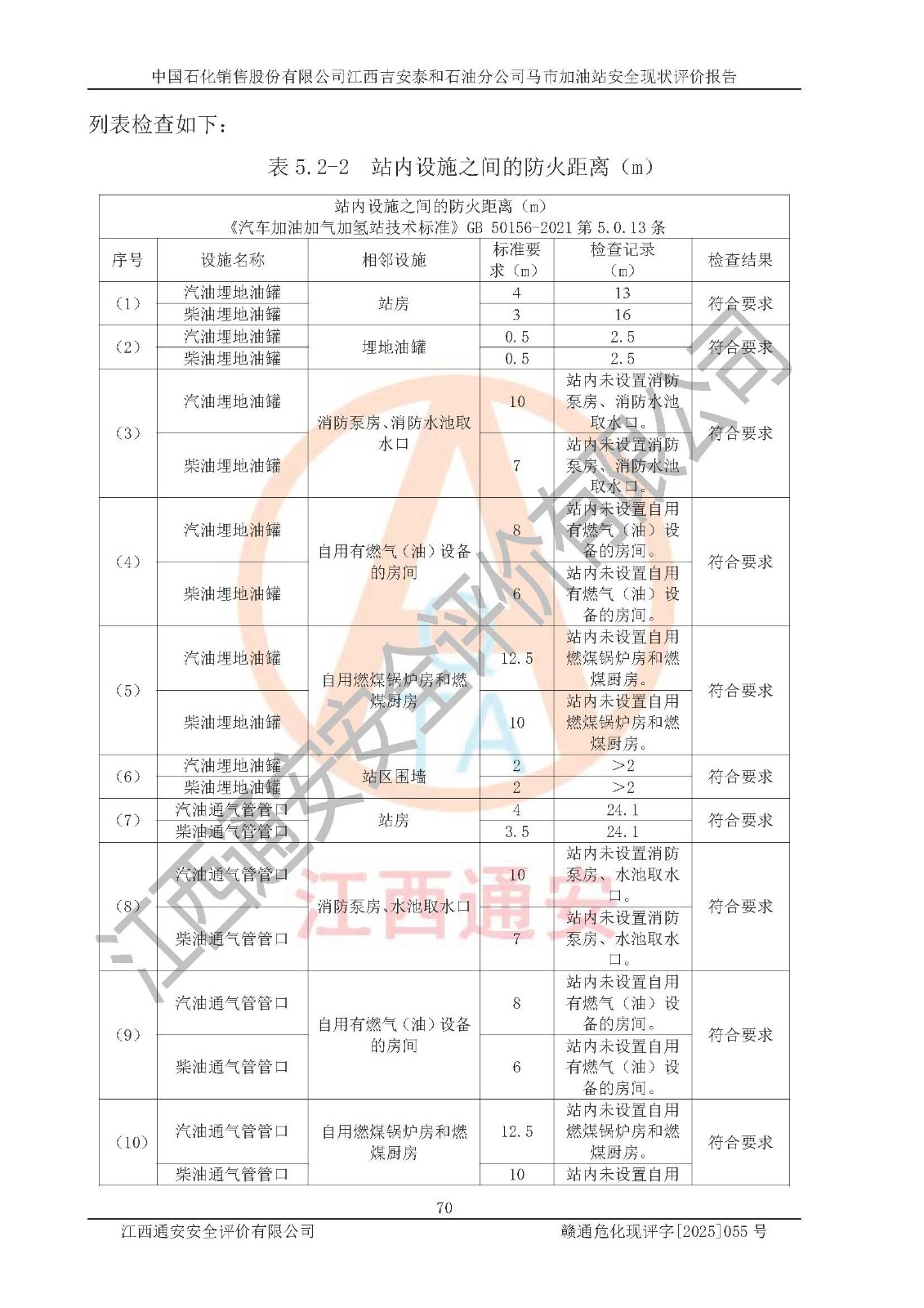 項目名稱 | 中國石化銷售股份有限公司江西吉安泰和石油分公司馬市加油站 安全現(xiàn)狀評價報告 | ||||