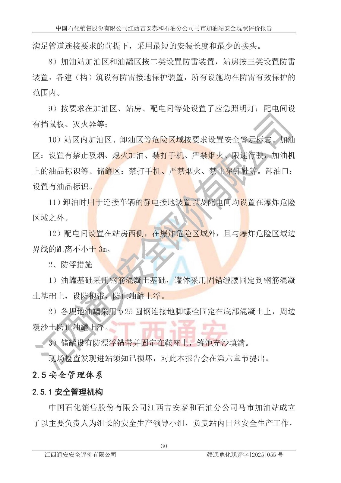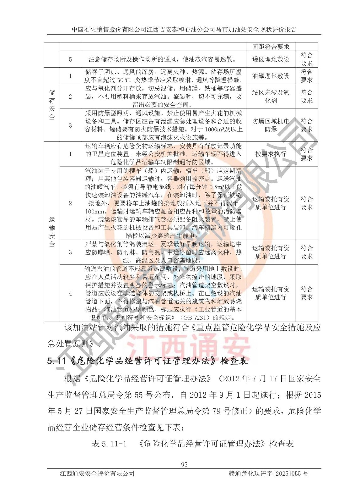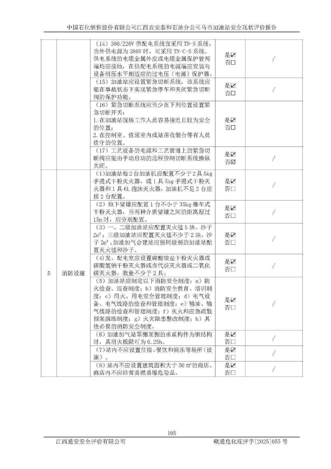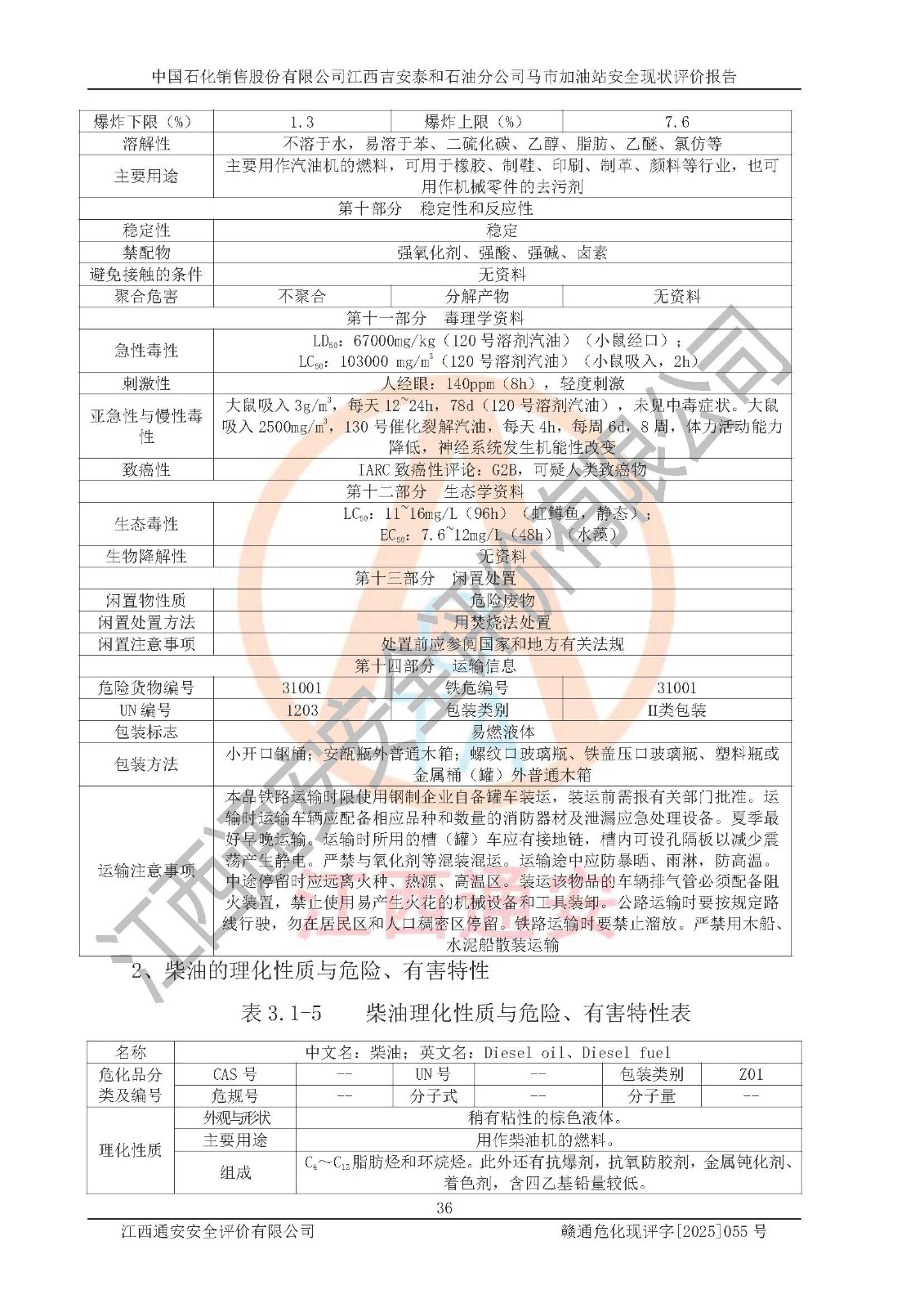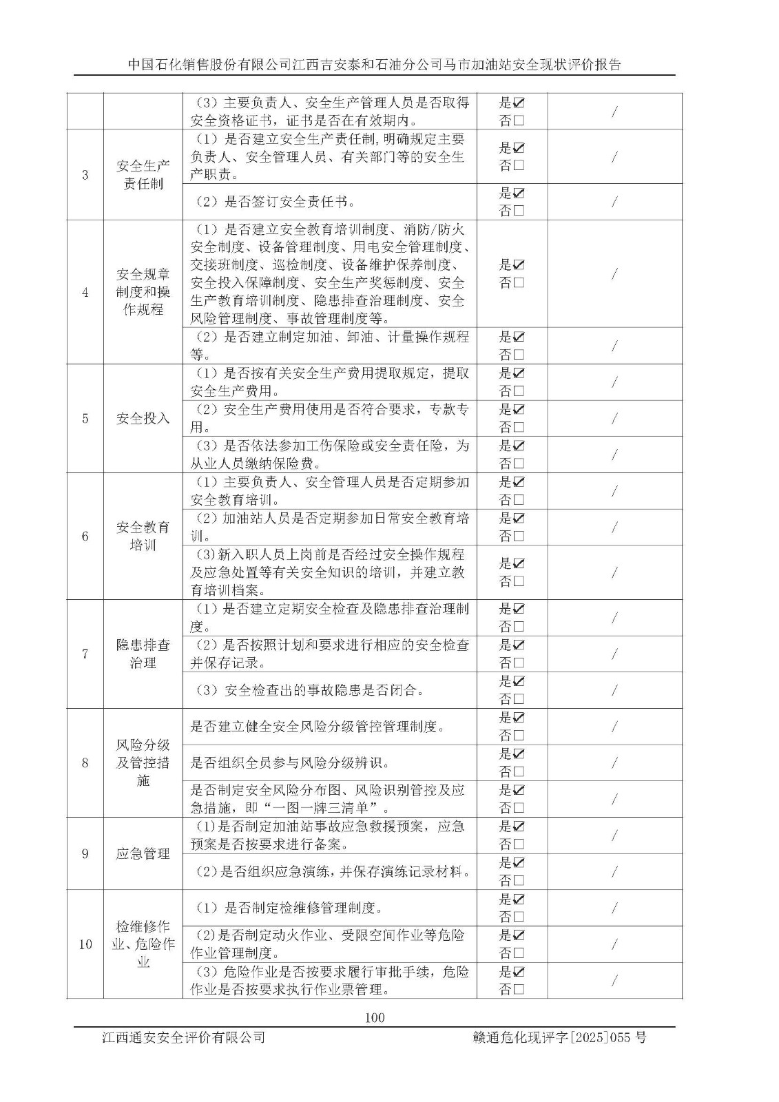 項目名稱 | 中國石化銷售股份有限公司江西吉安泰和石油分公司馬市加油站 安全現(xiàn)狀評價報告 | ||||