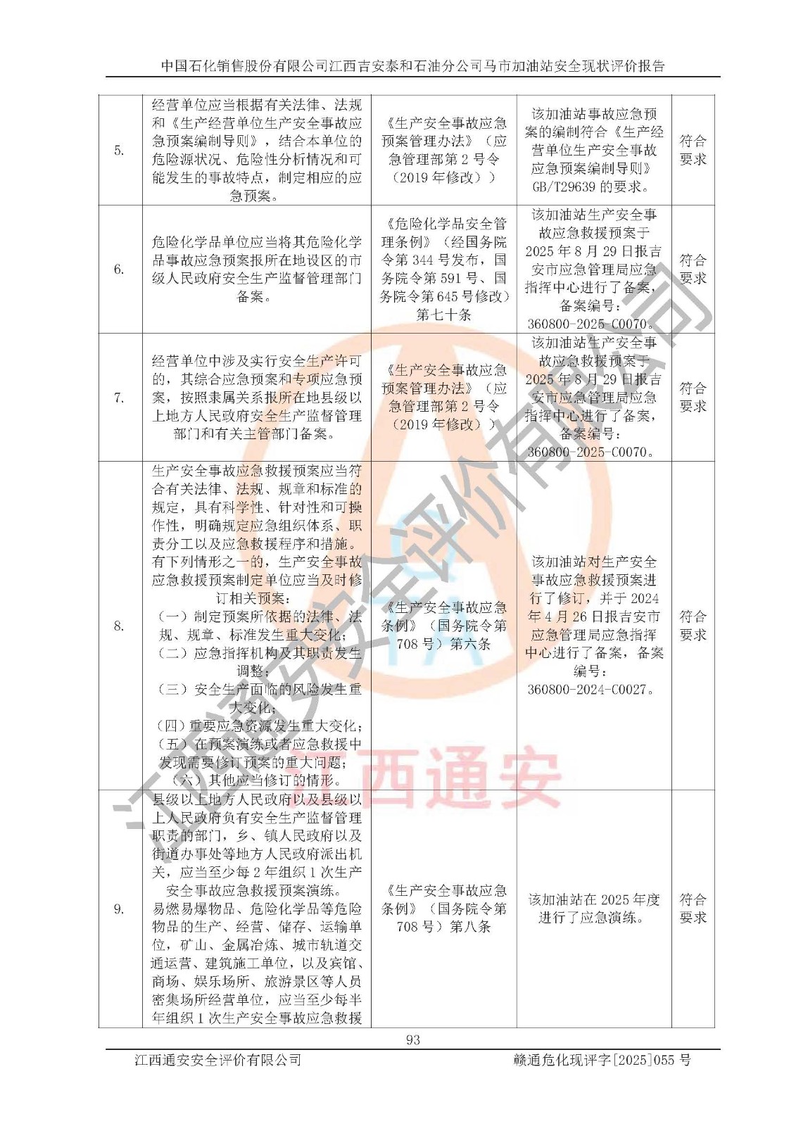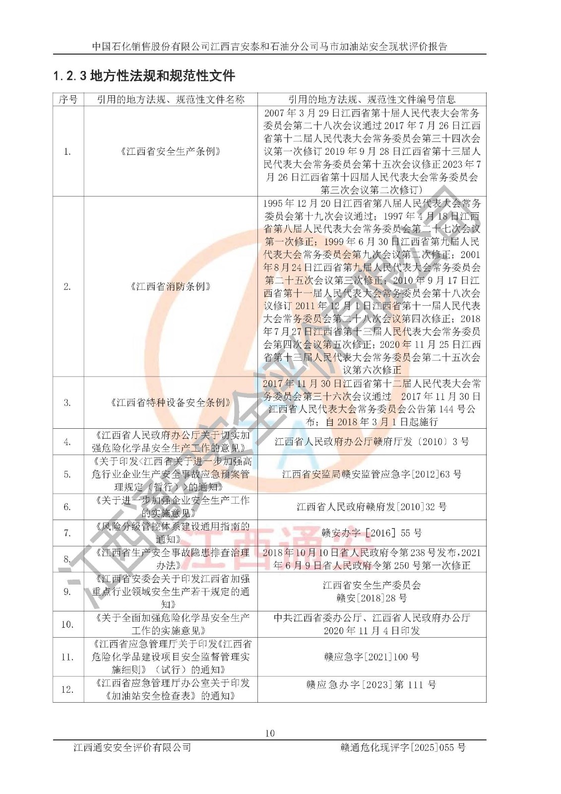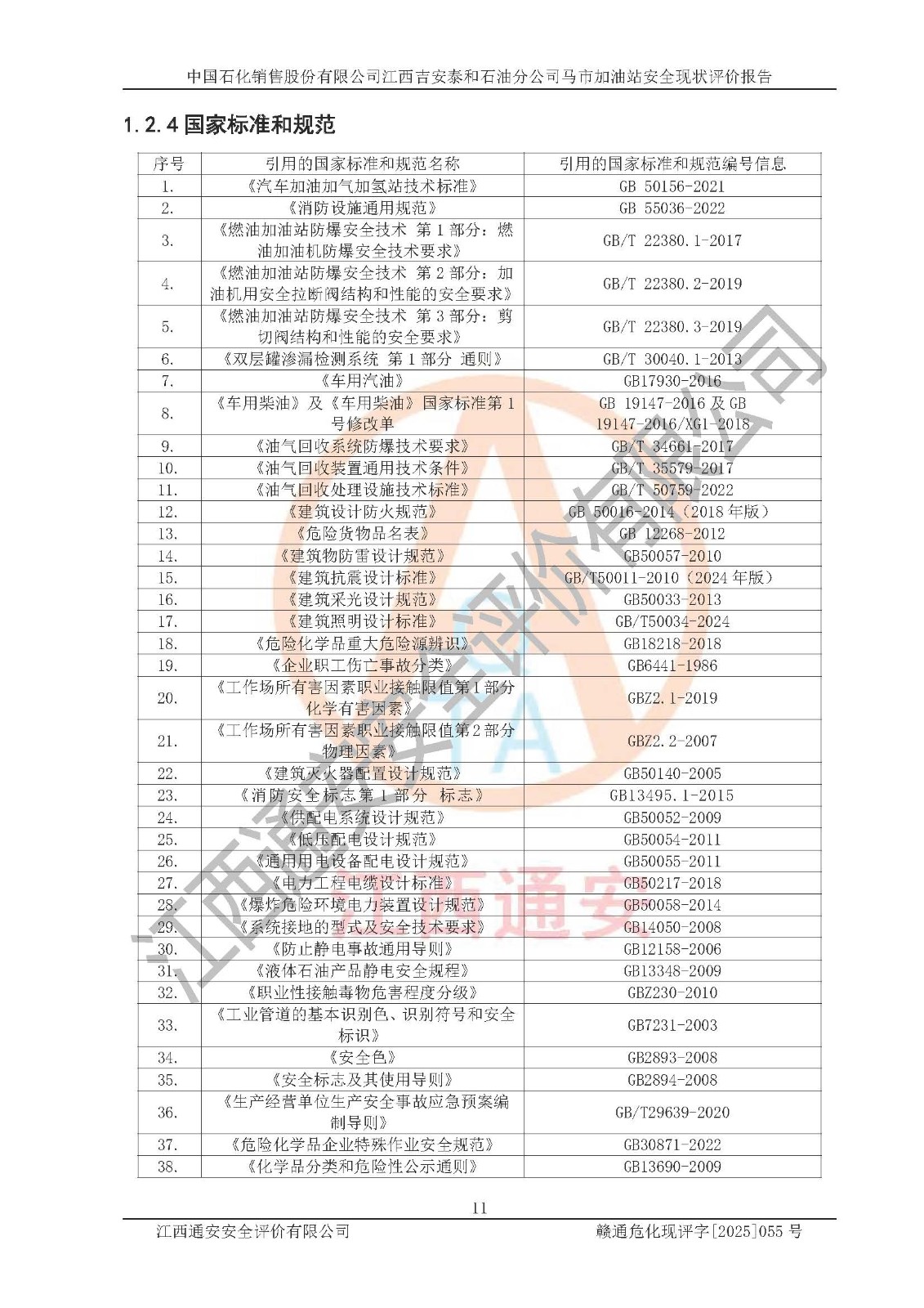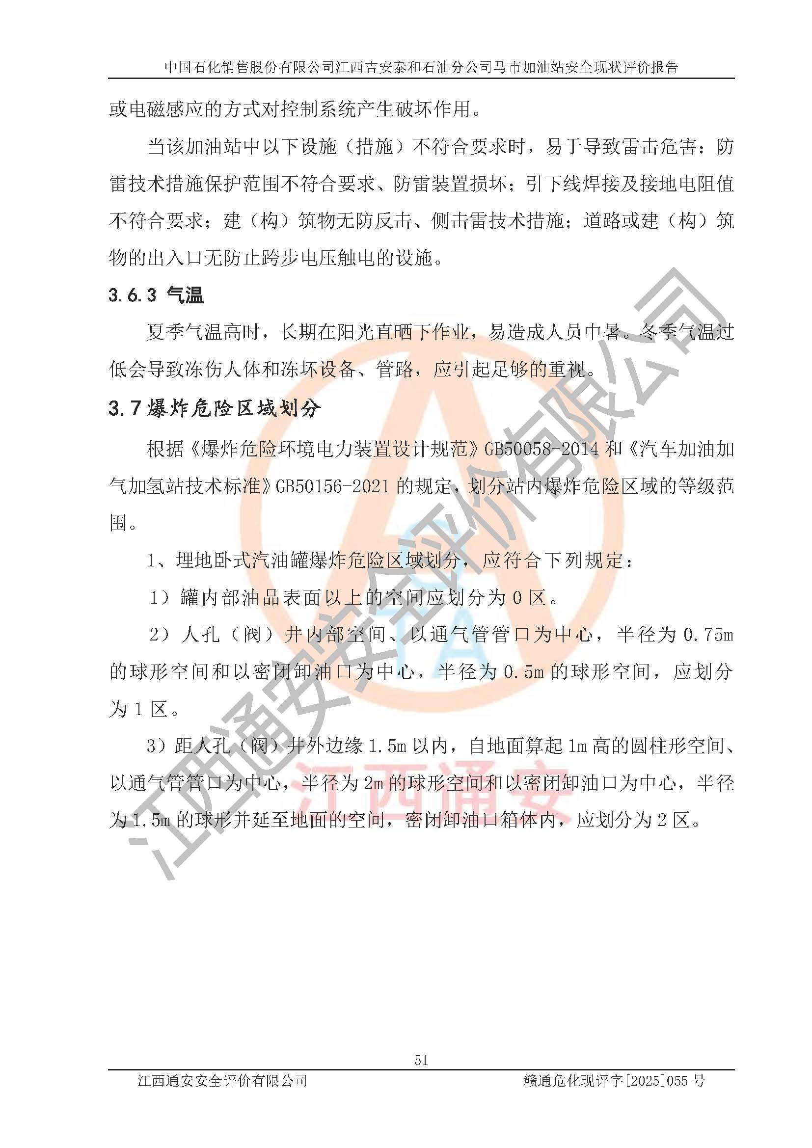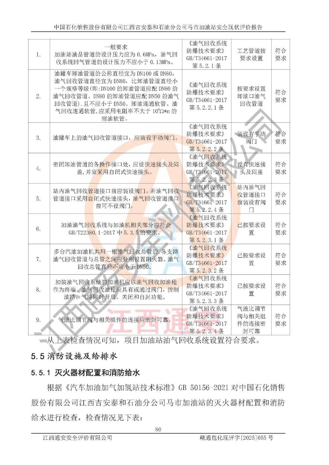 項目名稱 | 中國石化銷售股份有限公司江西吉安泰和石油分公司馬市加油站 安全現(xiàn)狀評價報告 | ||||