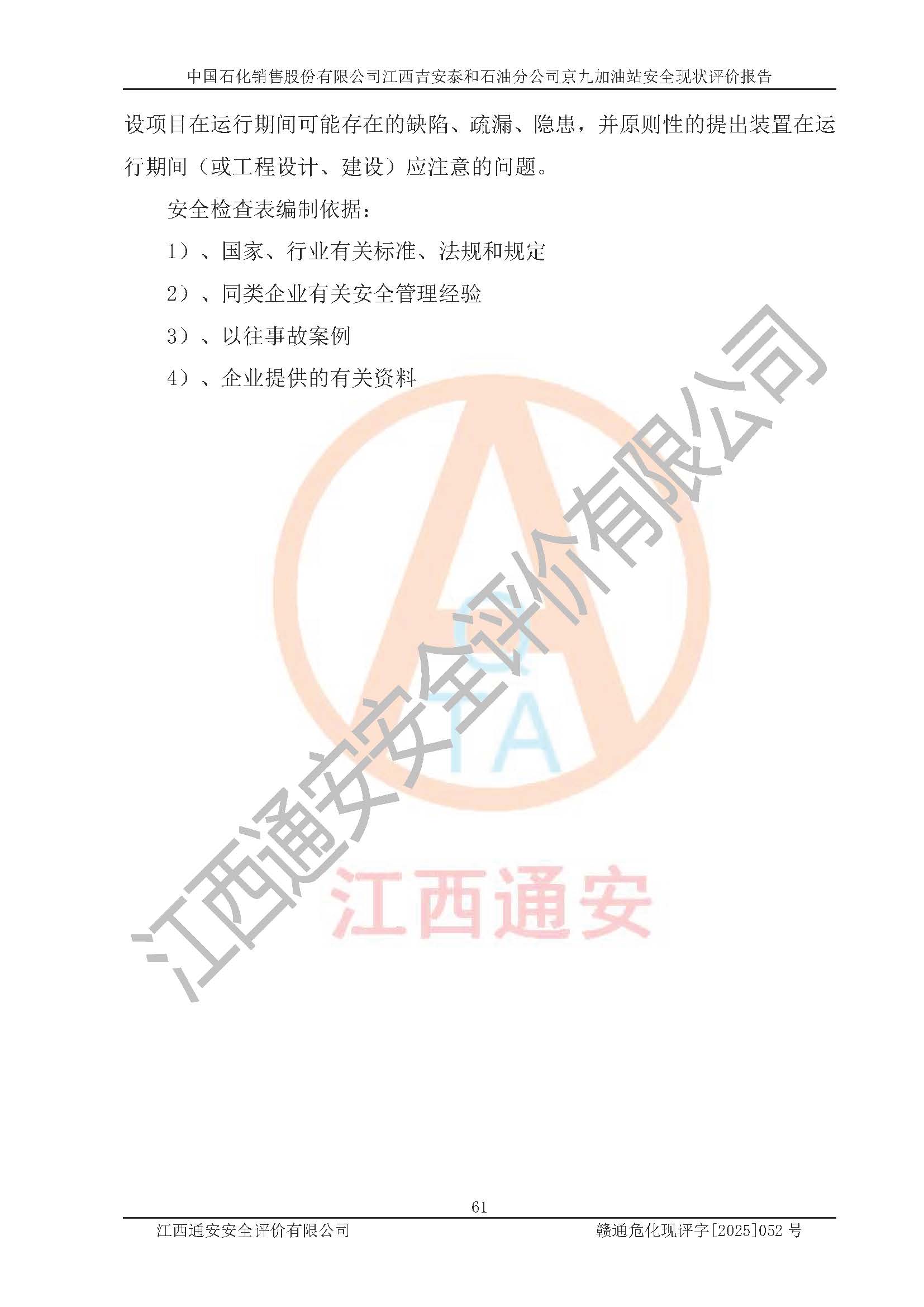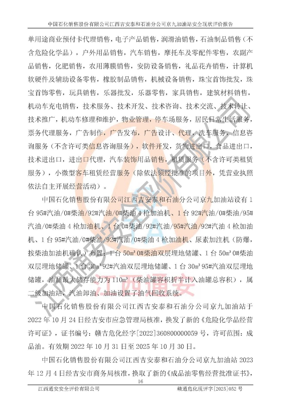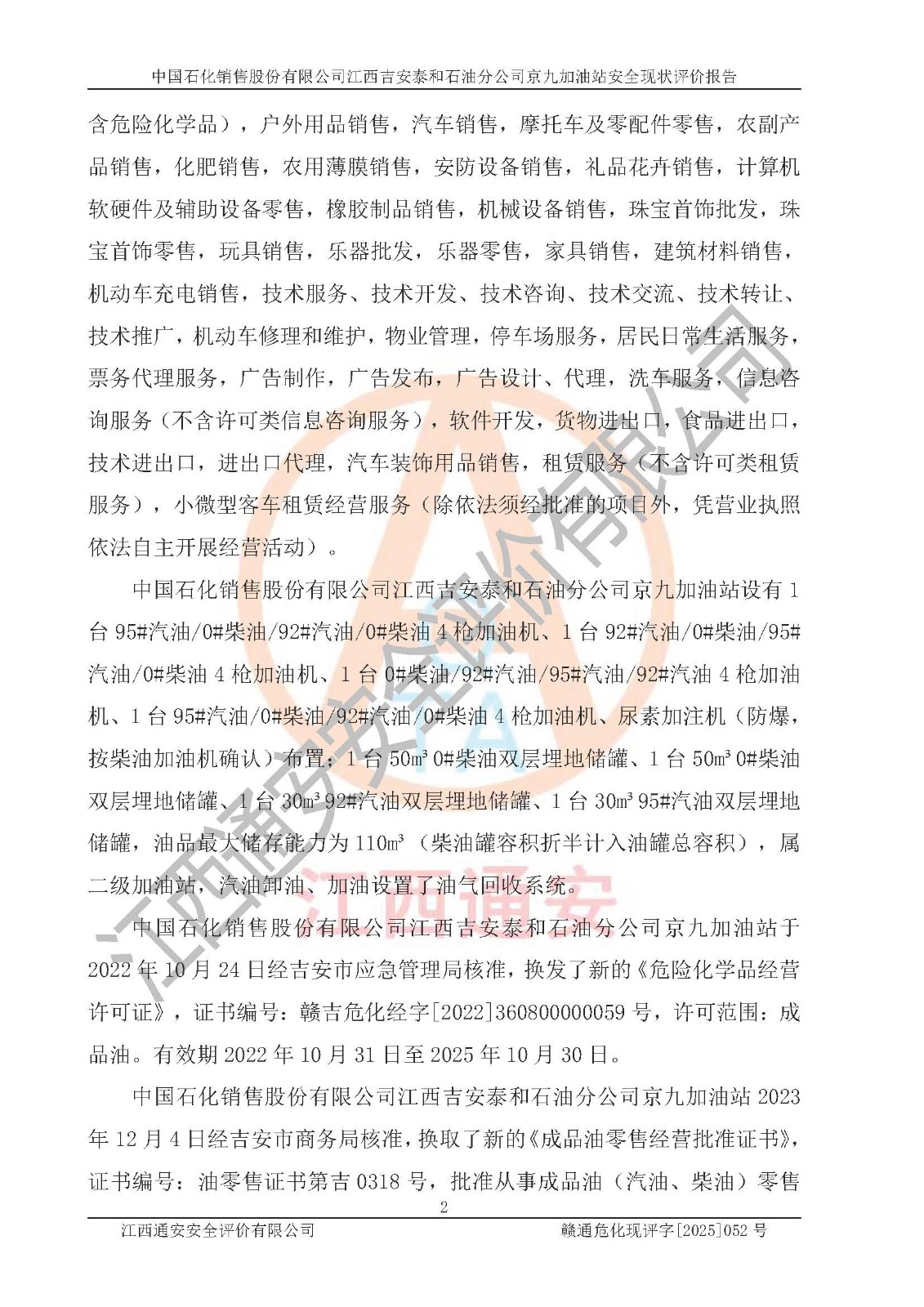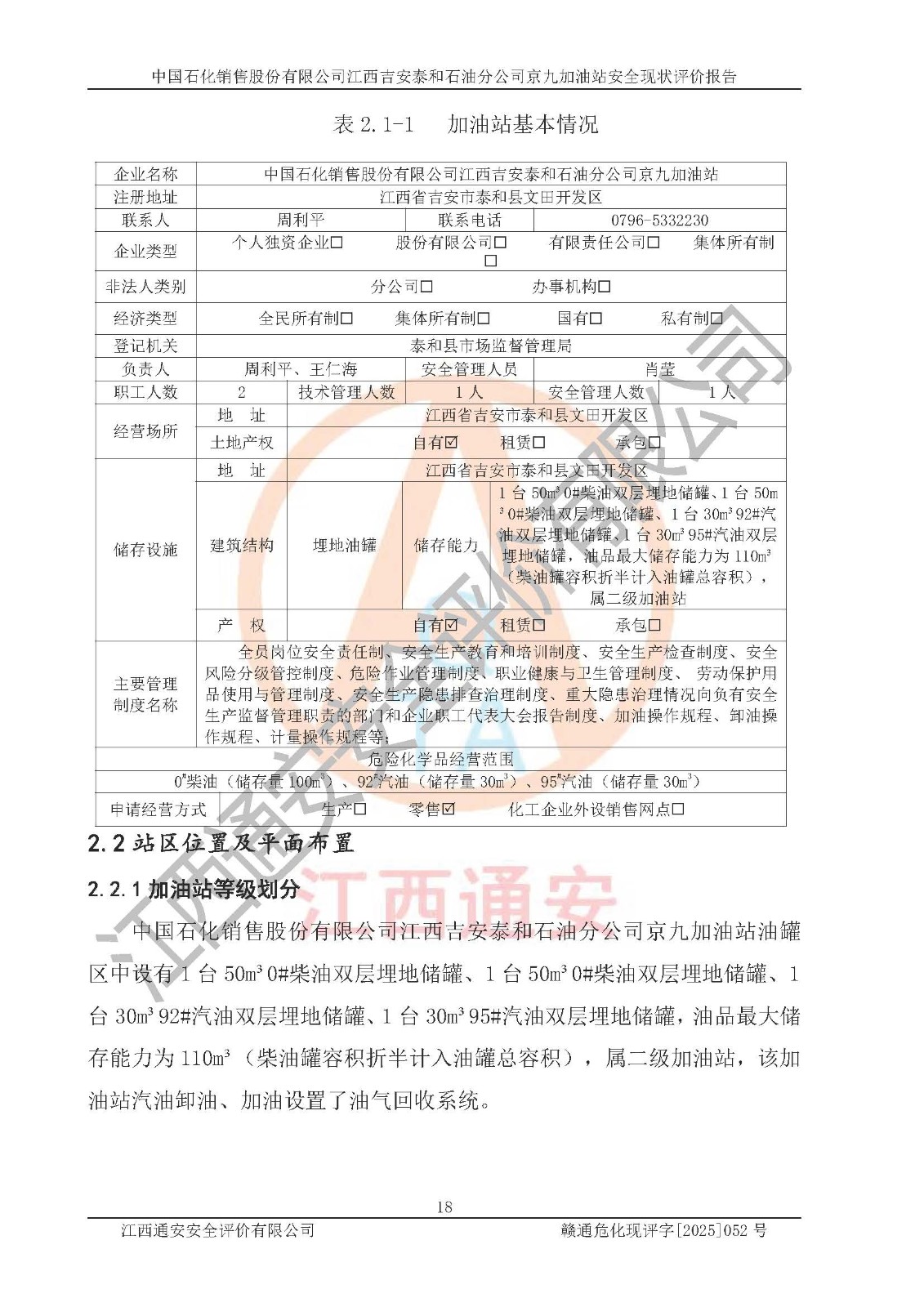 項目名稱  | 中國石化銷售股份有限公司江西吉安泰和石油分公司京九加油站 安全現(xiàn)狀評價報告  | ||||