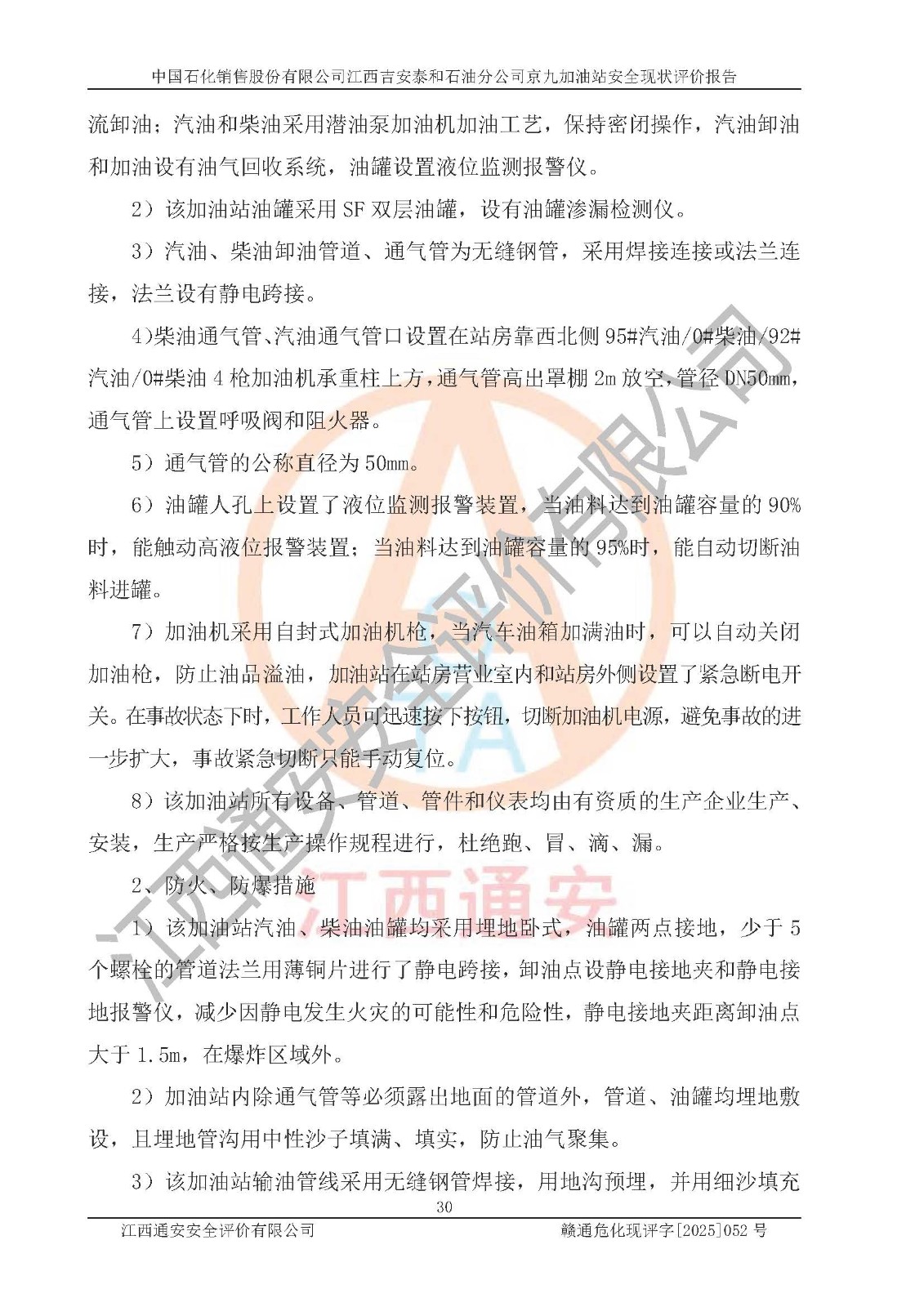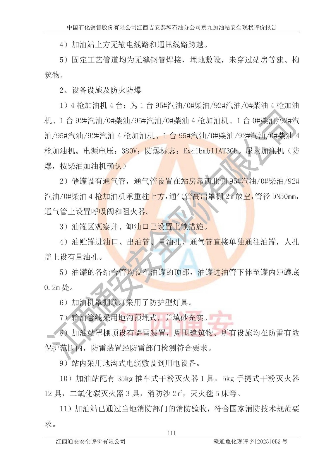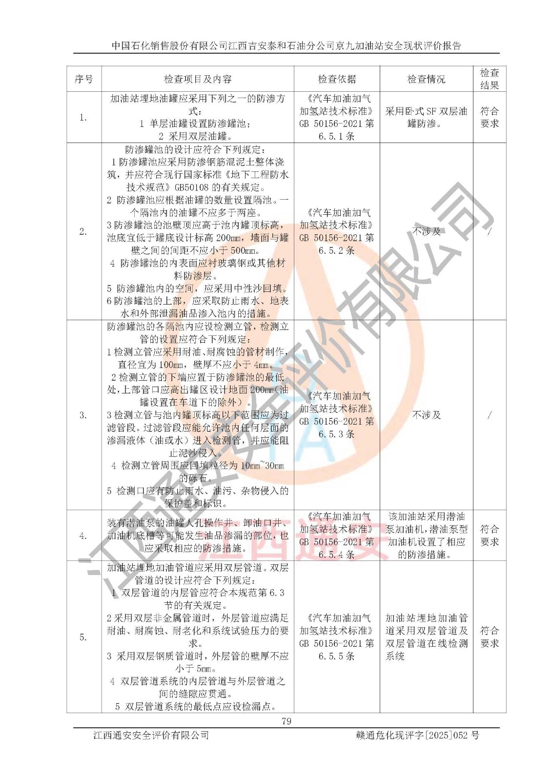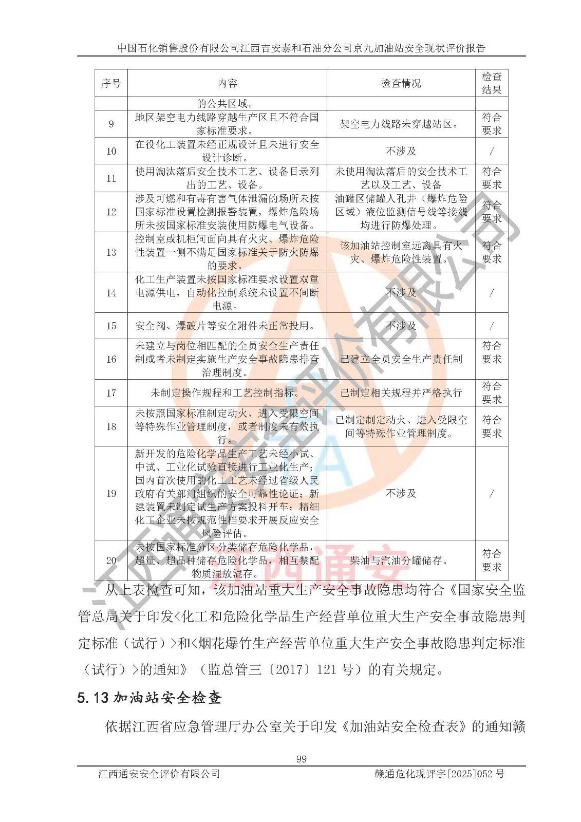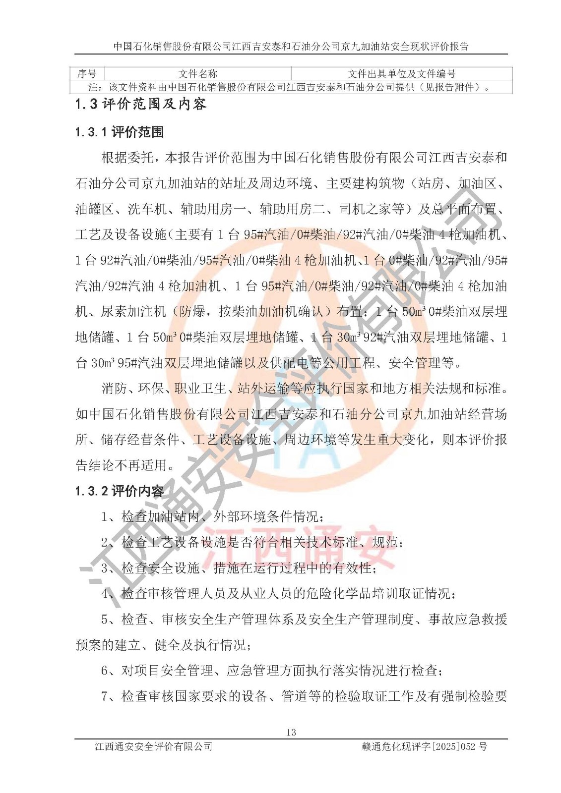 項目名稱  | 中國石化銷售股份有限公司江西吉安泰和石油分公司京九加油站 安全現(xiàn)狀評價報告  | ||||
