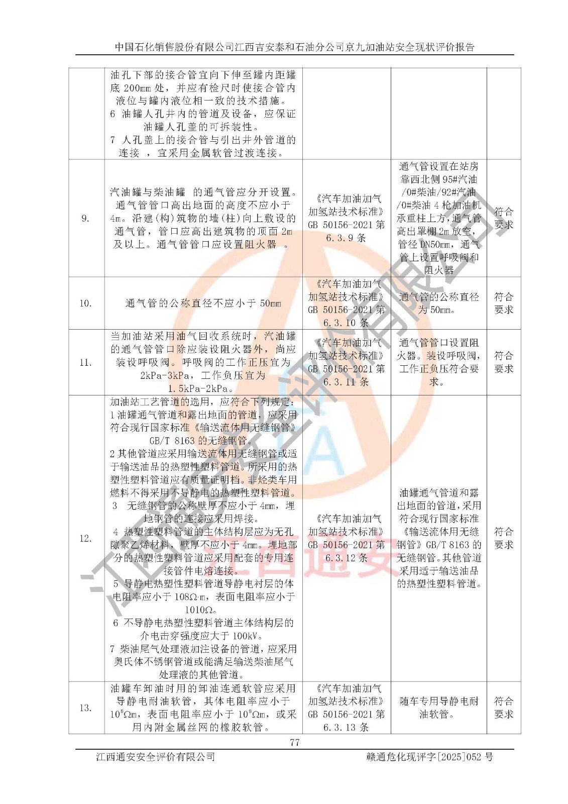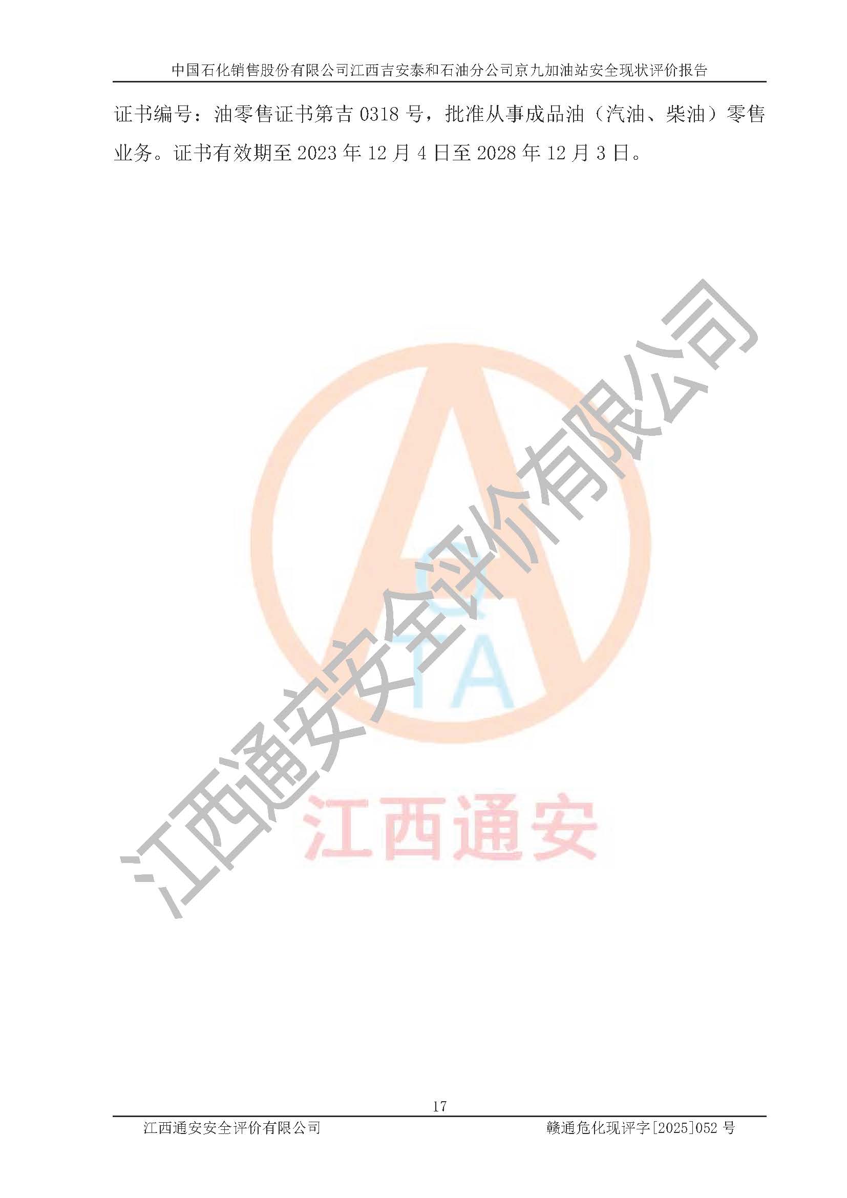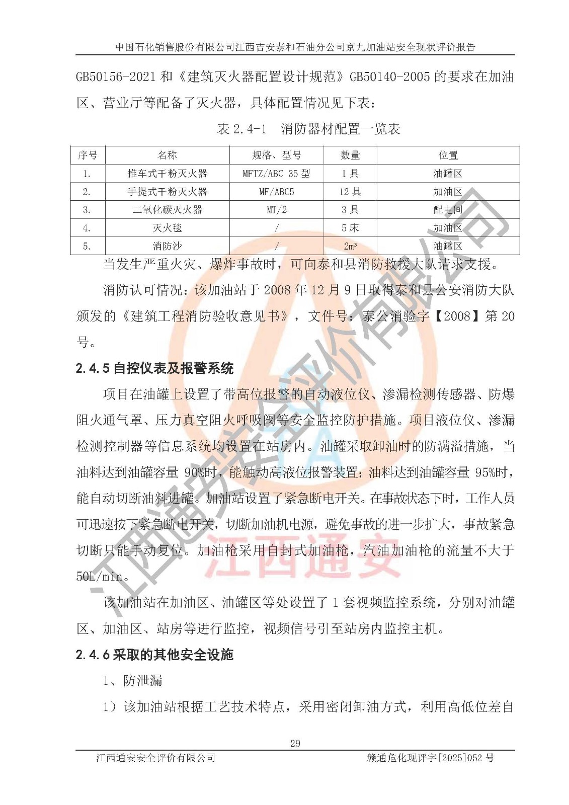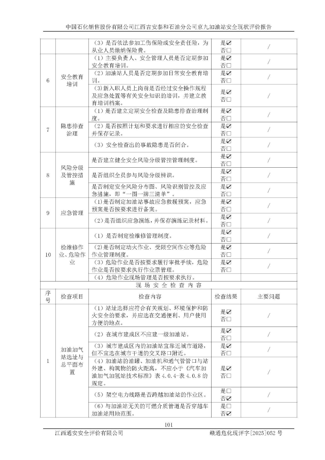 項目名稱  | 中國石化銷售股份有限公司江西吉安泰和石油分公司京九加油站 安全現(xiàn)狀評價報告  | ||||