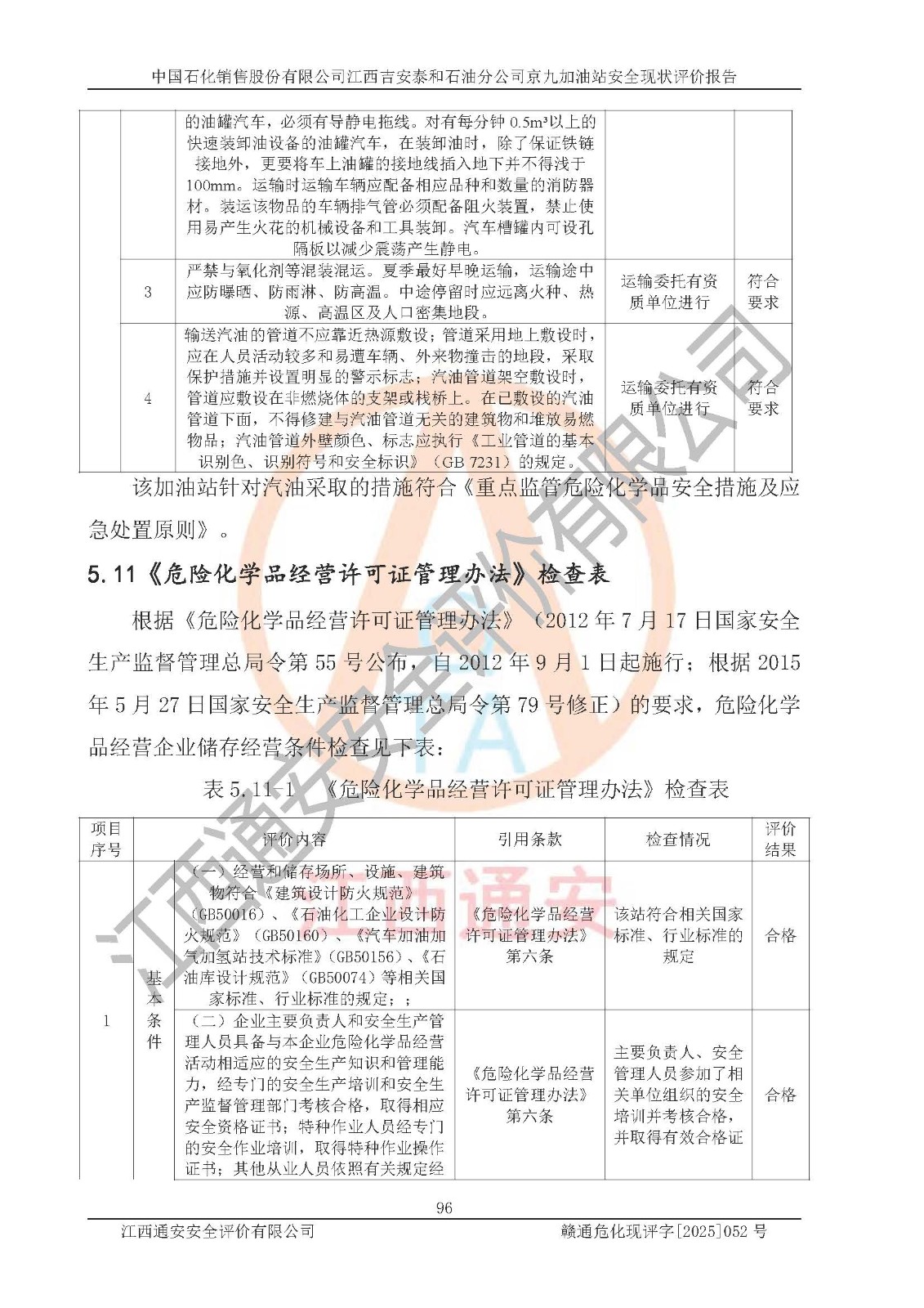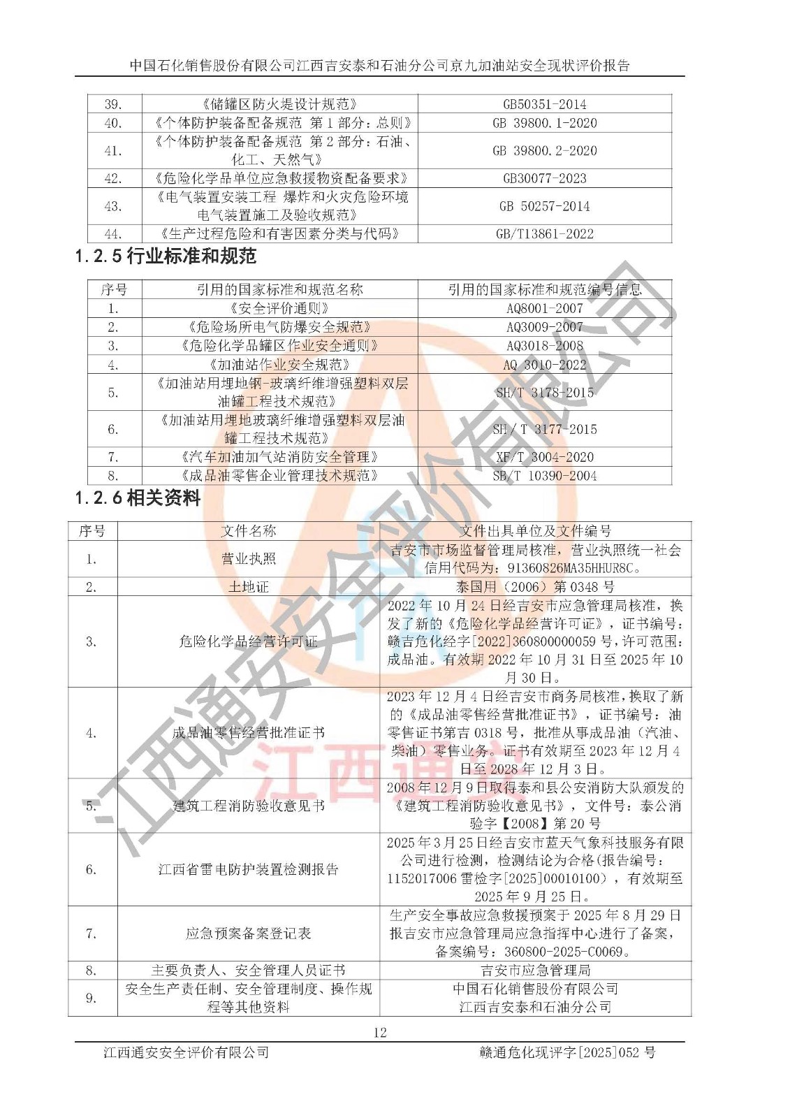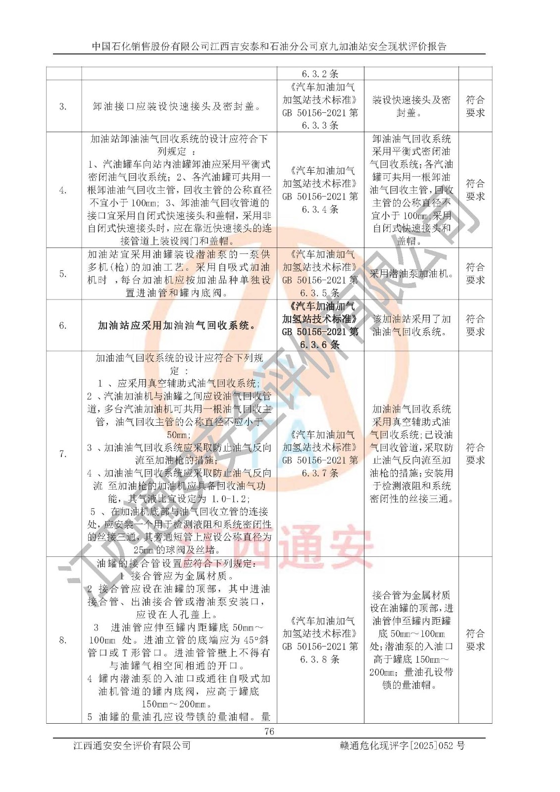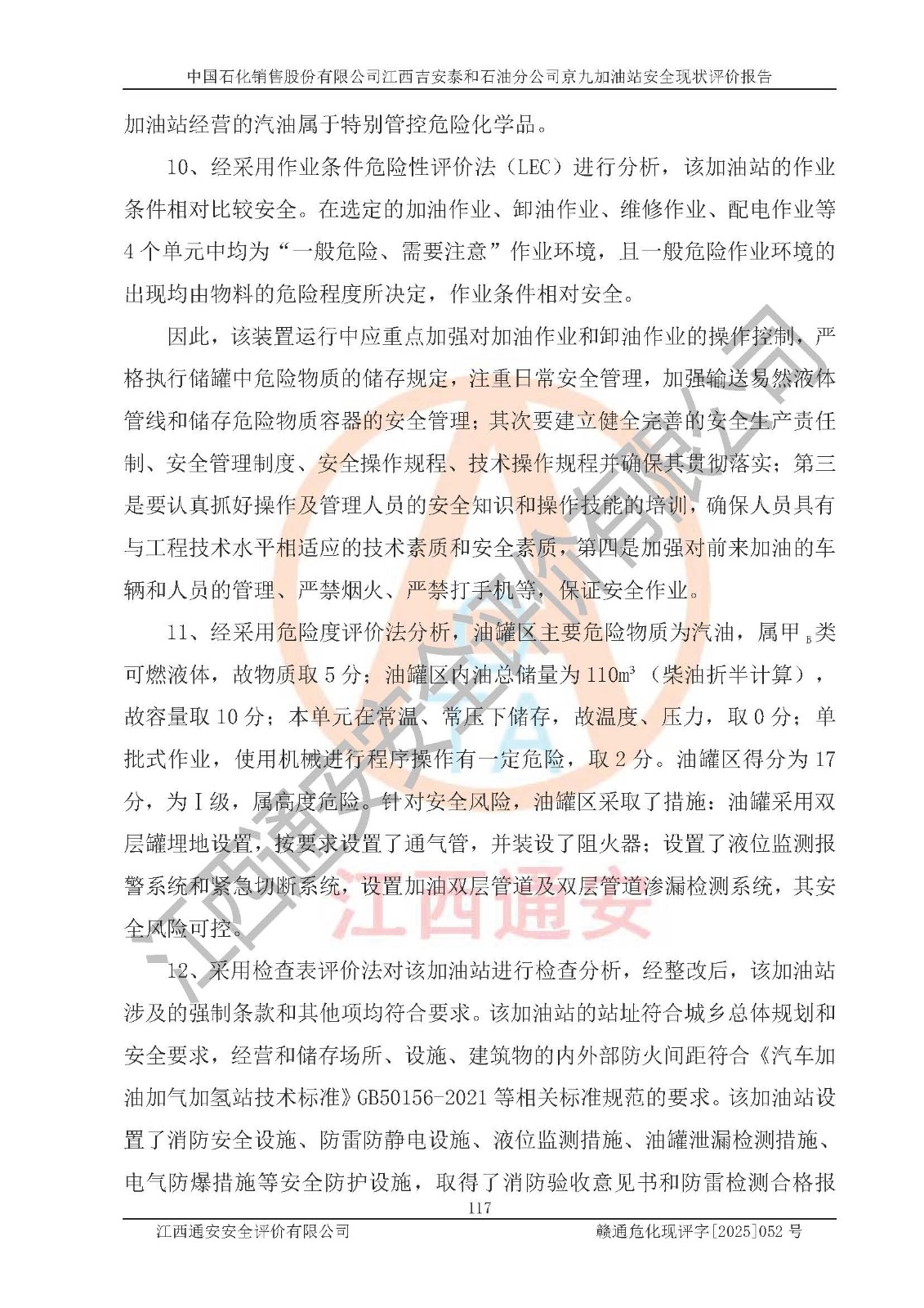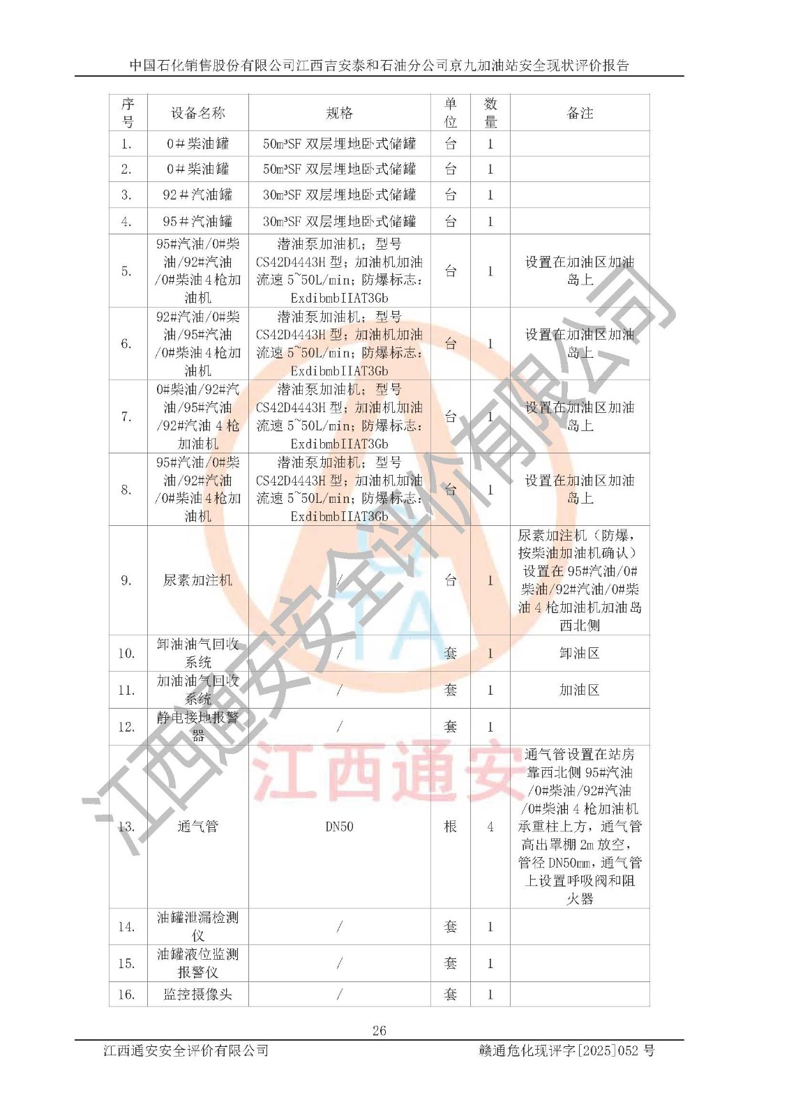 項目名稱  | 中國石化銷售股份有限公司江西吉安泰和石油分公司京九加油站 安全現(xiàn)狀評價報告  | ||||
