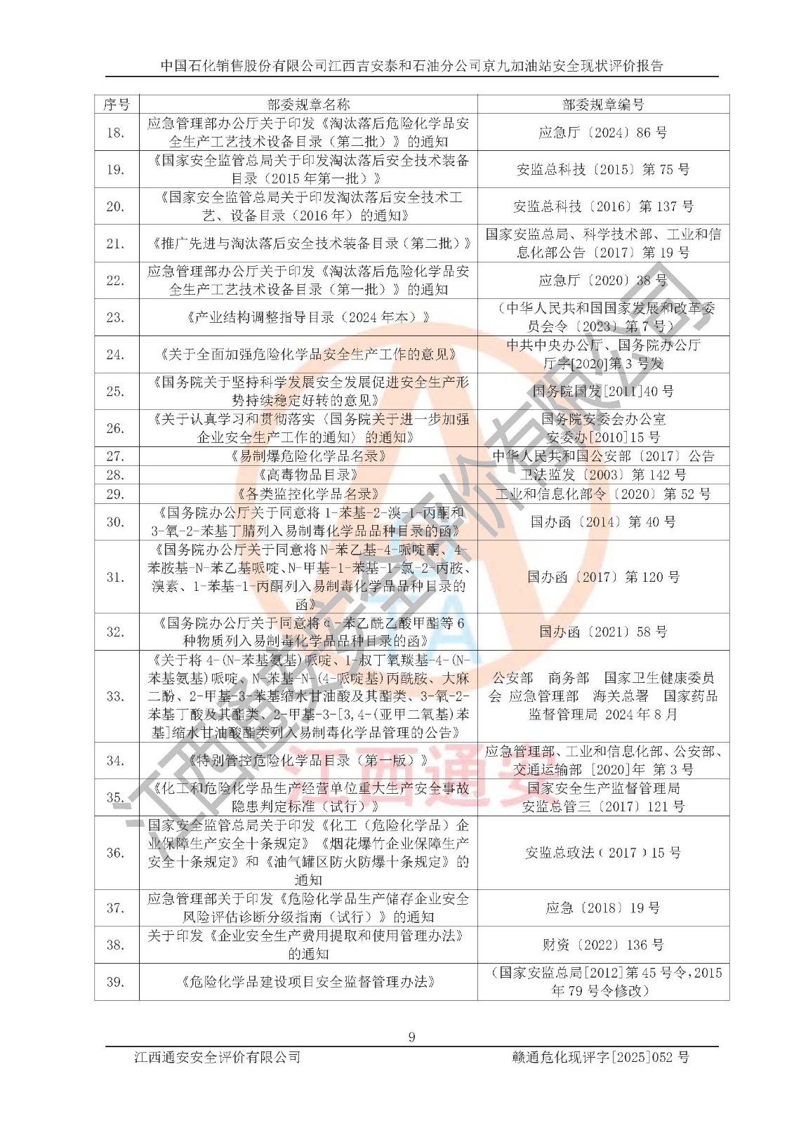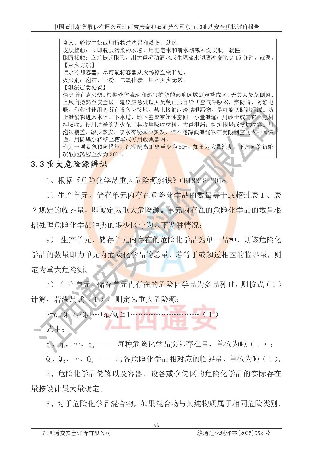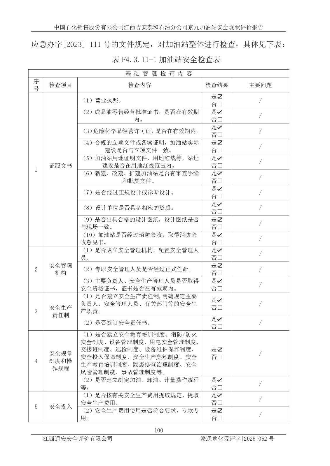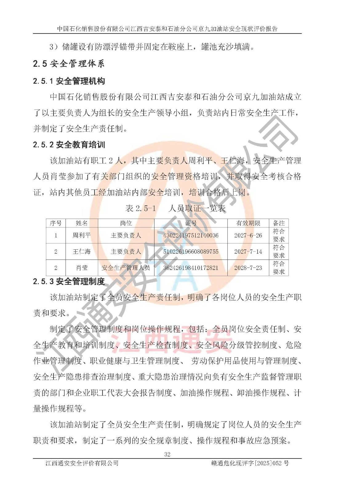 項目名稱  | 中國石化銷售股份有限公司江西吉安泰和石油分公司京九加油站 安全現(xiàn)狀評價報告  | ||||