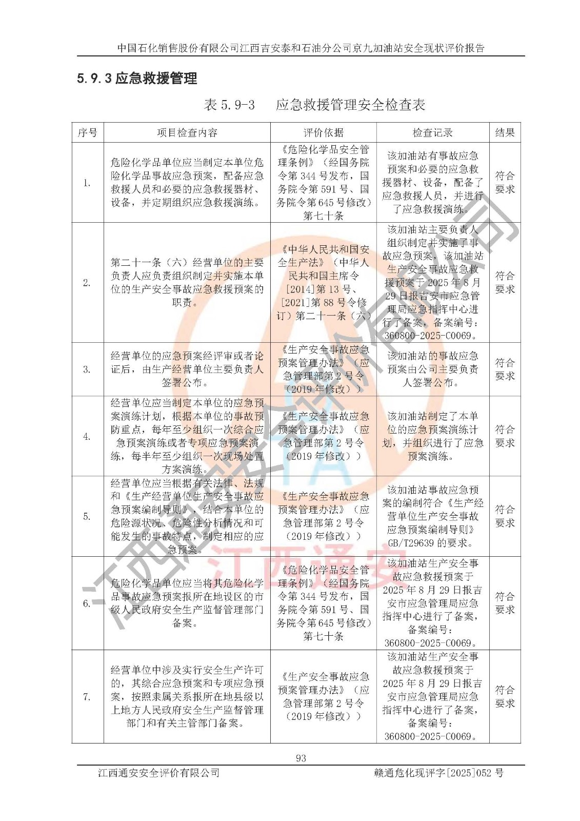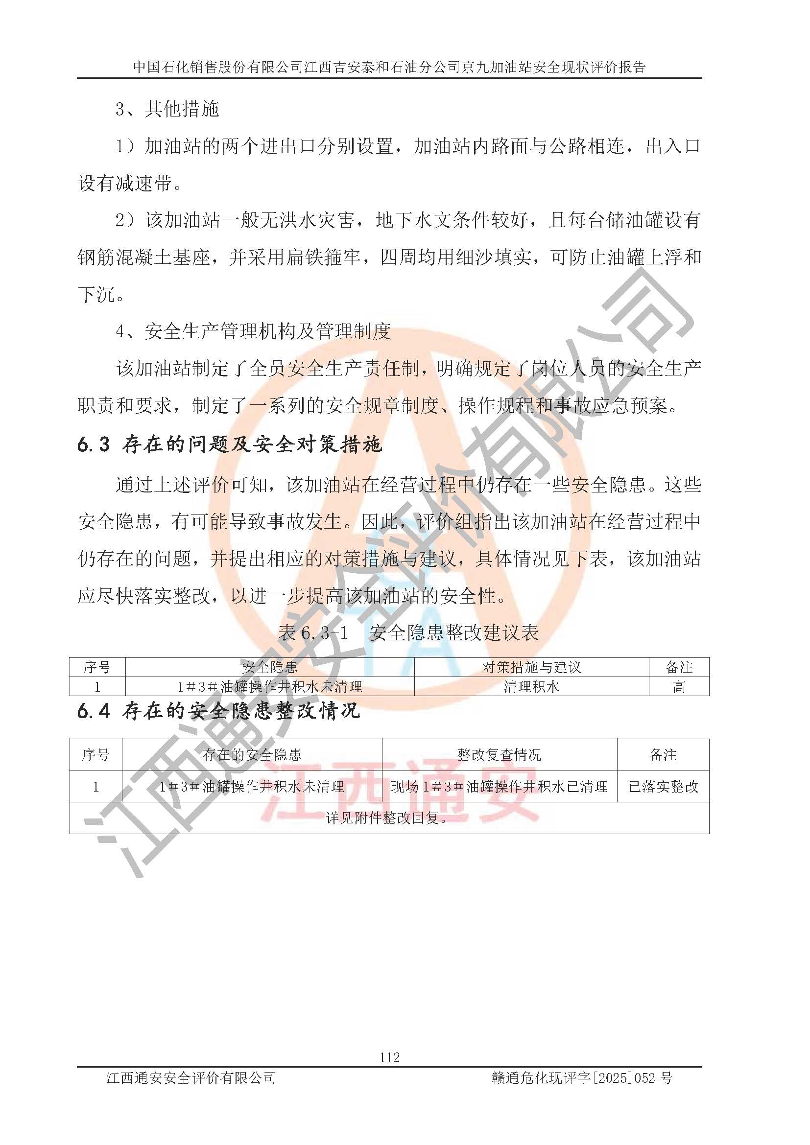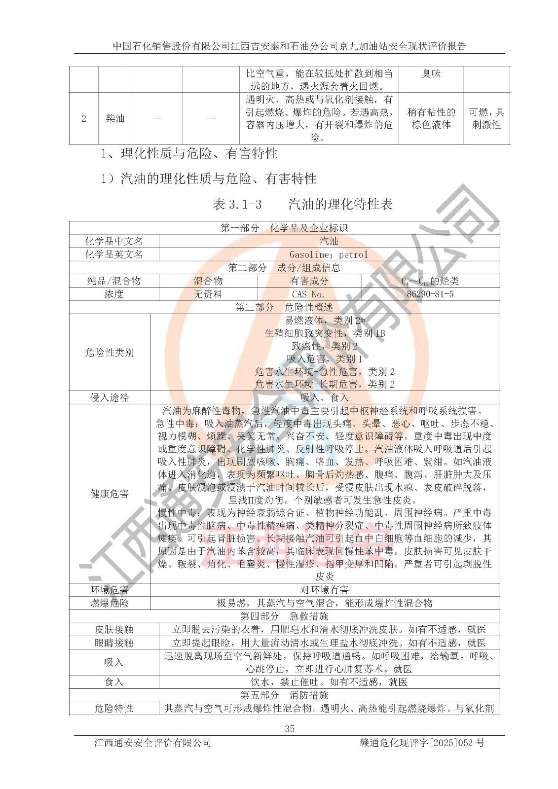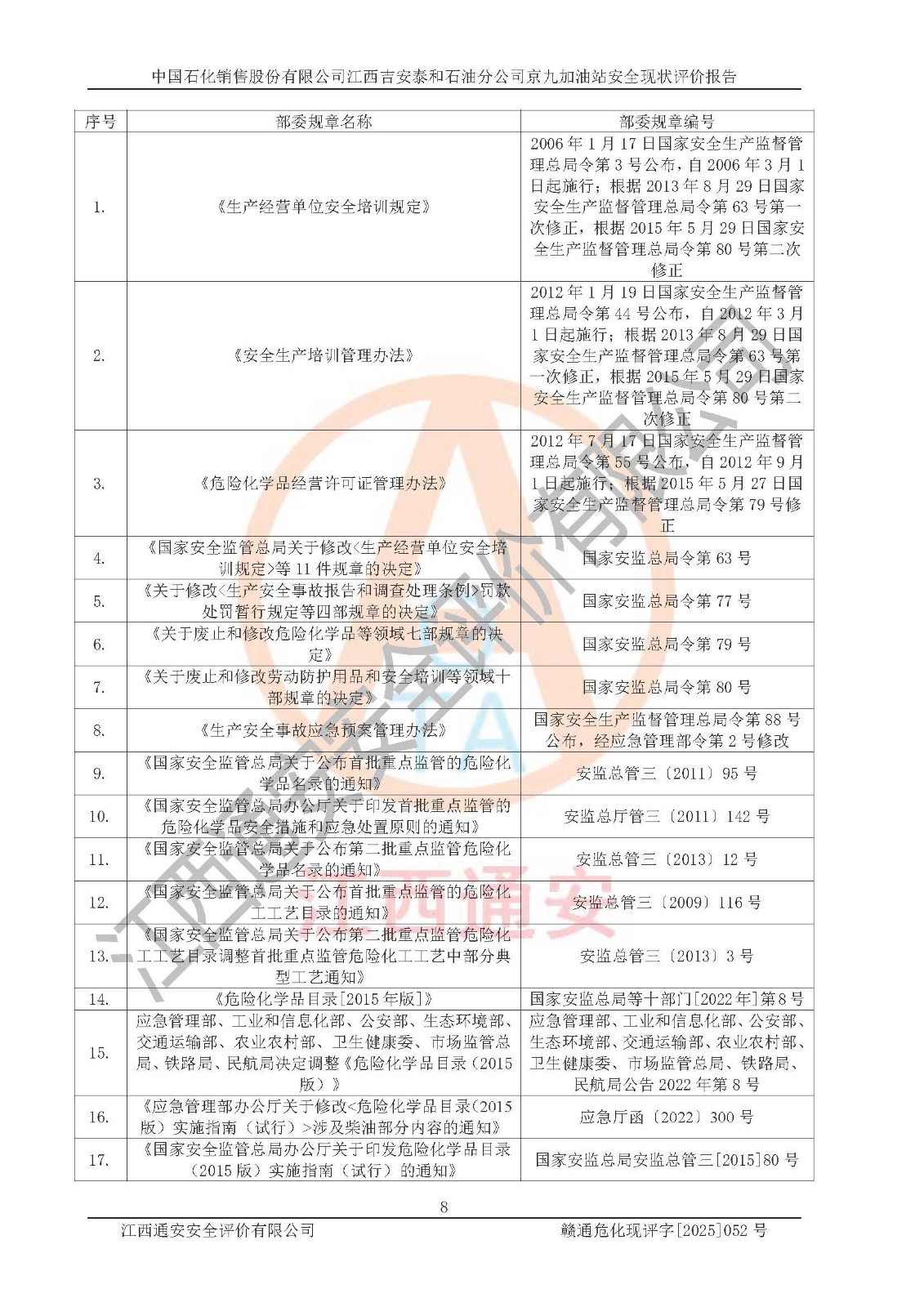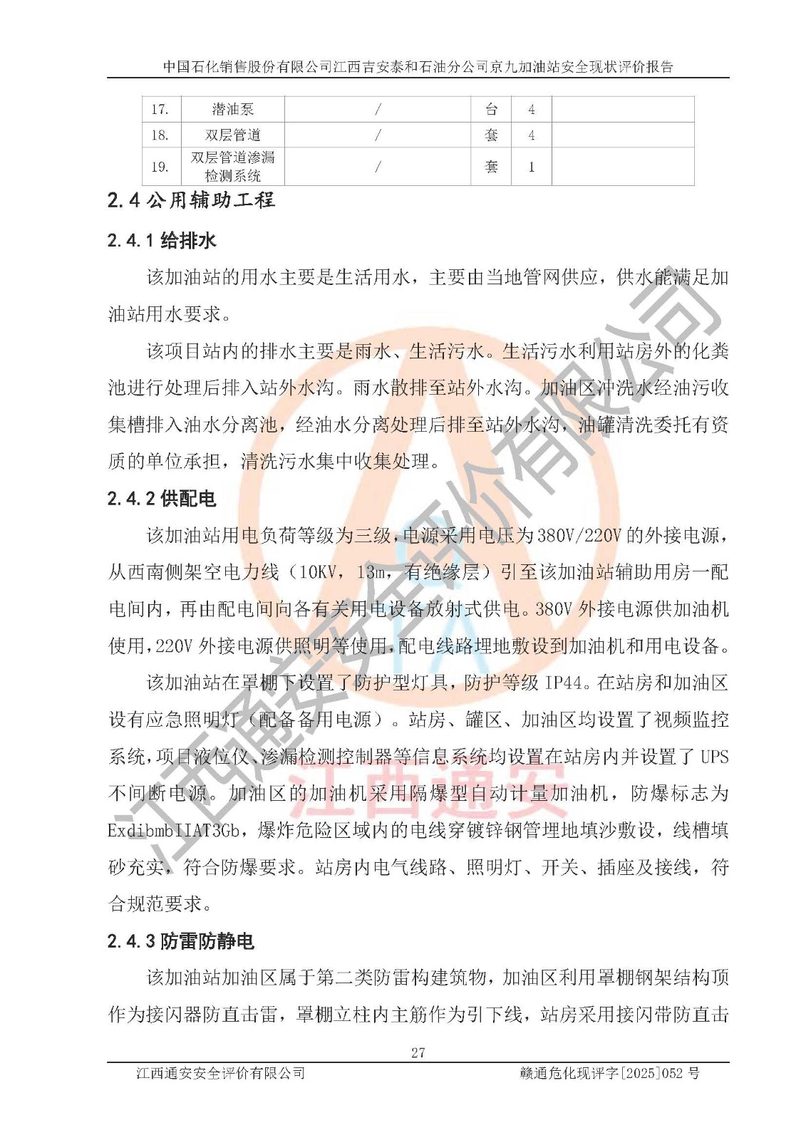 項目名稱  | 中國石化銷售股份有限公司江西吉安泰和石油分公司京九加油站 安全現(xiàn)狀評價報告  | ||||