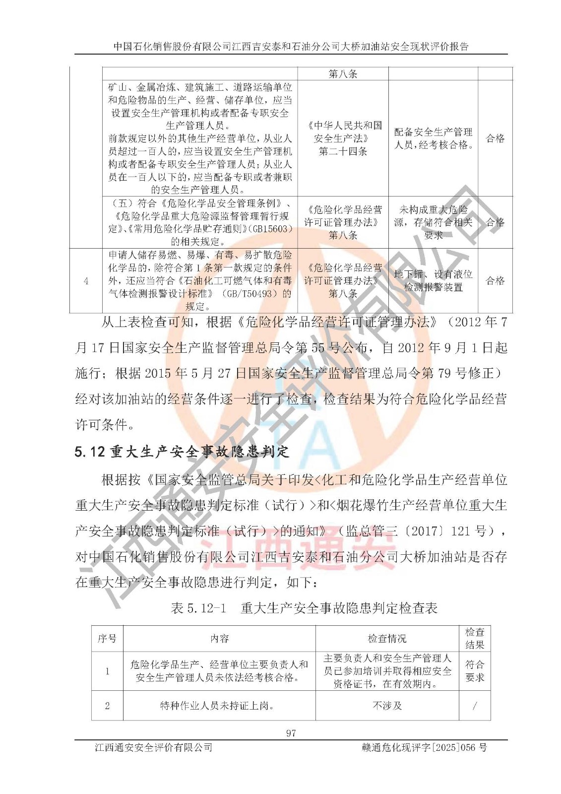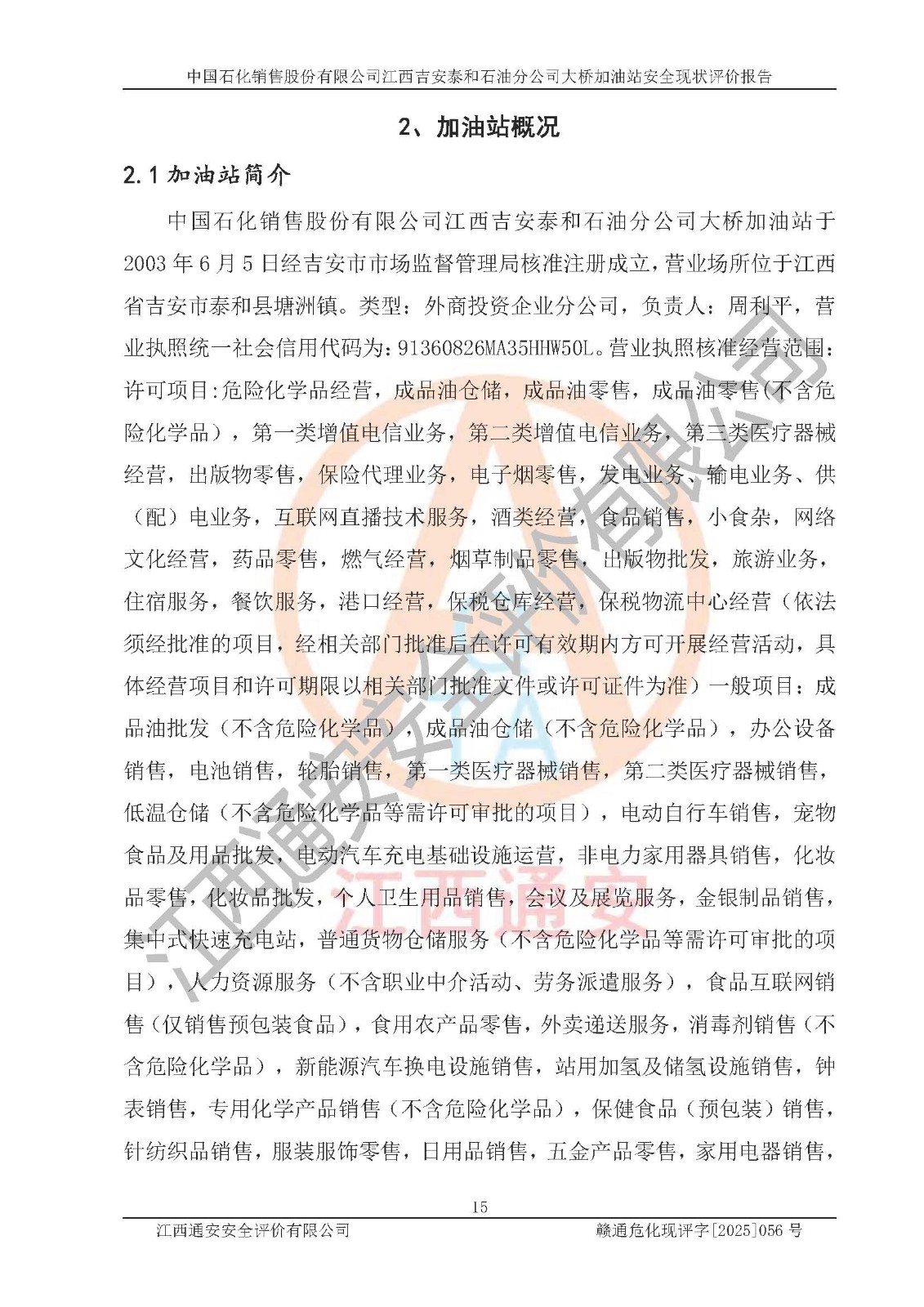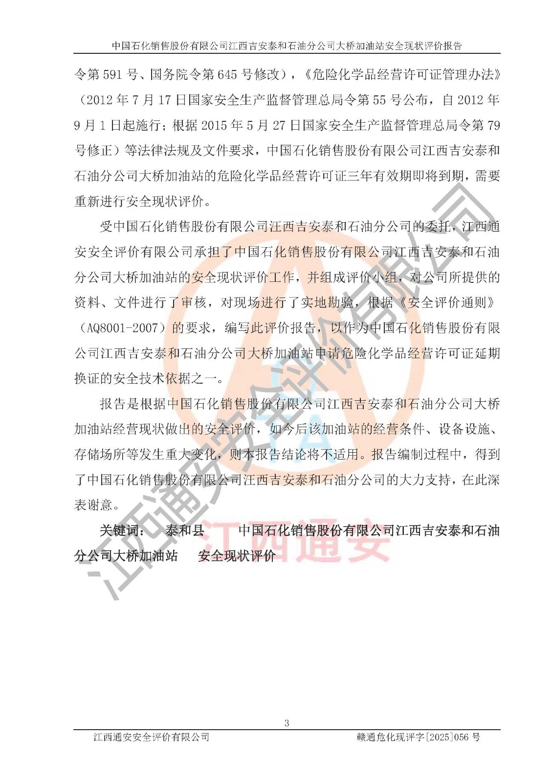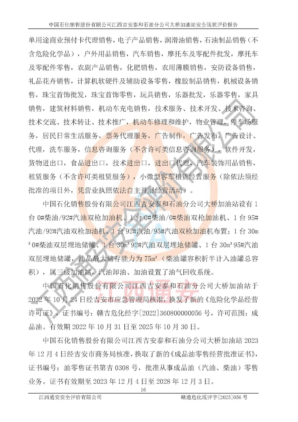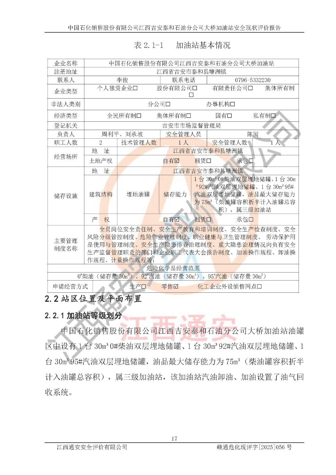 項(xiàng)目名稱  | 中國石化銷售股份有限公司江西吉安泰和石油分公司大橋加油站 安全現(xiàn)狀評價(jià)報(bào)告  | ||||